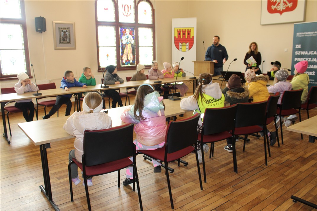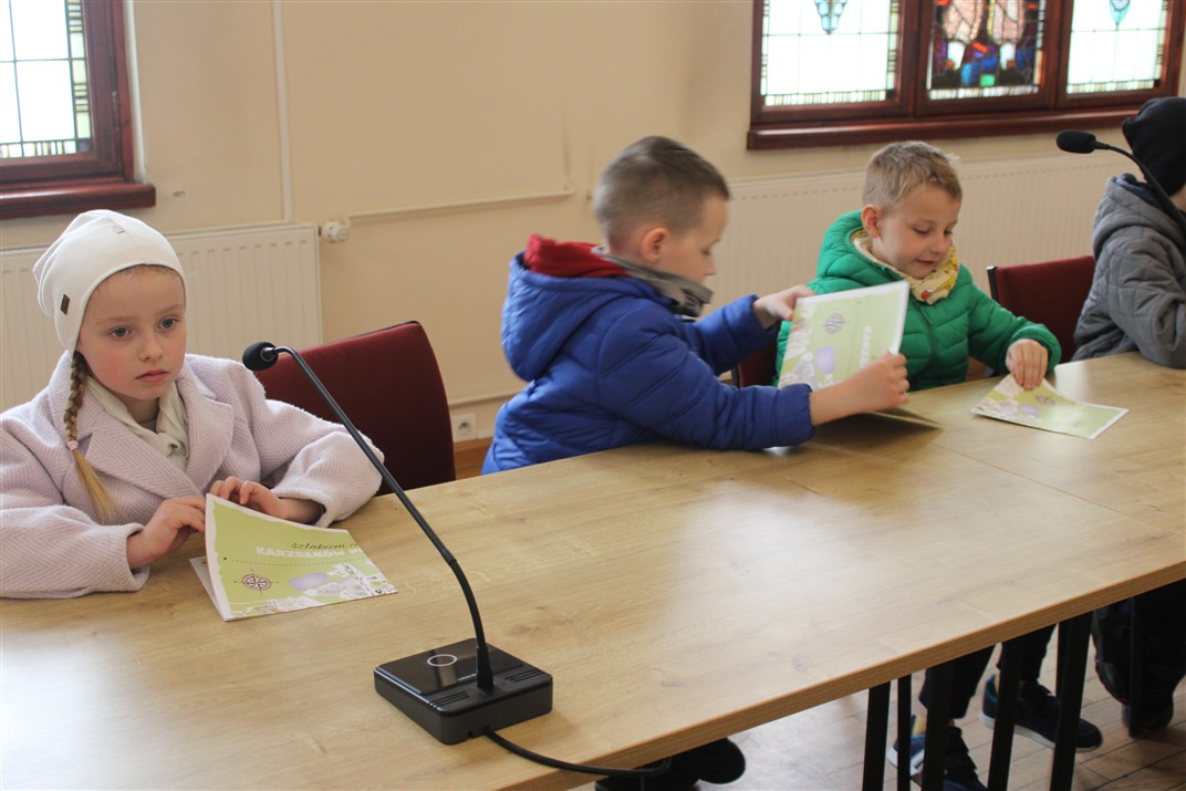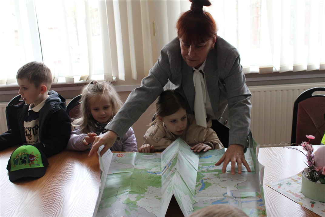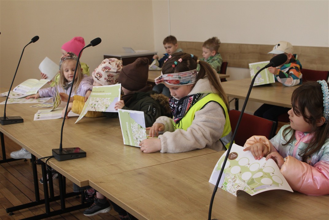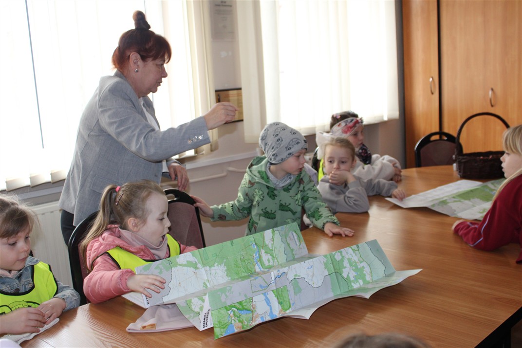 i opowiedzieli o swojej pracy. Dzieci poznały też informacje na temat pracy wydziału komunikacji oraz wydziału geodezji i kartografii.  Pani wicestarosta rozdając dzieciom turystyczno-przyrodniczą mapę powiatu chodzieskiego zachęciła je do coraz lepszego poznawania naszego pięknego regionu. Dzieci zwiedziły także Urząd Miejski i dowiedziały się, kto w nim pracuje. Poznały również radnego, który zaprosił dzieci do sali sesyjnej, gdzie mogły poczuć się jak radni podczas obrad Rady Miejskiej. Pani Paulina, która oprowadzała dzieci po Urzędzie Miejskim rozdała dzieciom naklejki i mapę, by wraz z najbliższymi udali się szlakiem chodzieskich karzełków płomienistych. Bardzo dziękujemy za miłe przyjęcie przedszkolaków i umożliwienie zwiedzenia Starostwa Powiatowego i Urzędu Miejskiego. Dziękujemy również Pani Natalii, mamie Huberta za zorganizowanie wycieczki.