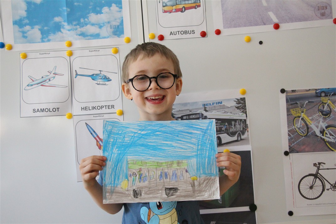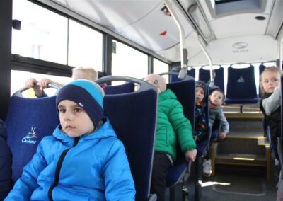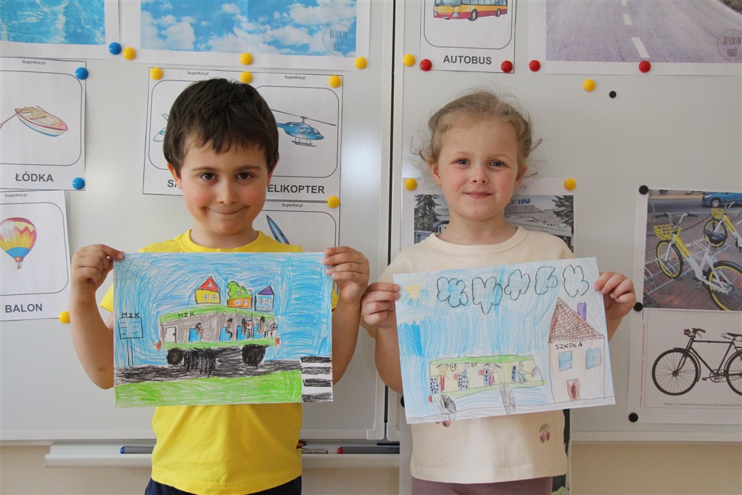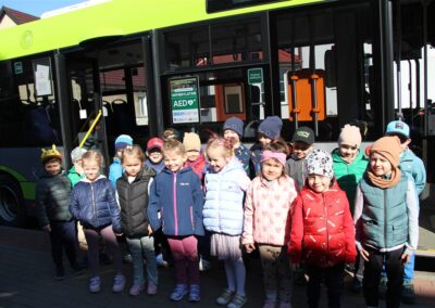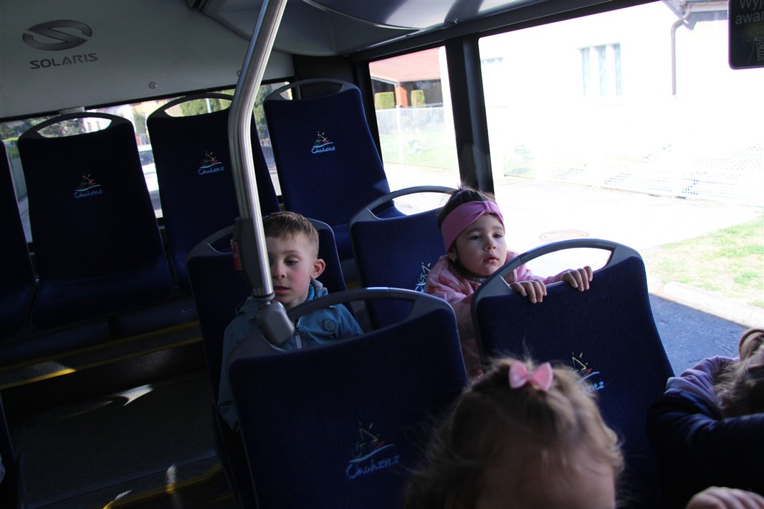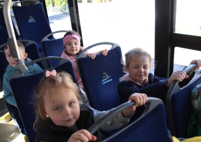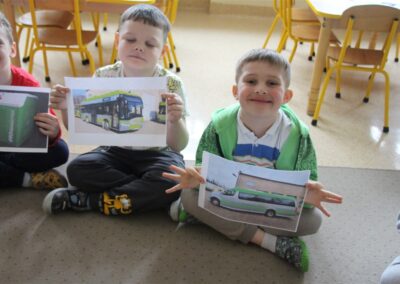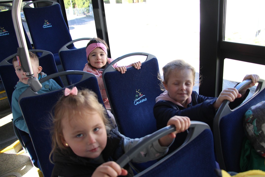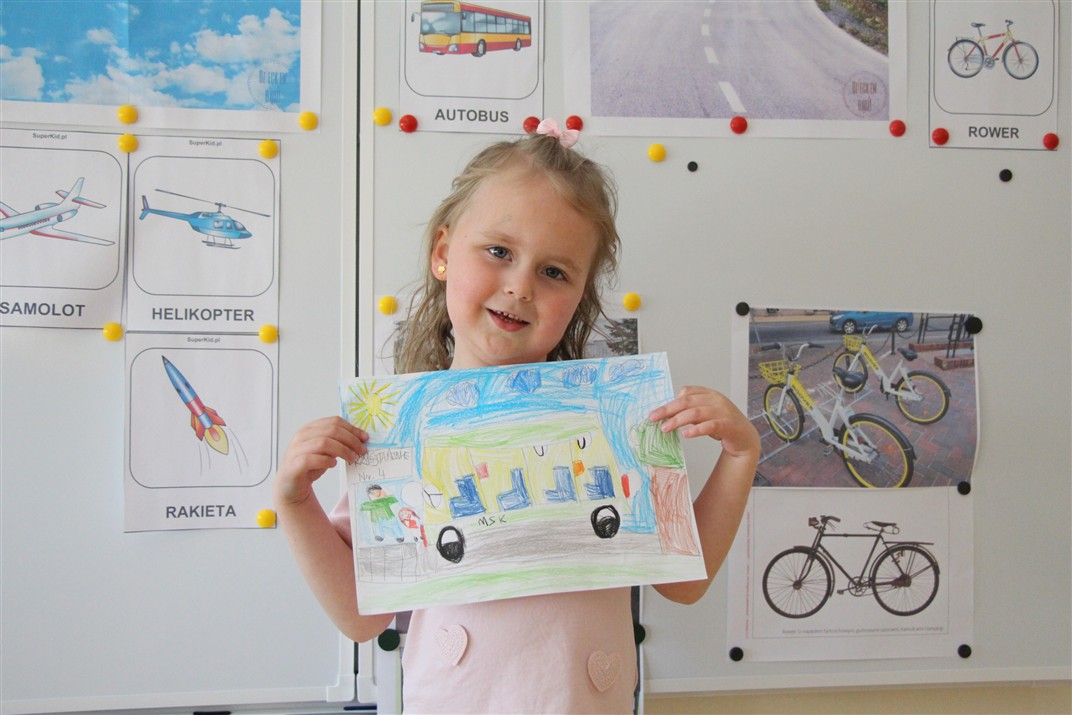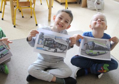 W minionym tygodniu, dzieci z grupy Motyli wzbogacały swoją wiedzę na temat różnych środków transportu lądowego, powietrznego i wodnego. Dzieci poznały różne pojazdy, zarówno do transportu prywatnego (samochody osobowe które posiadają rodzice) oraz publicznego. Dowiedzieliśmy się jak możemy poruszać się po mieście Chodzież wykorzystując rowery miejskie Chromek i autobusy MZK, w tym autobusy elektryczne. W piątek dzieci miały możliwość zobaczyć autobus, zwiedzić go oraz udały się na przejażdżkę po Chodzieży. Z tej okazji skorzystały również dzieci z pozostałych grup w przedszkolu. Była to inspiracja do wykonania pracy plastycznej na konkurs „Mobilność przyszłości w Chodzieży – autobusy i rowery w naszym mieście” organizowanym przez Miejski Zakład Komunikacji w Chodzieży.