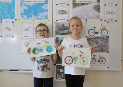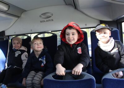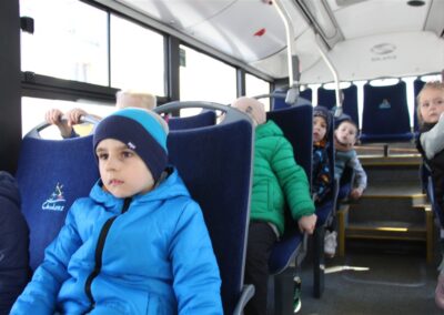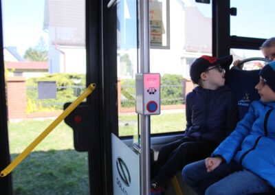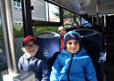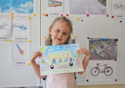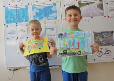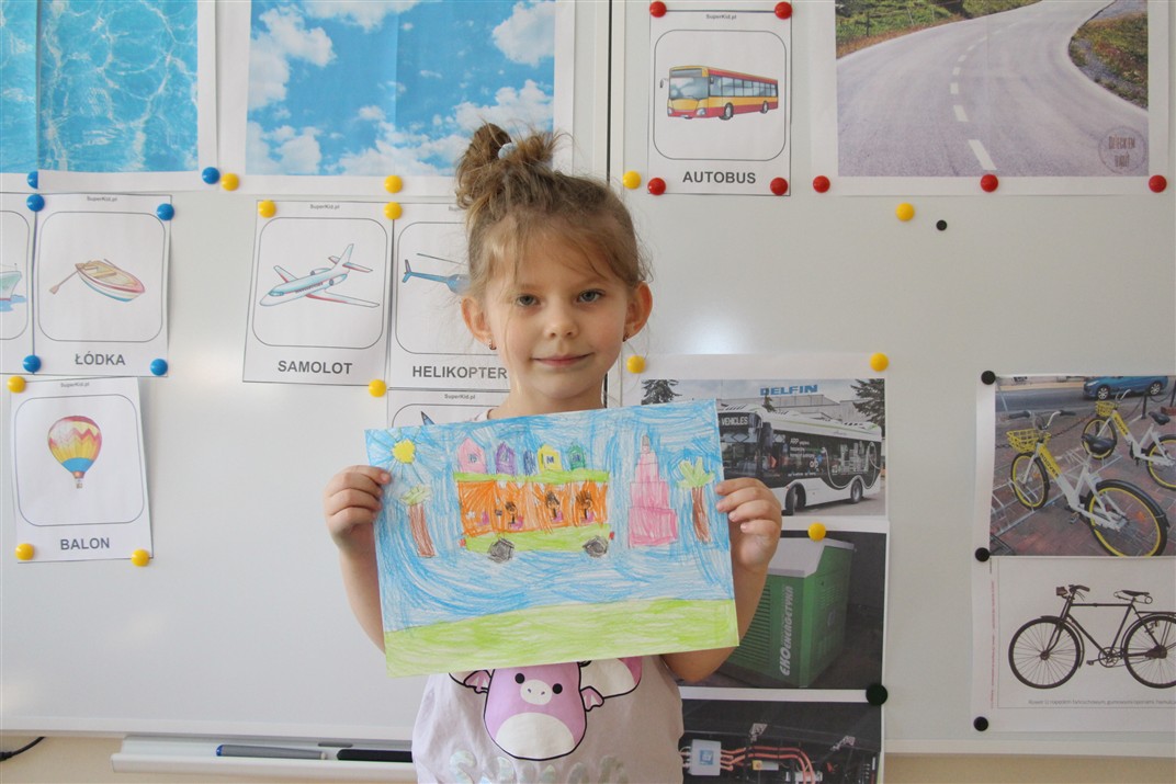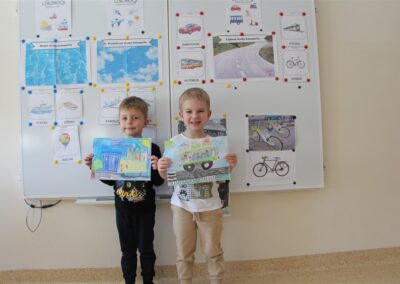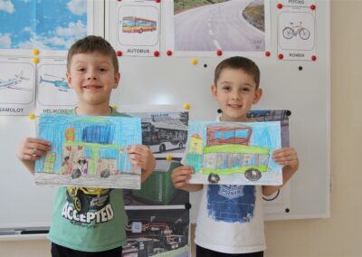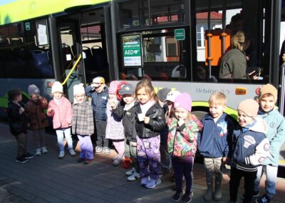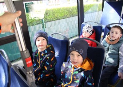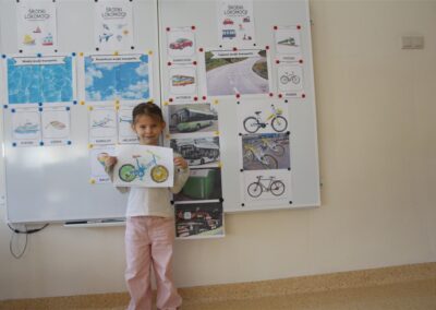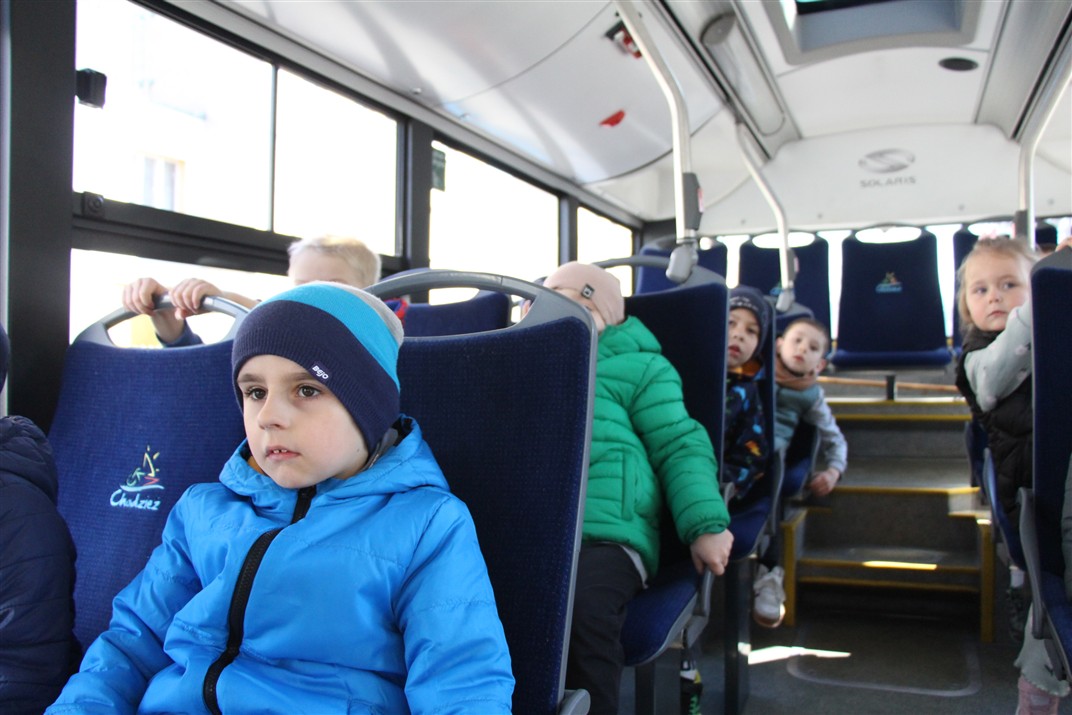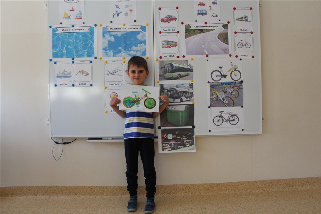 W minionym tygodniu, dzieci z grupy Motyli wzbogacały swoją wiedzę na temat różnych środków transportu lądowego, powietrznego i wodnego. Dzieci poznały różne pojazdy, zarówno do transportu prywatnego (samochody osobowe które posiadają rodzice) oraz publicznego. Dowiedzieliśmy się jak możemy poruszać się po mieście Chodzież wykorzystując rowery miejskie Chromek i autobusy MZK, w tym autobusy elektryczne. W piątek dzieci miały możliwość zobaczyć autobus, zwiedzić go oraz udały się na przejażdżkę po Chodzieży. Z tej okazji skorzystały również dzieci z pozostałych grup w przedszkolu. Była to inspiracja do wykonania pracy plastycznej na konkurs „Mobilność przyszłości w Chodzieży – autobusy i rowery w naszym mieście” organizowanym przez Miejski Zakład Komunikacji w Chodzieży.