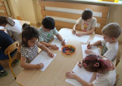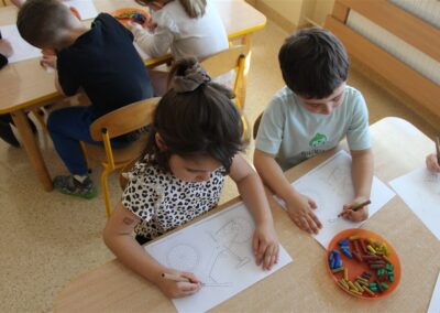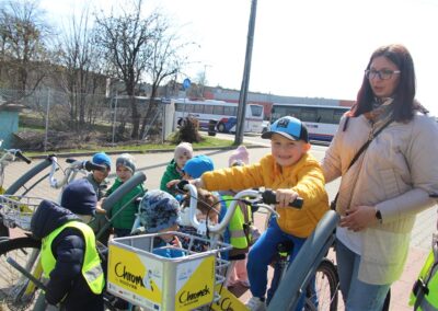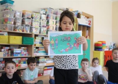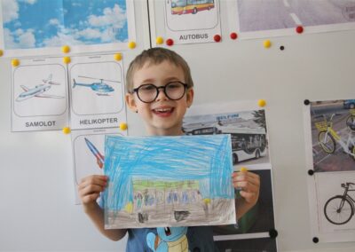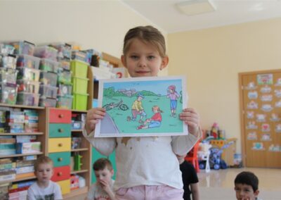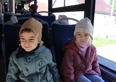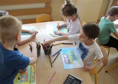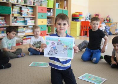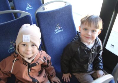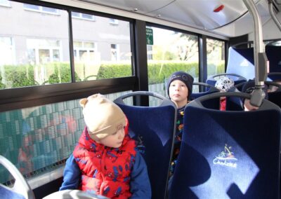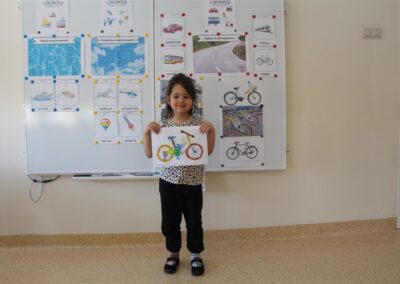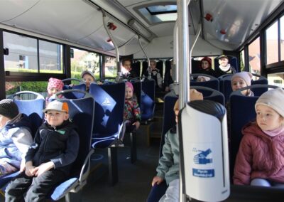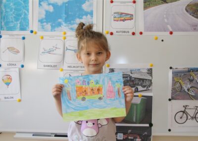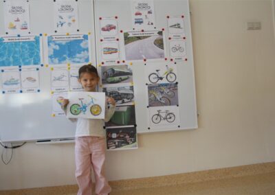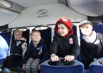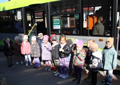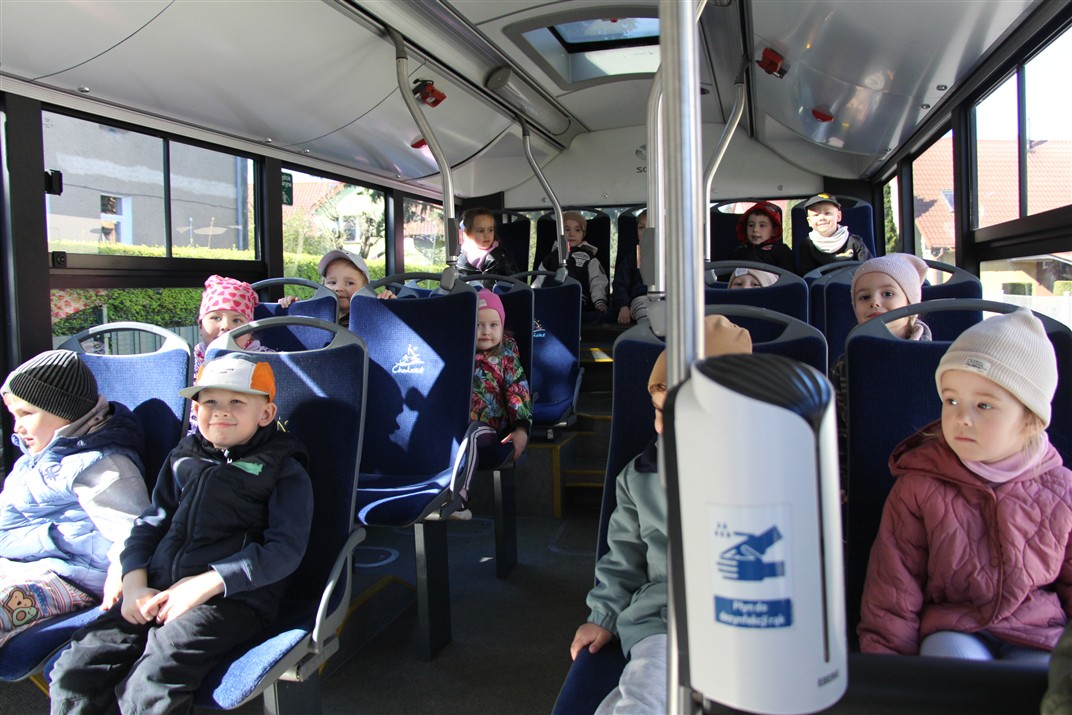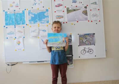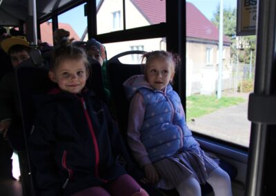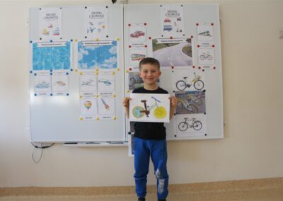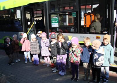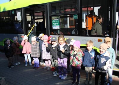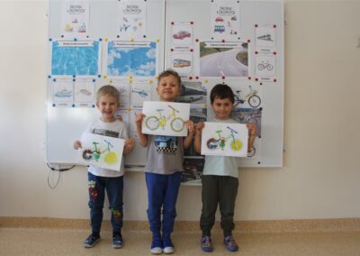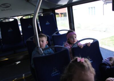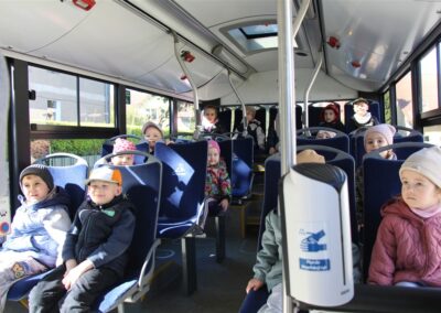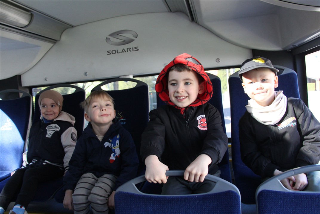 W minionym tygodniu, dzieci z grupy Motyli wzbogacały swoją wiedzę na temat różnych środków transportu lądowego, powietrznego i wodnego. Dzieci poznały różne pojazdy, zarówno do transportu prywatnego (samochody osobowe które posiadają rodzice) oraz publicznego. Dowiedzieliśmy się jak możemy poruszać się po mieście Chodzież wykorzystując rowery miejskie Chromek i autobusy MZK, w tym autobusy elektryczne. W piątek dzieci miały możliwość zobaczyć autobus, zwiedzić go oraz udały się na przejażdżkę po Chodzieży. Z tej okazji skorzystały również dzieci z pozostałych grup w przedszkolu. Była to inspiracja do wykonania pracy plastycznej na konkurs „Mobilność przyszłości w Chodzieży – autobusy i rowery w naszym mieście” organizowanym przez Miejski Zakład Komunikacji w Chodzieży.