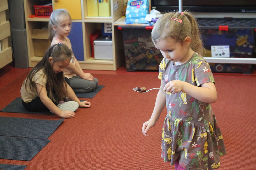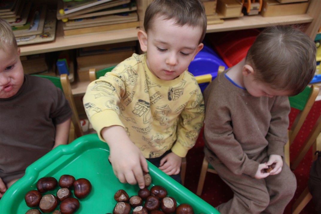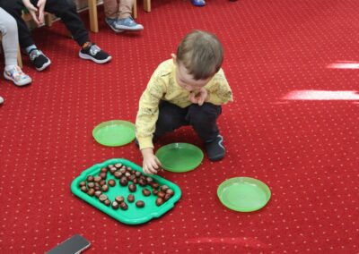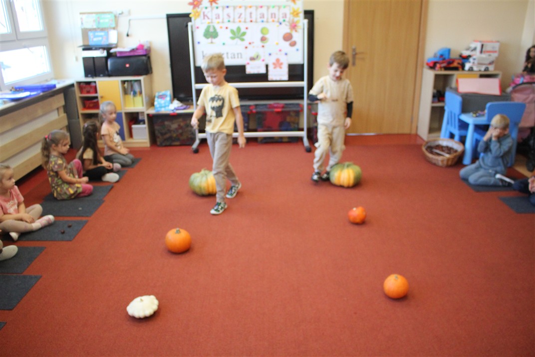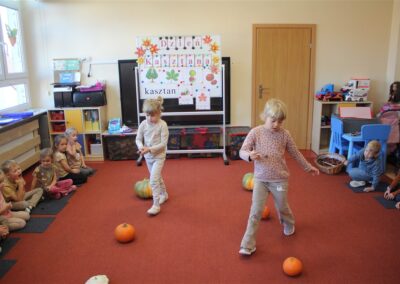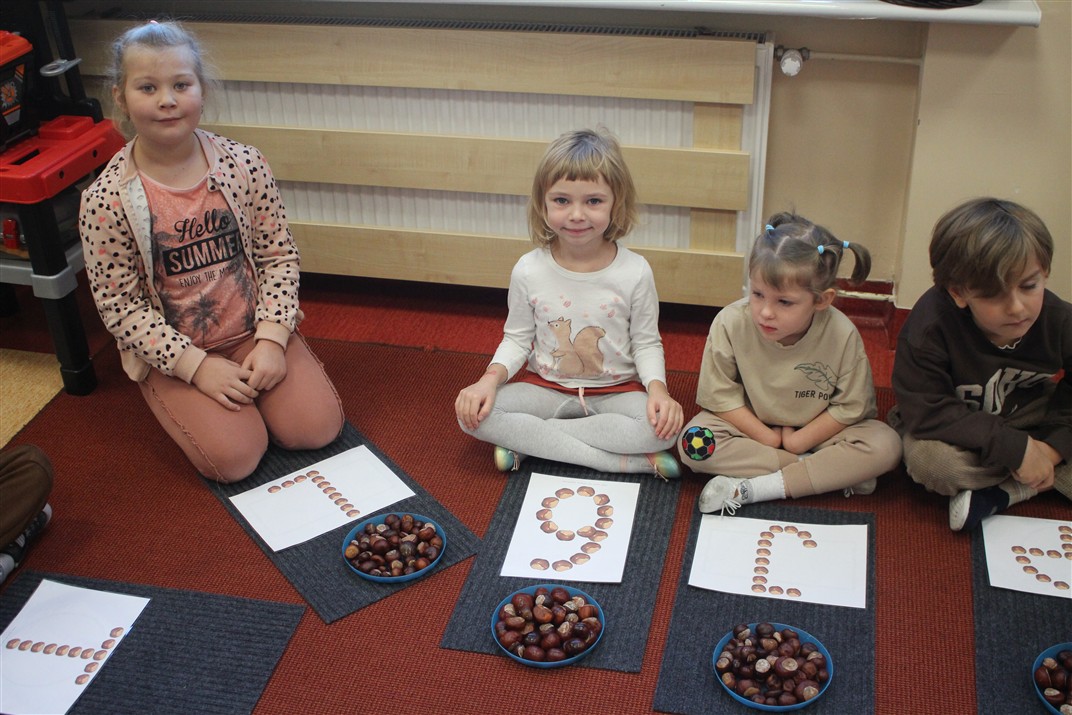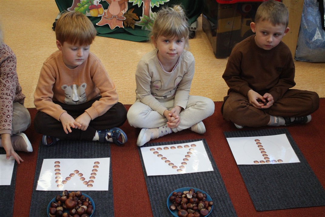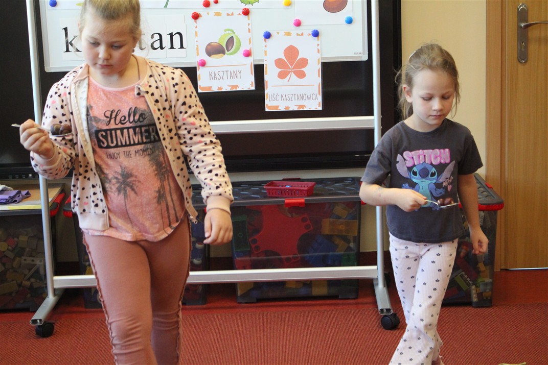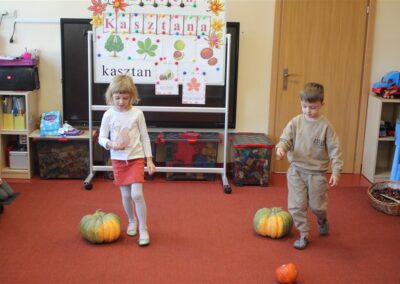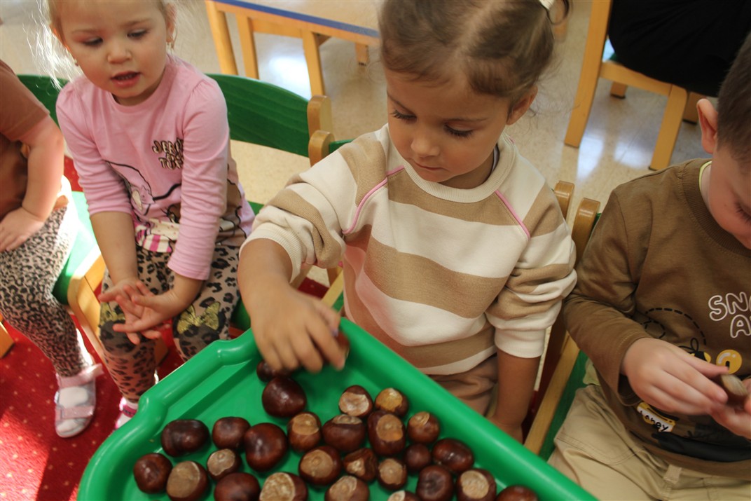 W naszym przedszkolu w piątek 3 października dzieci z grupy Myszek i Żabek obchodziły wyjątkowe święto – Dzień Kasztana. Już od rana w salach pojawiły się dekoracje w kolorach jesieni: brązowe, złote i pomarańczowe liście, a także kosze pełne kasztanów. Dzieci przyszły ubrane w odcieniach brązu, dzięki czemu wyglądały jak małe kasztanki. Świętowanie rozpoczęliśmy od wspólnych rozmów o tym, skąd biorą się kasztany i jak wyglądają drzewa kasztanowca. Następnie dzieci mogły dotykać, przesypywać i układać kasztany – ćwicząc spostrzegawczość oraz zdolności manualne. Nie zabrakło także zabaw ruchowych, takich jak: przenoszenie kasztanów łyżeczką na czas, turlanie kasztanków po wyznaczonej trasie. Podczas zajęć dzieci dowiedziały się także, że kasztany to nie tylko piękne dary jesieni, ale i pomoc w zabawach, ćwiczeniach oraz tworzeniu dekoracji. Dzień Kasztana był pełen uśmiechów, radości i jesiennej atmosfery, a kasztany na pewno jeszcze długo będą towarzyszyć dzieciom w zabawach.