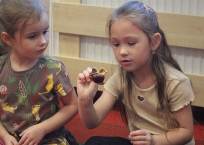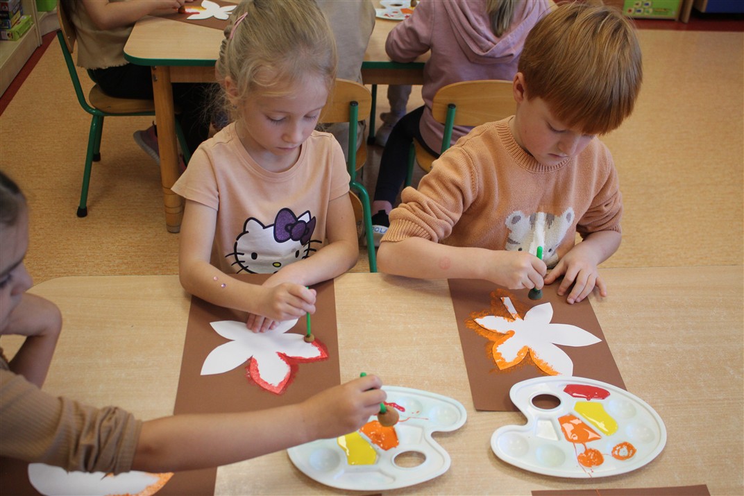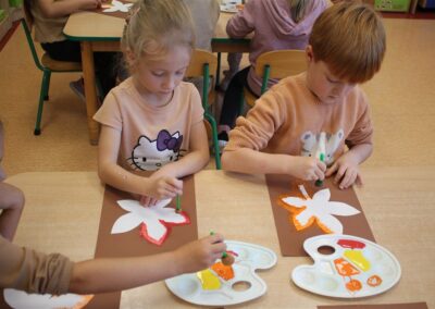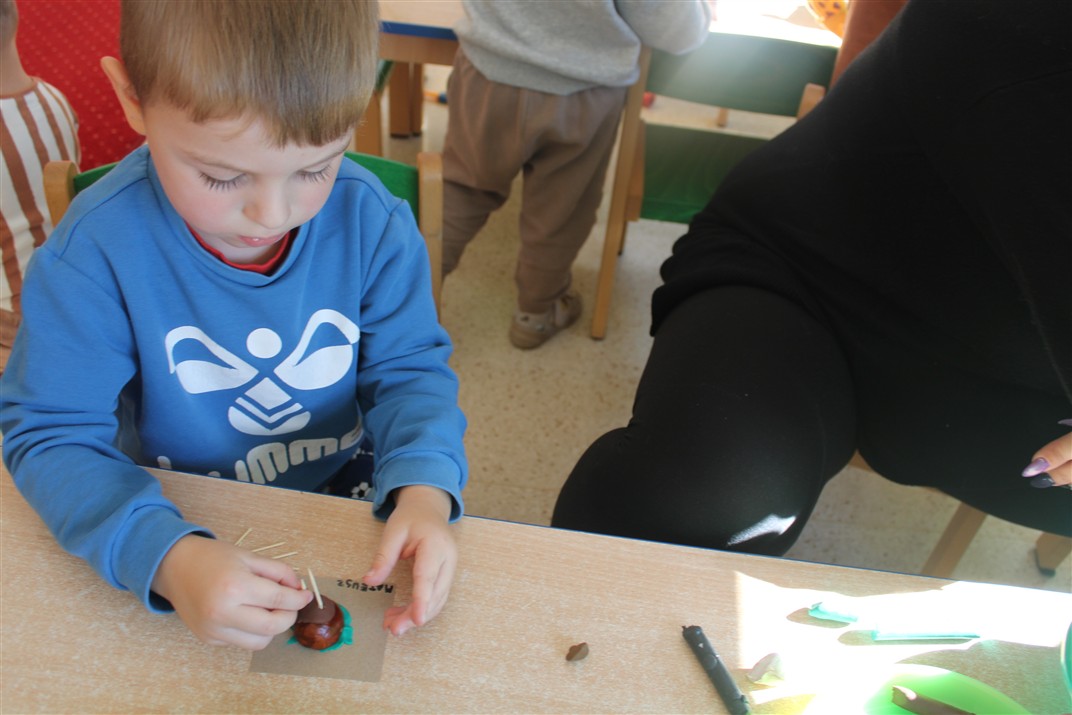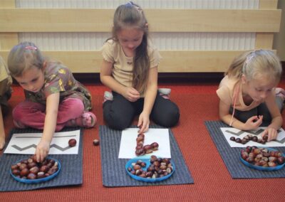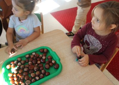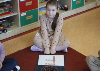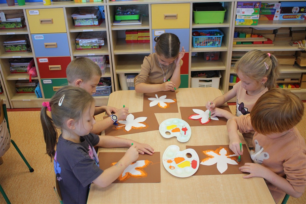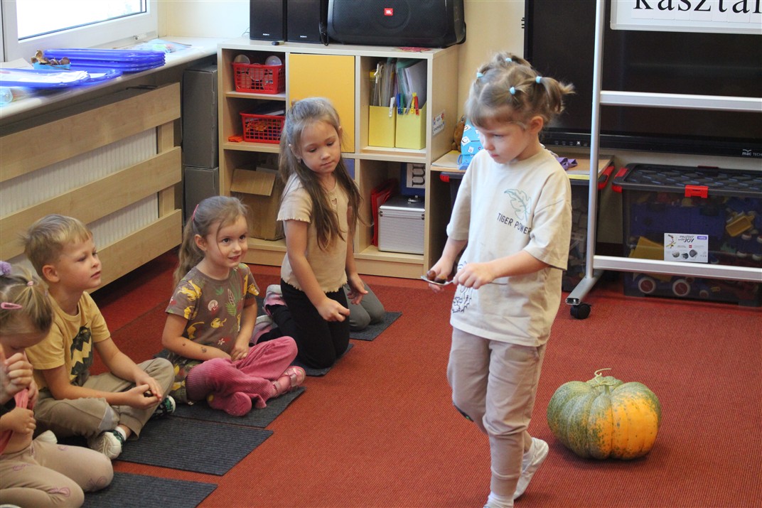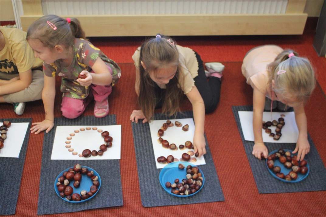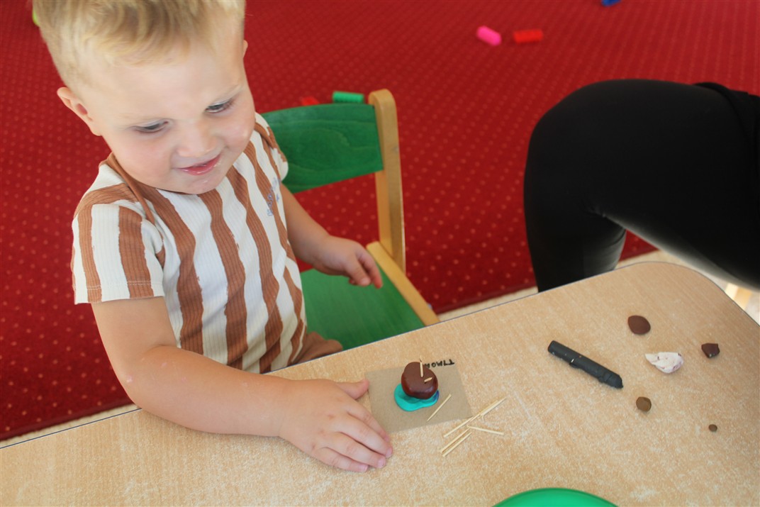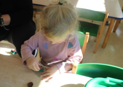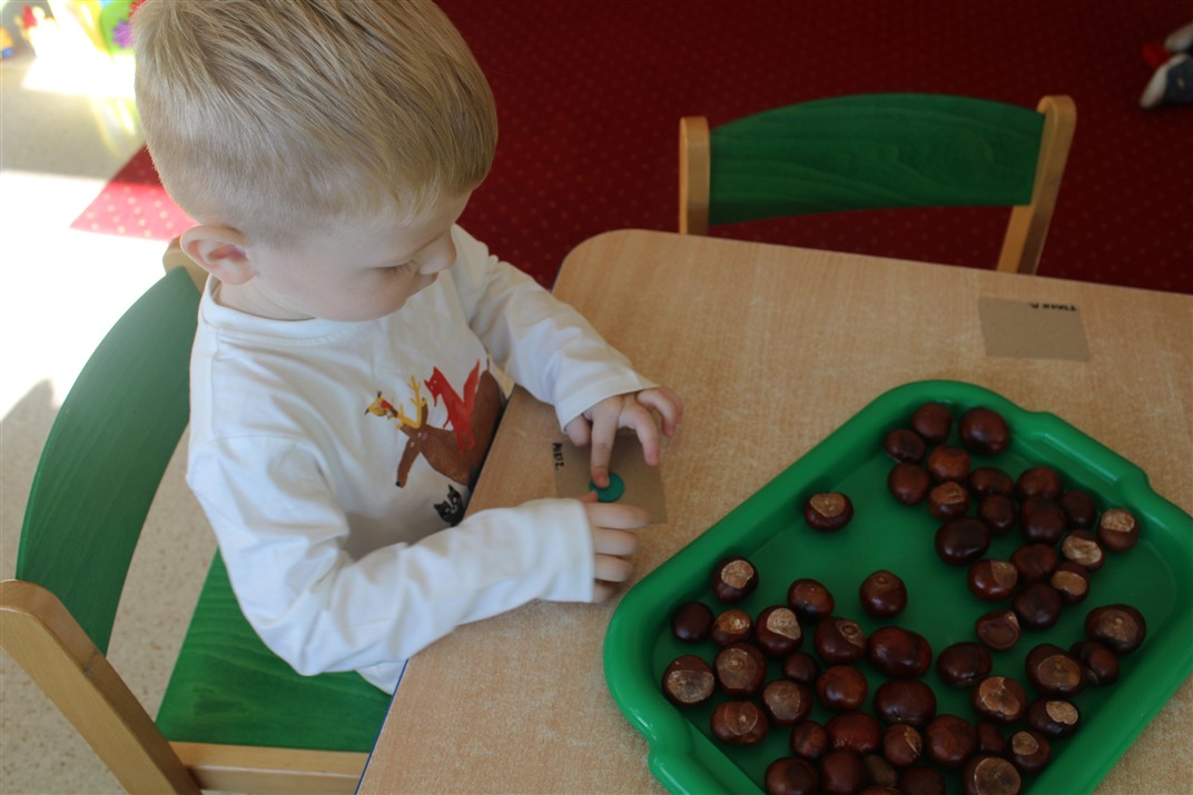 W naszym przedszkolu w piątek 3 października dzieci z grupy Myszek i Żabek obchodziły wyjątkowe święto – Dzień Kasztana. Już od rana w salach pojawiły się dekoracje w kolorach jesieni: brązowe, złote i pomarańczowe liście, a także kosze pełne kasztanów. Dzieci przyszły ubrane w odcieniach brązu, dzięki czemu wyglądały jak małe kasztanki. Świętowanie rozpoczęliśmy od wspólnych rozmów o tym, skąd biorą się kasztany i jak wyglądają drzewa kasztanowca. Następnie dzieci mogły dotykać, przesypywać i układać kasztany – ćwicząc spostrzegawczość oraz zdolności manualne. Nie zabrakło także zabaw ruchowych, takich jak: przenoszenie kasztanów łyżeczką na czas, turlanie kasztanków po wyznaczonej trasie. Podczas zajęć dzieci dowiedziały się także, że kasztany to nie tylko piękne dary jesieni, ale i pomoc w zabawach, ćwiczeniach oraz tworzeniu dekoracji. Dzień Kasztana był pełen uśmiechów, radości i jesiennej atmosfery, a kasztany na pewno jeszcze długo będą towarzyszyć dzieciom w zabawach.