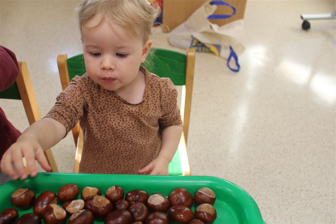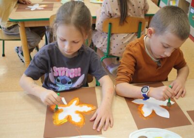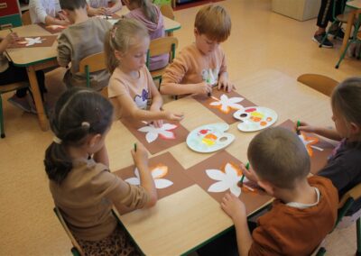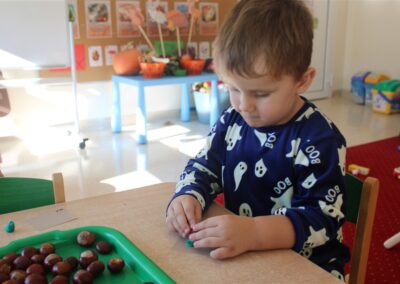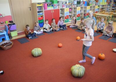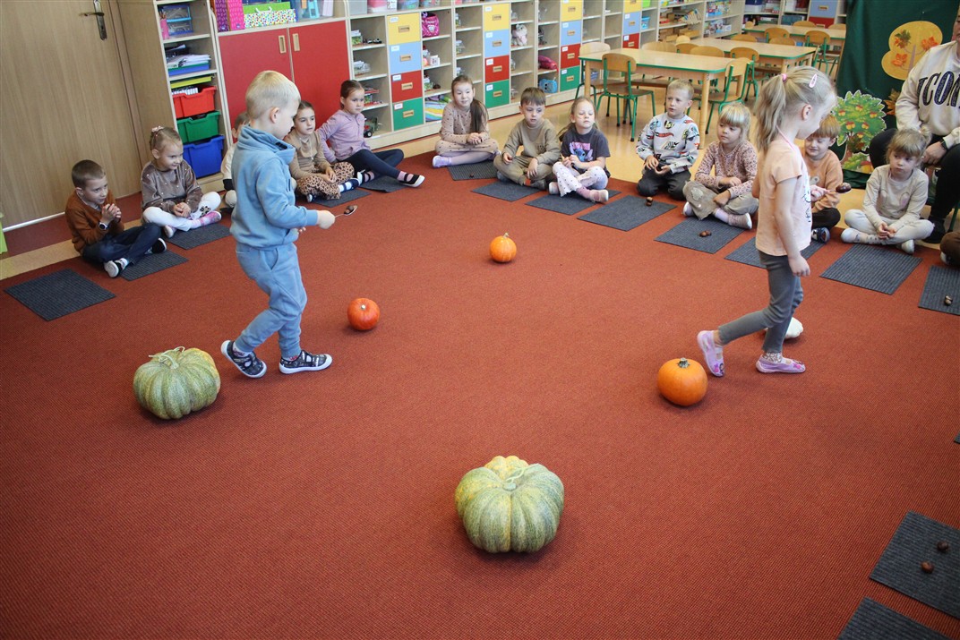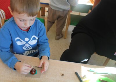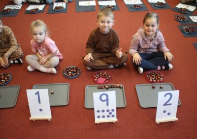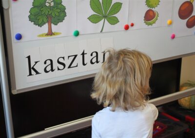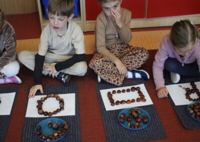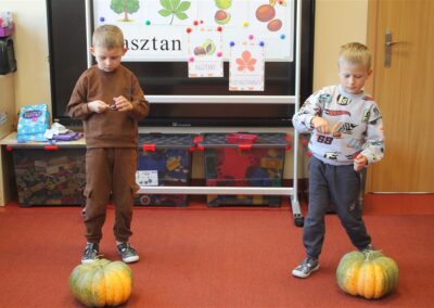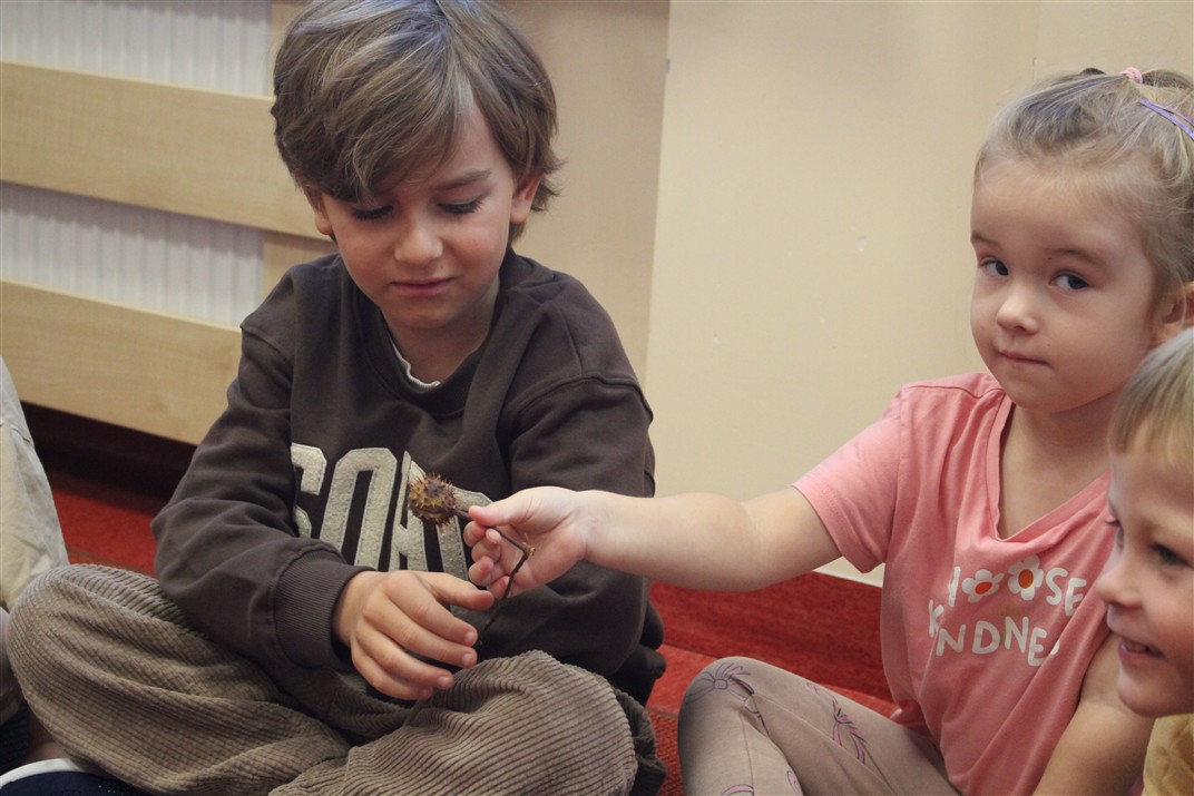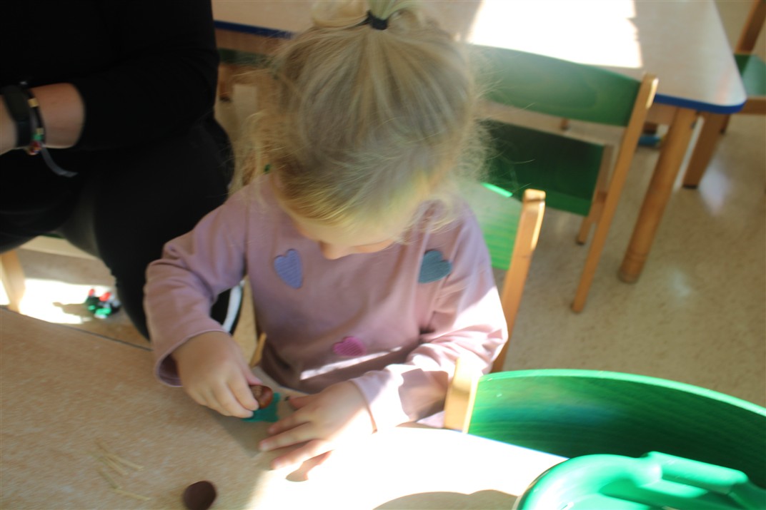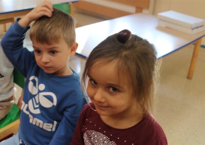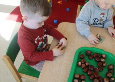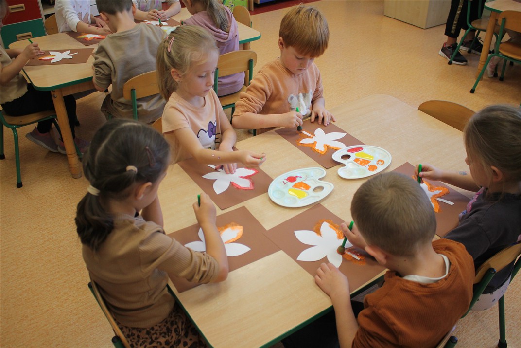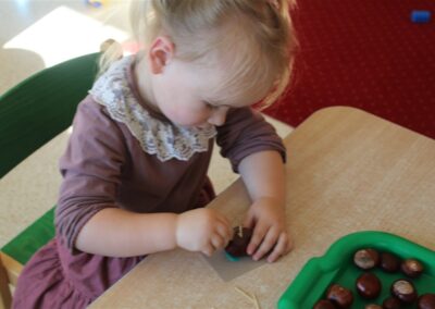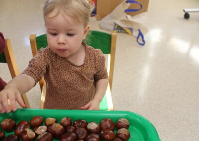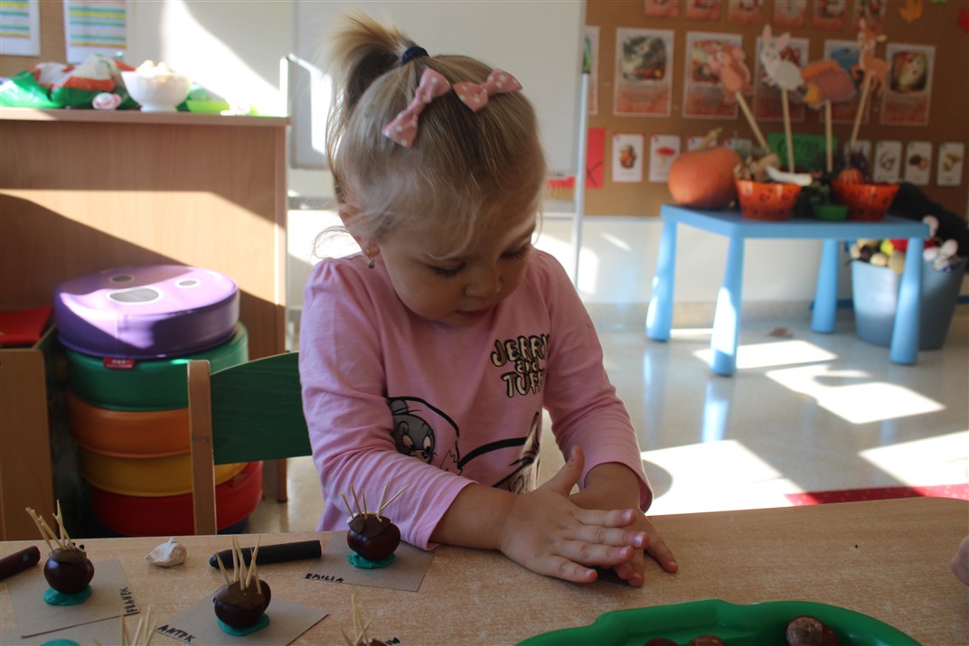 W naszym przedszkolu w piątek 3 października dzieci z grupy Myszek i Żabek obchodziły wyjątkowe święto – Dzień Kasztana. Już od rana w salach pojawiły się dekoracje w kolorach jesieni: brązowe, złote i pomarańczowe liście, a także kosze pełne kasztanów. Dzieci przyszły ubrane w odcieniach brązu, dzięki czemu wyglądały jak małe kasztanki. Świętowanie rozpoczęliśmy od wspólnych rozmów o tym, skąd biorą się kasztany i jak wyglądają drzewa kasztanowca. Następnie dzieci mogły dotykać, przesypywać i układać kasztany – ćwicząc spostrzegawczość oraz zdolności manualne. Nie zabrakło także zabaw ruchowych, takich jak: przenoszenie kasztanów łyżeczką na czas, turlanie kasztanków po wyznaczonej trasie. Podczas zajęć dzieci dowiedziały się także, że kasztany to nie tylko piękne dary jesieni, ale i pomoc w zabawach, ćwiczeniach oraz tworzeniu dekoracji. Dzień Kasztana był pełen uśmiechów, radości i jesiennej atmosfery, a kasztany na pewno jeszcze długo będą towarzyszyć dzieciom w zabawach.