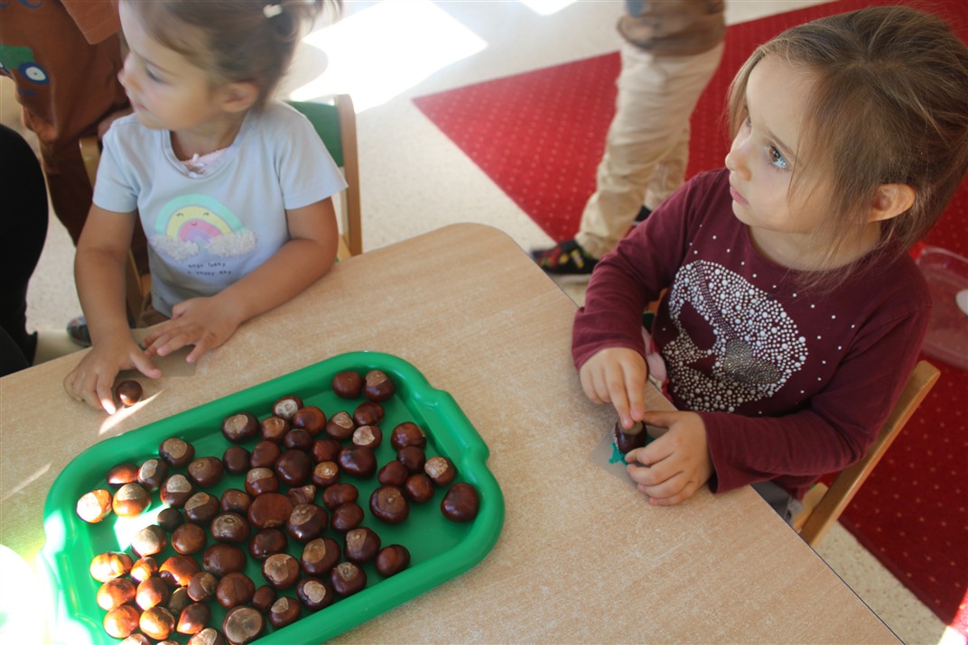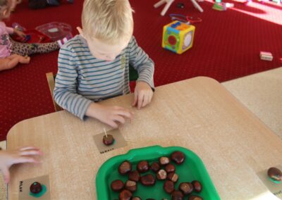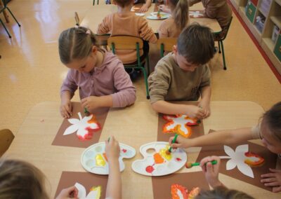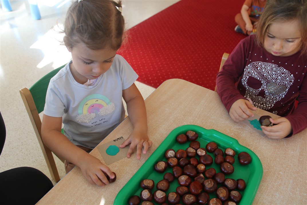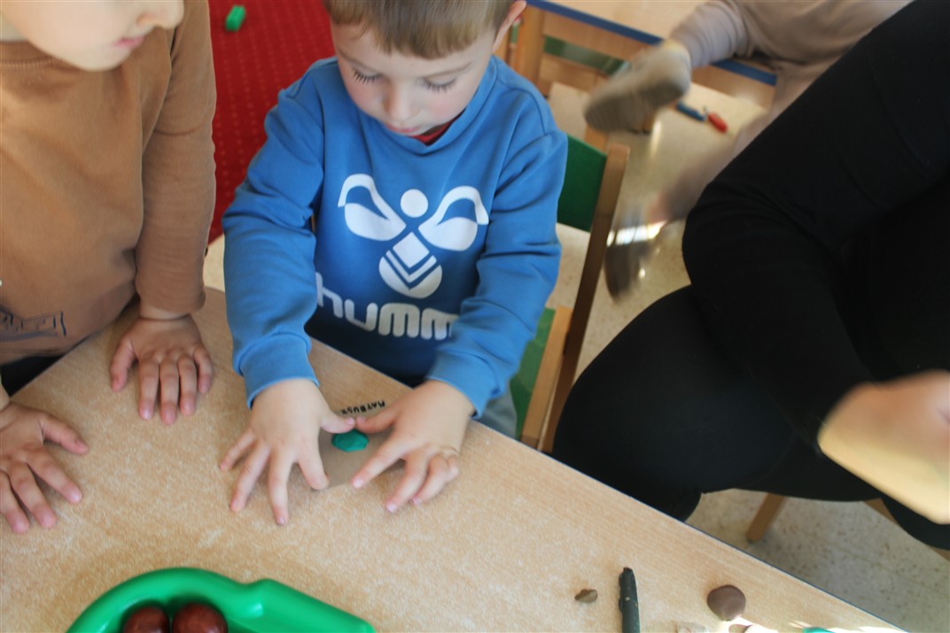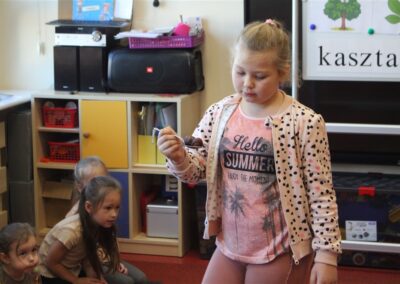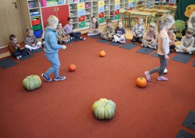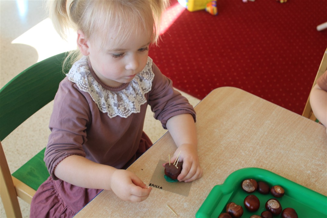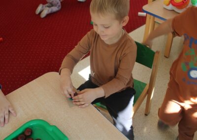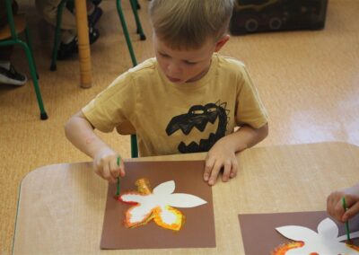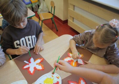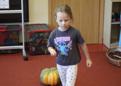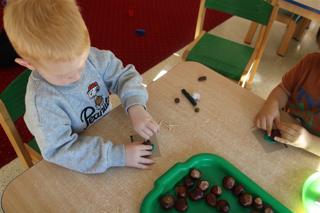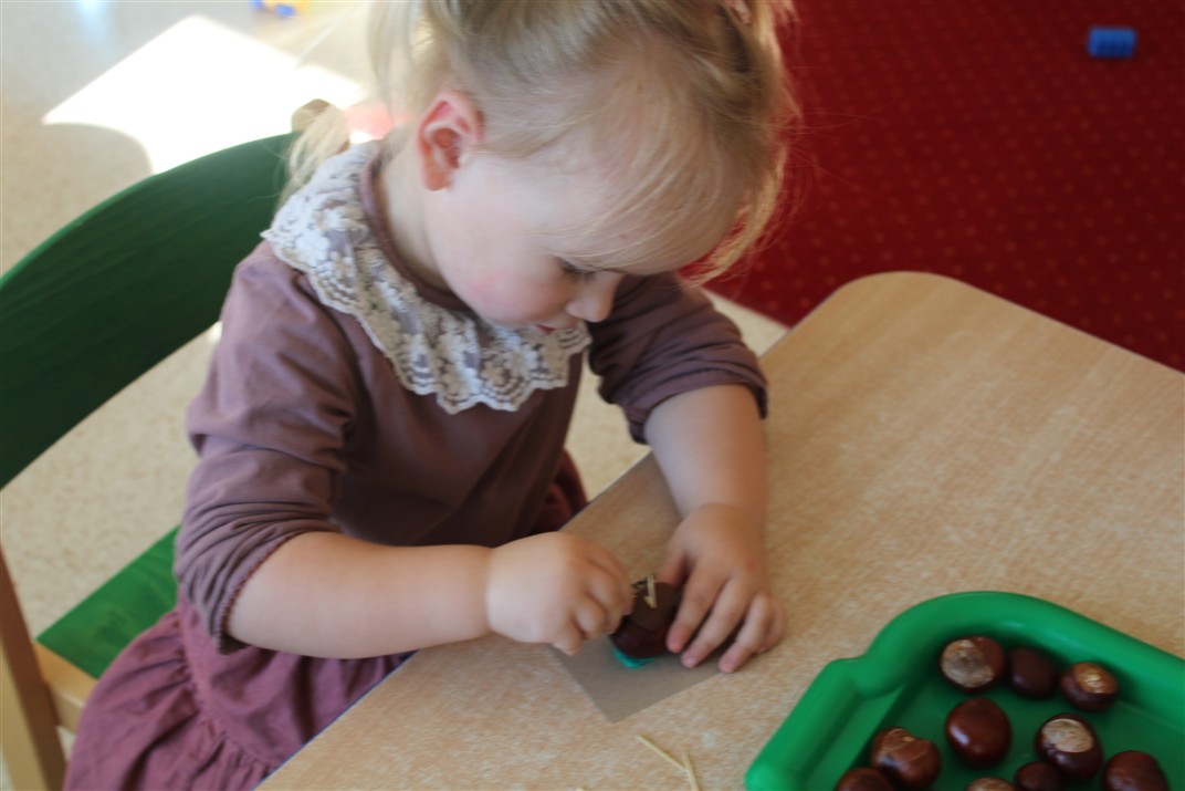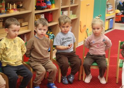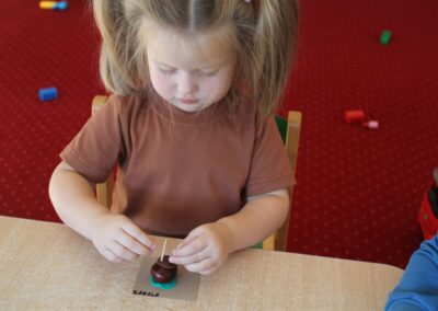 W naszym przedszkolu w piątek 3 października dzieci z grupy Myszek i Żabek obchodziły wyjątkowe święto – Dzień Kasztana. Już od rana w salach pojawiły się dekoracje w kolorach jesieni: brązowe, złote i pomarańczowe liście, a także kosze pełne kasztanów. Dzieci przyszły ubrane w odcieniach brązu, dzięki czemu wyglądały jak małe kasztanki. Świętowanie rozpoczęliśmy od wspólnych rozmów o tym, skąd biorą się kasztany i jak wyglądają drzewa kasztanowca. Następnie dzieci mogły dotykać, przesypywać i układać kasztany – ćwicząc spostrzegawczość oraz zdolności manualne. Nie zabrakło także zabaw ruchowych, takich jak: przenoszenie kasztanów łyżeczką na czas, turlanie kasztanków po wyznaczonej trasie. Podczas zajęć dzieci dowiedziały się także, że kasztany to nie tylko piękne dary jesieni, ale i pomoc w zabawach, ćwiczeniach oraz tworzeniu dekoracji. Dzień Kasztana był pełen uśmiechów, radości i jesiennej atmosfery, a kasztany na pewno jeszcze długo będą towarzyszyć dzieciom w zabawach.