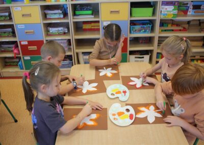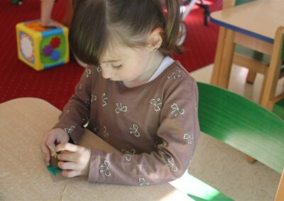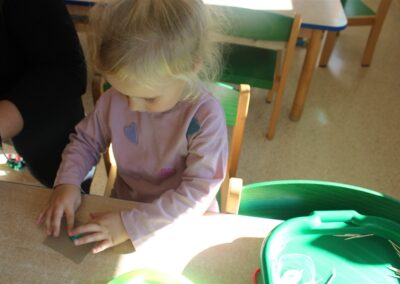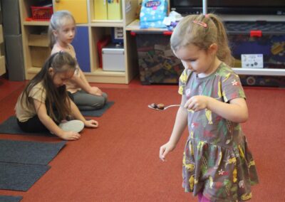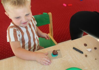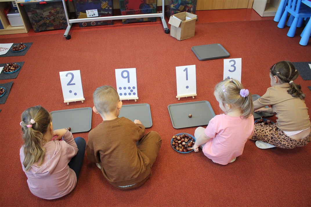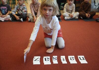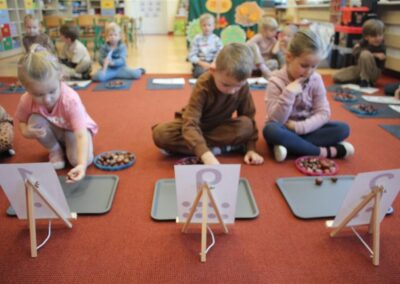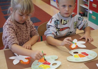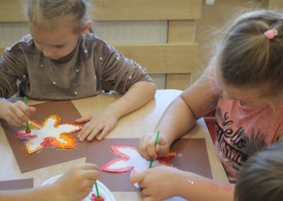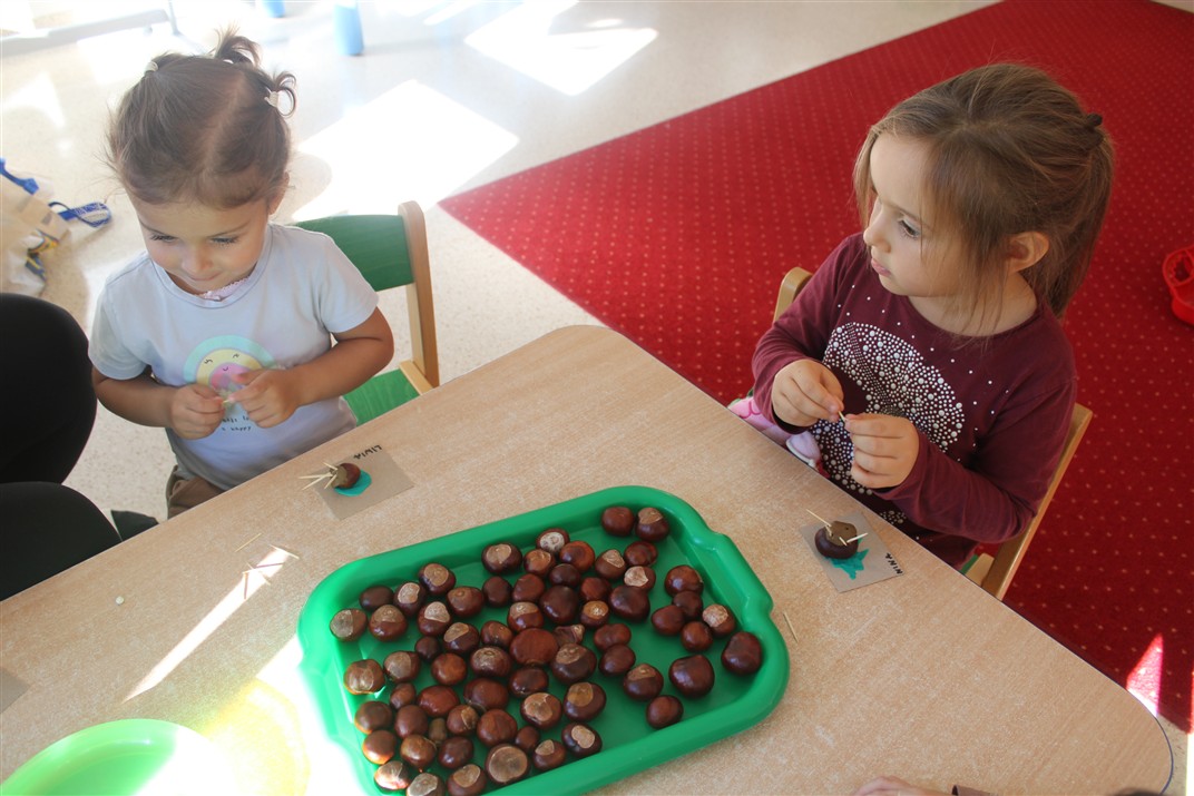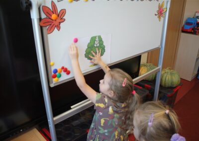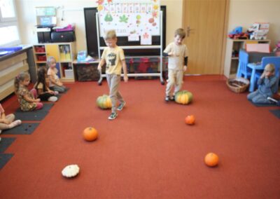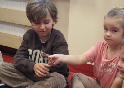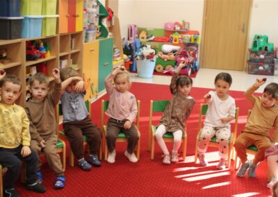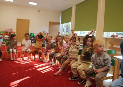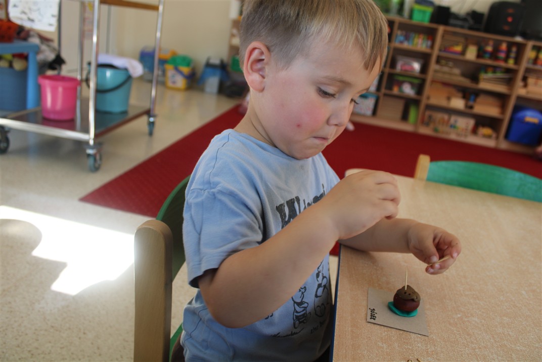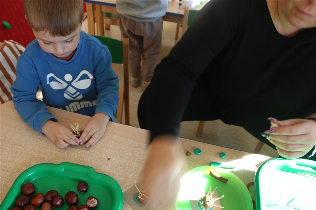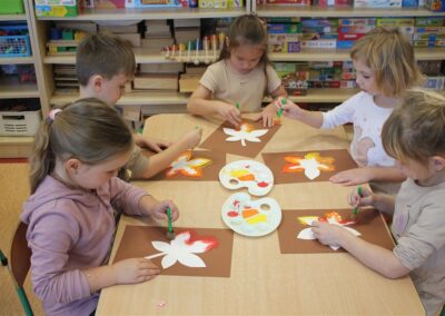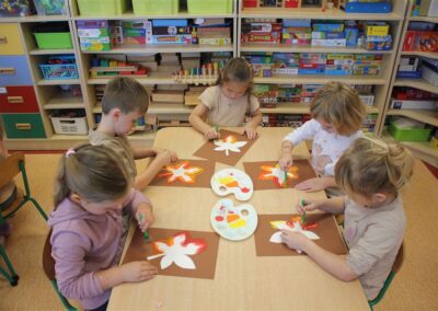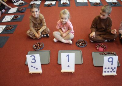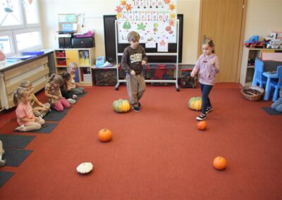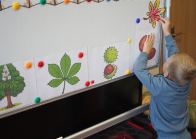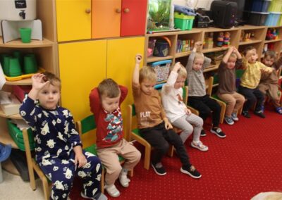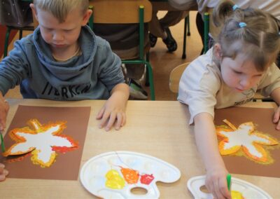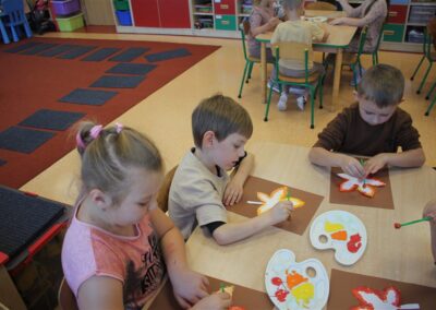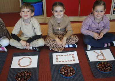 W naszym przedszkolu w piątek 3 października dzieci z grupy Myszek i Żabek obchodziły wyjątkowe święto – Dzień Kasztana. Już od rana w salach pojawiły się dekoracje w kolorach jesieni: brązowe, złote i pomarańczowe liście, a także kosze pełne kasztanów. Dzieci przyszły ubrane w odcieniach brązu, dzięki czemu wyglądały jak małe kasztanki. Świętowanie rozpoczęliśmy od wspólnych rozmów o tym, skąd biorą się kasztany i jak wyglądają drzewa kasztanowca. Następnie dzieci mogły dotykać, przesypywać i układać kasztany – ćwicząc spostrzegawczość oraz zdolności manualne. Nie zabrakło także zabaw ruchowych, takich jak: przenoszenie kasztanów łyżeczką na czas, turlanie kasztanków po wyznaczonej trasie. Podczas zajęć dzieci dowiedziały się także, że kasztany to nie tylko piękne dary jesieni, ale i pomoc w zabawach, ćwiczeniach oraz tworzeniu dekoracji. Dzień Kasztana był pełen uśmiechów, radości i jesiennej atmosfery, a kasztany na pewno jeszcze długo będą towarzyszyć dzieciom w zabawach.