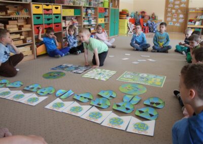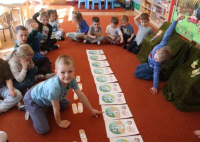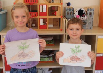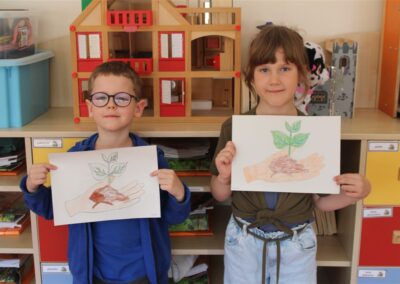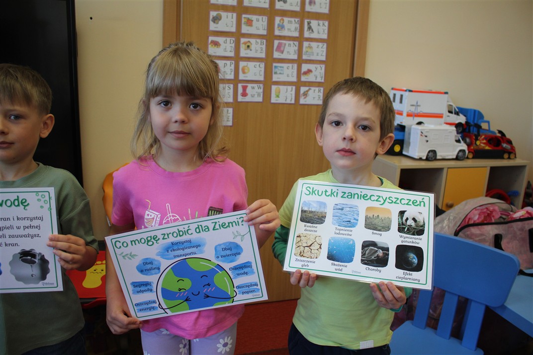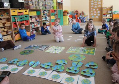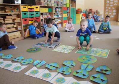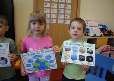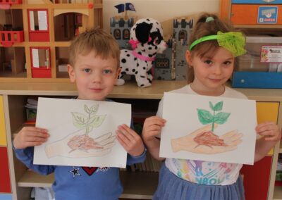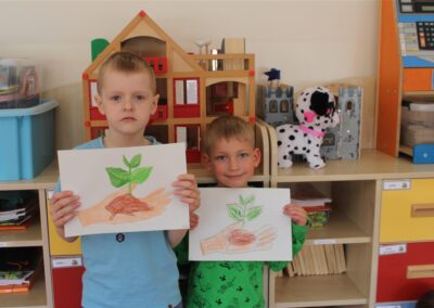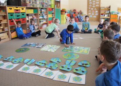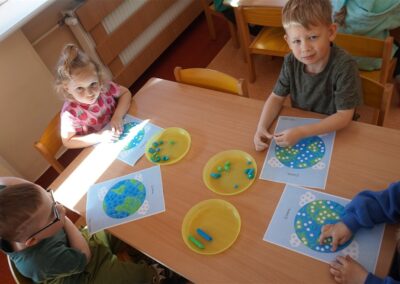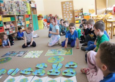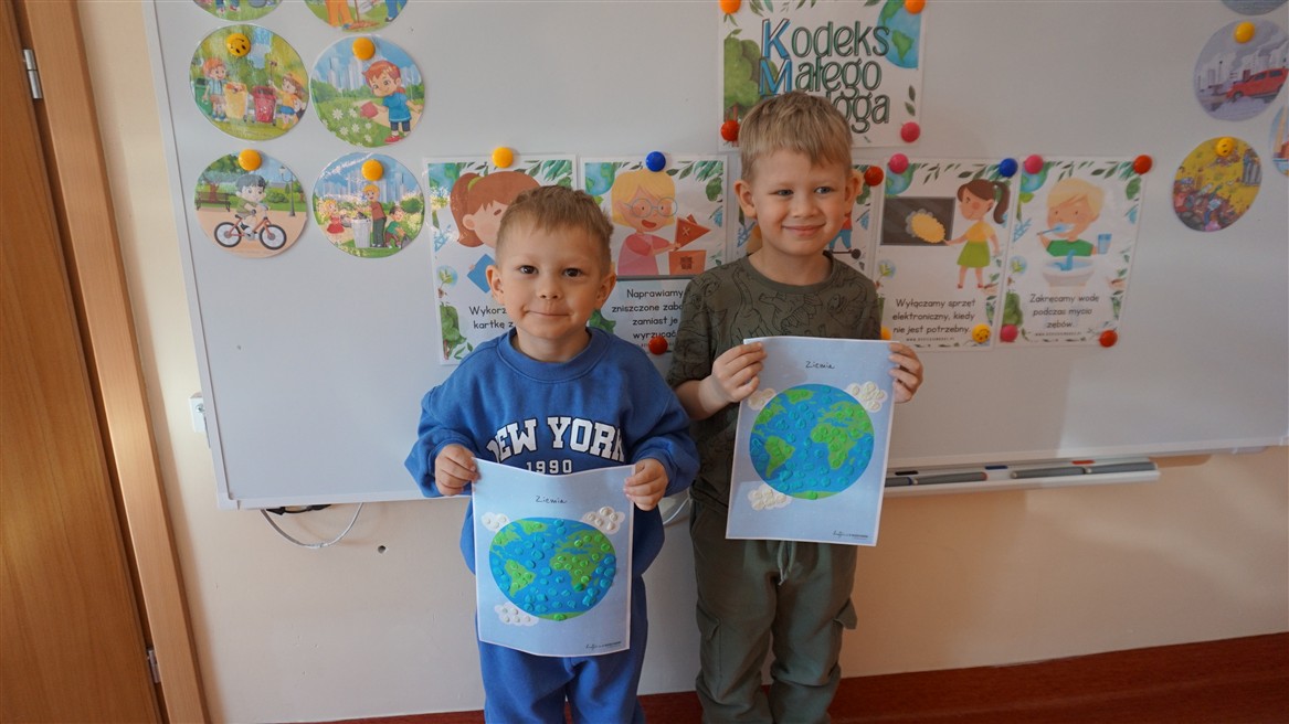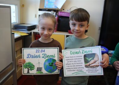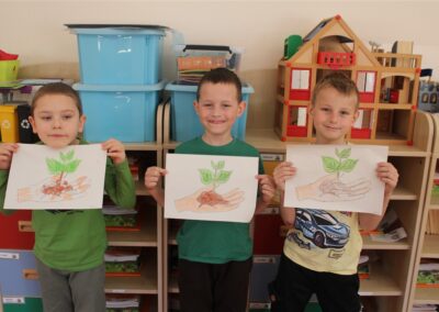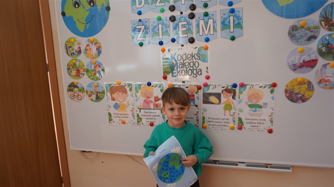 W naszym przedszkolu 21oraz 22 kwietnia obchodziliśmy wyjątkowy Dzień Ziemi, podczas którego wszystkie grupy aktywnie włączyły się w działania na rzecz naszej planety. Dzieci uczestniczyły w zajęciach edukacyjnych, podczas których dowiedziały się, jak dbać o środowisko, czym jest recykling oraz dlaczego warto segregować odpady. Przedszkolaki brały udział w zabawach ruchowych, pracach plastycznych. Dużym zainteresowaniem cieszyły się zajęcia z wykorzystaniem materiałów wtórnych, podczas których dzieci tworzyły ciekawe i kreatywne prace. To był dzień pełen radości, nauki i wspólnego działania. Dzieci pokazały, że nawet najmłodsi mogą dbać o Ziemię i być małymi ekologami.