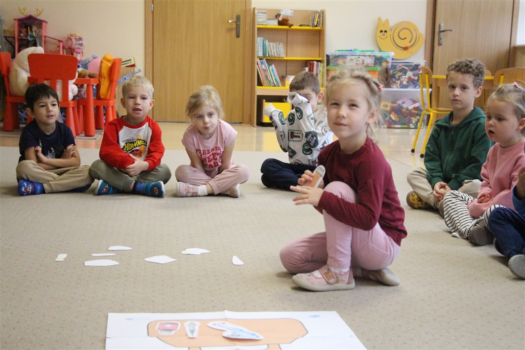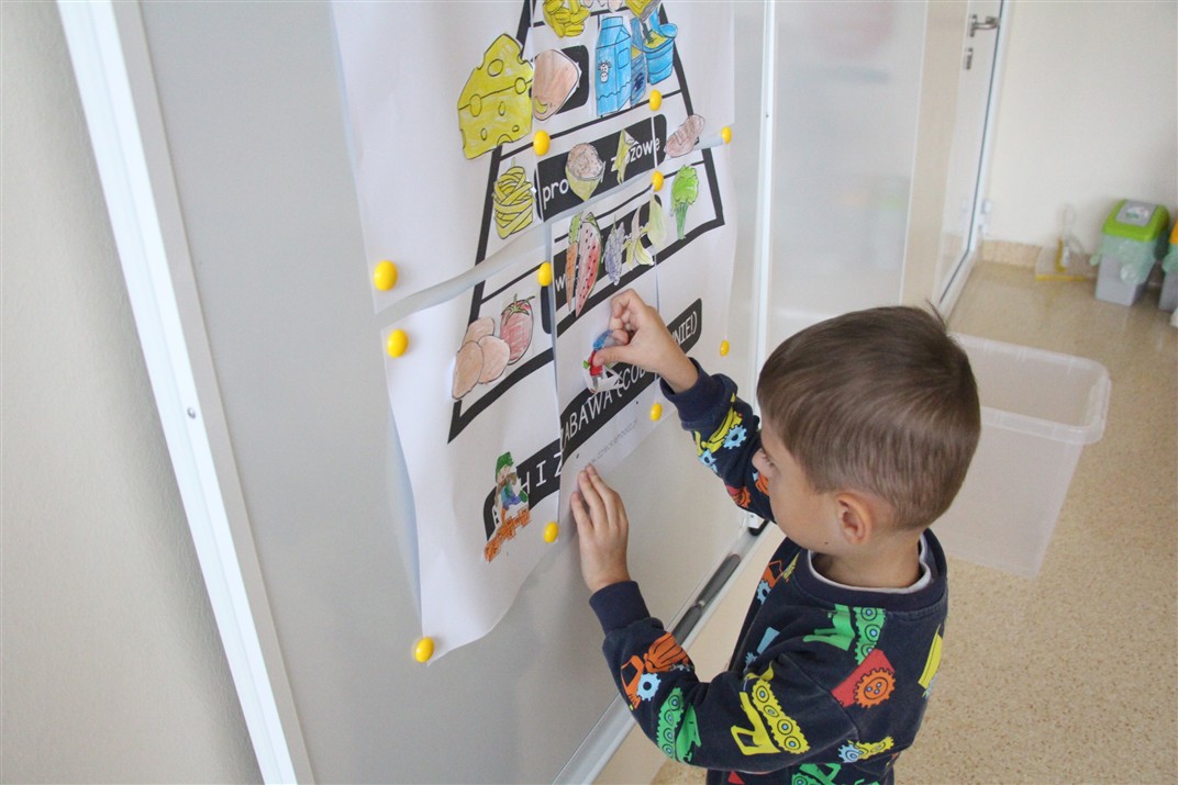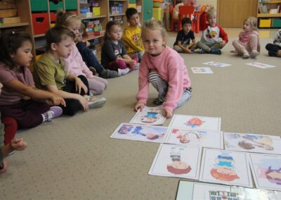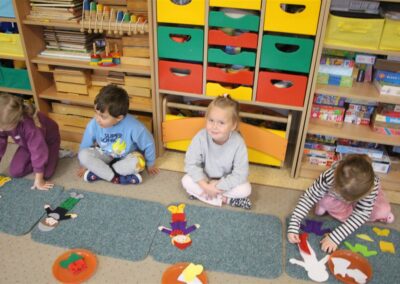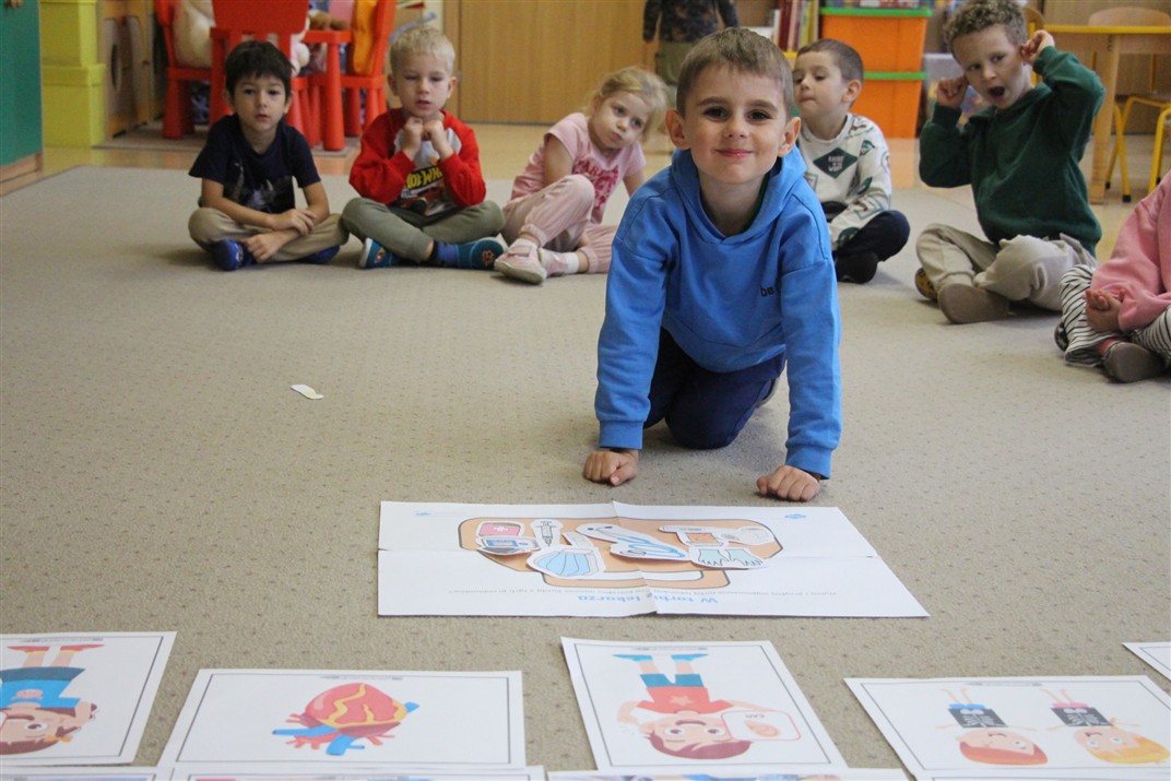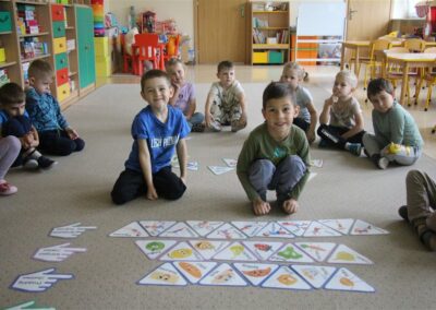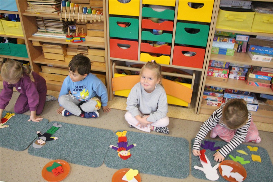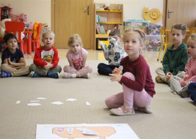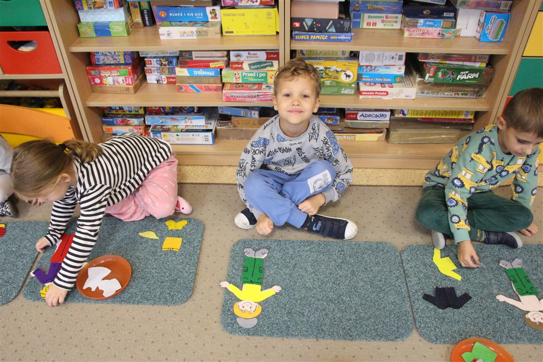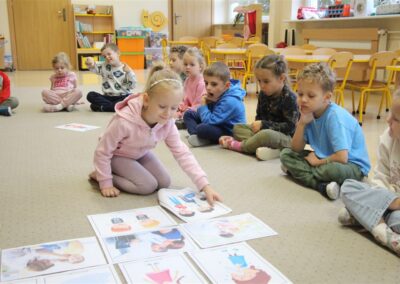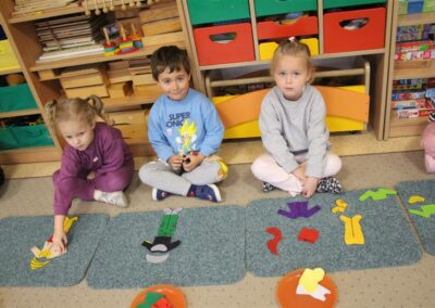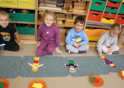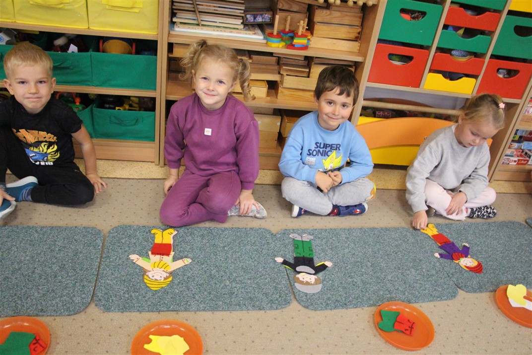 W minionym tygodniu 13-17 października dzieci z grupy Motyli wzbogacały swoją wiedzę na temat zdrowego stylu życia i dbania o zdrowie jesienią. Dzieci poznały piramidę zdrowego żywienia, poznały zawód lekarza oraz dowiedziały się jak ubierać się stosownie do pory roku i pogody. Podczas zabaw rozwijaliśmy umiejętności językowe, matematyczne, motorykę małą, nie zabrakło zabaw ruchowych.