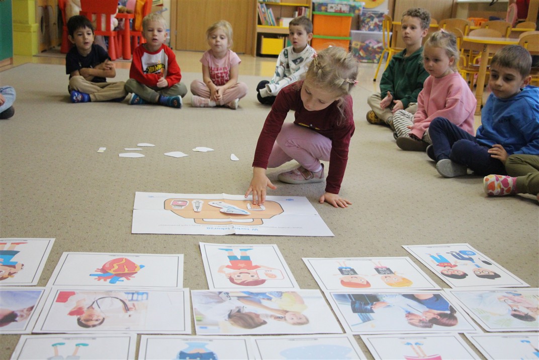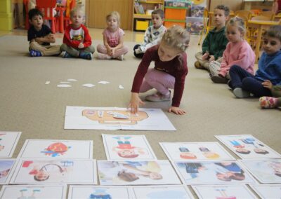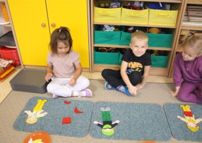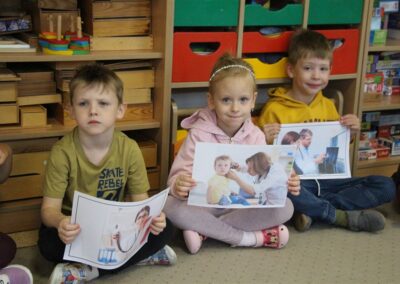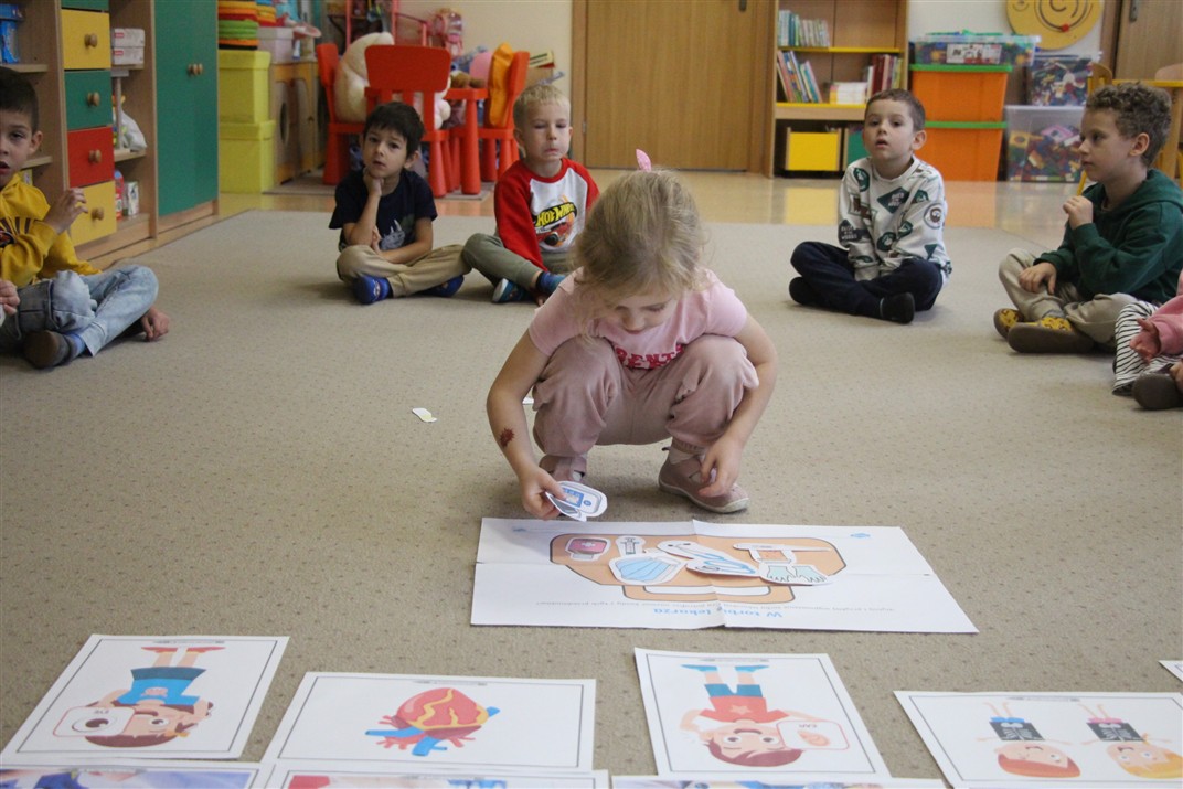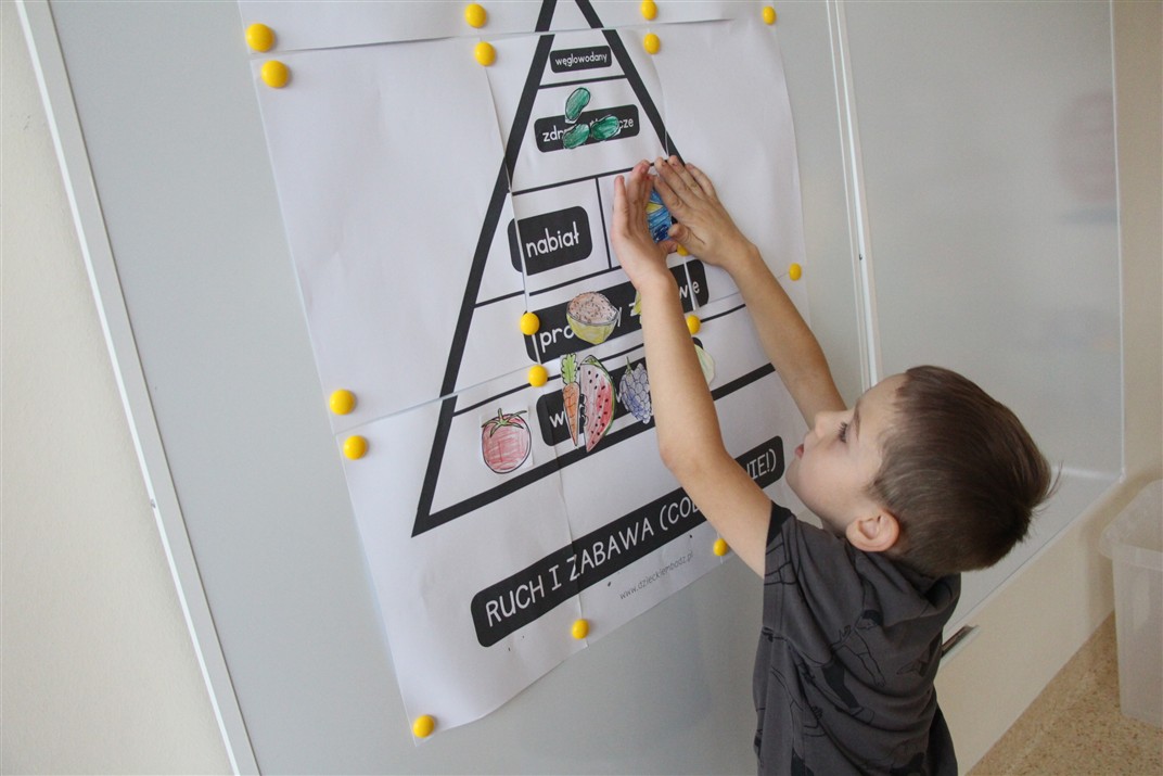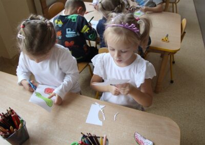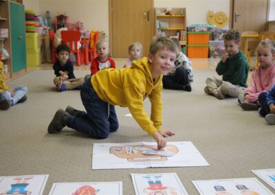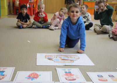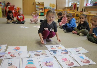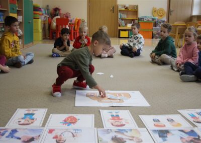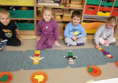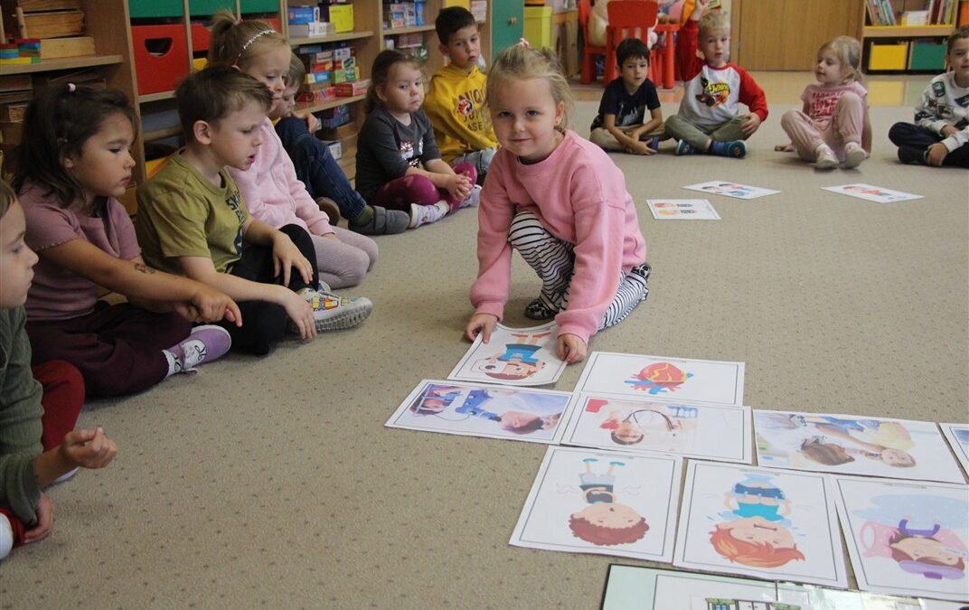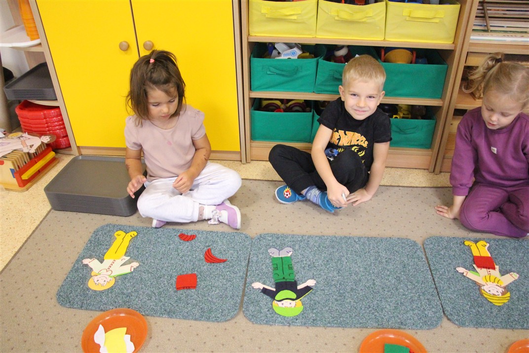 W minionym tygodniu 13-17 października dzieci z grupy Motyli wzbogacały swoją wiedzę na temat zdrowego stylu życia i dbania o zdrowie jesienią. Dzieci poznały piramidę zdrowego żywienia, poznały zawód lekarza oraz dowiedziały się jak ubierać się stosownie do pory roku i pogody. Podczas zabaw rozwijaliśmy umiejętności językowe, matematyczne, motorykę małą, nie zabrakło zabaw ruchowych.
