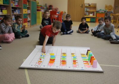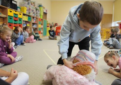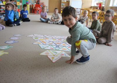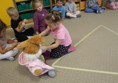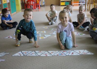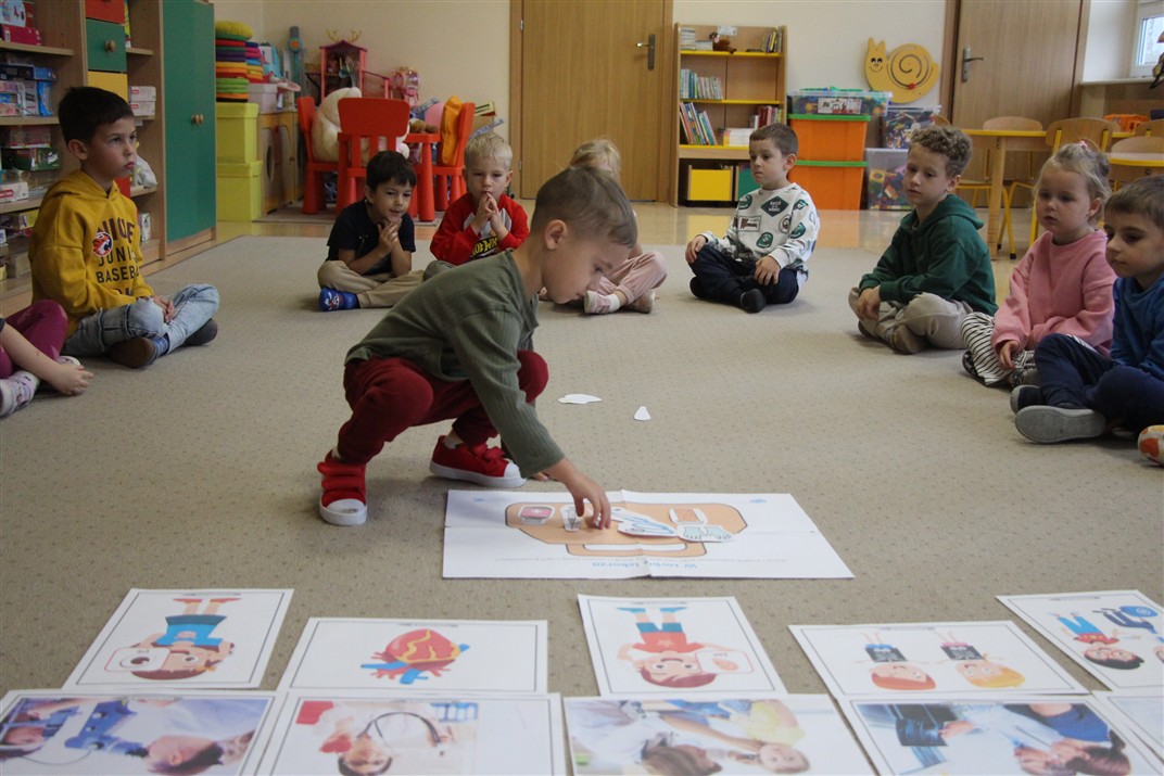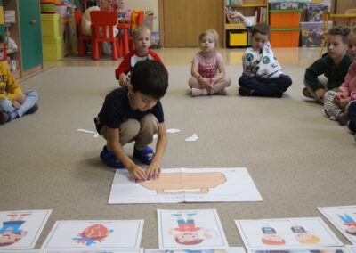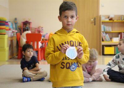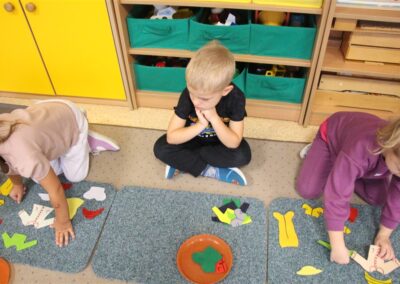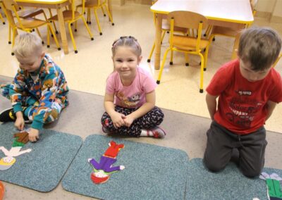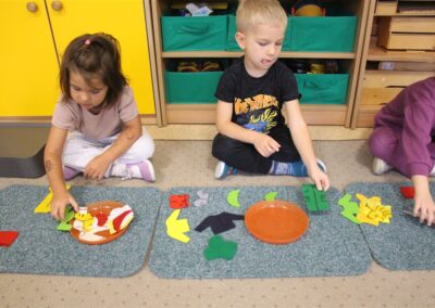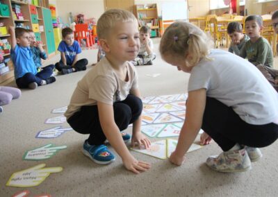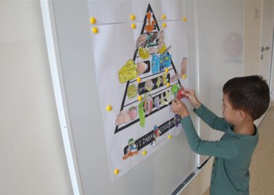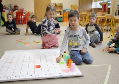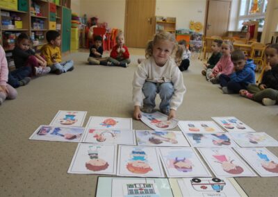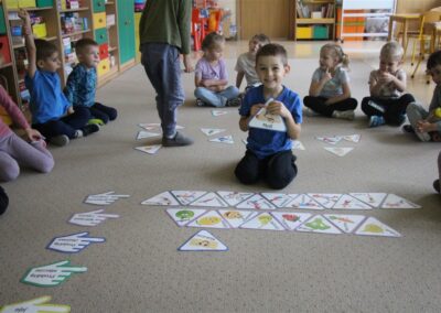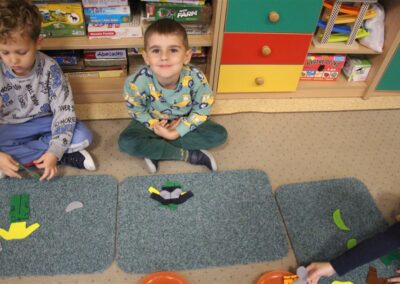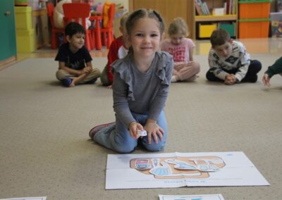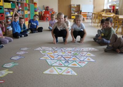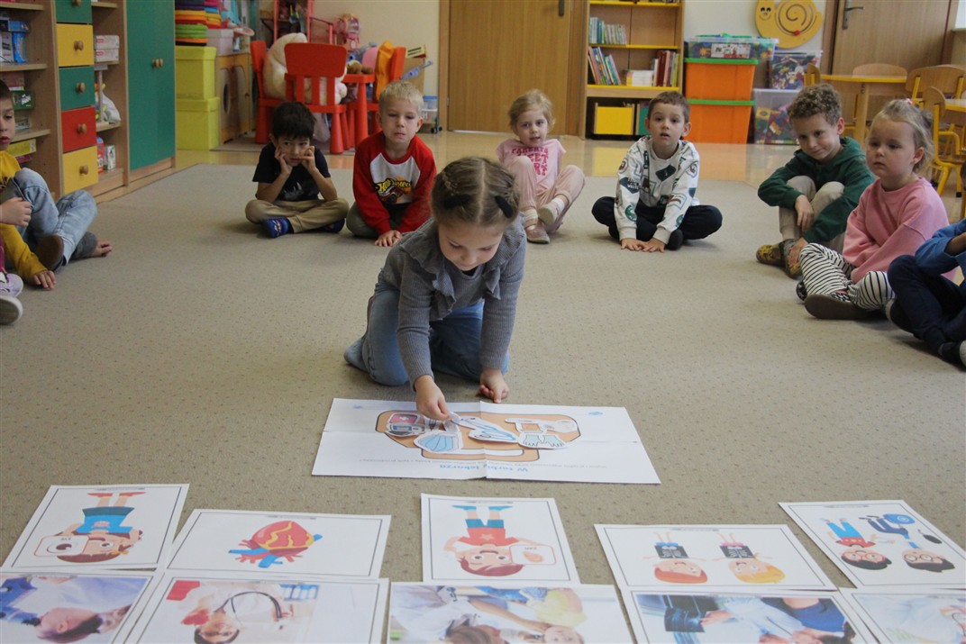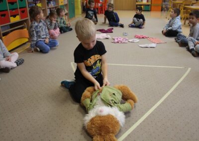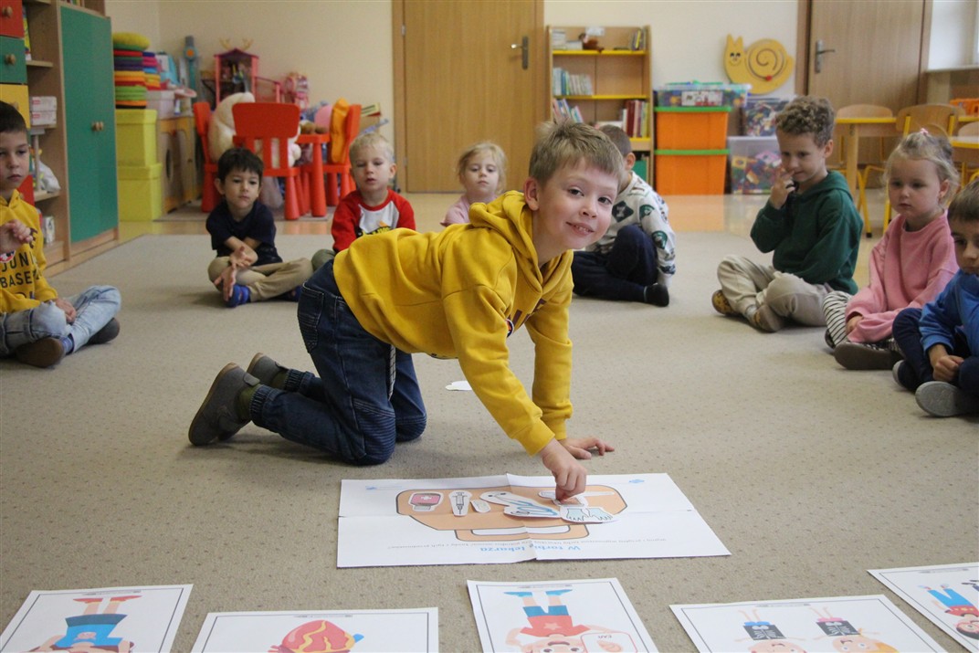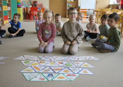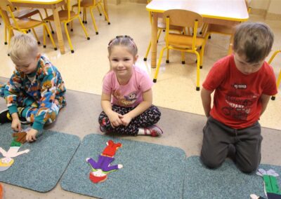 W minionym tygodniu 13-17 października dzieci z grupy Motyli wzbogacały swoją wiedzę na temat zdrowego stylu życia i dbania o zdrowie jesienią. Dzieci poznały piramidę zdrowego żywienia, poznały zawód lekarza oraz dowiedziały się jak ubierać się stosownie do pory roku i pogody. Podczas zabaw rozwijaliśmy umiejętności językowe, matematyczne, motorykę małą, nie zabrakło zabaw ruchowych.