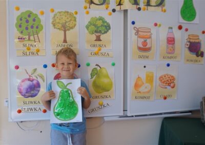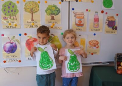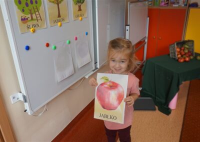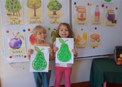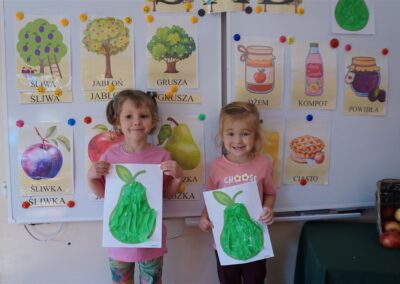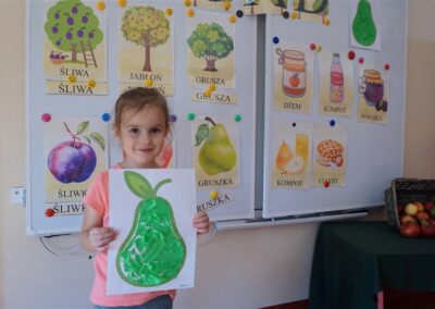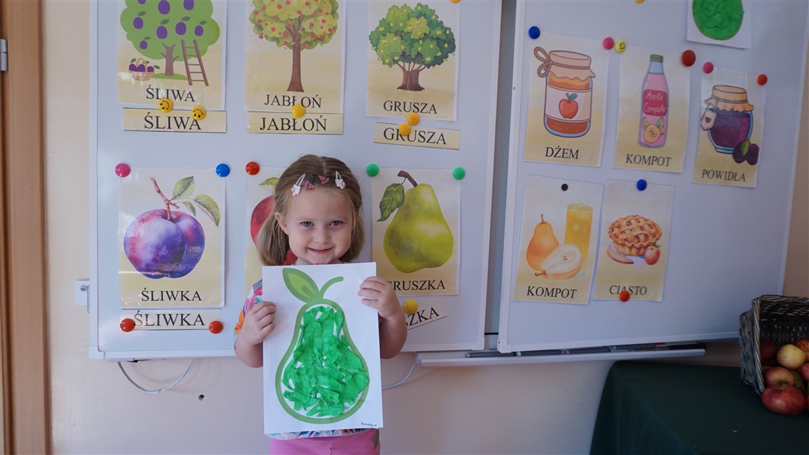 • Poznały i nazywały jesienne owoce, rosnące w sadzie