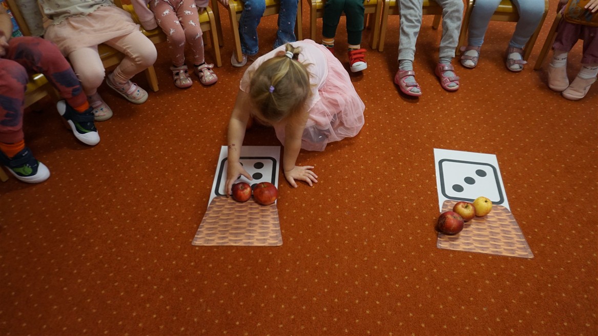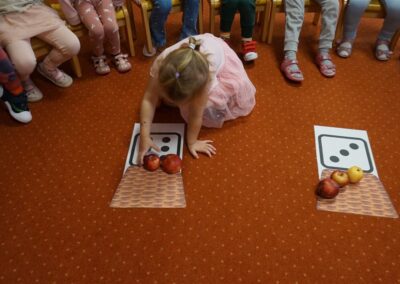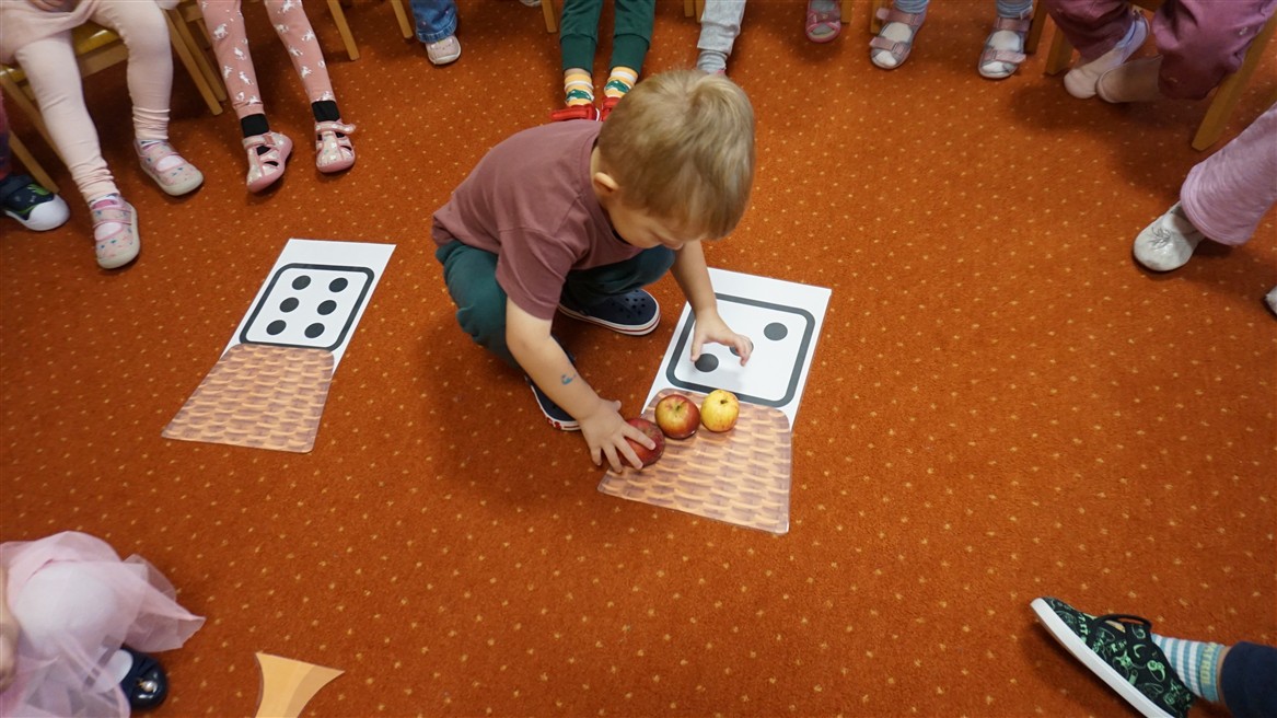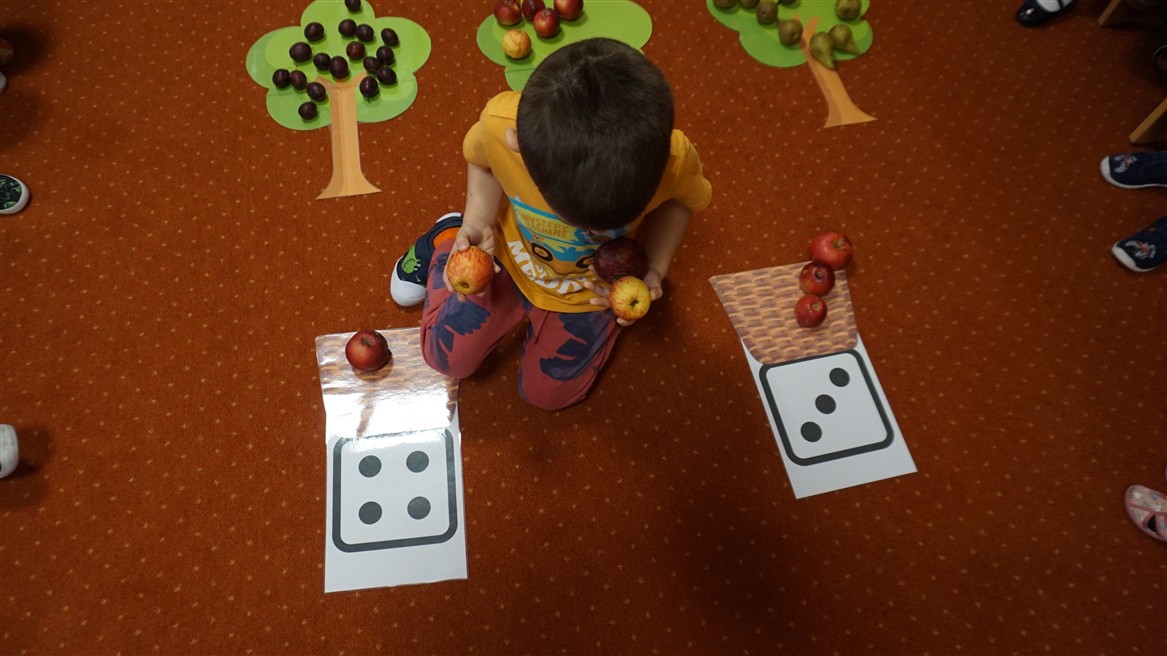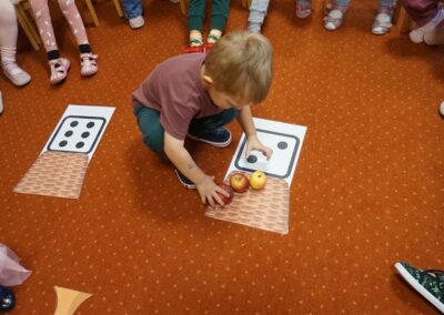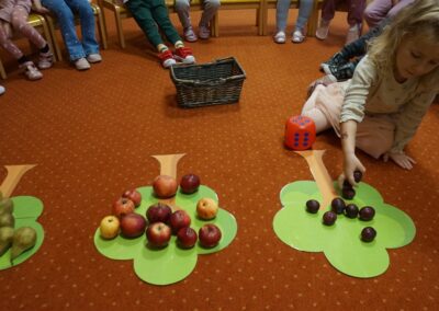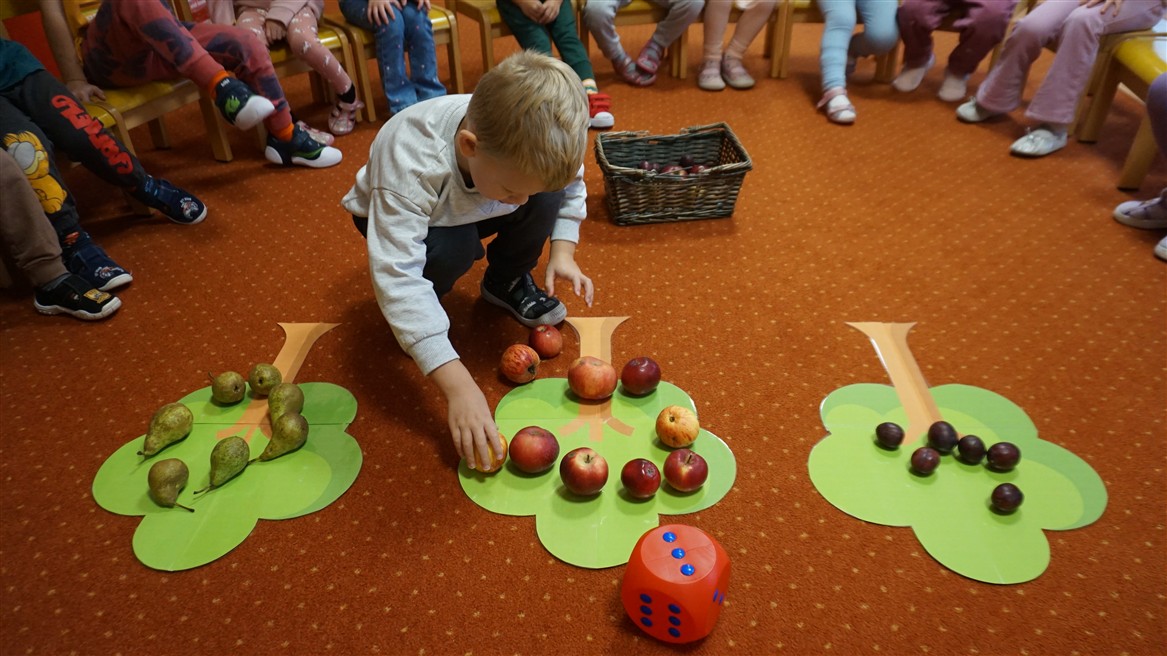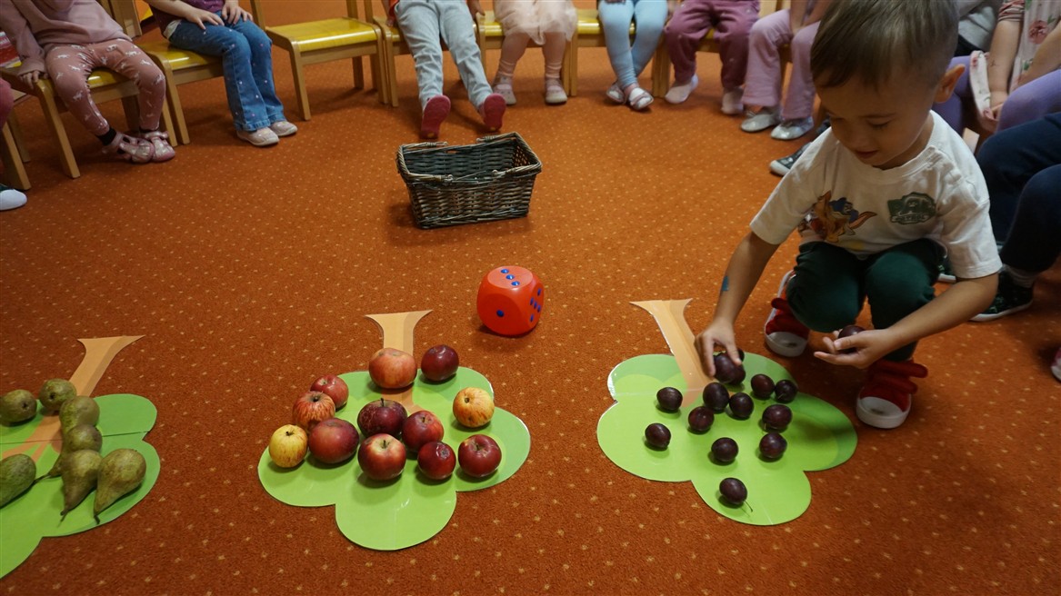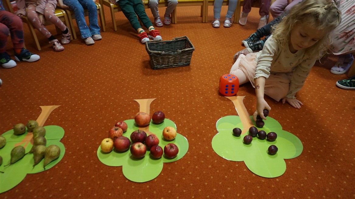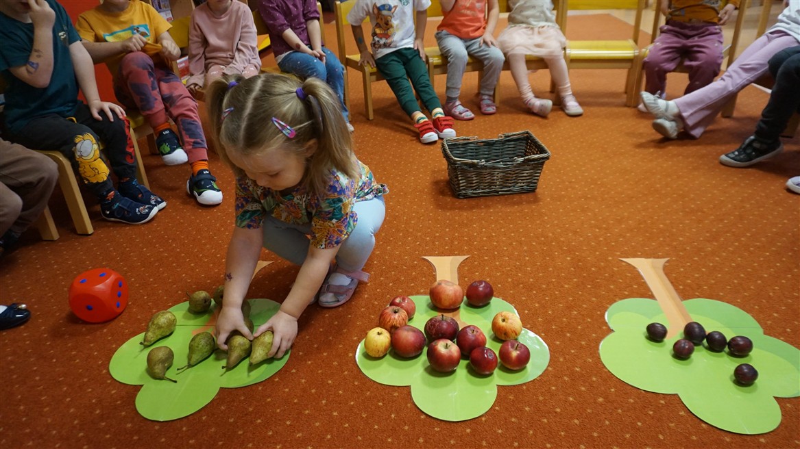 • Przeliczaly liczbę oczek na kostce i dopasowywały tyle samo owoców
