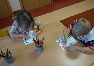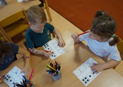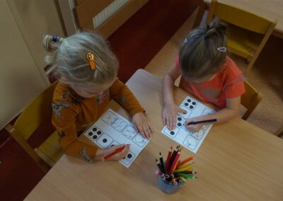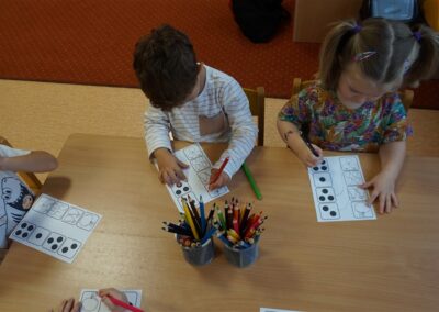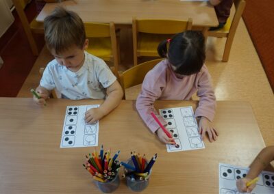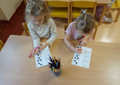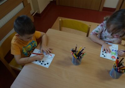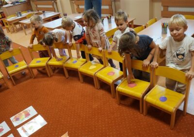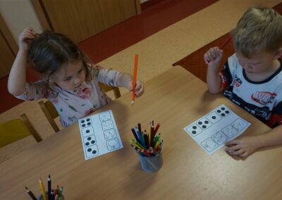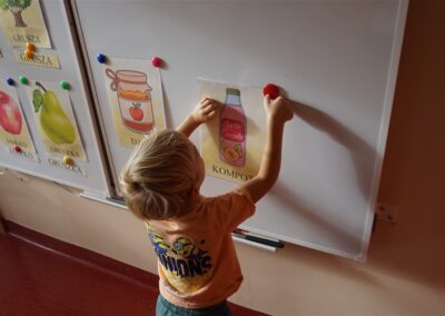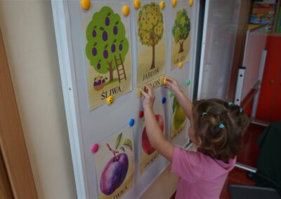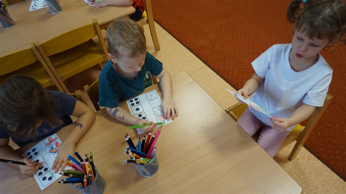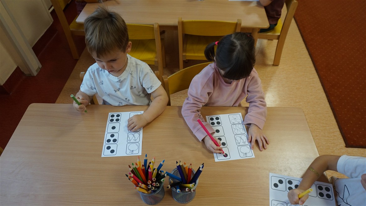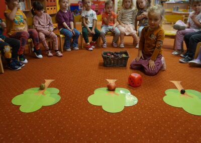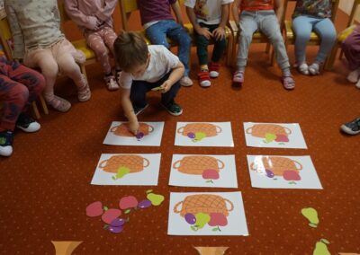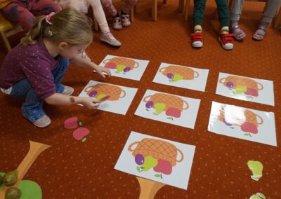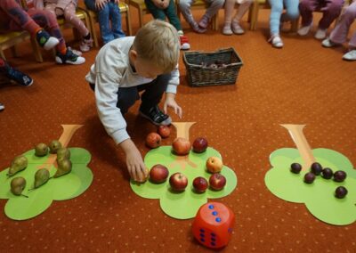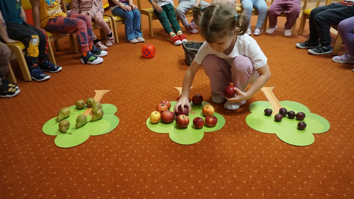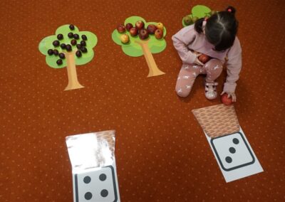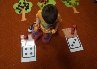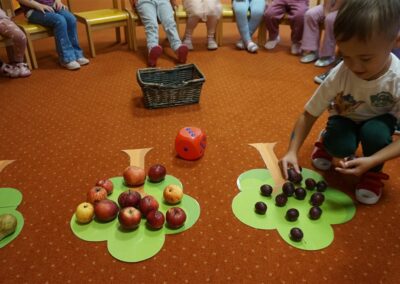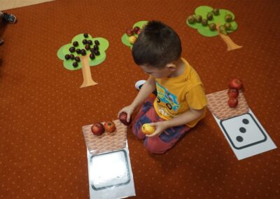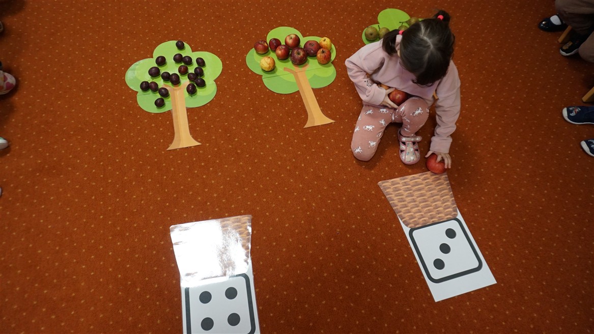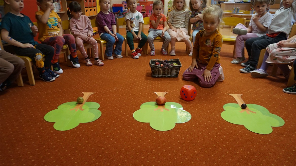 • Przeliczaly liczbę oczek na kostce i dopasowywały tyle samo owoców
