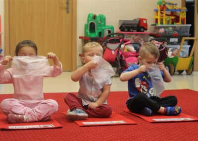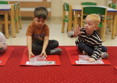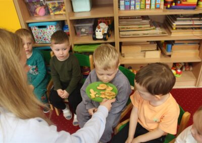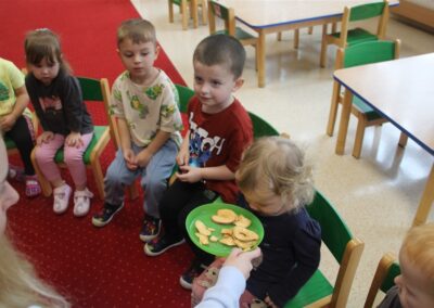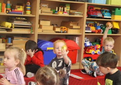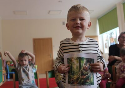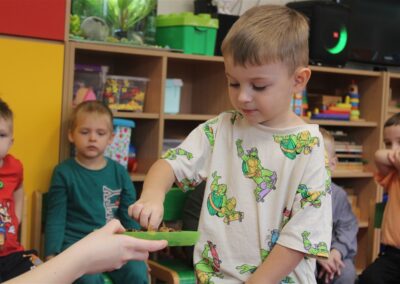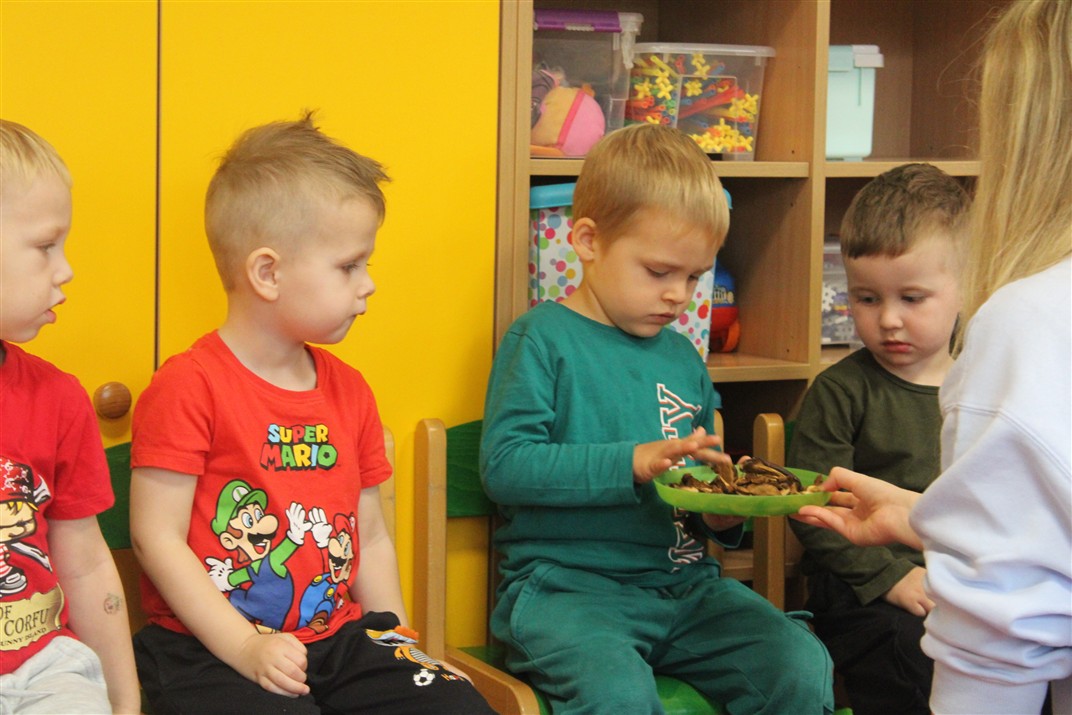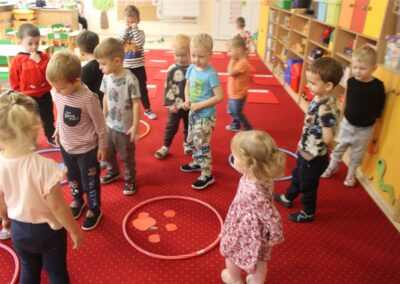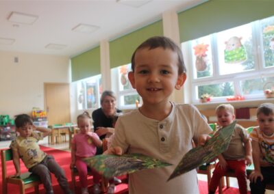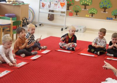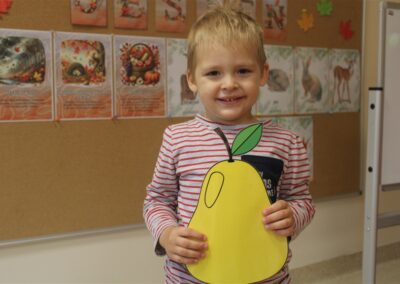 W miniony tygodniu, od 06.10 do 10.10.2025 roku dzieci z grupy ,,Żabek’’ realizowały temat ,,Kody jesieni’’: