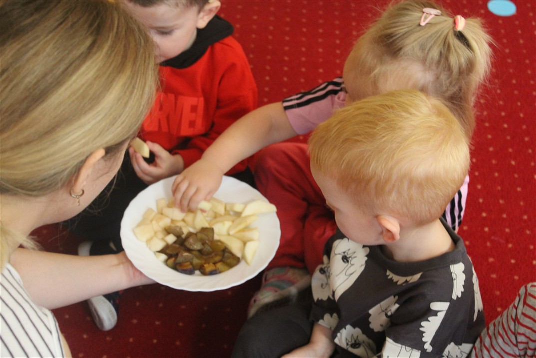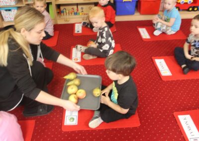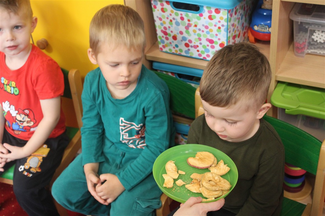 – wiedzą, jak smakuje owoc (jabłko, gruszka i śliwka)