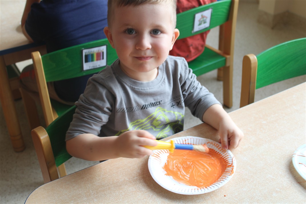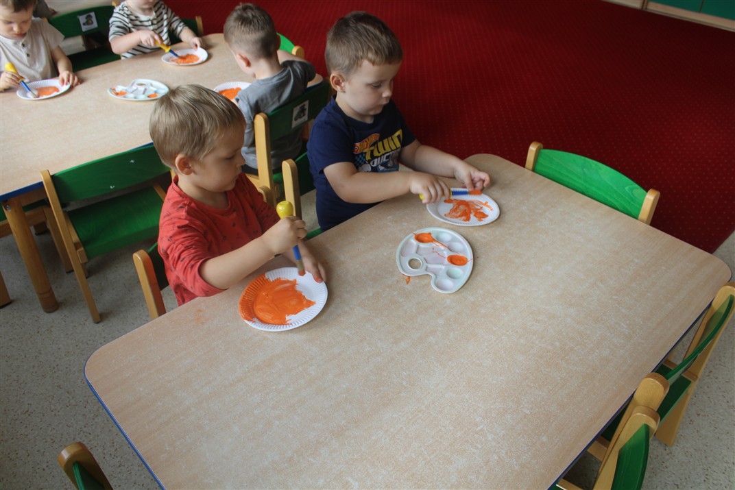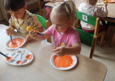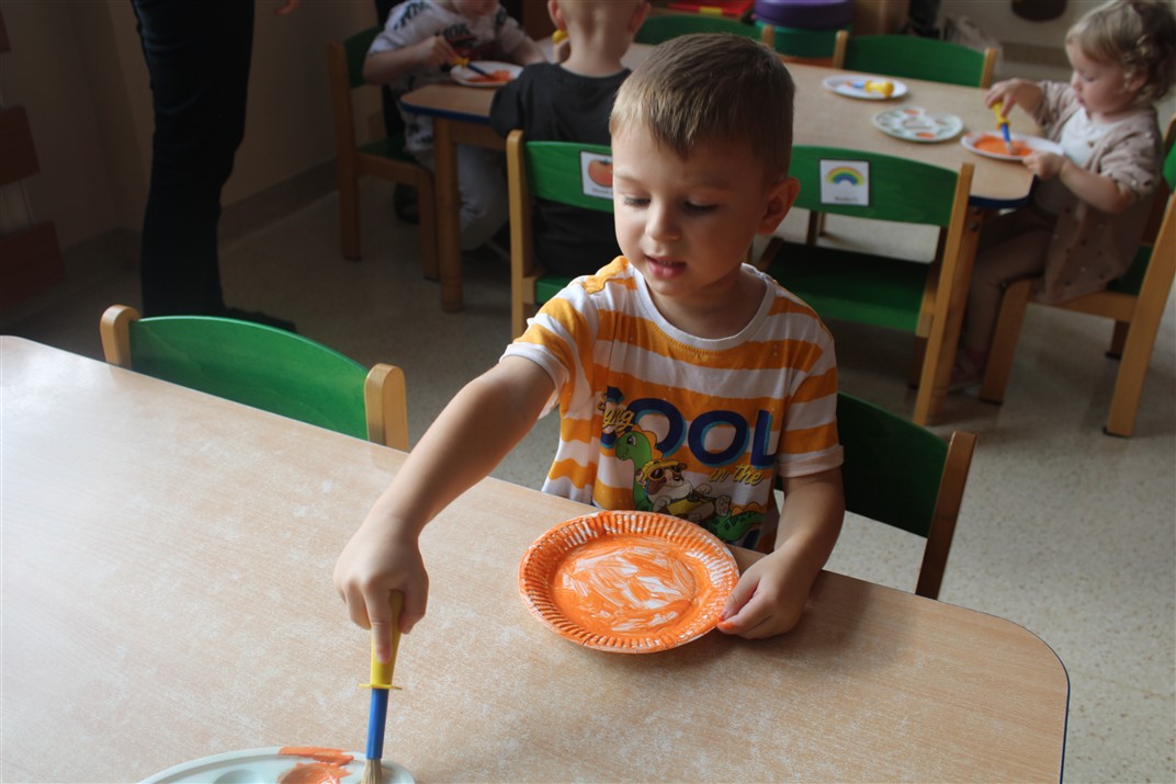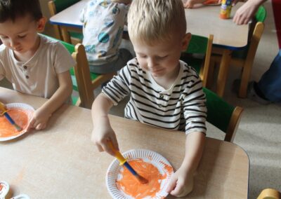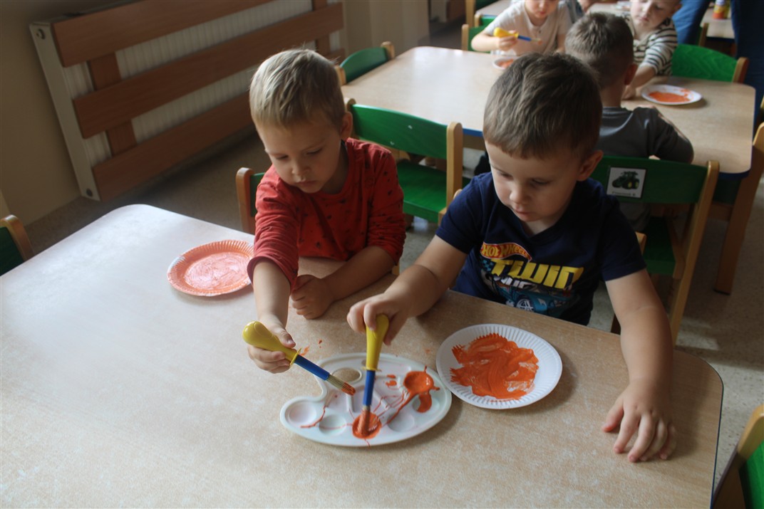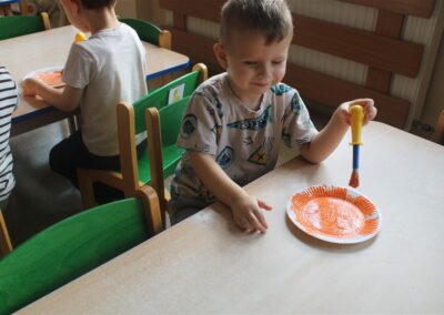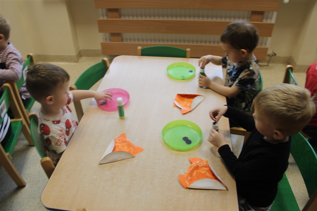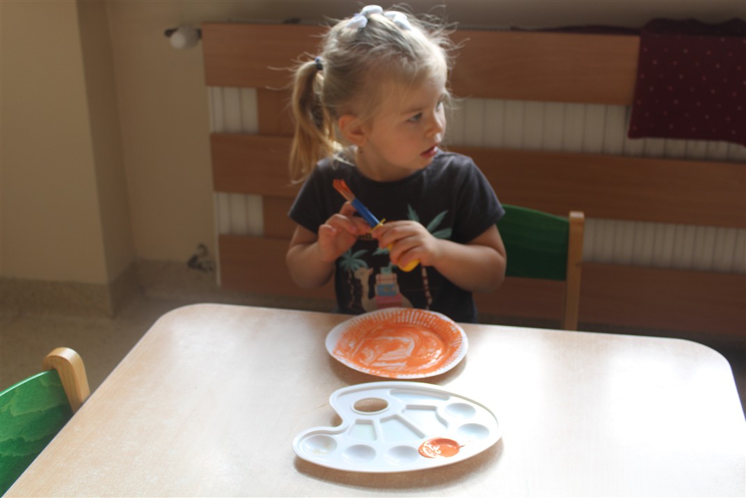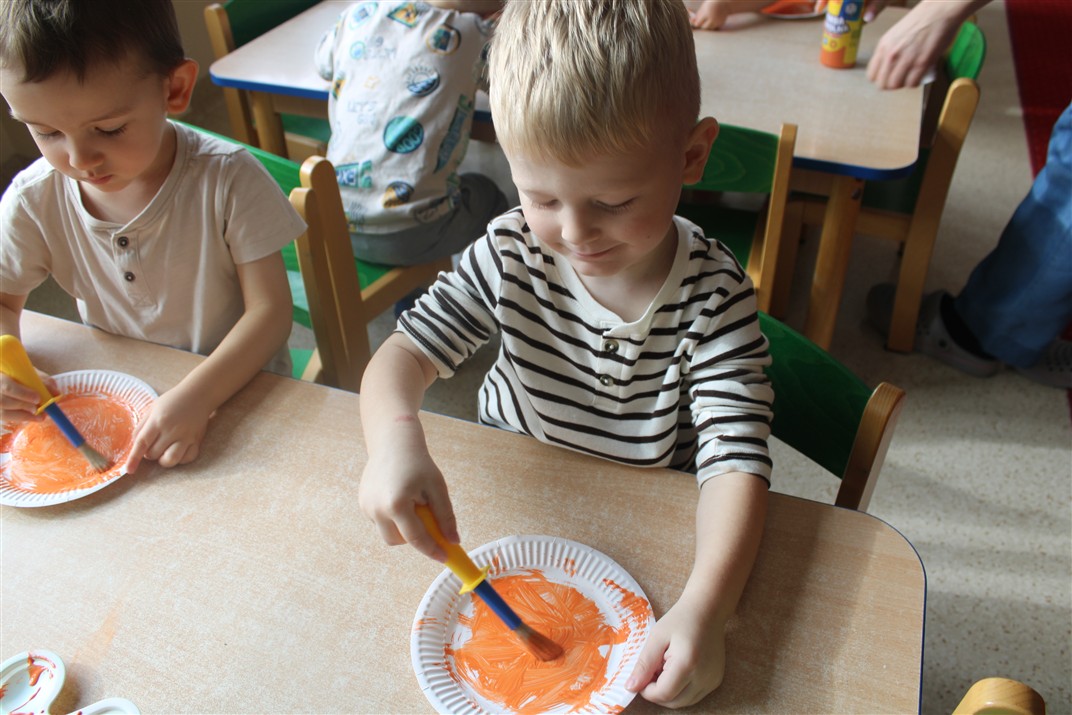 – tworzyły liska za pomocą papierowych talerzyków i pomarańczowej farby