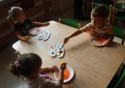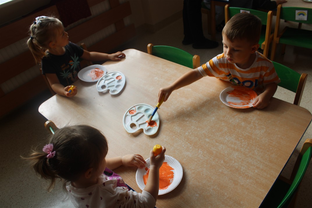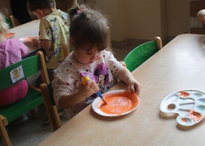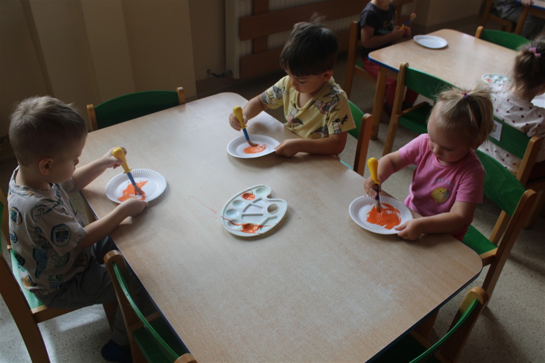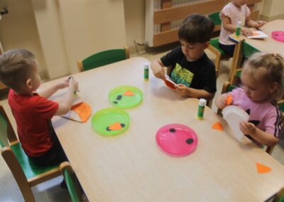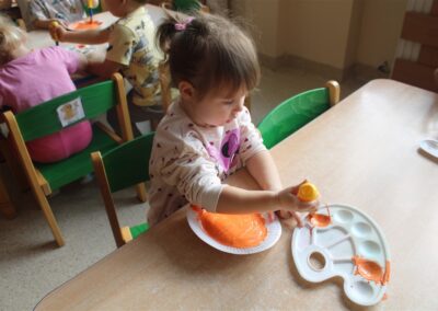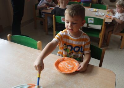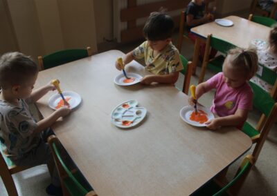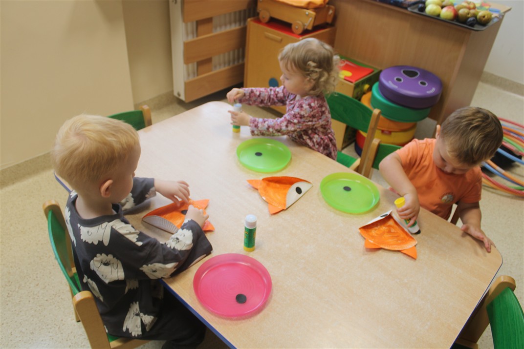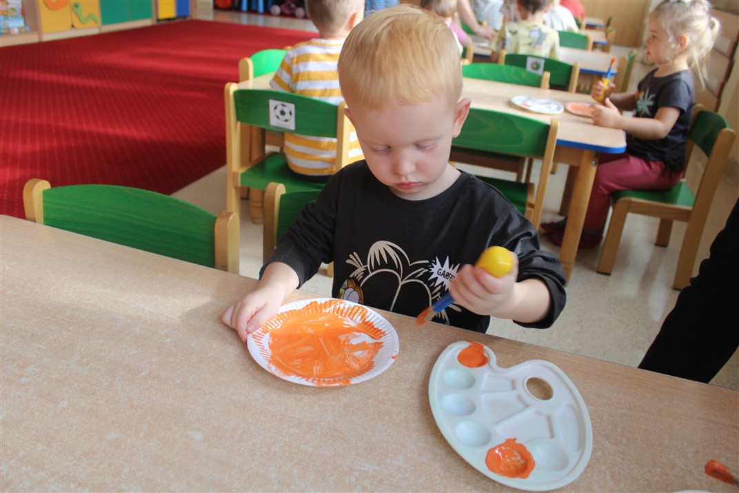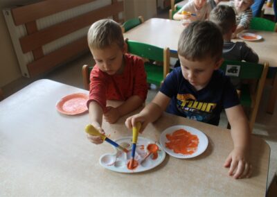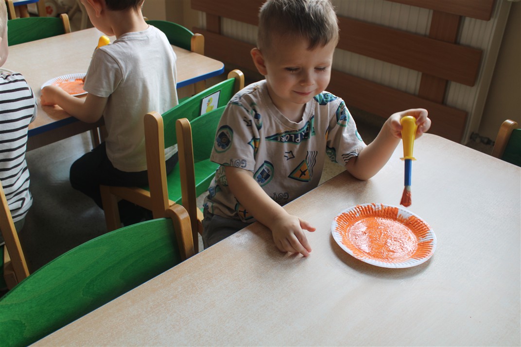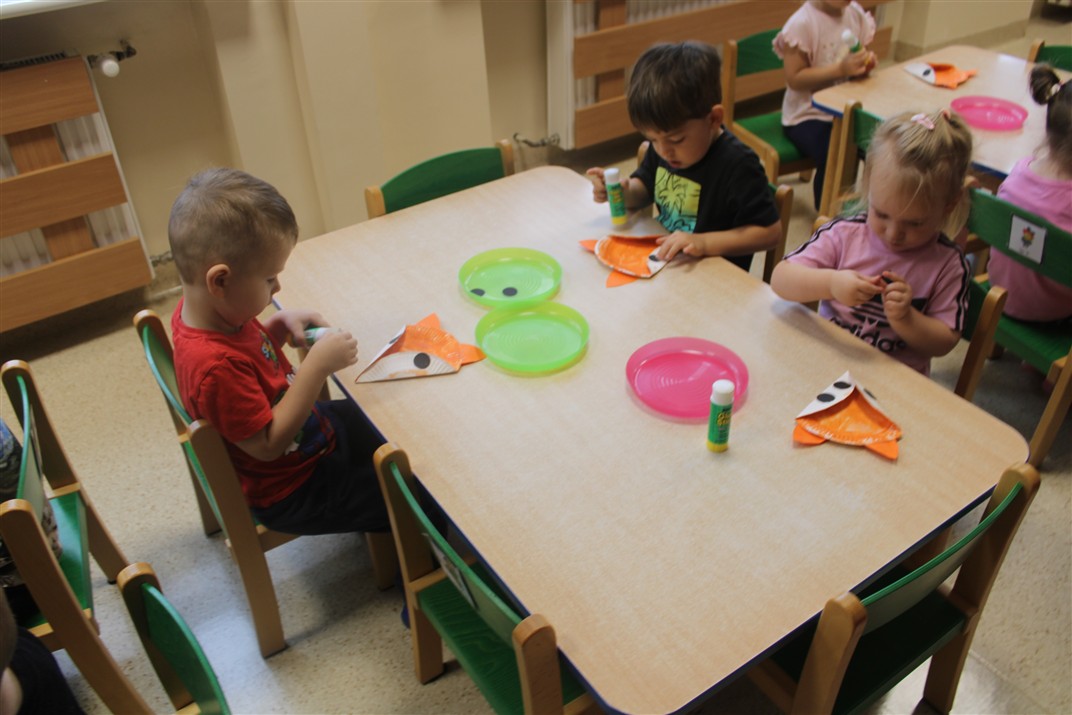 – tworzyły liska za pomocą papierowych talerzyków i pomarańczowej farby