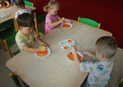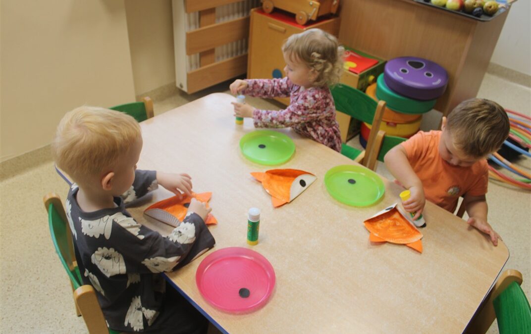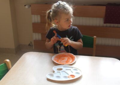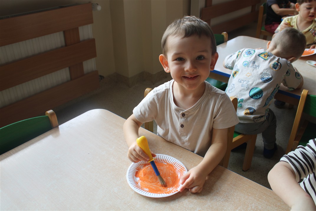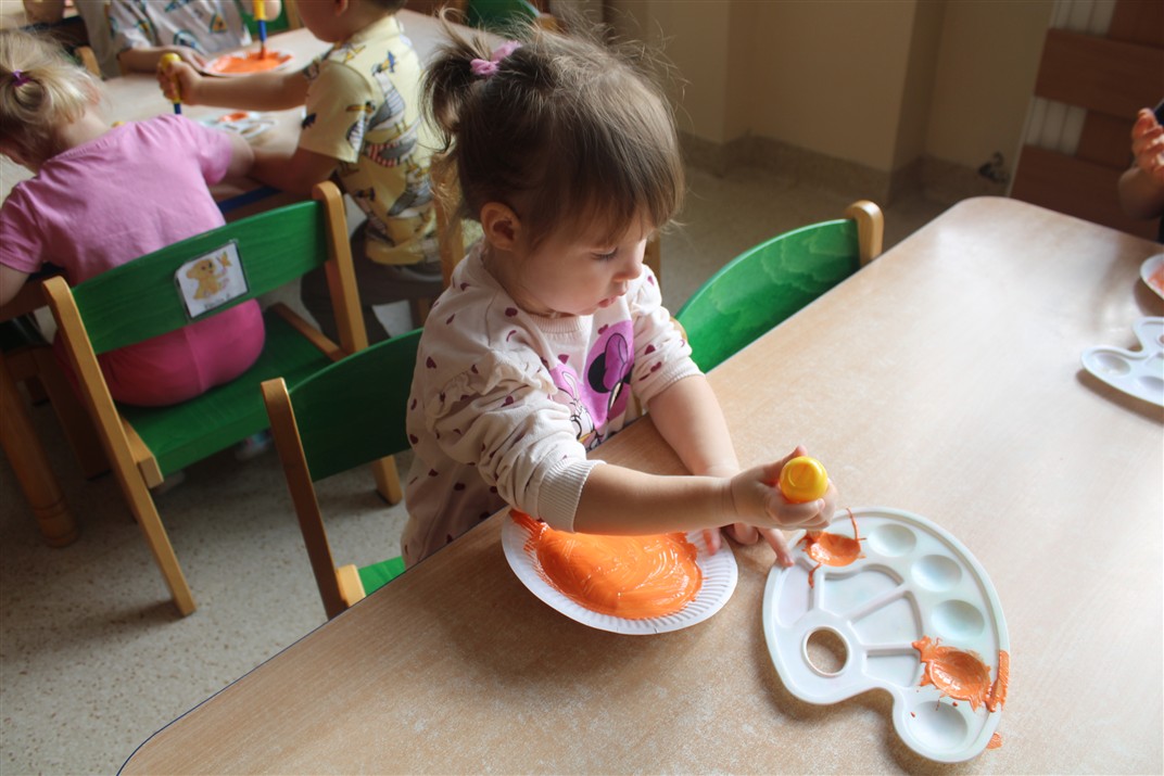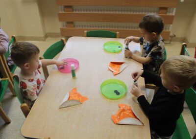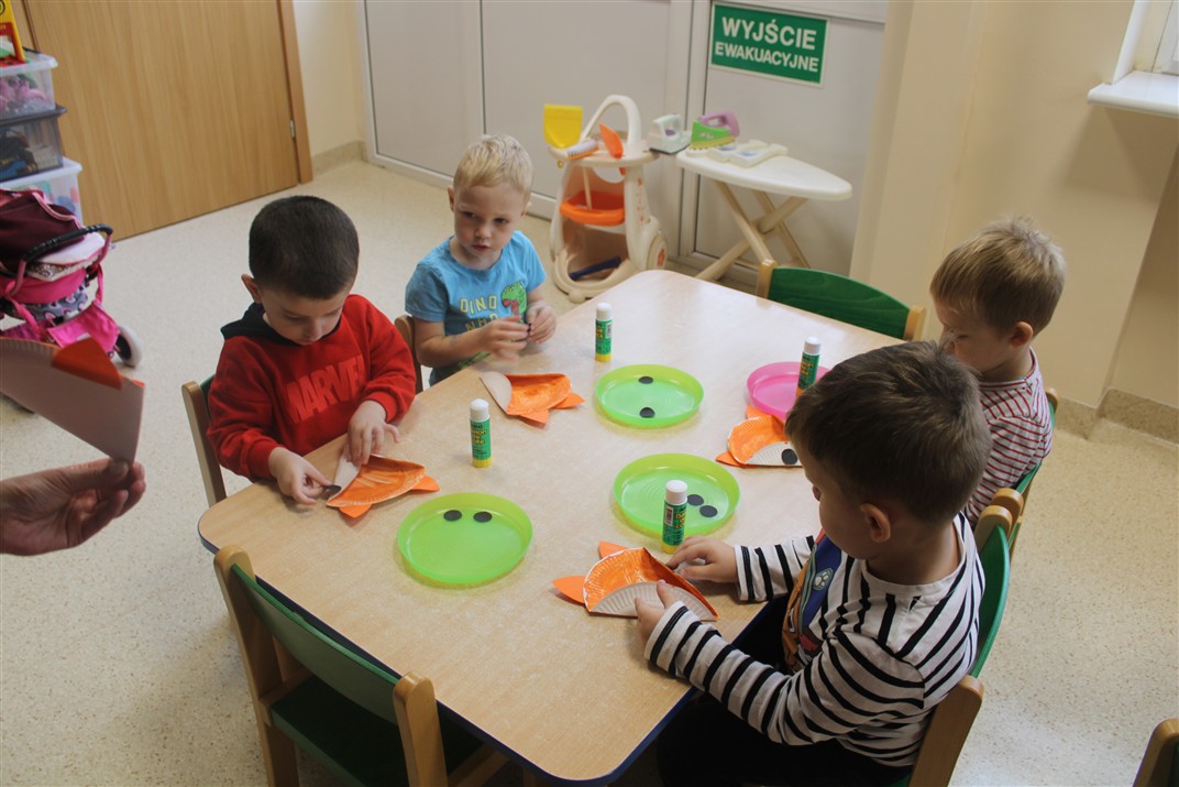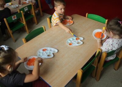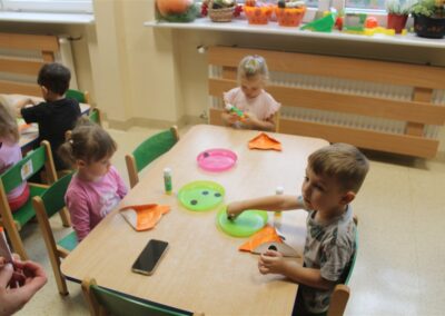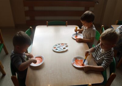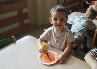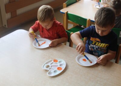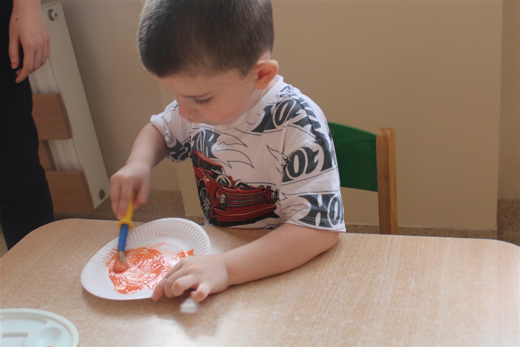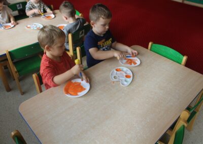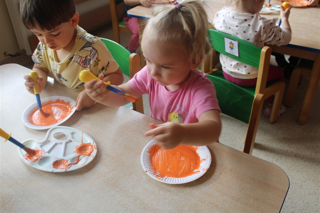 – tworzyły liska za pomocą papierowych talerzyków i pomarańczowej farby