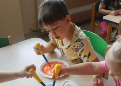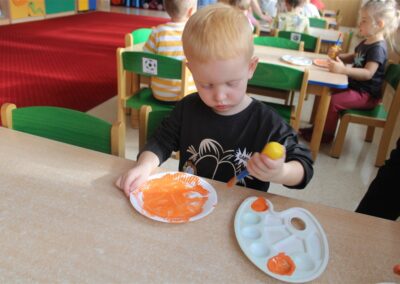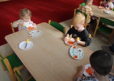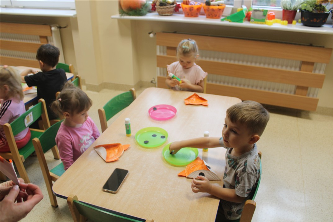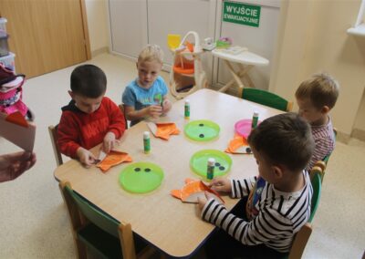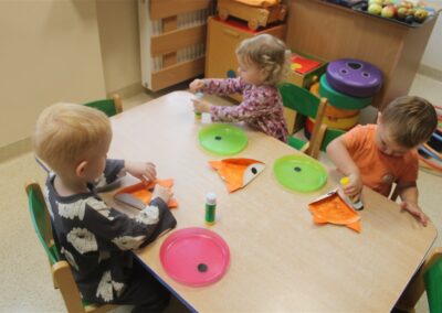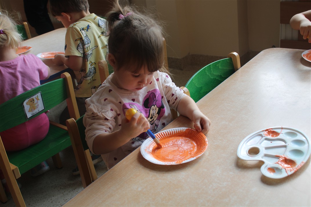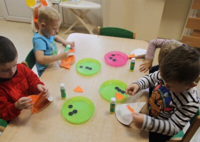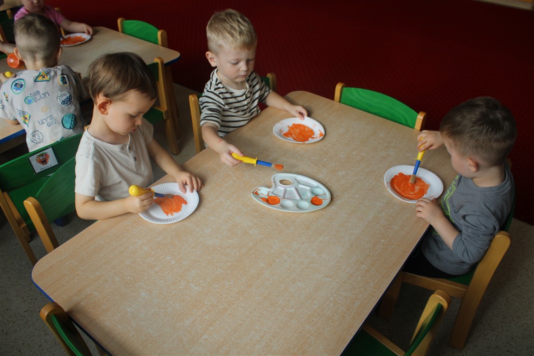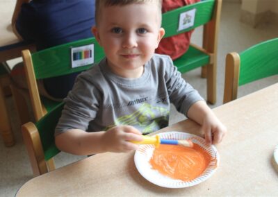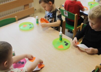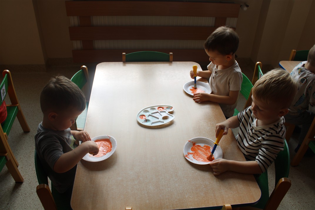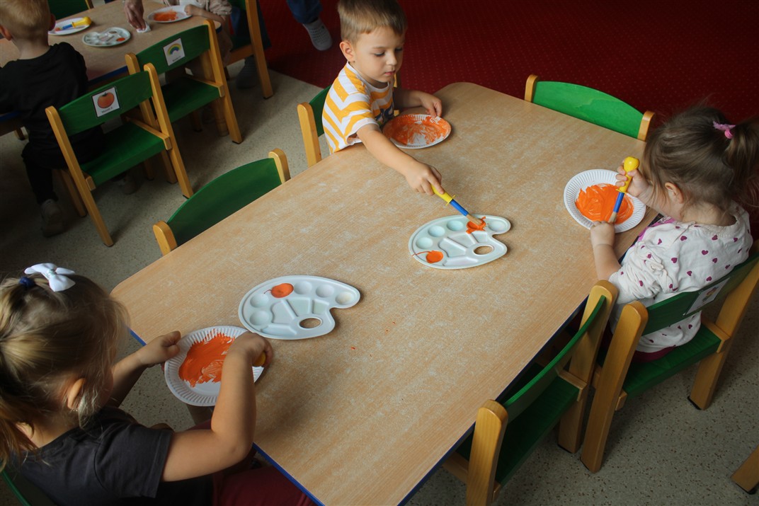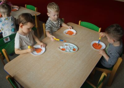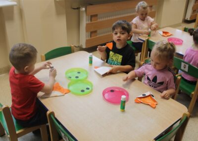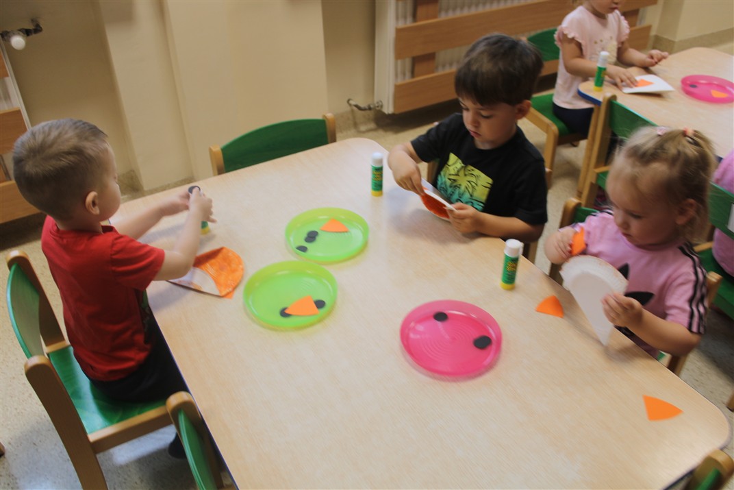 – tworzyły liska za pomocą papierowych talerzyków i pomarańczowej farby