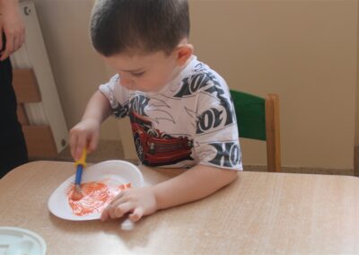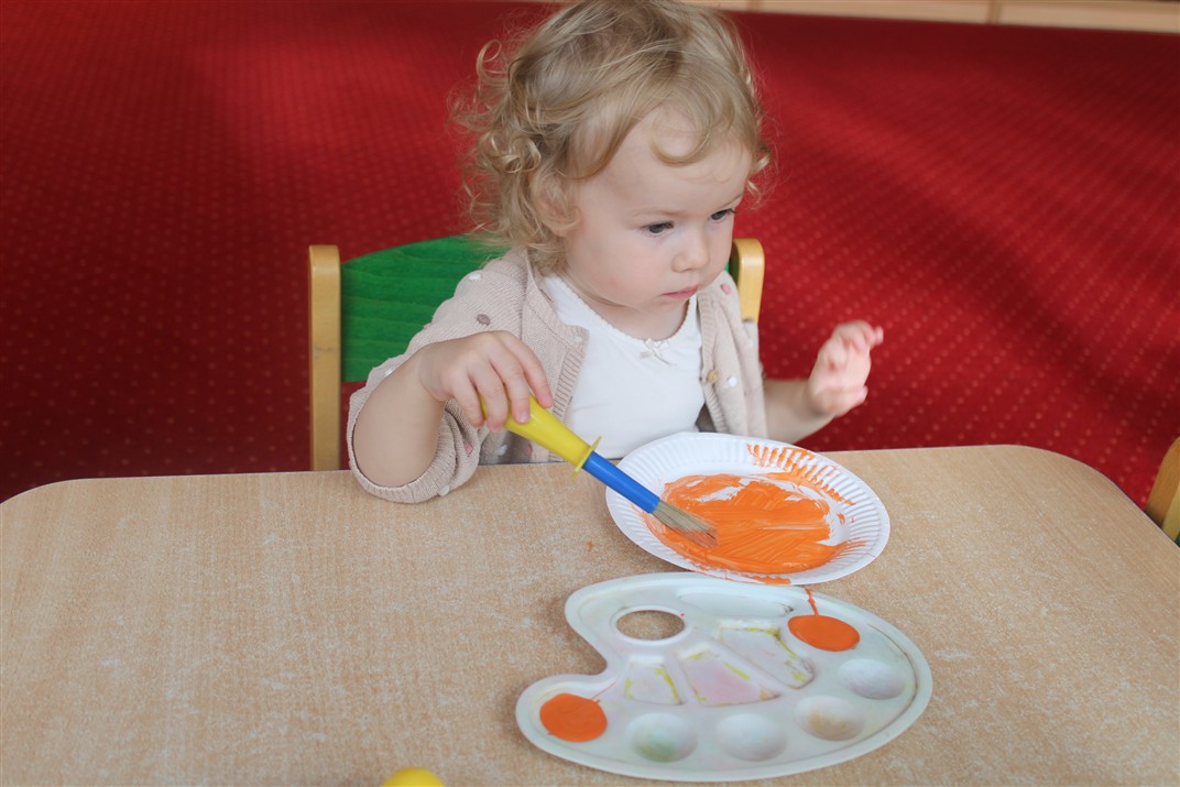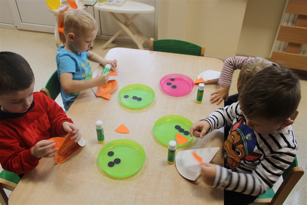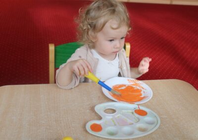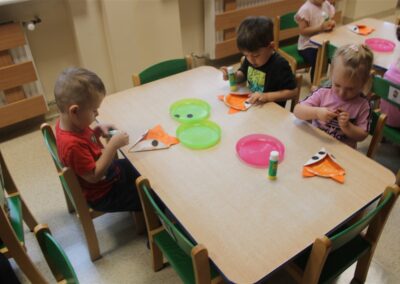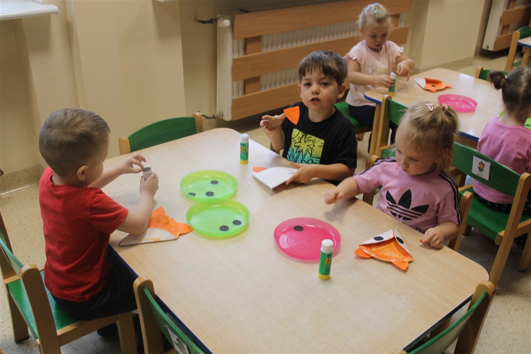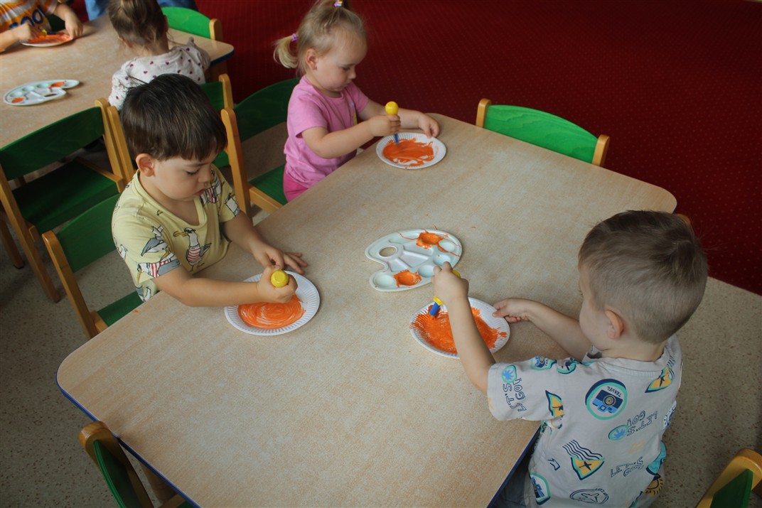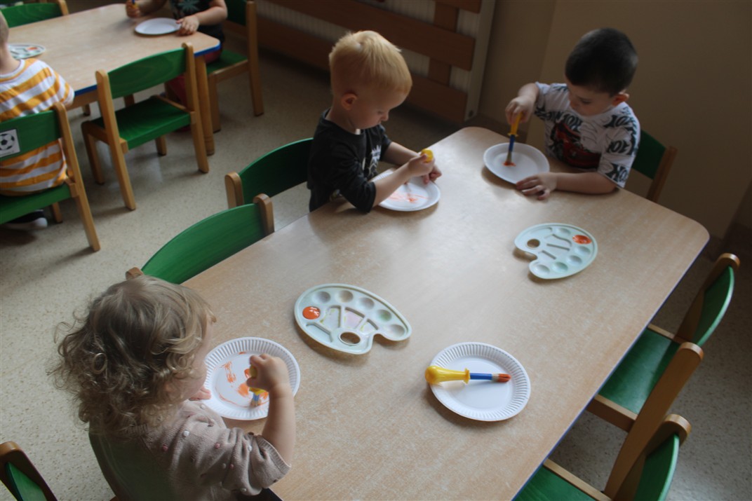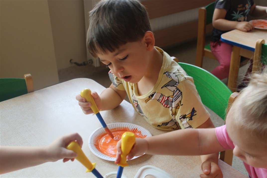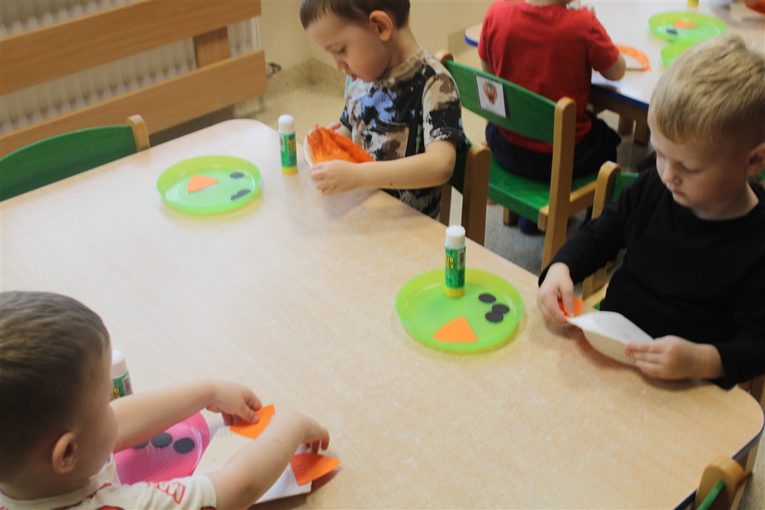 – tworzyły liska za pomocą papierowych talerzyków i pomarańczowej farby