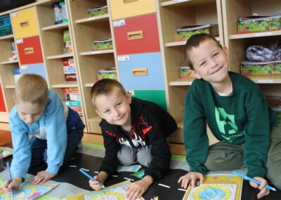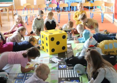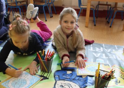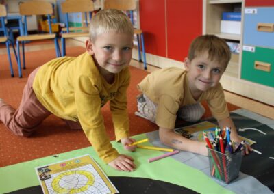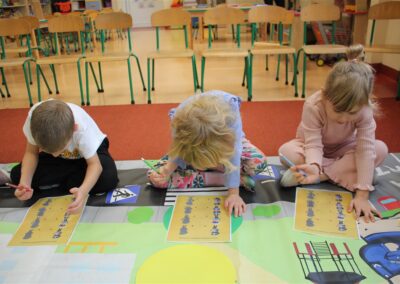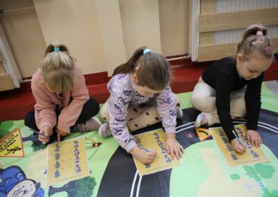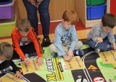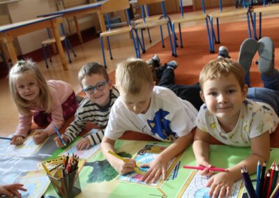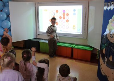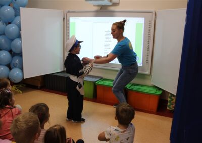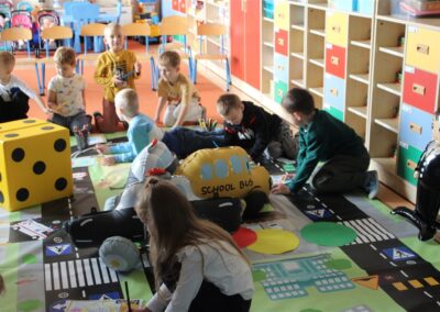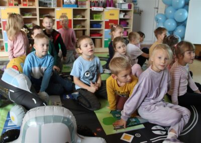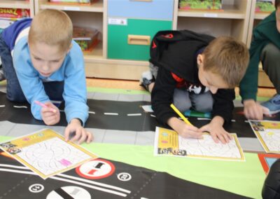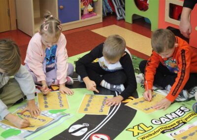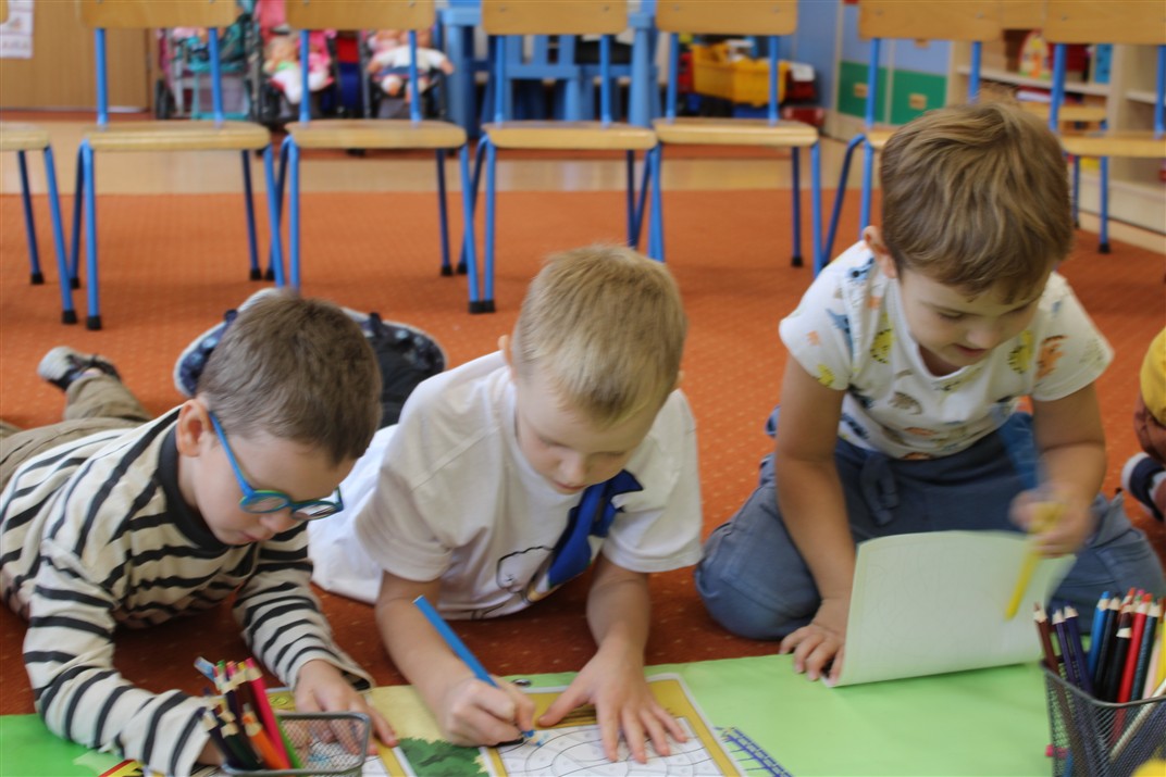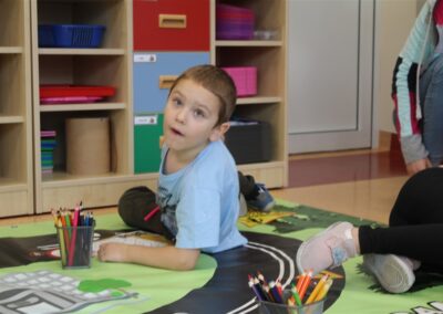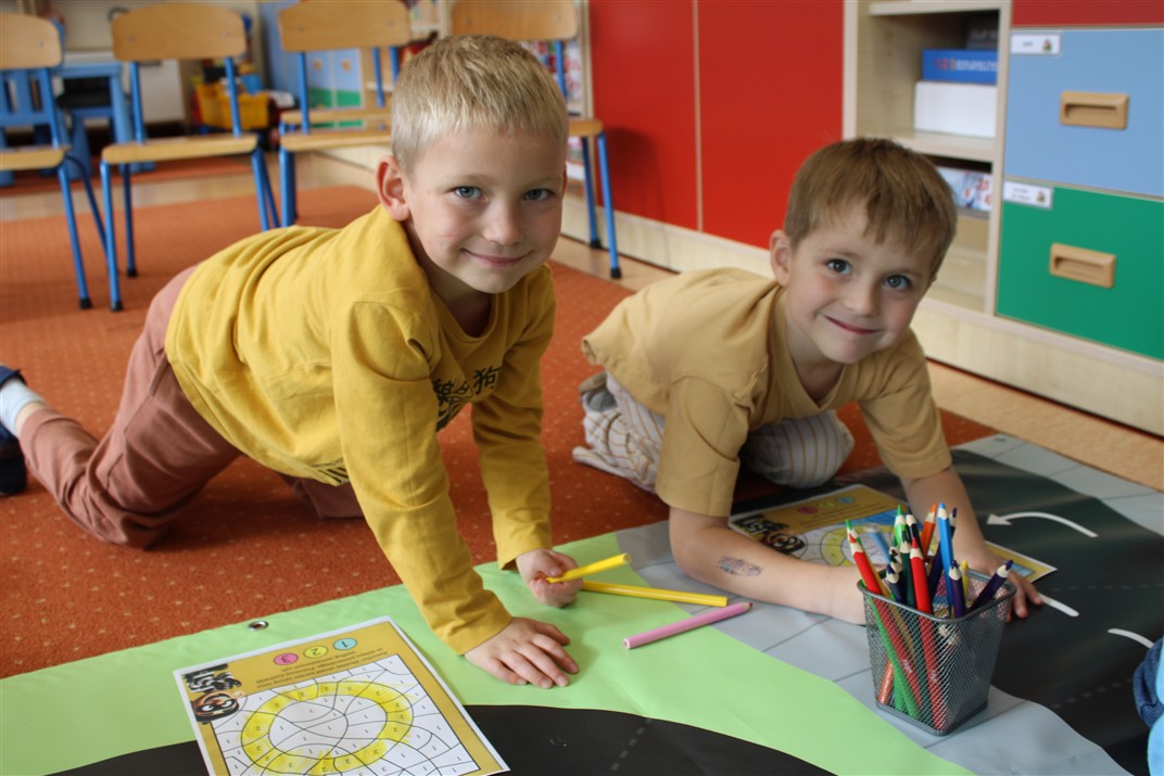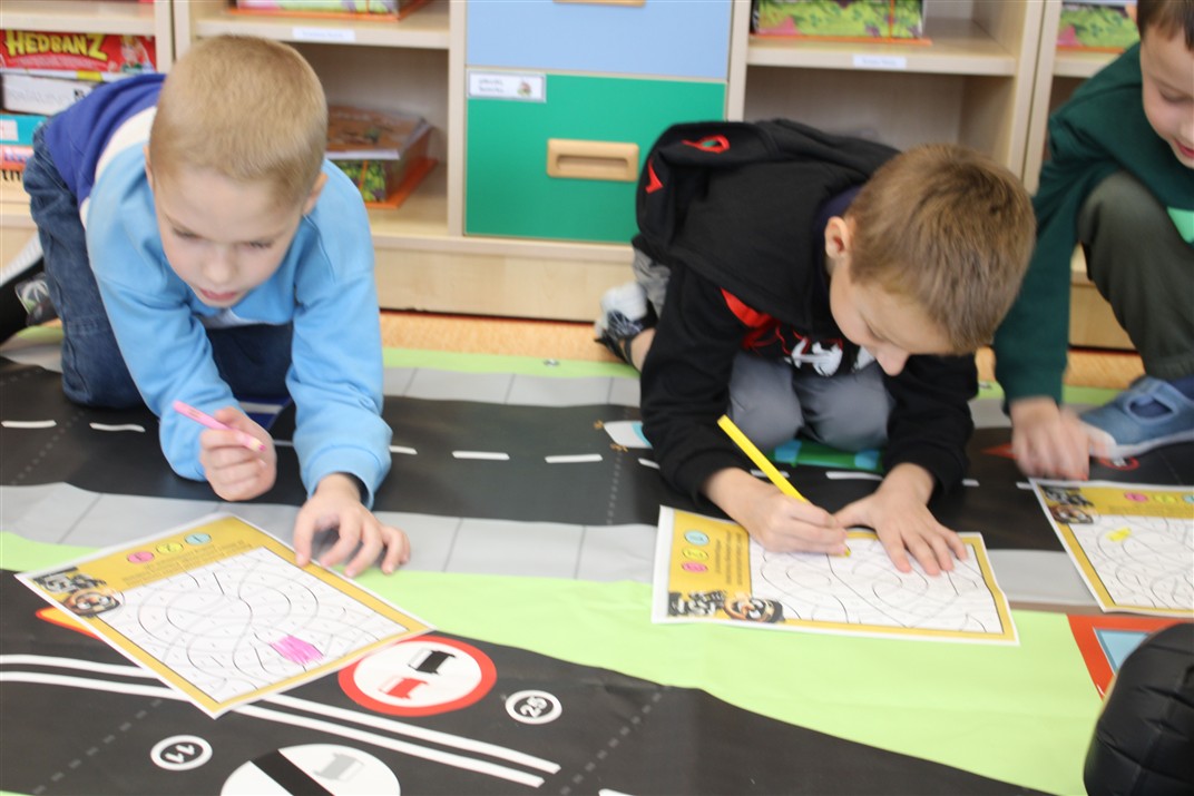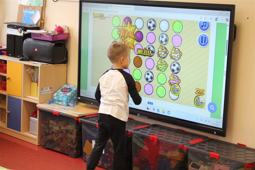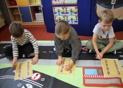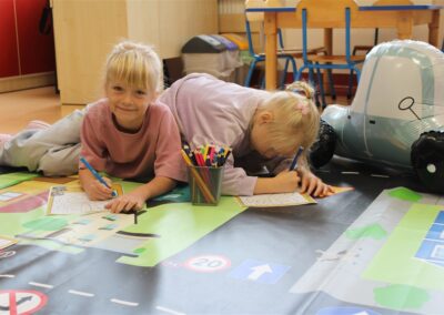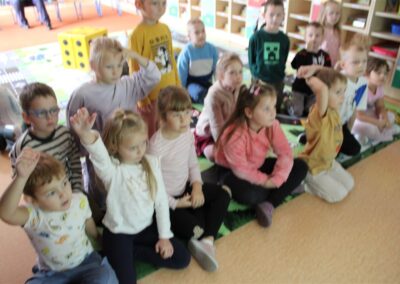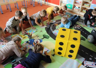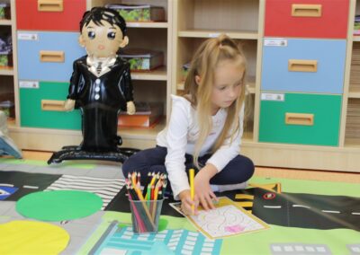 W dniu 16 października dzieci z grupy „Myszek” i „Biedronek” gościły przedstawicieli Komendy Powiatowej Policji w Chodzieży. Podczas spotkania dzieci wzbogaciły wiedzę na temat pracy policjantów, utrwaliły podstawowe zasady bezpiecznego poruszania się po chodniku i na przejściach dla pieszych. Na podstawie ciekawej zabawy zrozumiały także konieczność noszenia elementów odblaskowych. Wykorzystane przez gości rekwizyty, między innymi duża plansza z ulicami i przejściami dla pieszych oraz autka sprawiły, że dzieci z ochotą uczestniczyły w zabawach i nauce jednocześnie. Jednak największą atrakcją dla dzieci było spotkanie z gościem specjalnym, sierżantem Pyrkiem oraz gry edukacyjne z „Krainy Pyrka”. Kolejny raz przedszkolacy upewnili się, że policjant  jest osobą miłą, do której zawsze można zwrócić się o pomoc.
