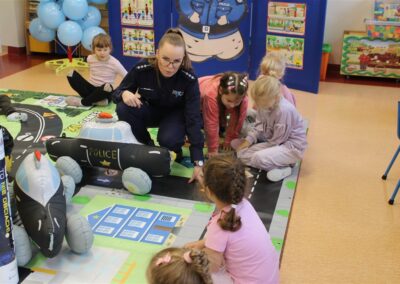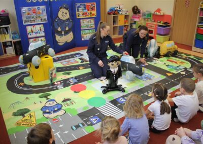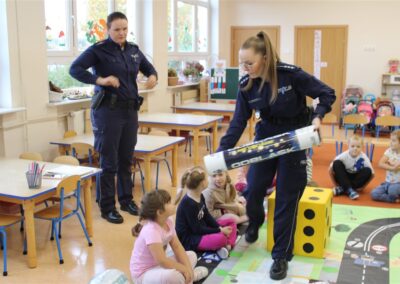 W przedszkolu zwracamy bardzo dużą uwagę na bezpieczeństwo oraz edukację związaną z bezpieczeństwem, dlatego bardzo dziękujemy funkcjonariuszkom Policji za zorganizowanie tak atrakcyjnego i ważnego spotkania z przedszkolakami.