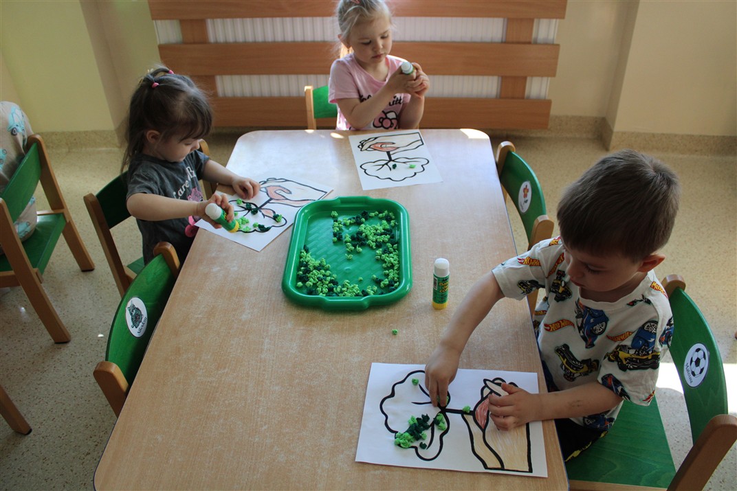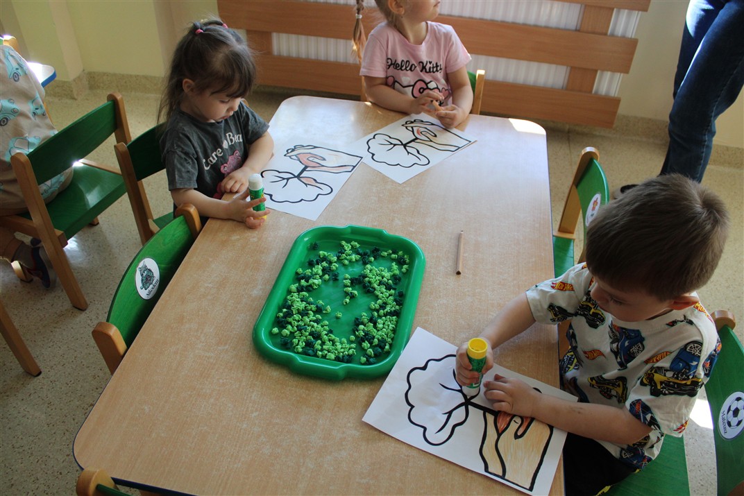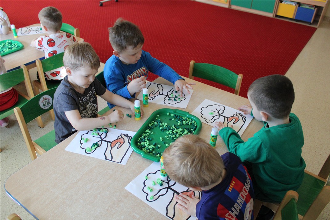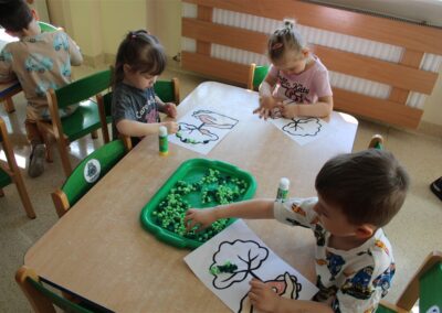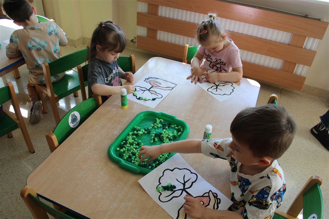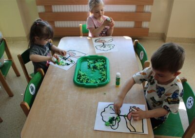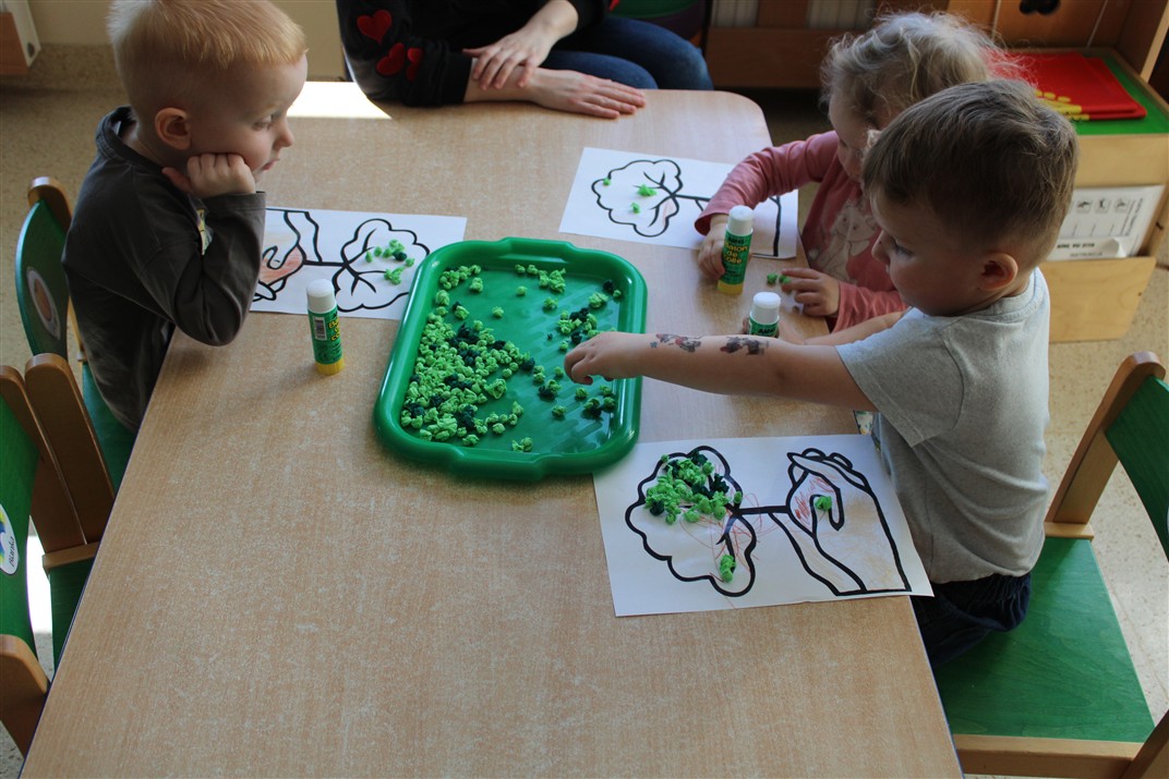 - kolorowały obrazek drzewa i przyklejały zieloną bibułę na liście