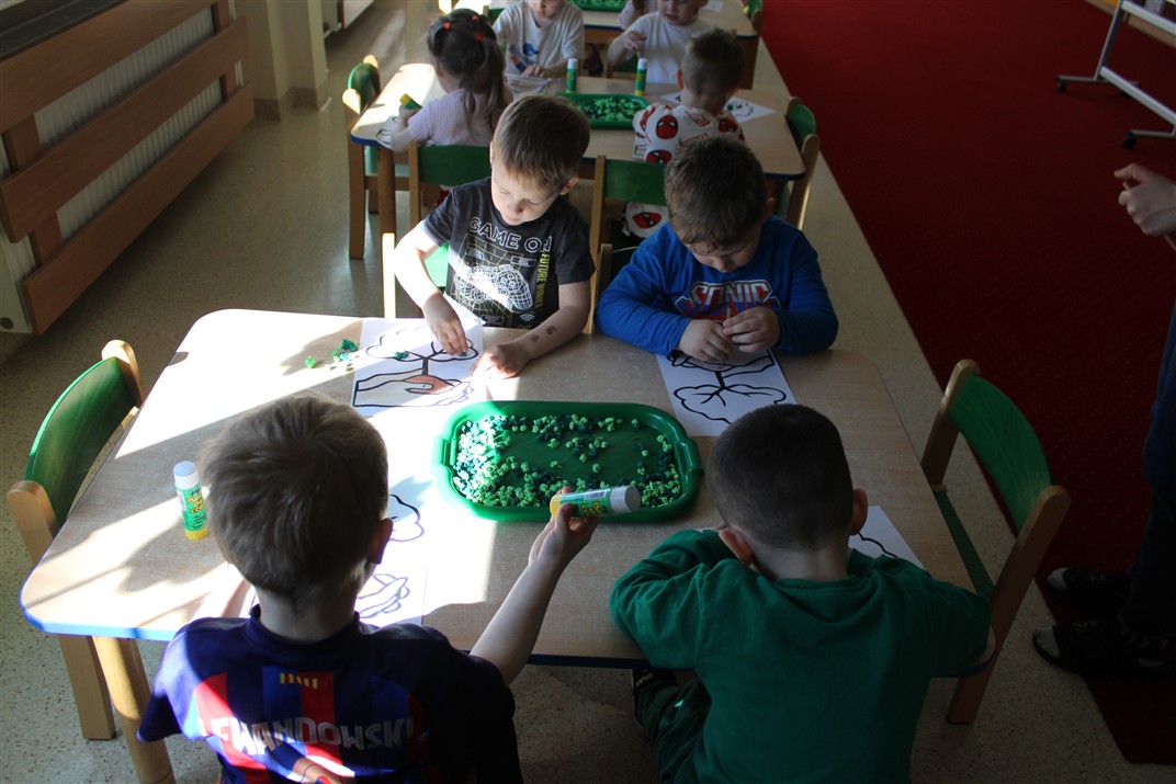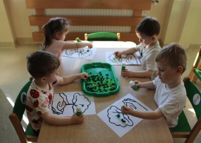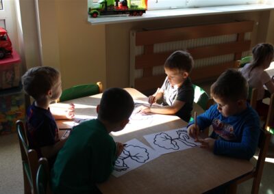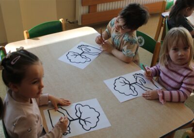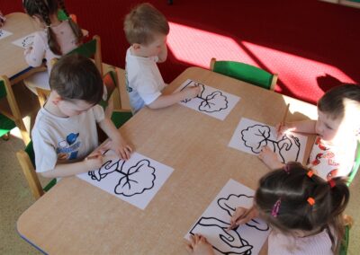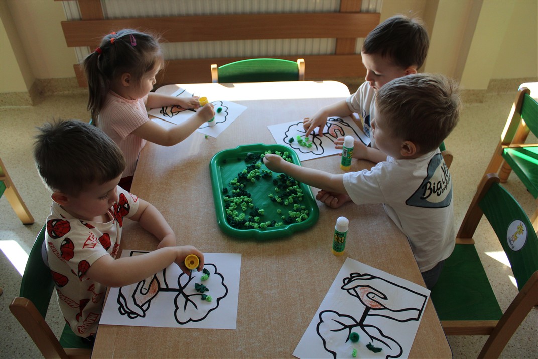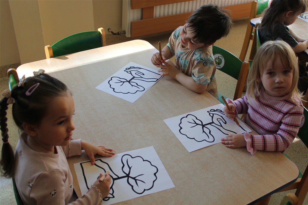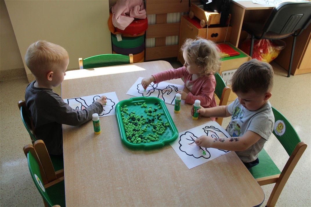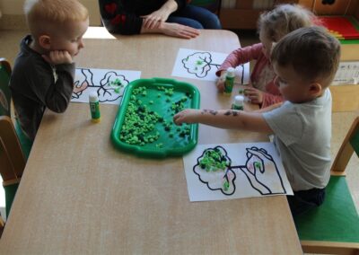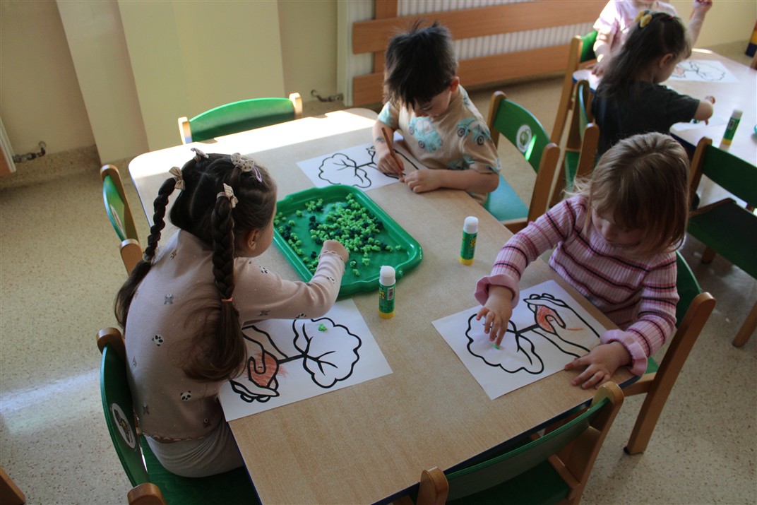 - kolorowały obrazek drzewa i przyklejały zieloną bibułę na liście