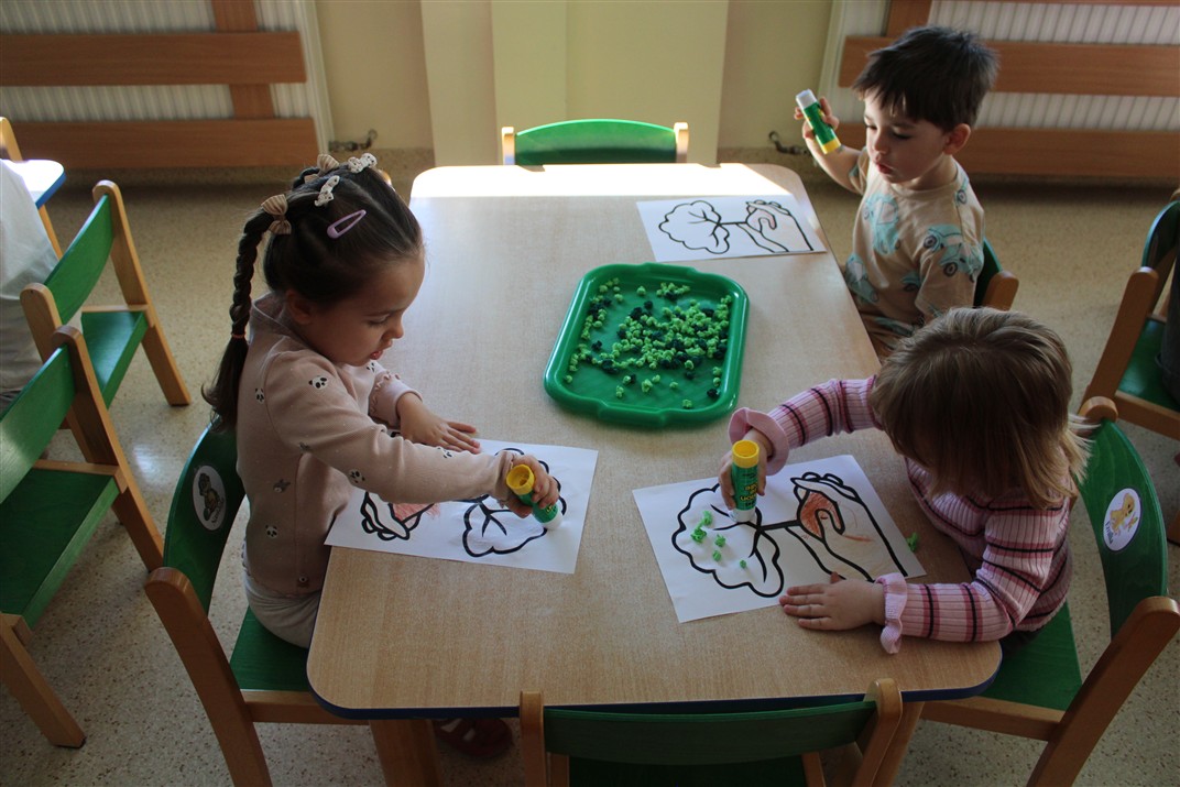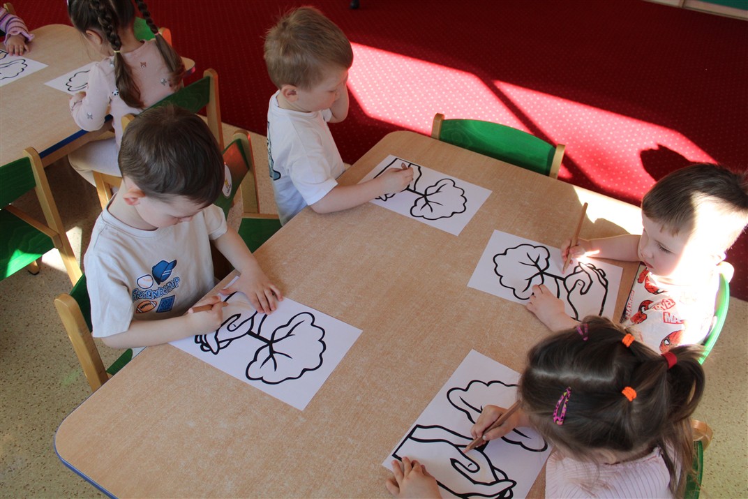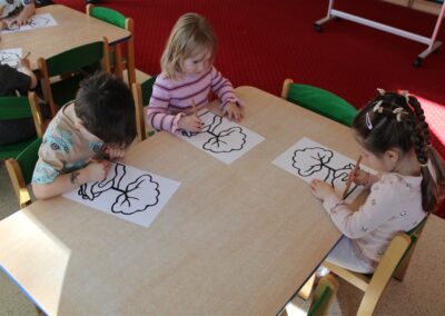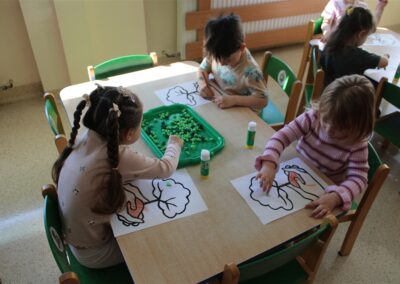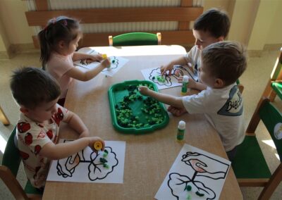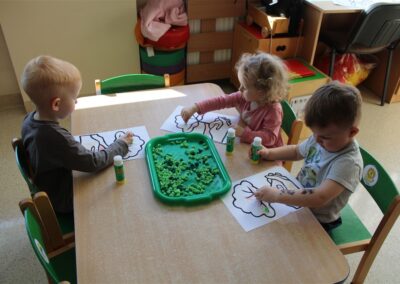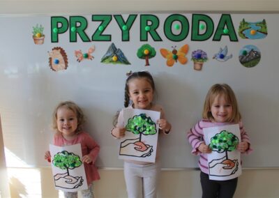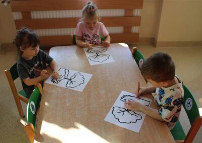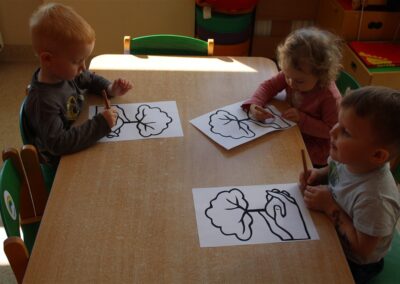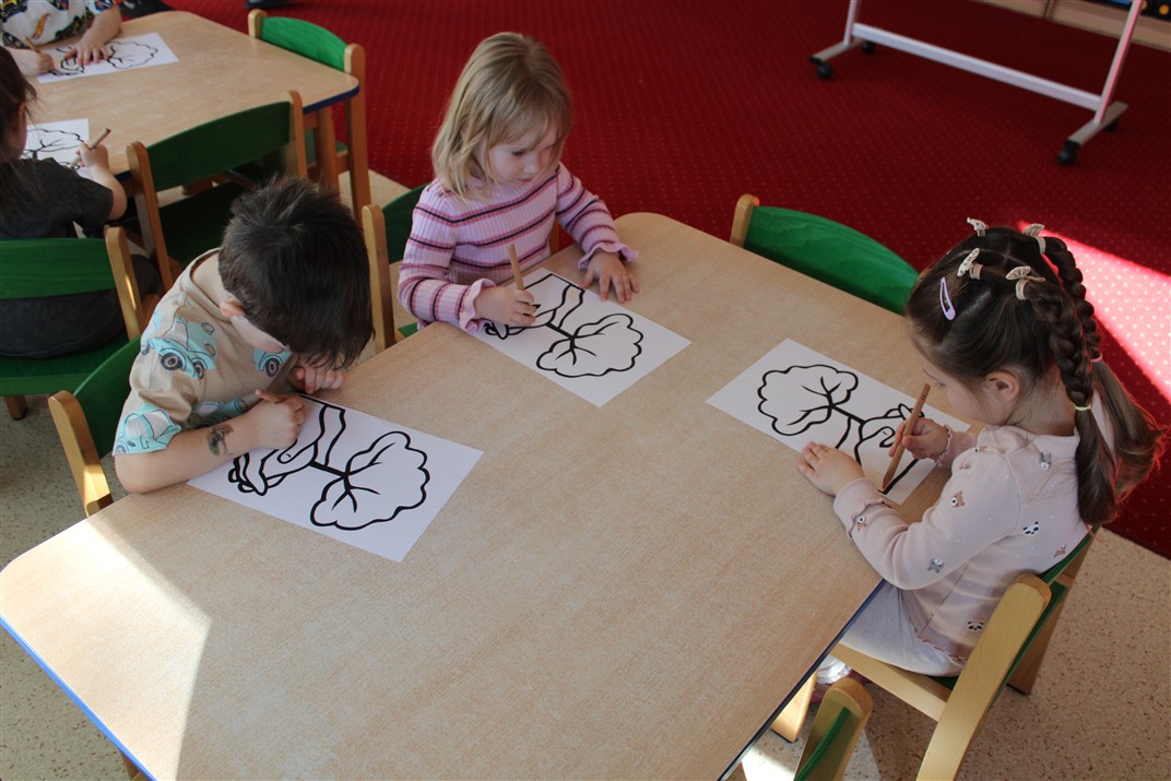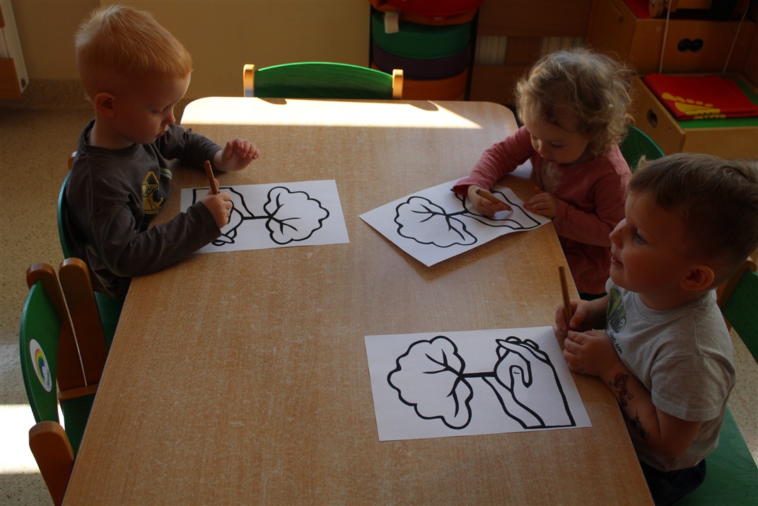 - kolorowały obrazek drzewa i przyklejały zieloną bibułę na liście