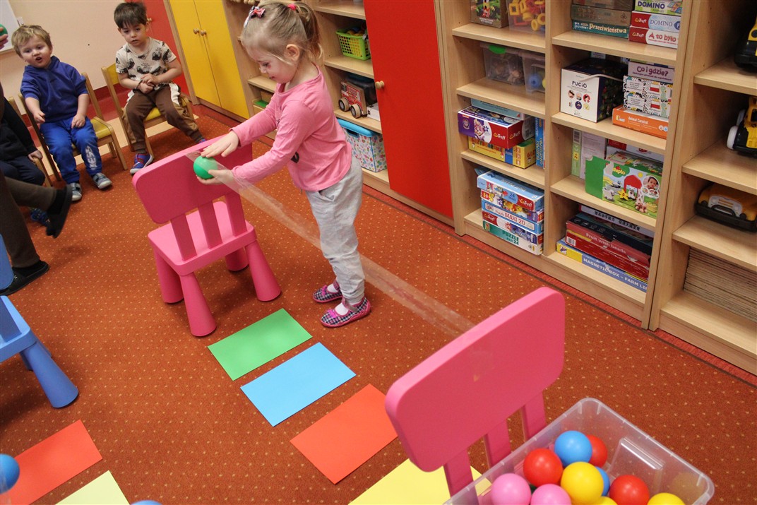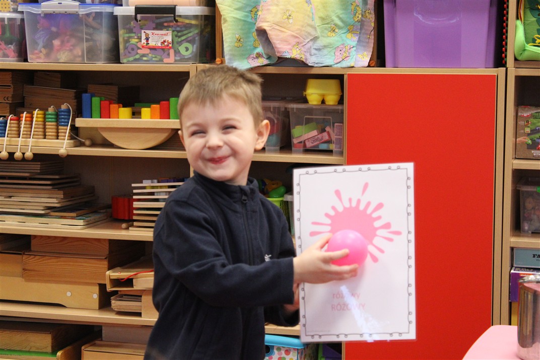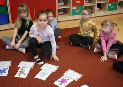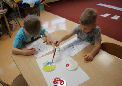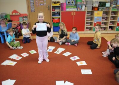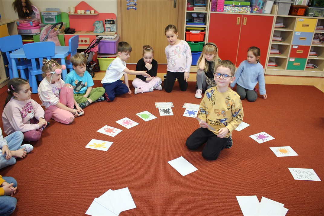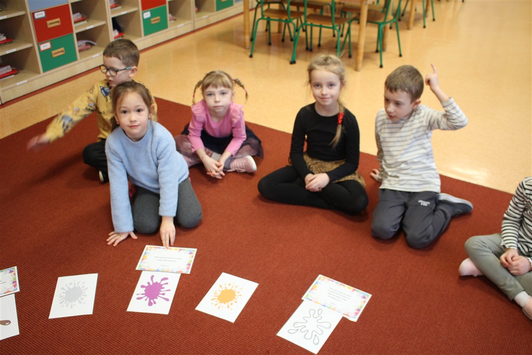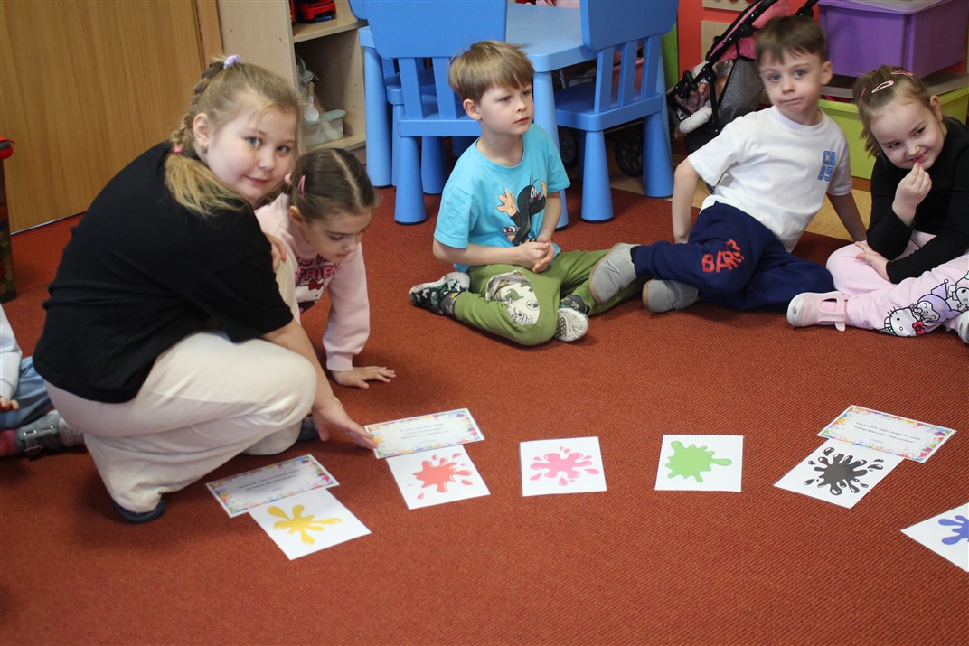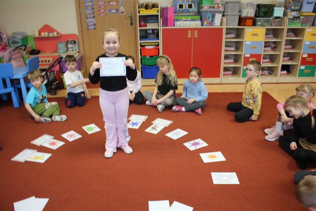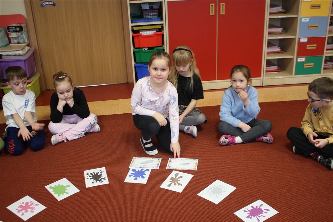 • Rozpoznawały i nazywały podstawowe kolory – dzieci młodsze oraz kolory pochodne – dzieci starsze