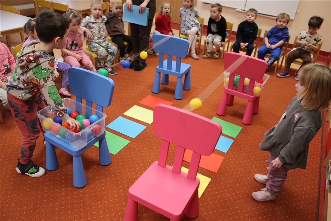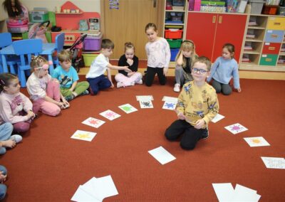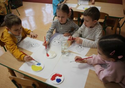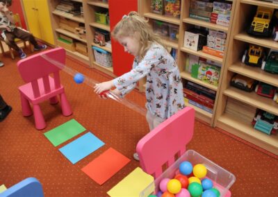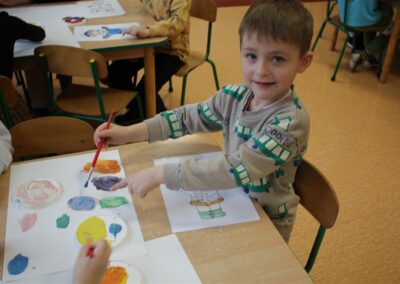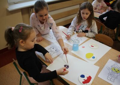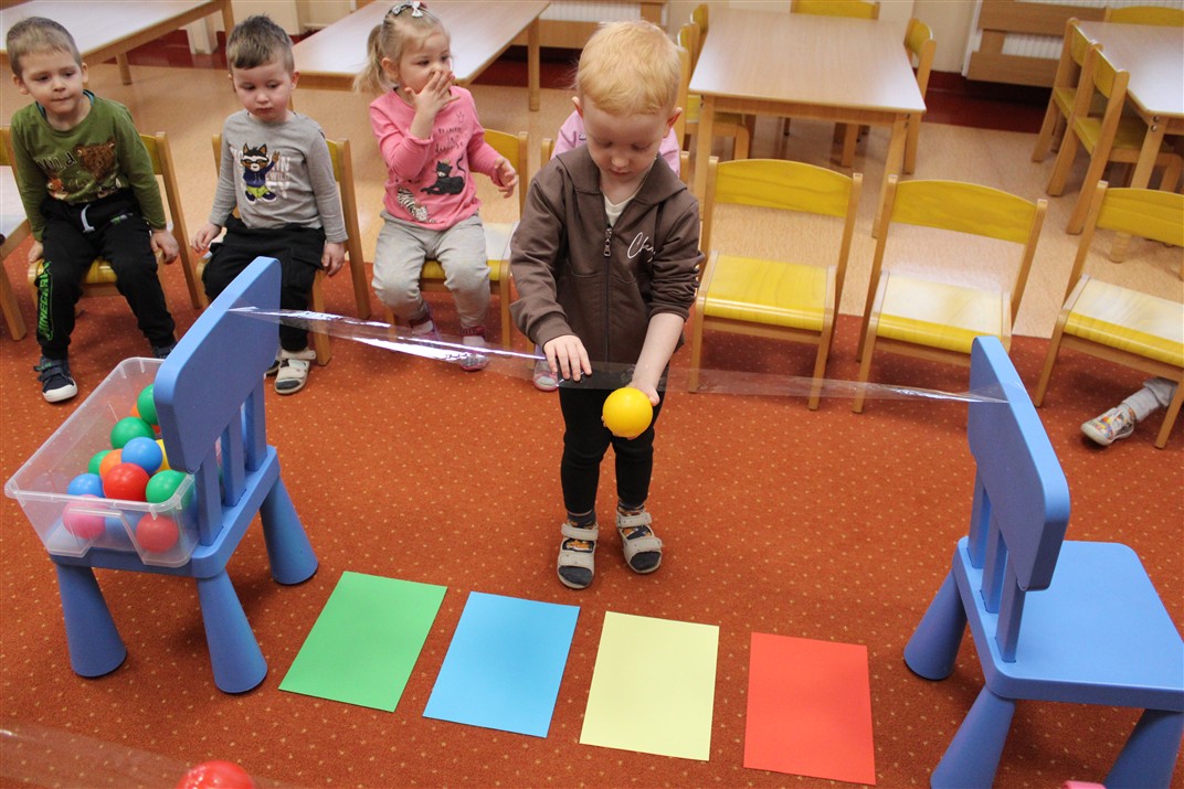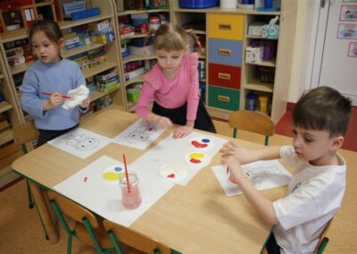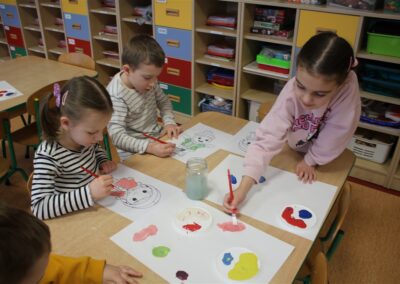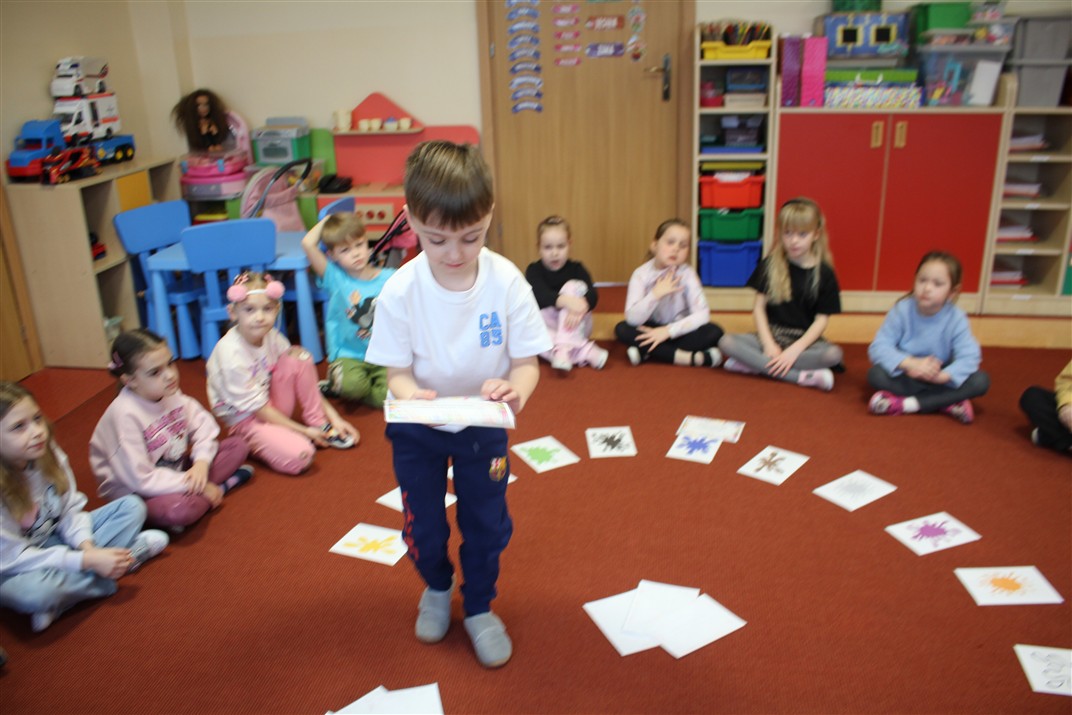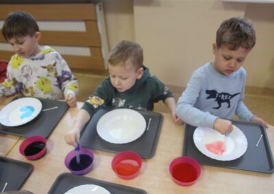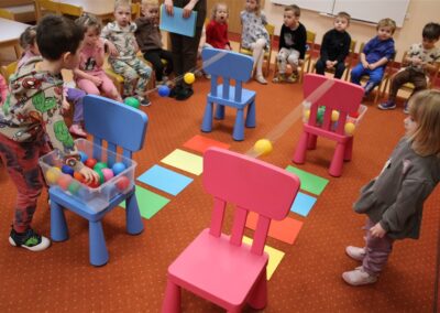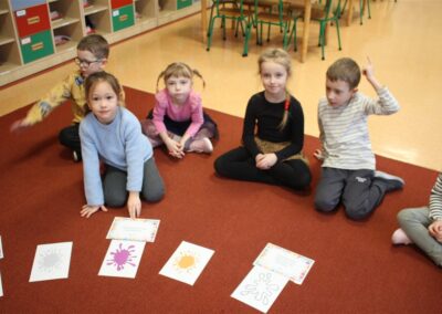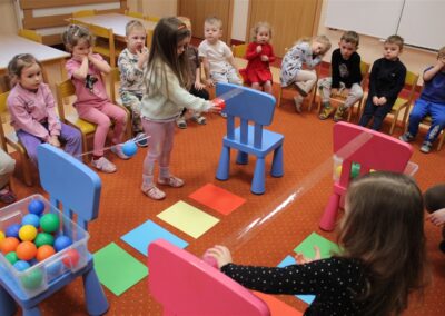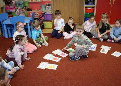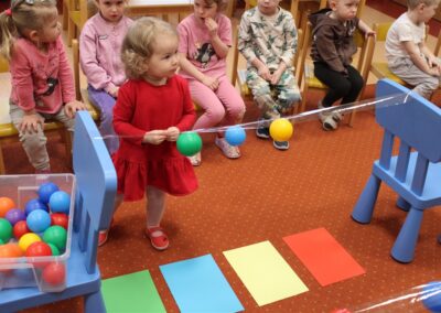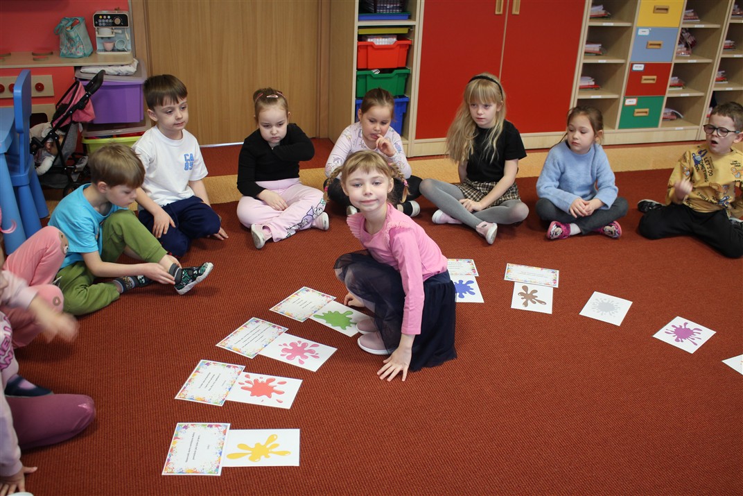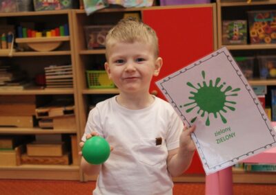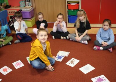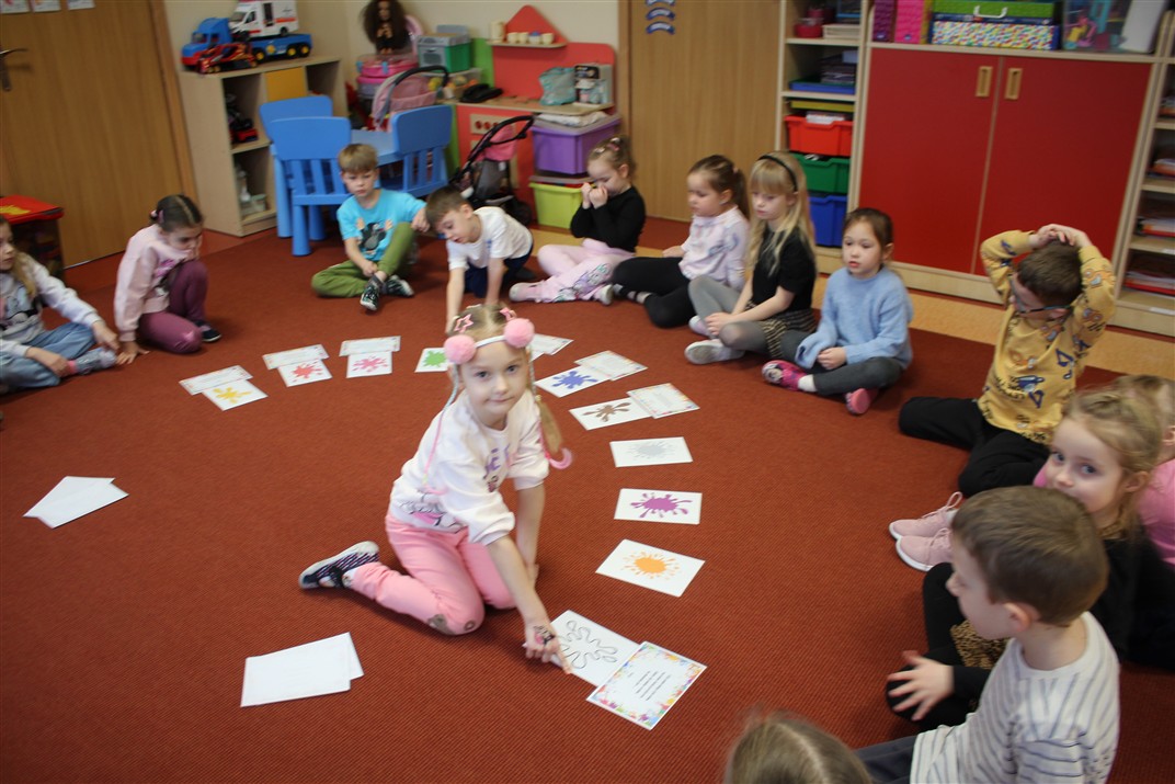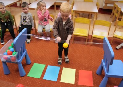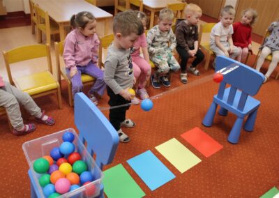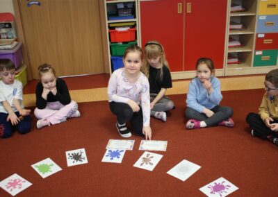 • Rozpoznawały i nazywały podstawowe kolory – dzieci młodsze oraz kolory pochodne – dzieci starsze