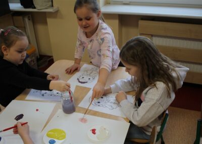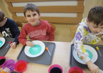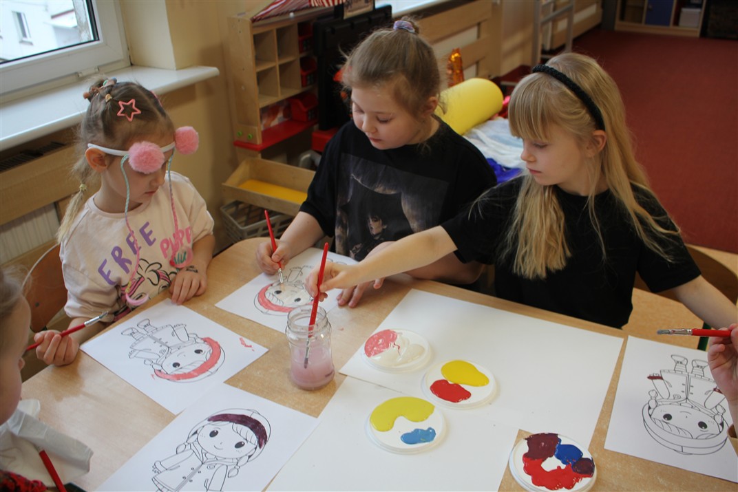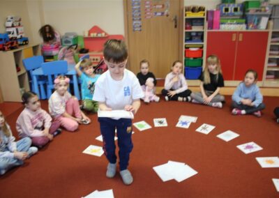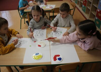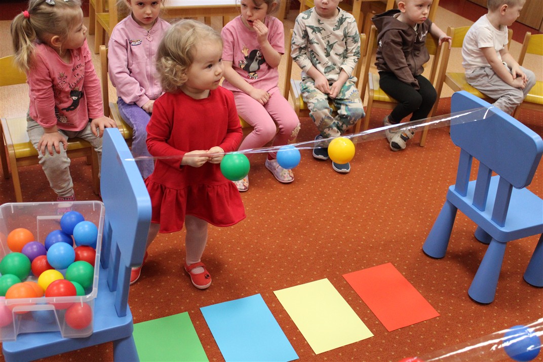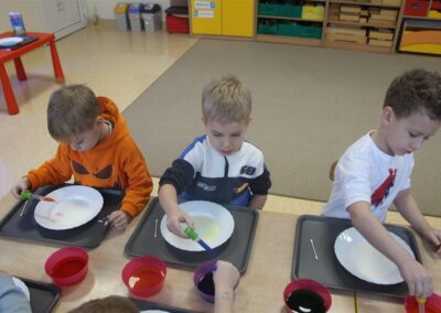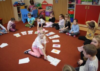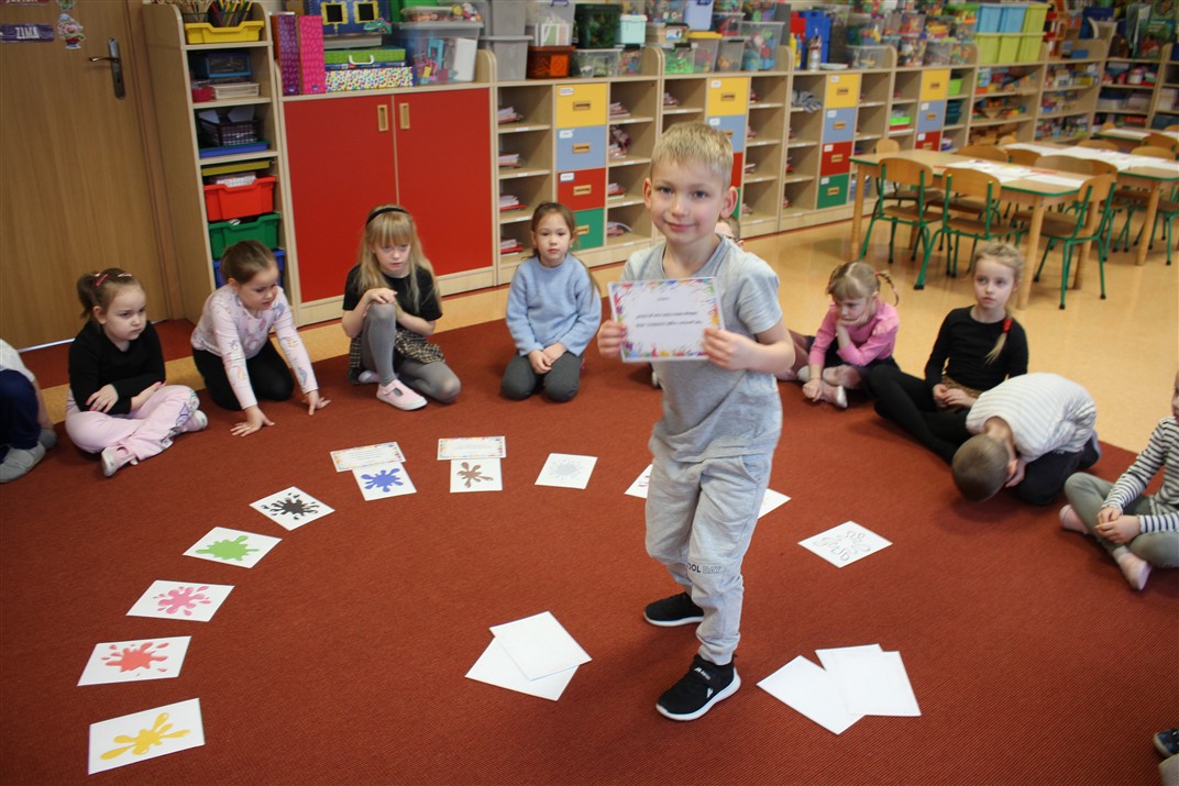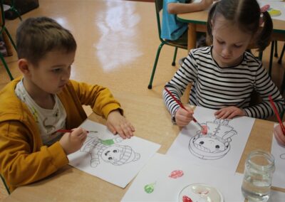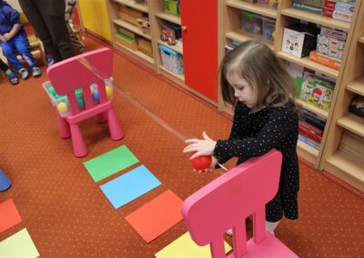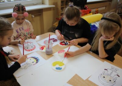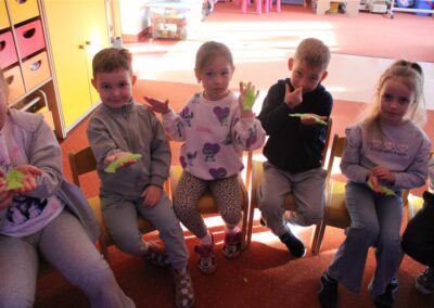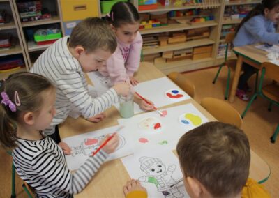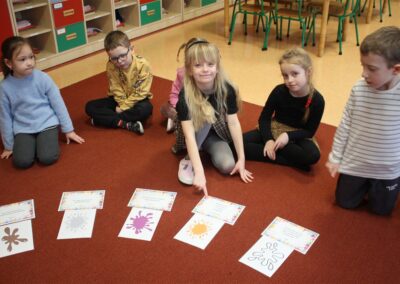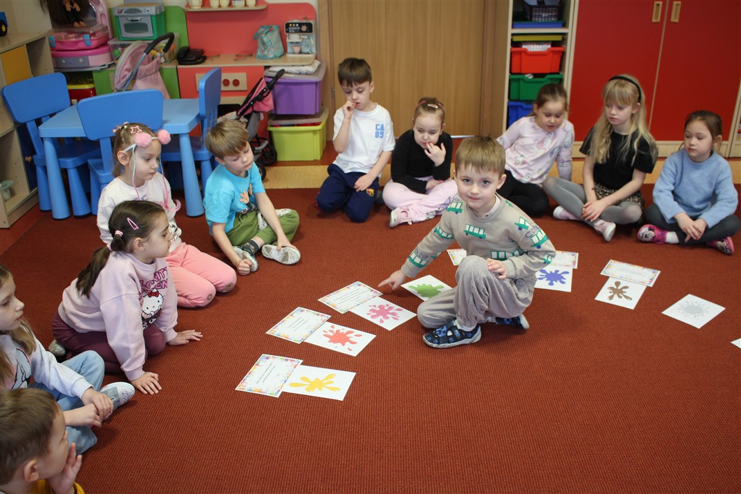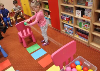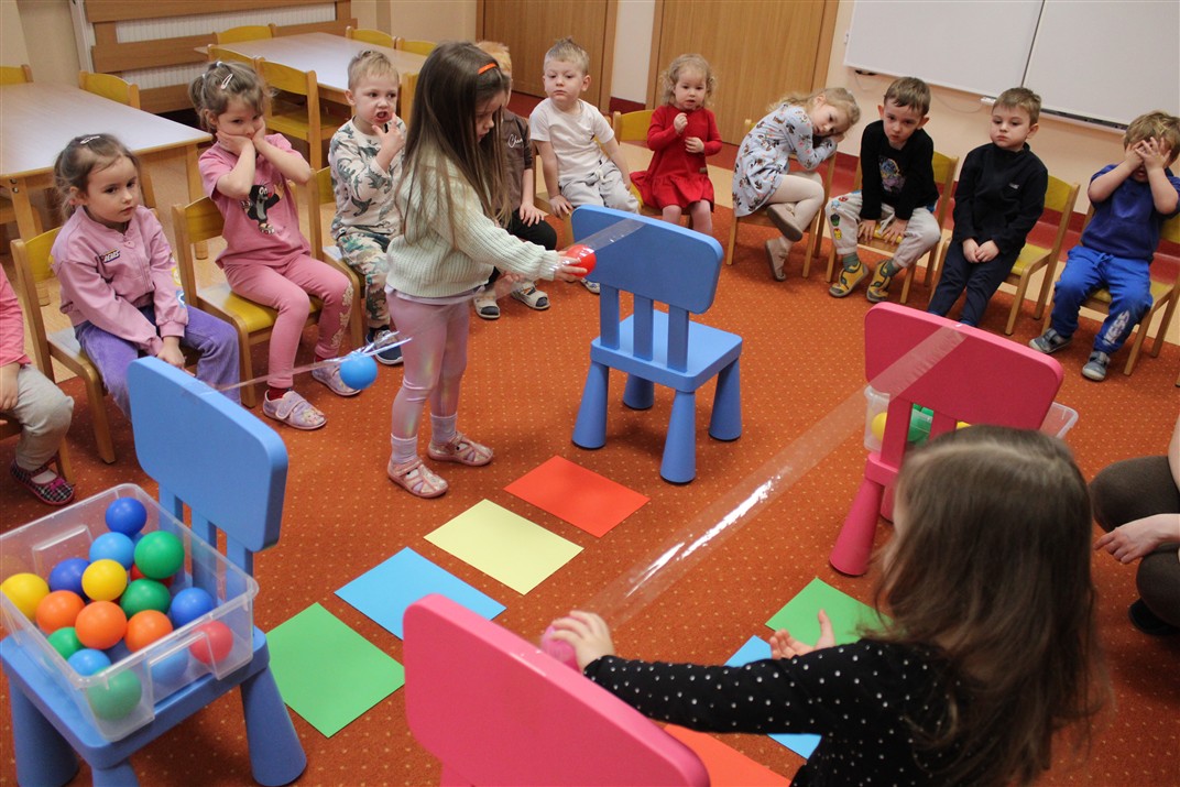 • Rozpoznawały i nazywały podstawowe kolory – dzieci młodsze oraz kolory pochodne – dzieci starsze