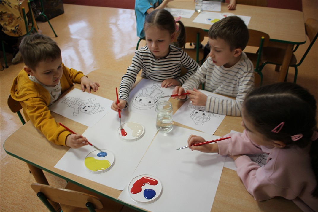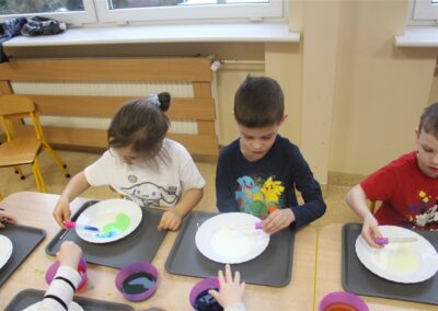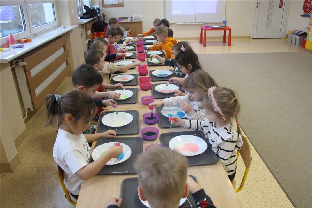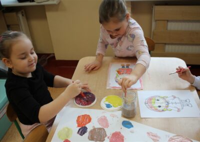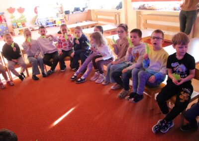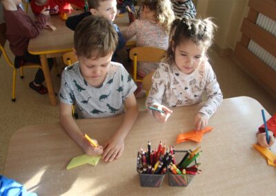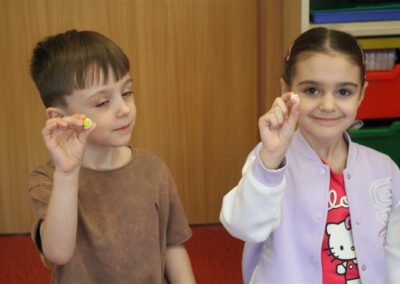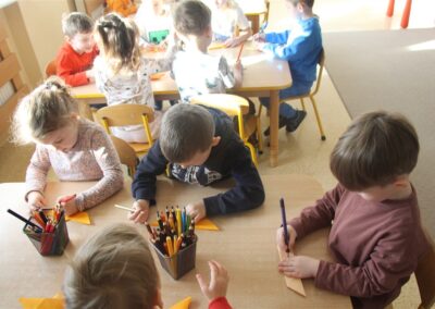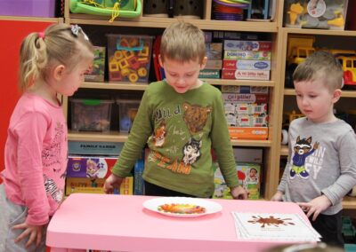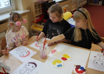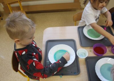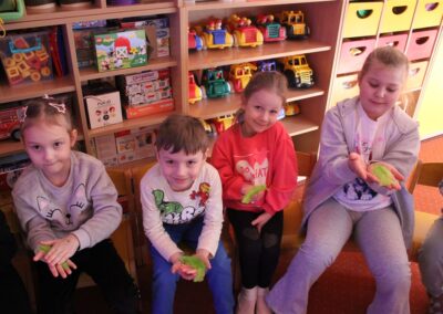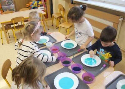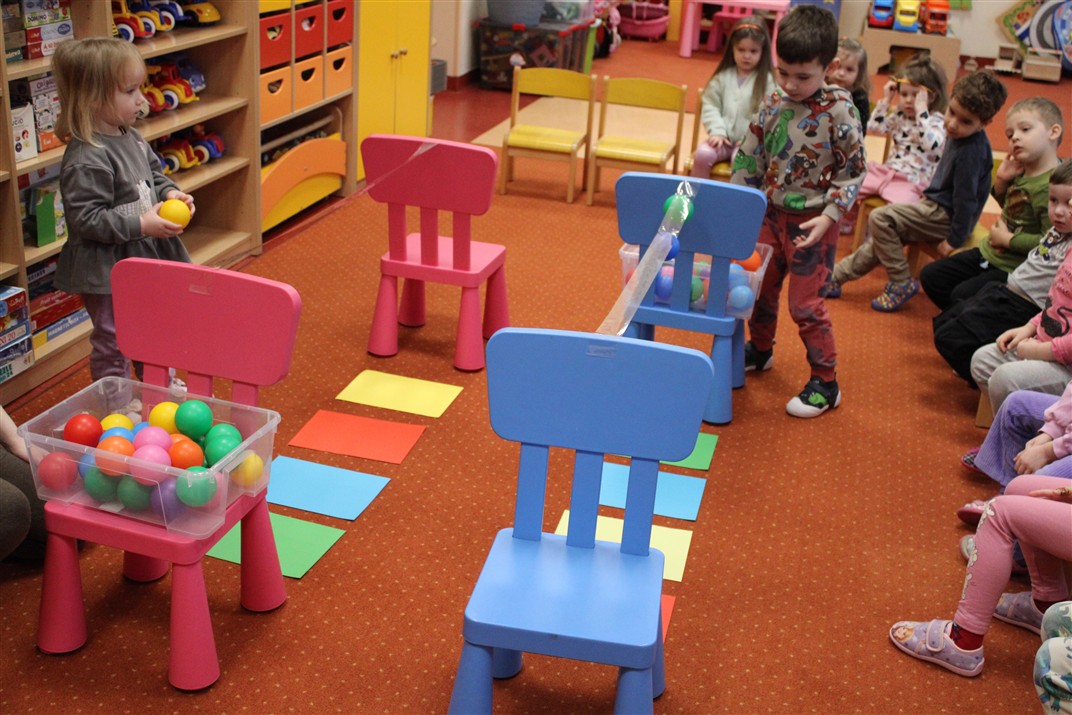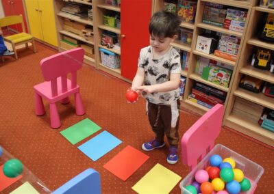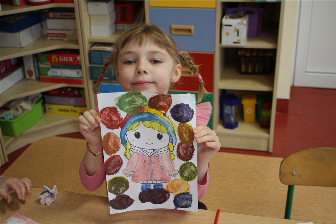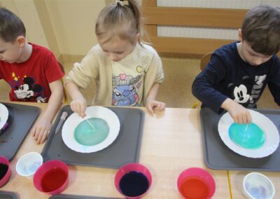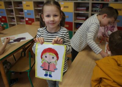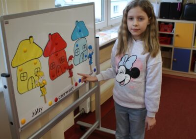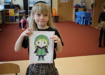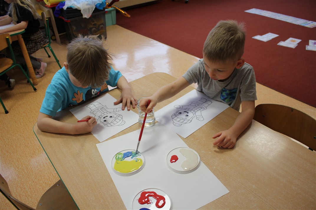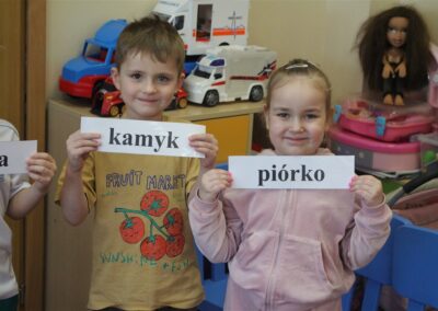 • Rozpoznawały i nazywały podstawowe kolory – dzieci młodsze oraz kolory pochodne – dzieci starsze