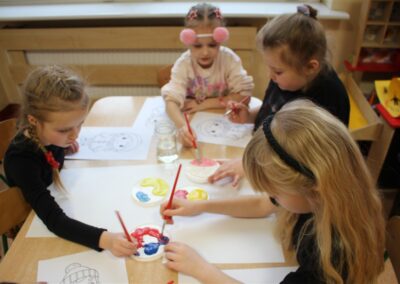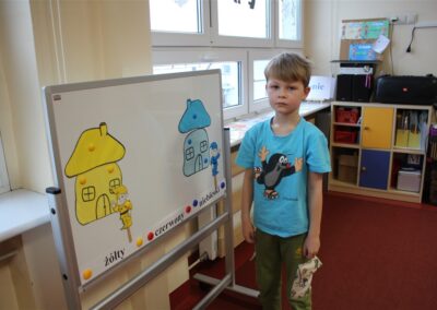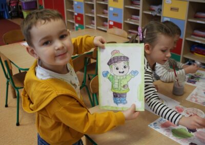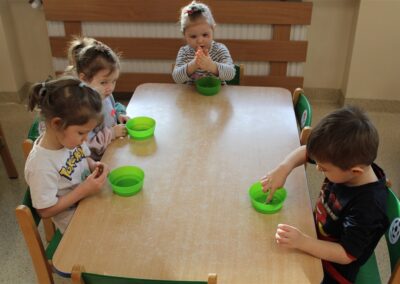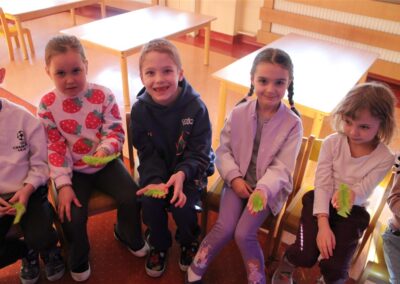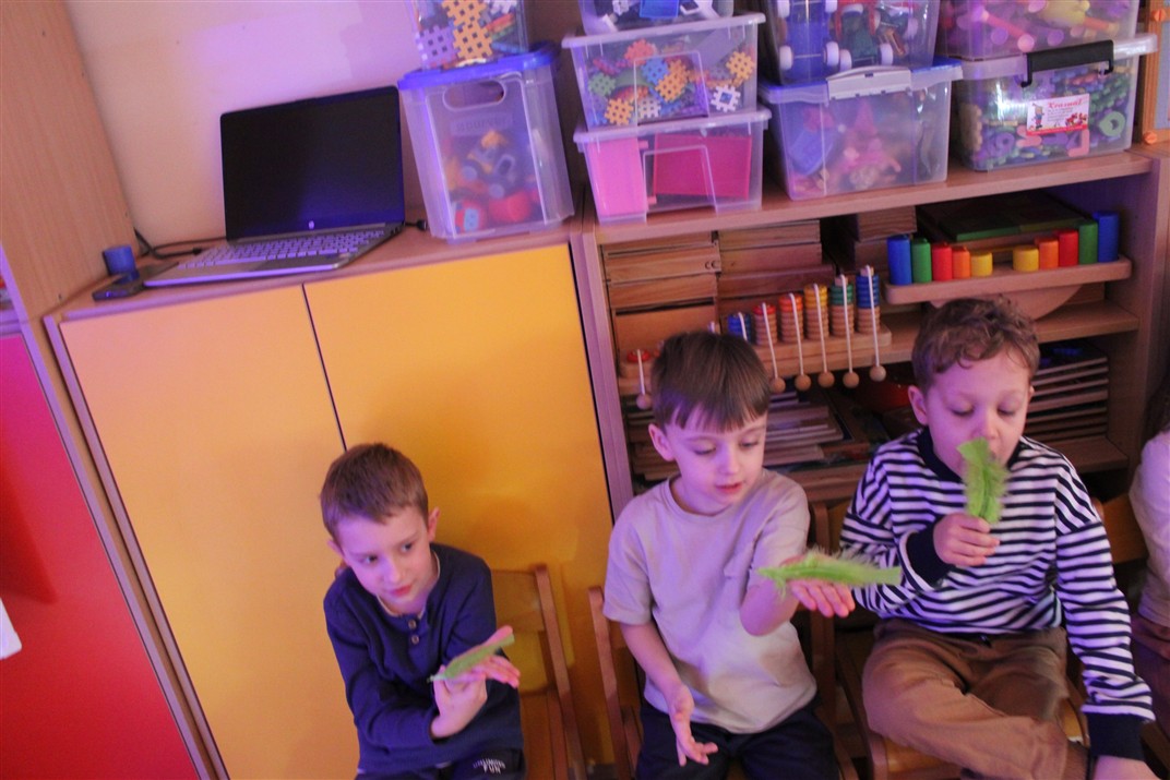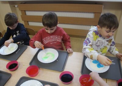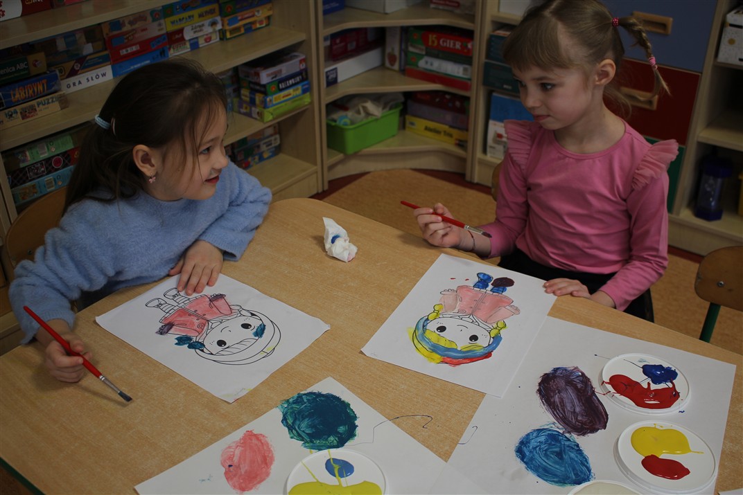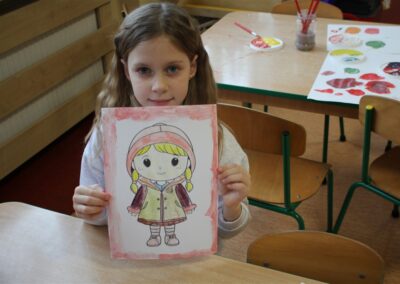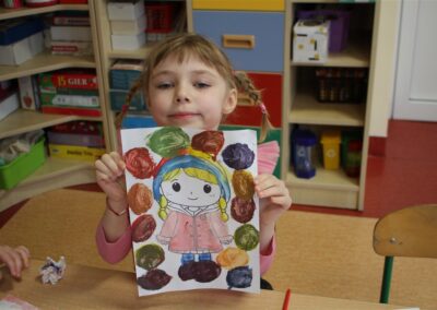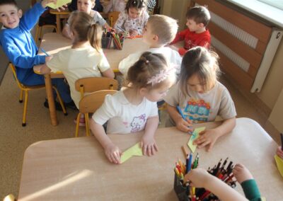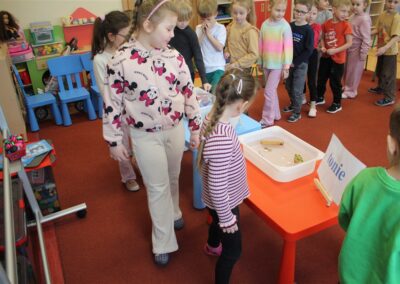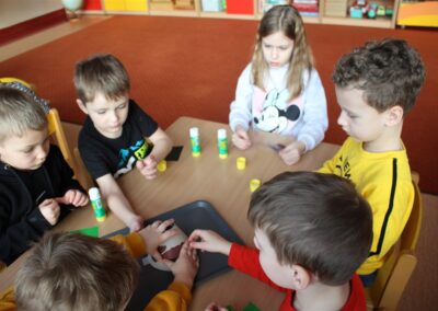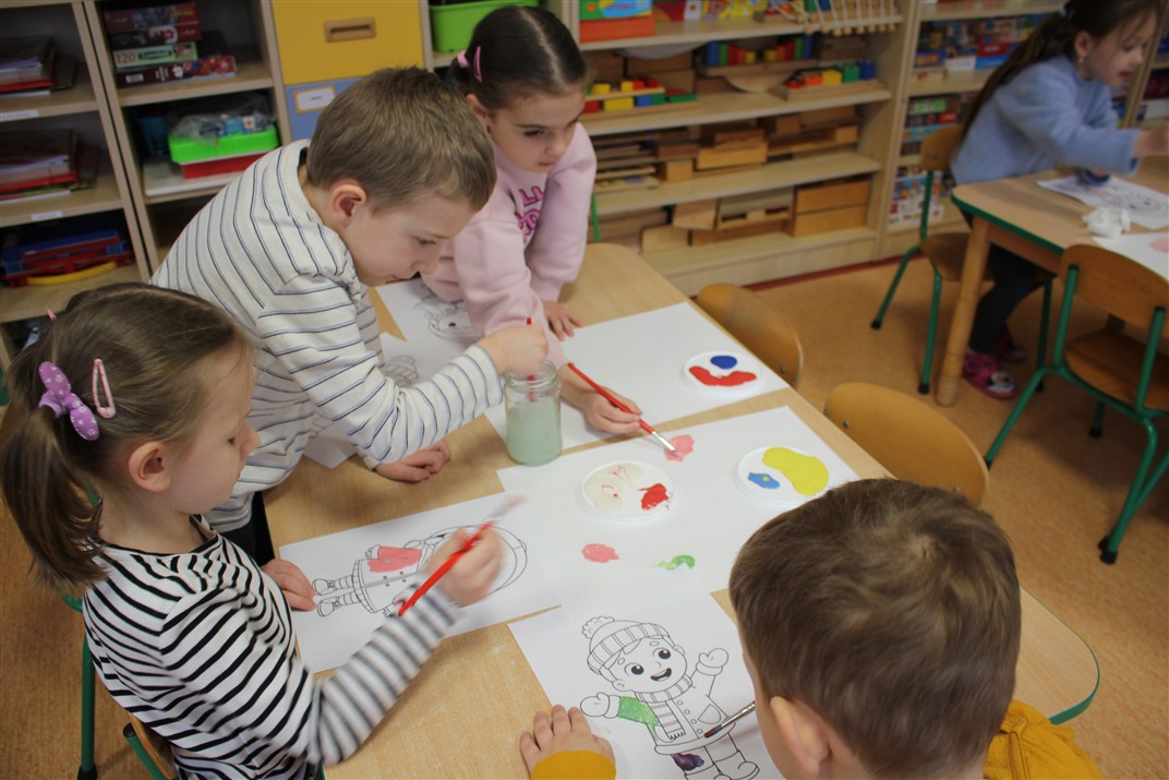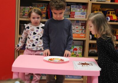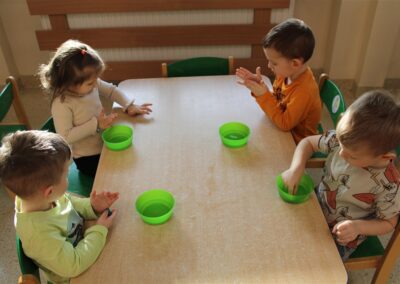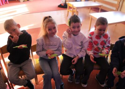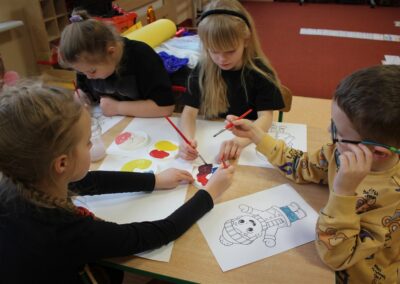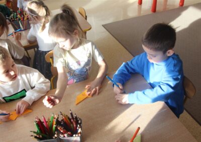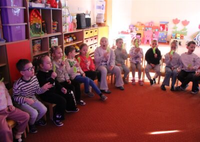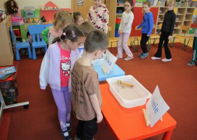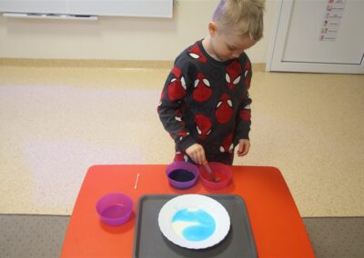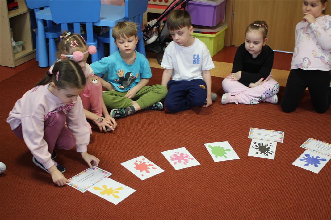 • Rozpoznawały i nazywały podstawowe kolory – dzieci młodsze oraz kolory pochodne – dzieci starsze