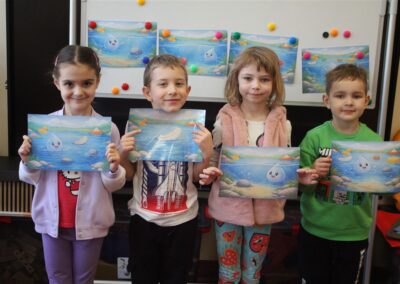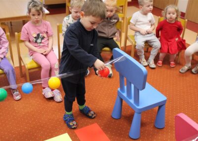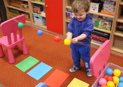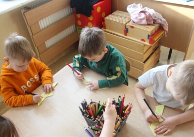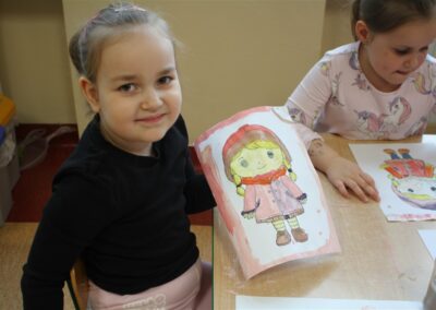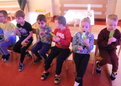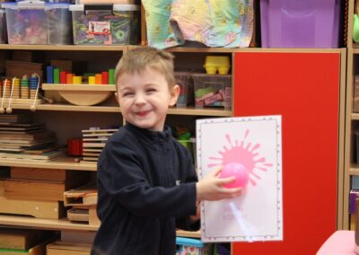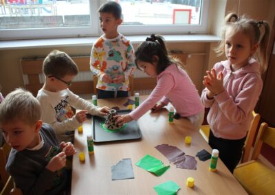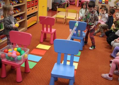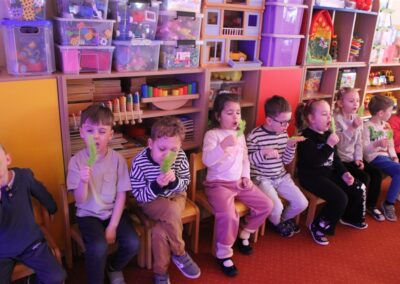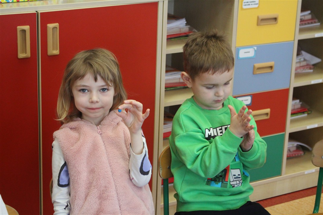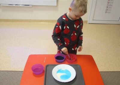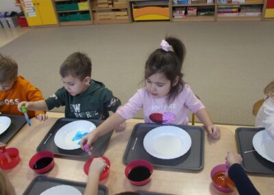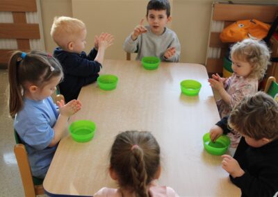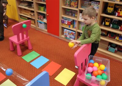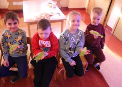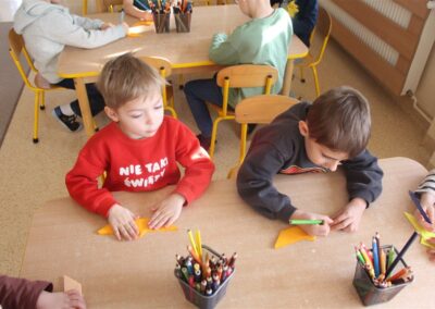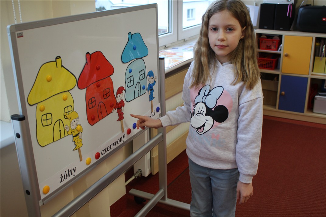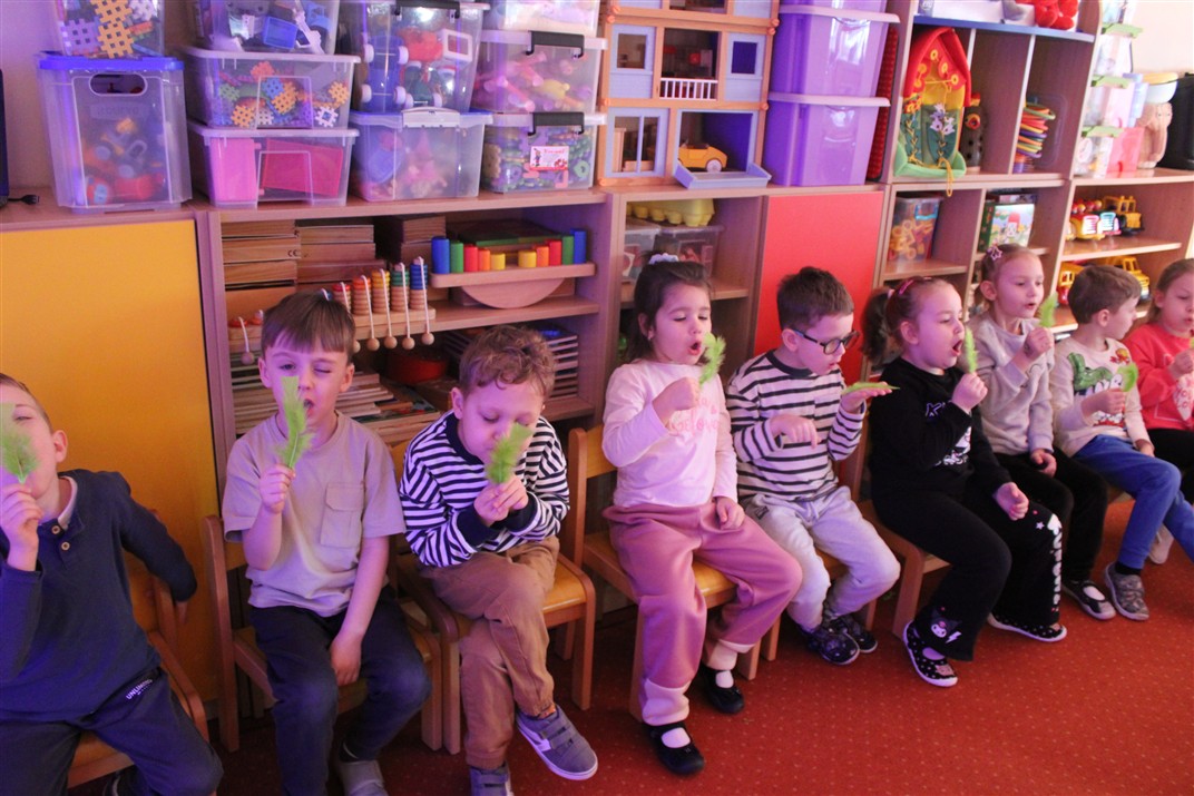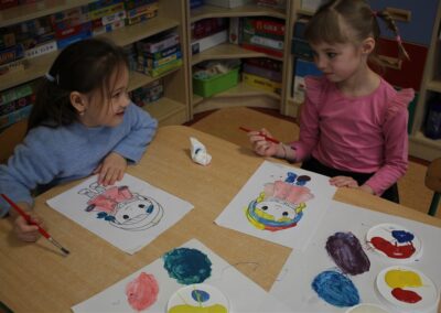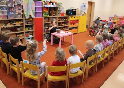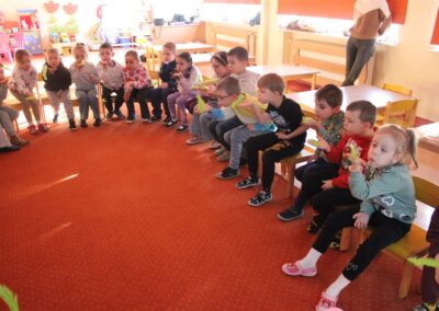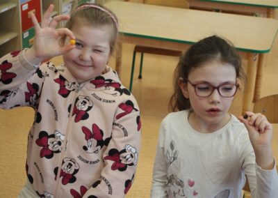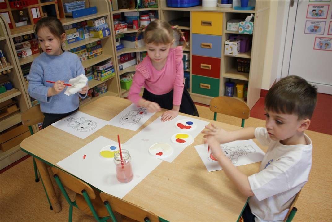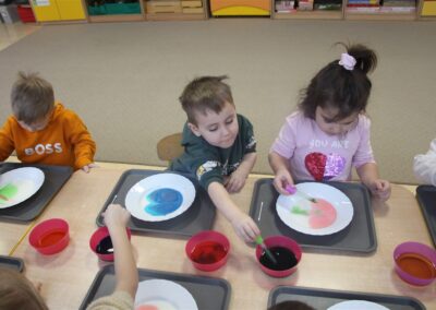• Rozpoznawały i nazywały podstawowe kolory – dzieci młodsze oraz kolory pochodne – dzieci starsze