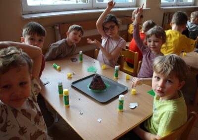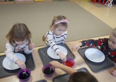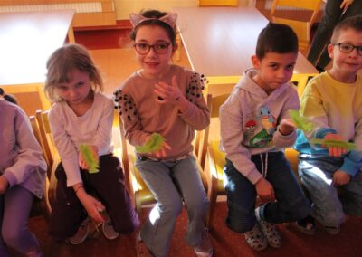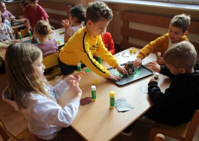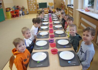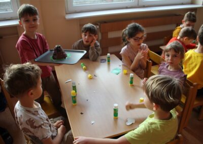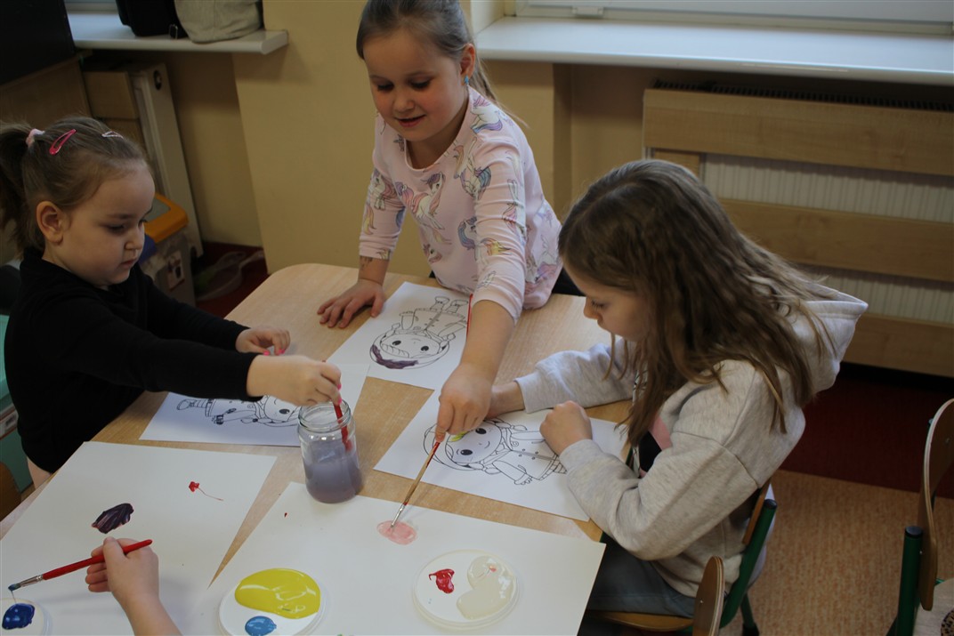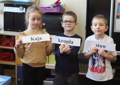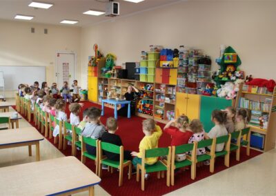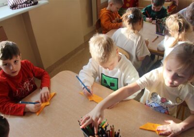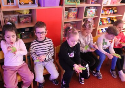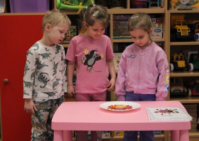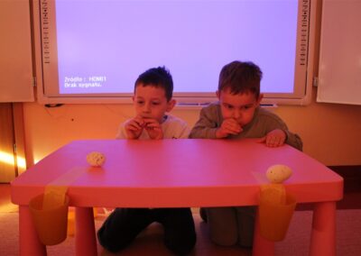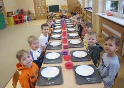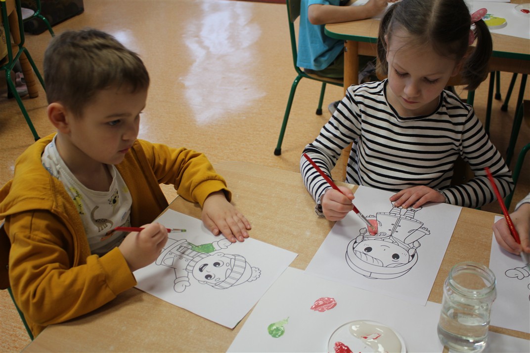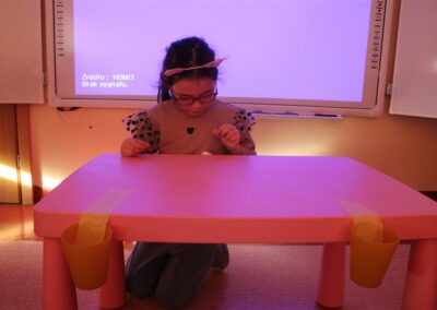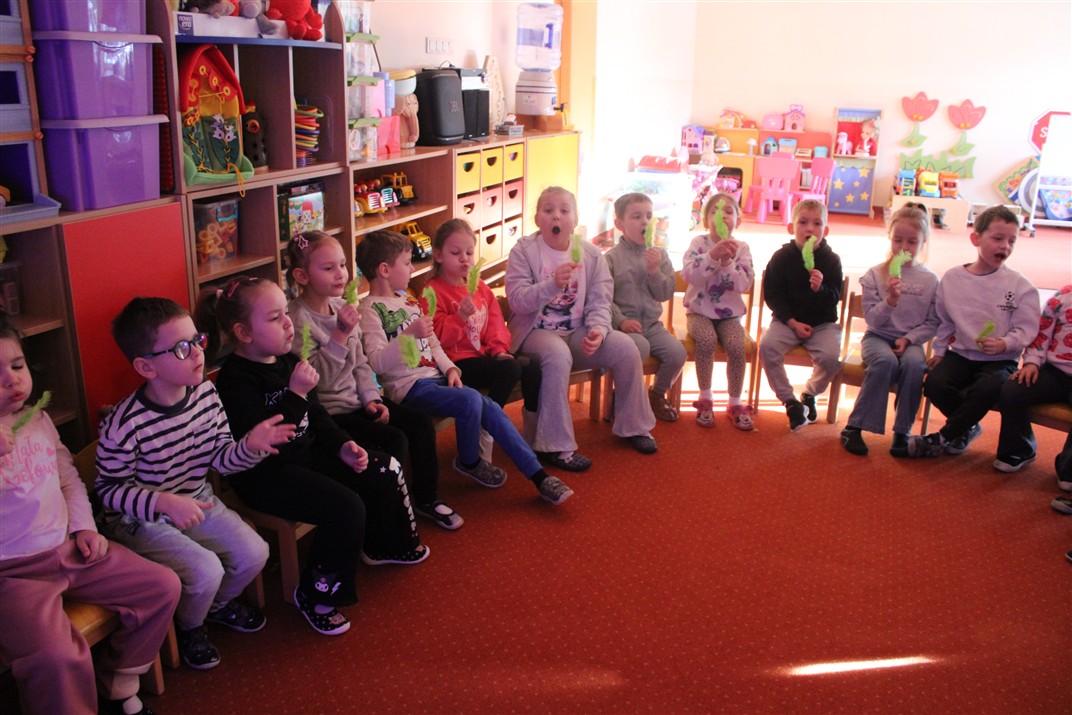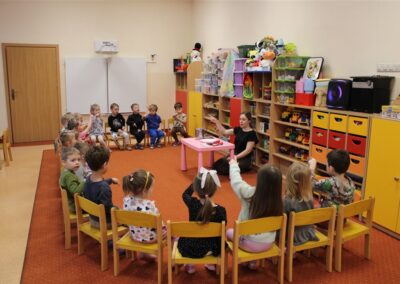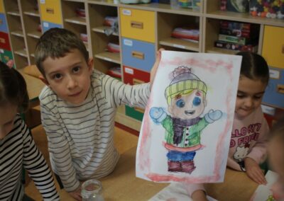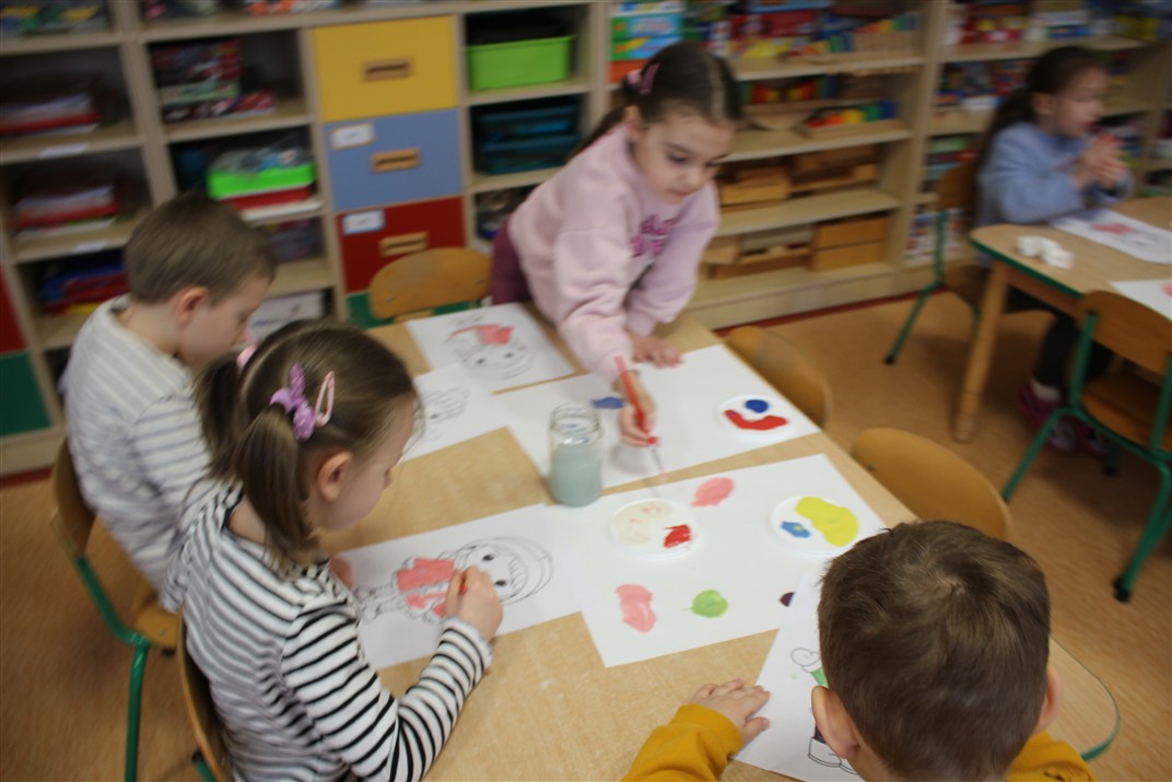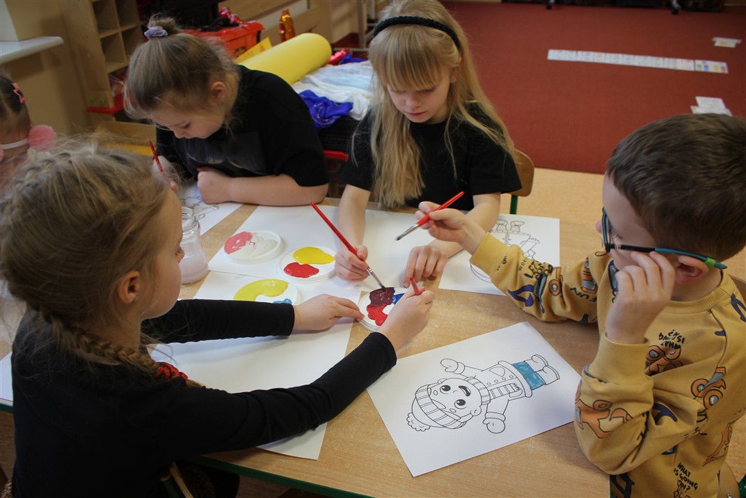 • Rozpoznawały i nazywały podstawowe kolory – dzieci młodsze oraz kolory pochodne – dzieci starsze