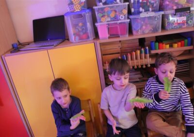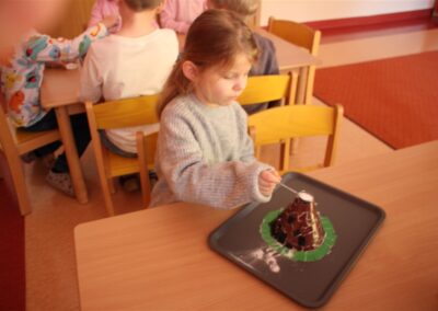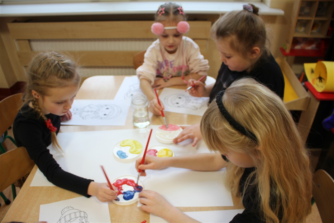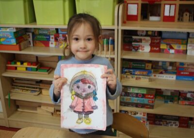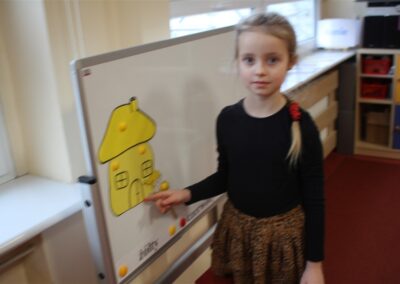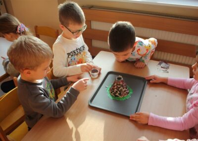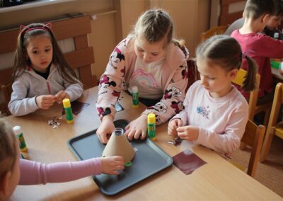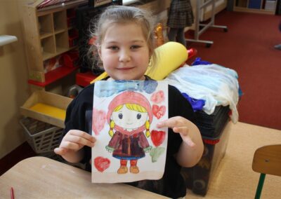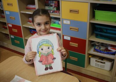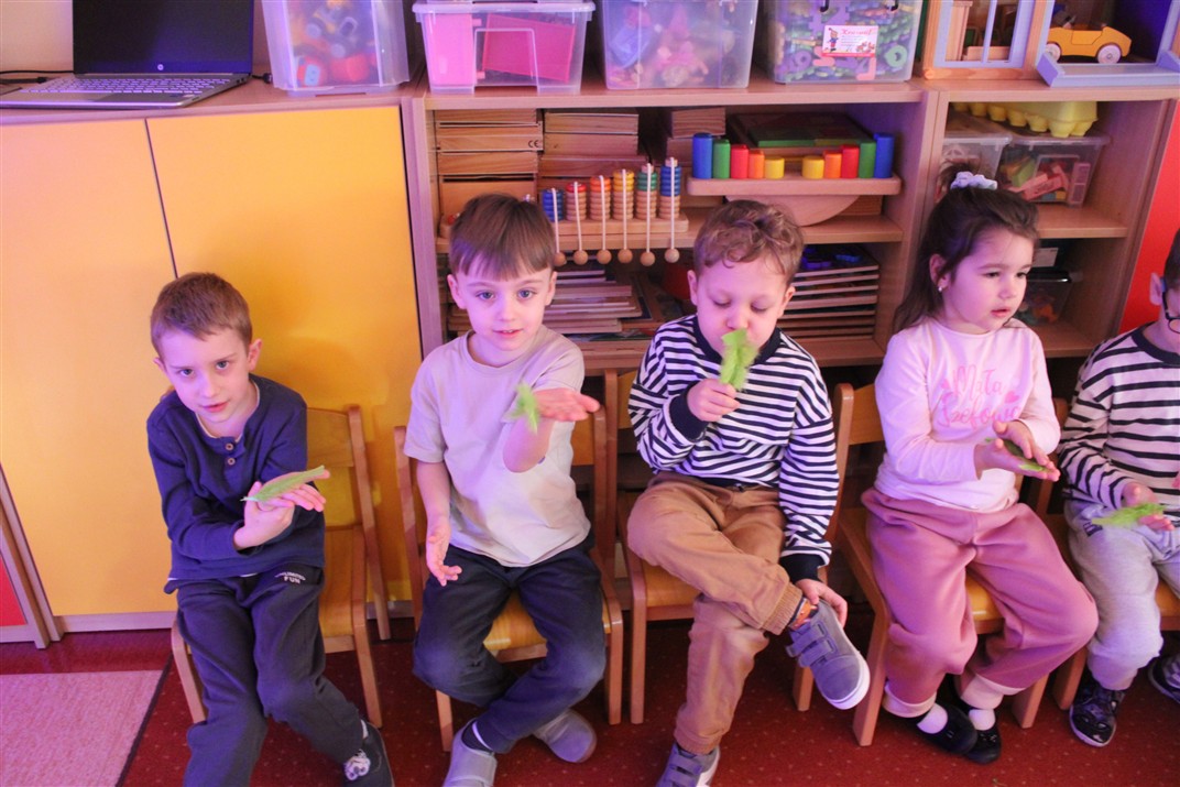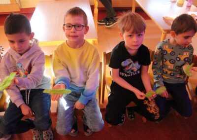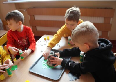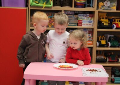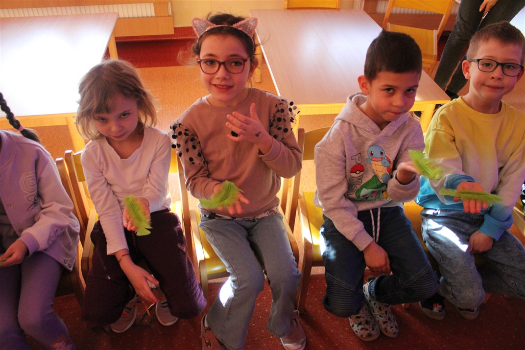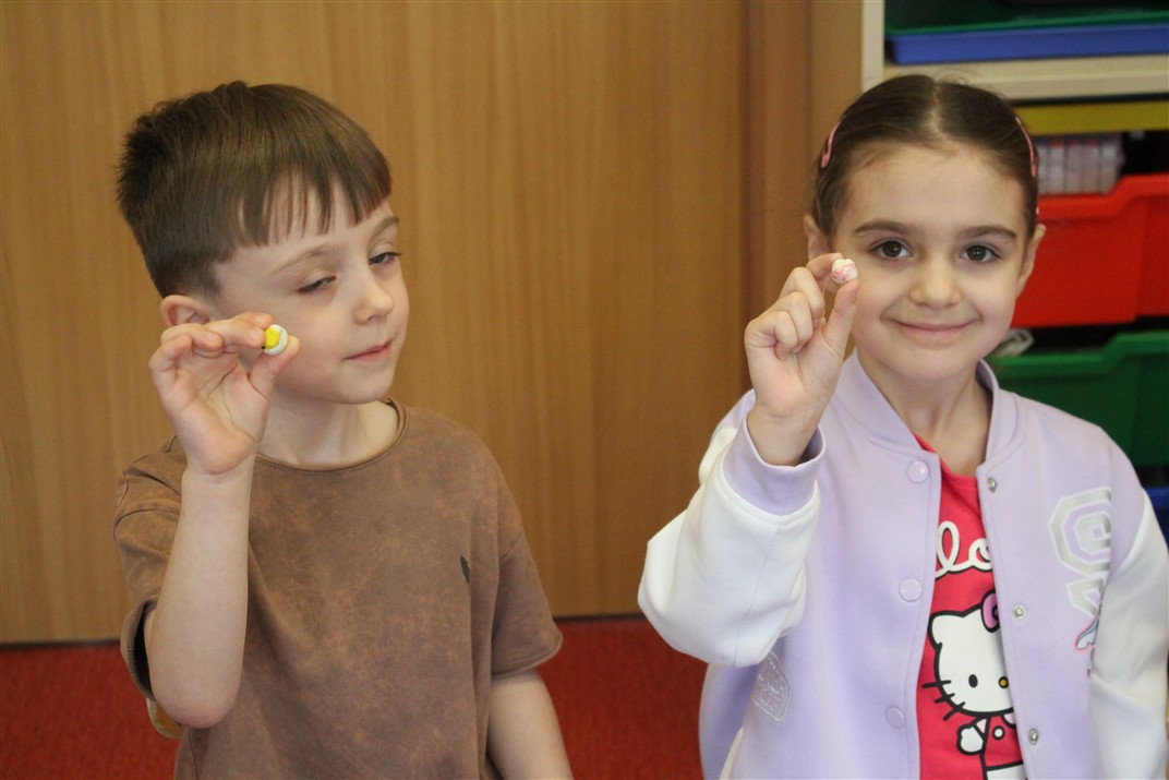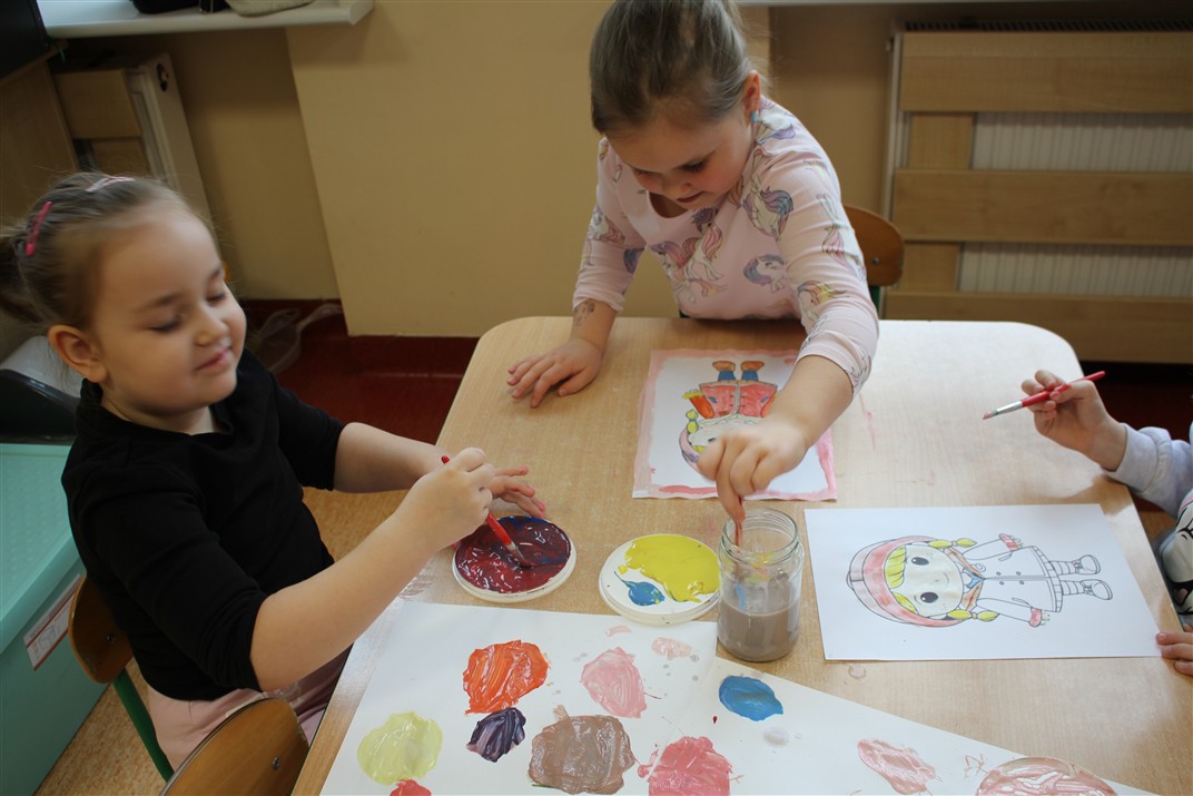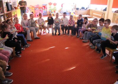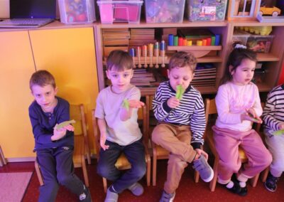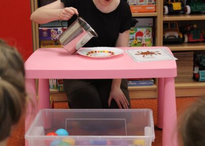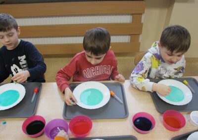 • Rozpoznawały i nazywały podstawowe kolory – dzieci młodsze oraz kolory pochodne – dzieci starsze