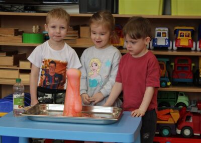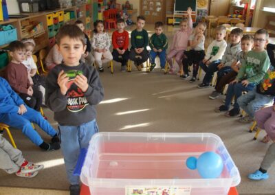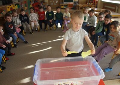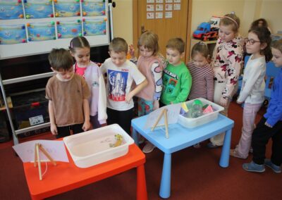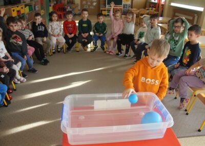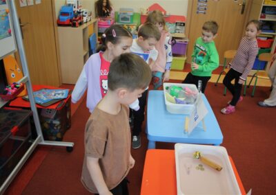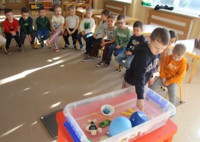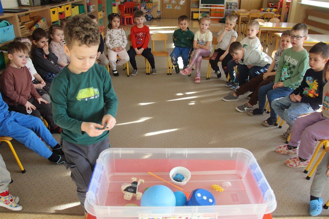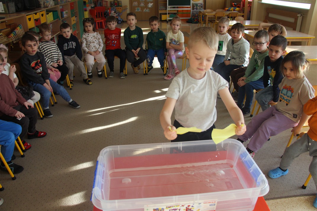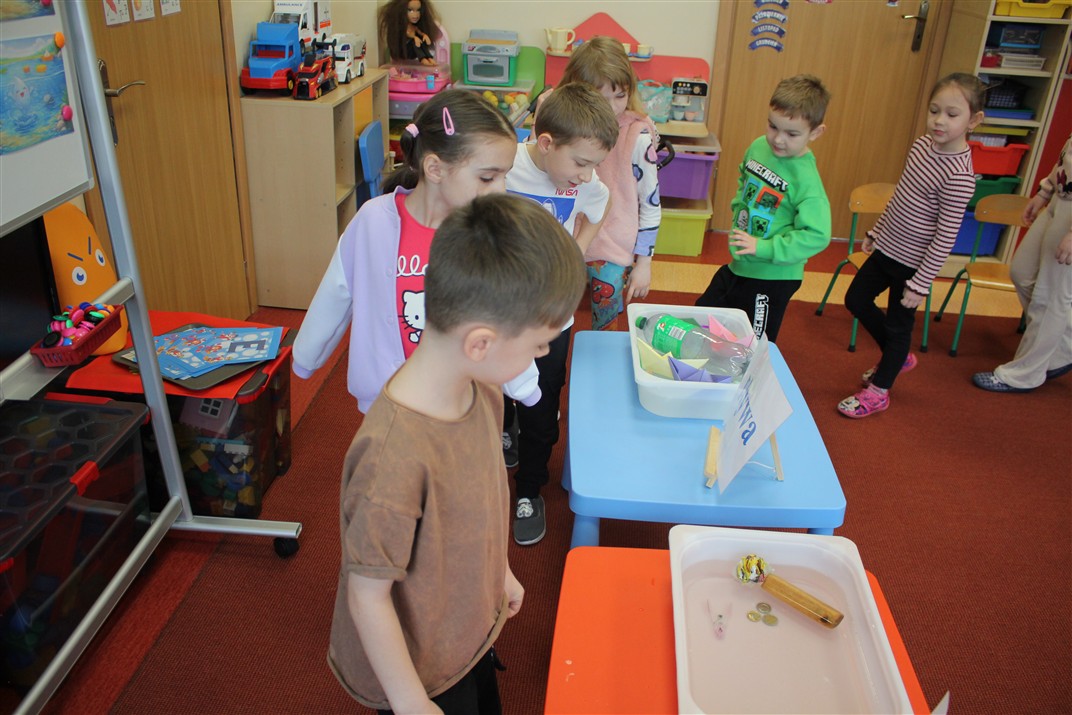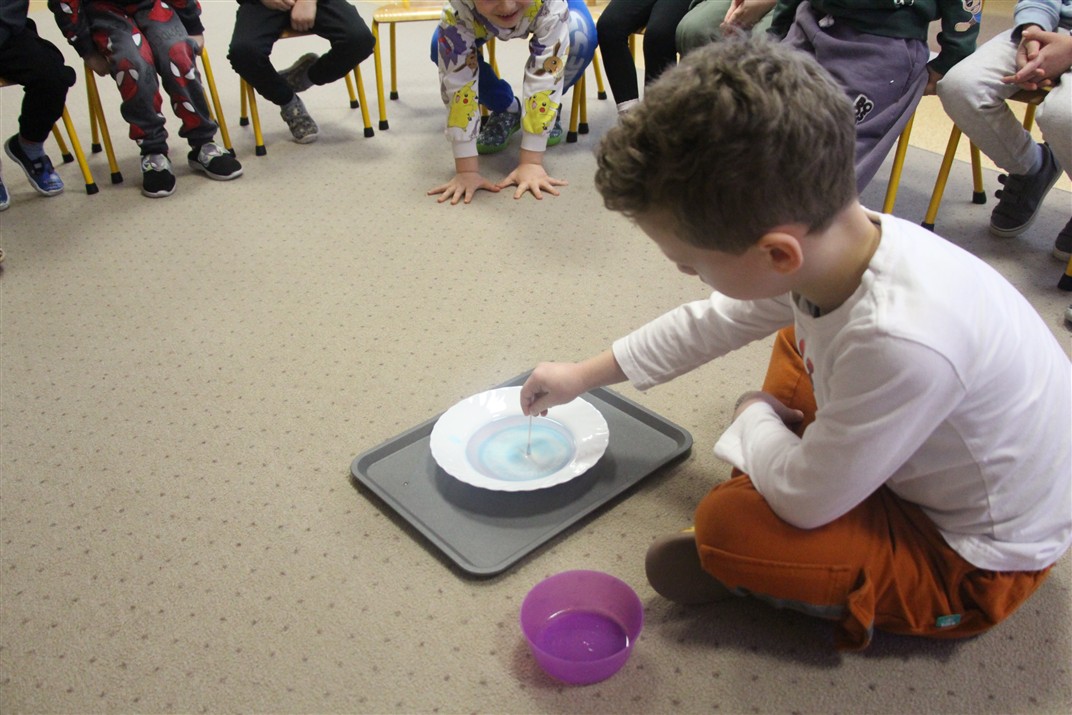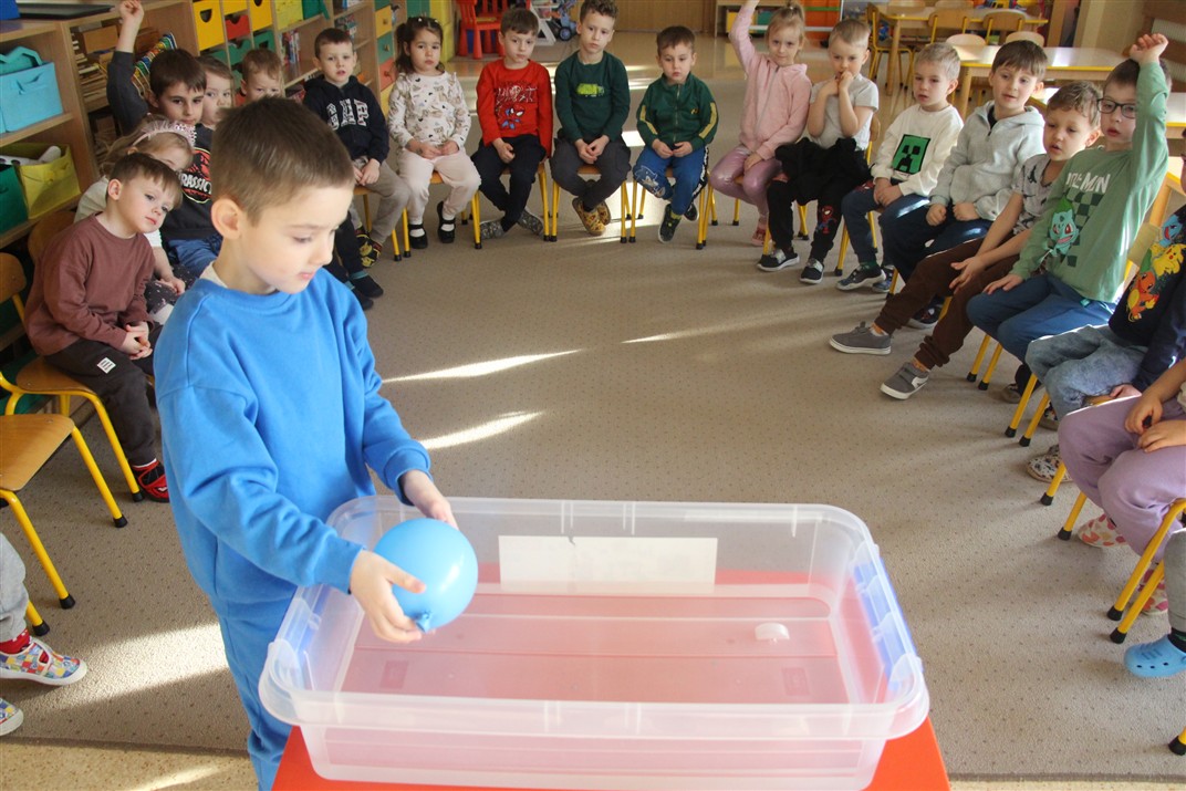 W dniach od 16.02 do 20.02 dzieci realizowały blok tematyczny „Mały naukowiec – eksperymentujemy” podczas którego: