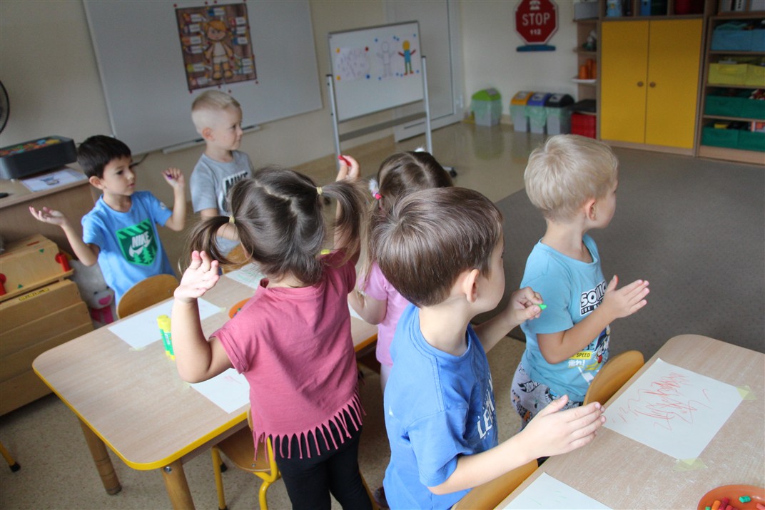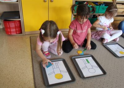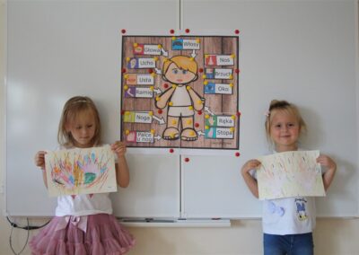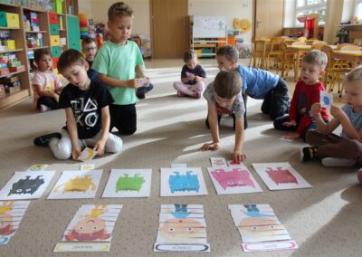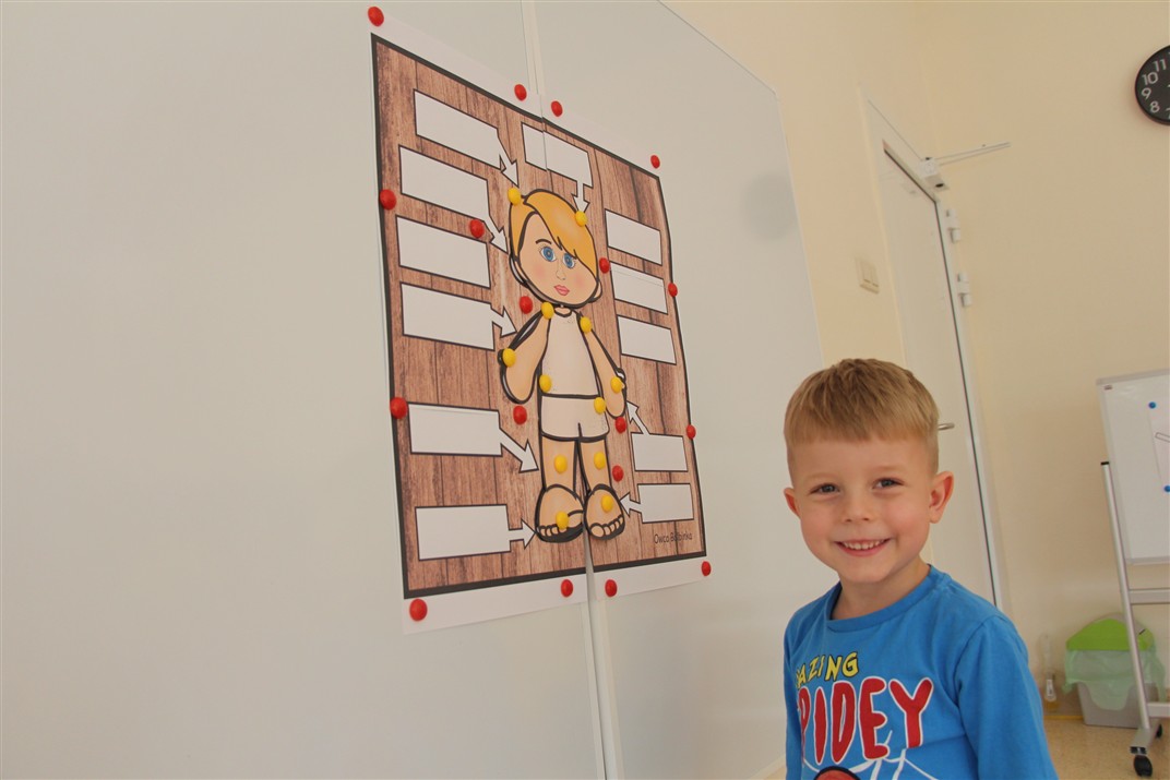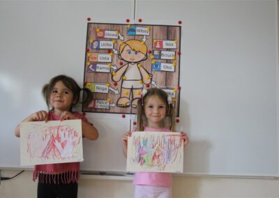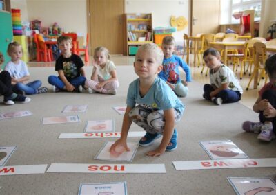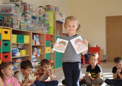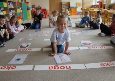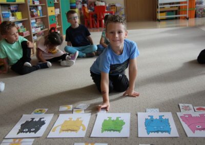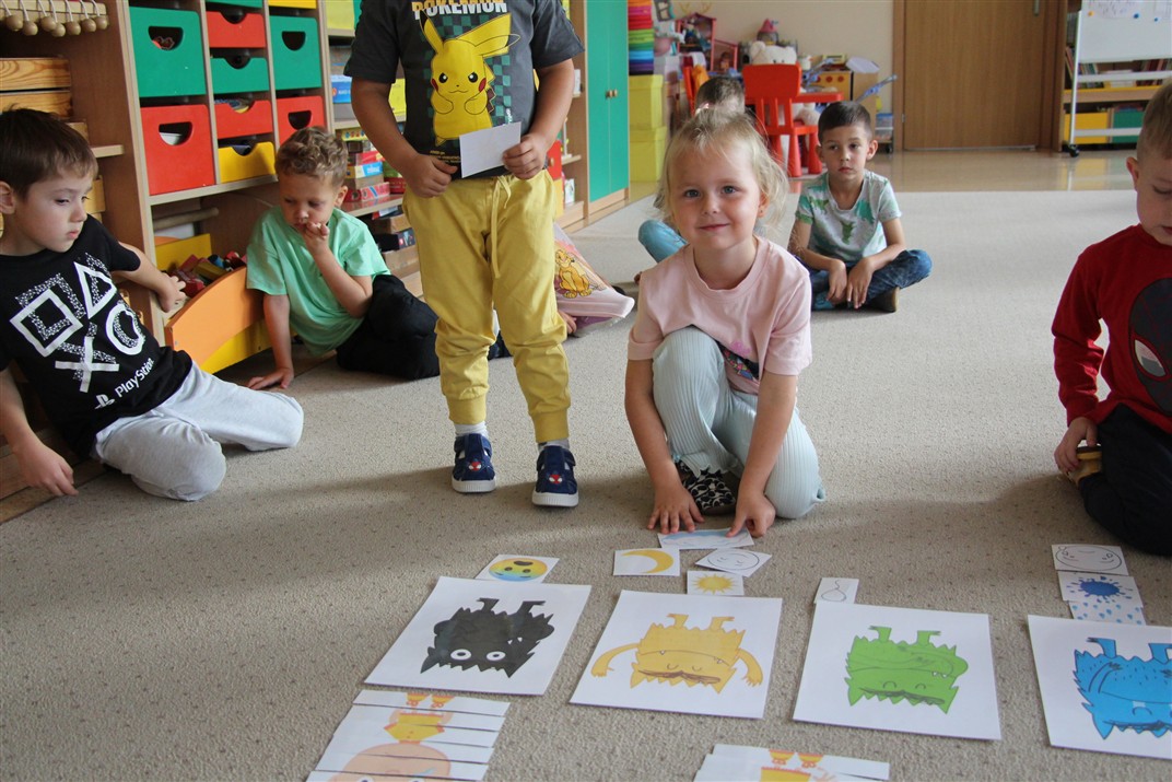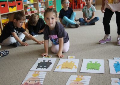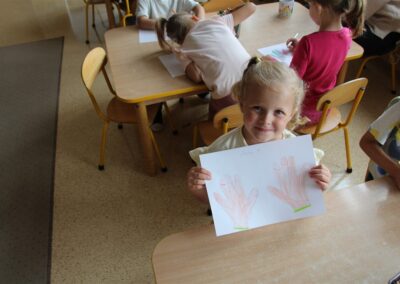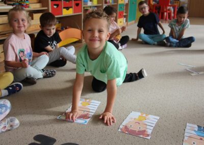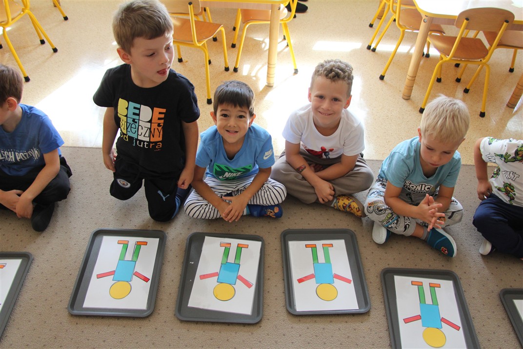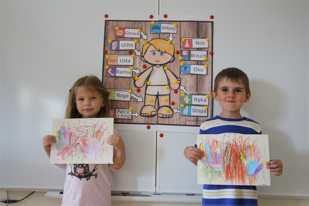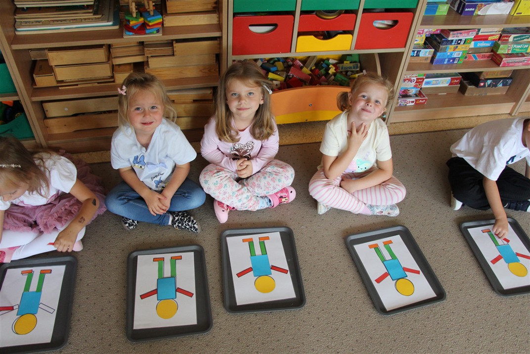 W minionym tygodniu 15-19 września, dzieci z grupy Motyli odkrywały swoje supermoce, a dokładniej swoje ciało, zmysły i emocje. Podczas codziennych zajęć i zabaw, poznaliśmy części ciała, których nazwy utrwalaliśmy z wykorzystaniem metody Globalnego Czytania Domanna. Rozwijaliśmy umiejętności orientacji w schemacie ciała oraz utrwalaliśmy figury geometryczne podczas zabaw matematycznych. Wykonaliśmy pracę plastyczną „nasze rączki” z wykorzystaniem elementów metody Edukacji przez Ruch. Poznawaliśmy nasze zmysły podczas zabaw badawczo-sensorycznych. Poznaliśmy również podstawowe emocje towarzyszące nam codziennie z pomocą powieści „Kolorowy potwór” oraz zabaw z tym związanych. Nie zabrakło zabaw ruchowych oraz kodowania na dywanie z matą i kolorowymi kubeczkami.