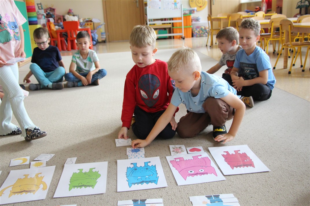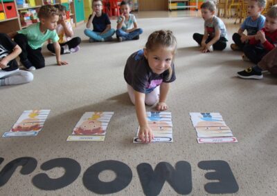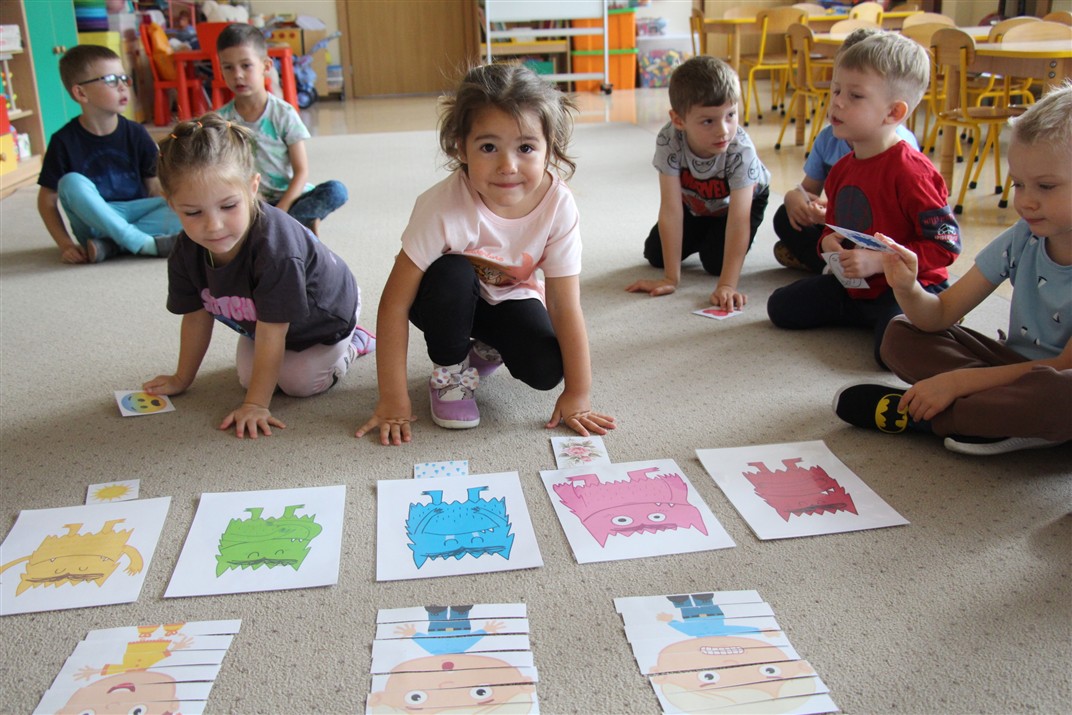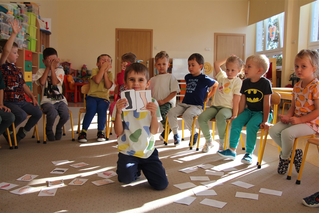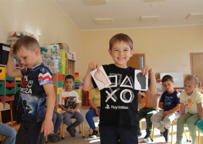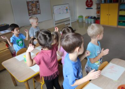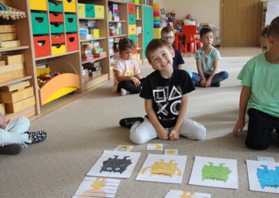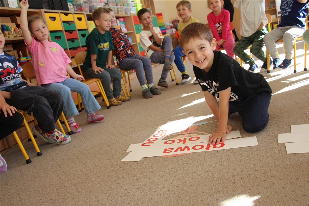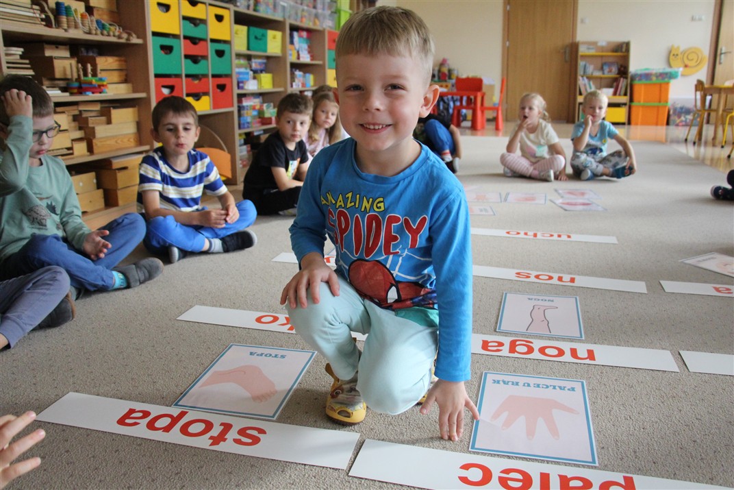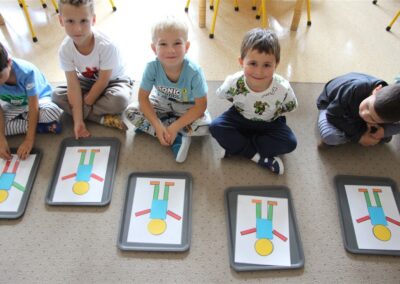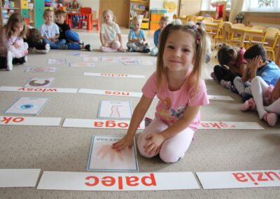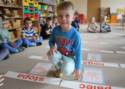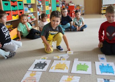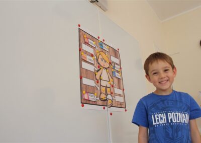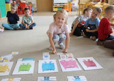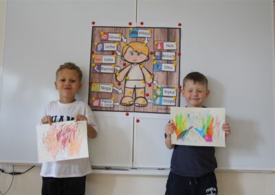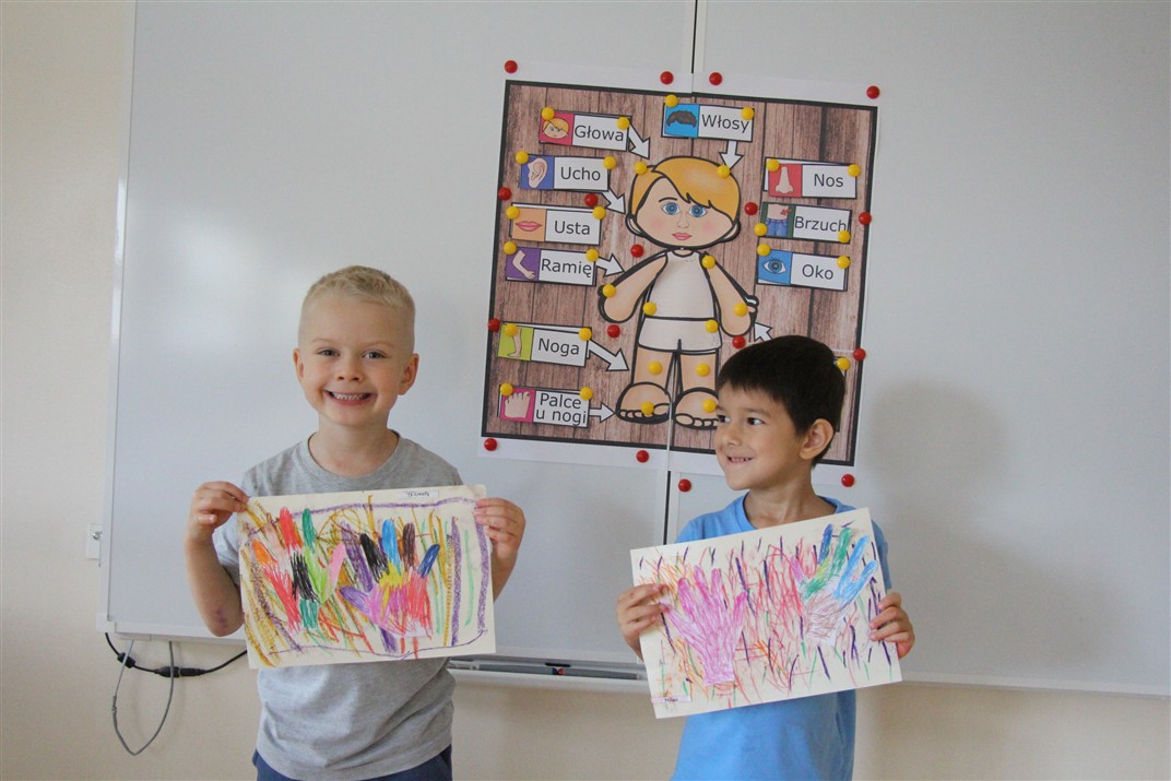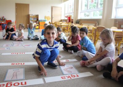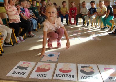 W minionym tygodniu 15-19 września, dzieci z grupy Motyli odkrywały swoje supermoce, a dokładniej swoje ciało, zmysły i emocje. Podczas codziennych zajęć i zabaw, poznaliśmy części ciała, których nazwy utrwalaliśmy z wykorzystaniem metody Globalnego Czytania Domanna. Rozwijaliśmy umiejętności orientacji w schemacie ciała oraz utrwalaliśmy figury geometryczne podczas zabaw matematycznych. Wykonaliśmy pracę plastyczną „nasze rączki” z wykorzystaniem elementów metody Edukacji przez Ruch. Poznawaliśmy nasze zmysły podczas zabaw badawczo-sensorycznych. Poznaliśmy również podstawowe emocje towarzyszące nam codziennie z pomocą powieści „Kolorowy potwór” oraz zabaw z tym związanych. Nie zabrakło zabaw ruchowych oraz kodowania na dywanie z matą i kolorowymi kubeczkami.
