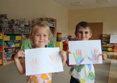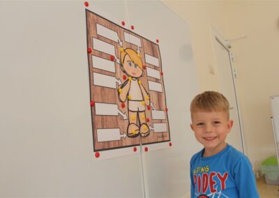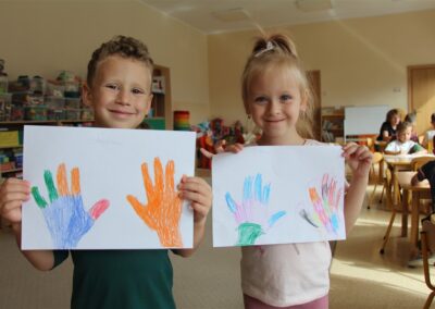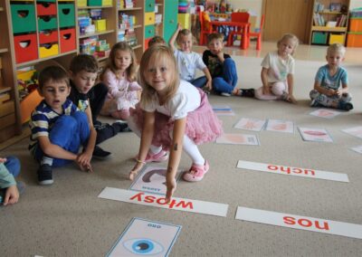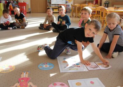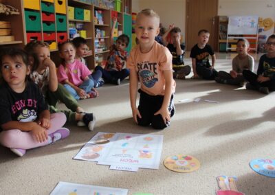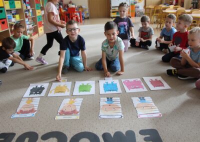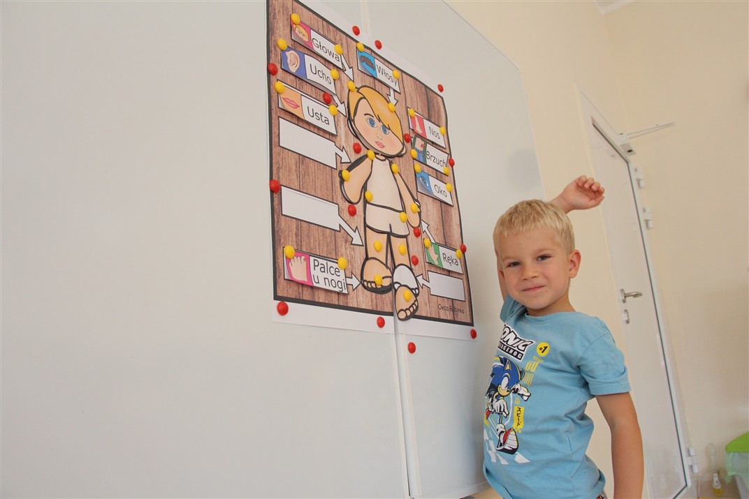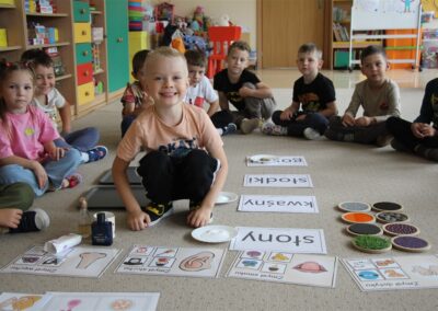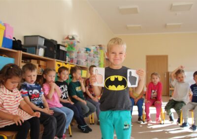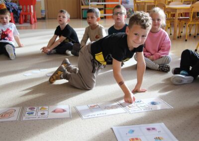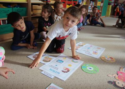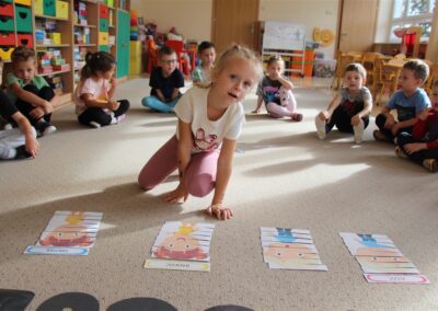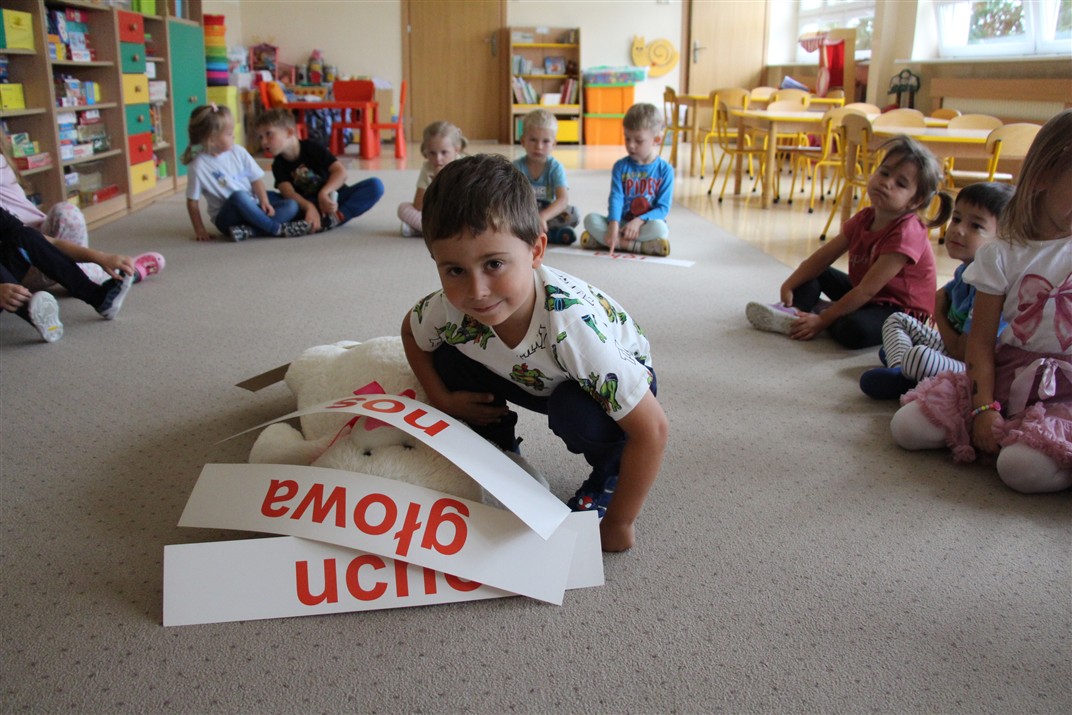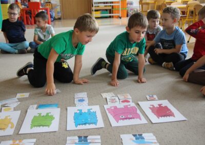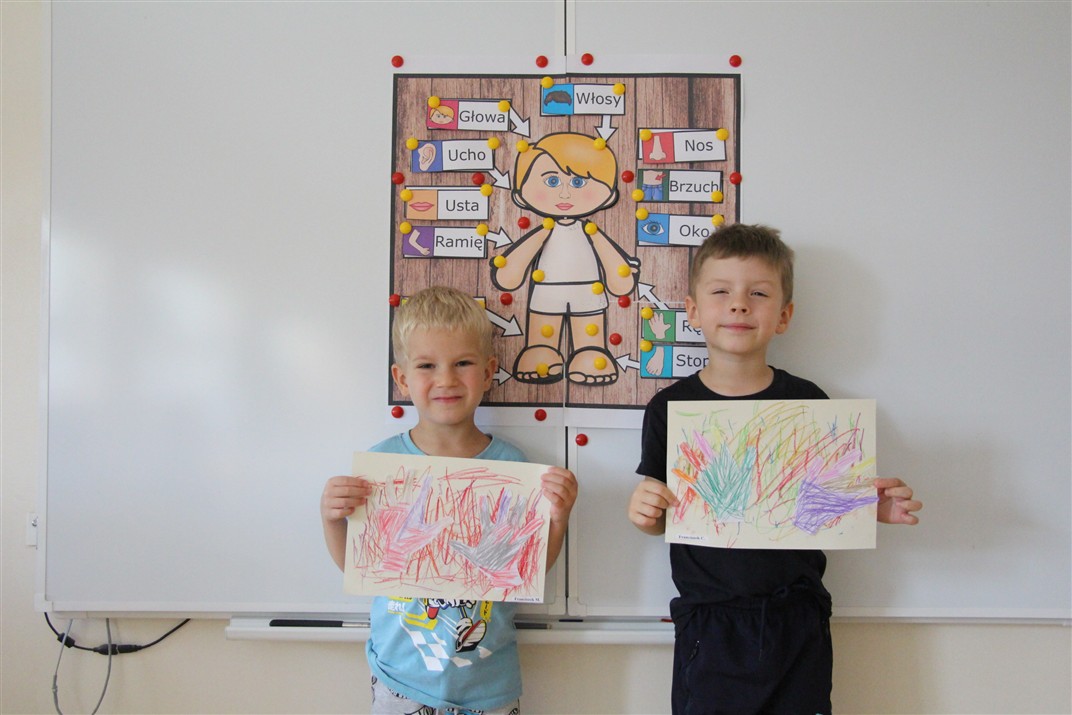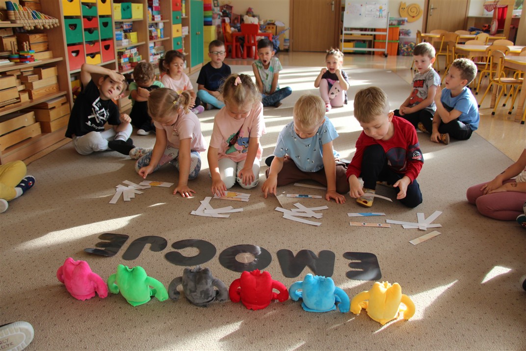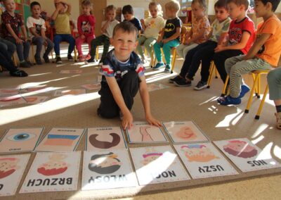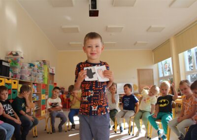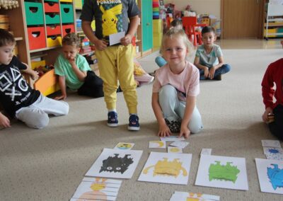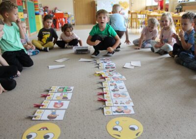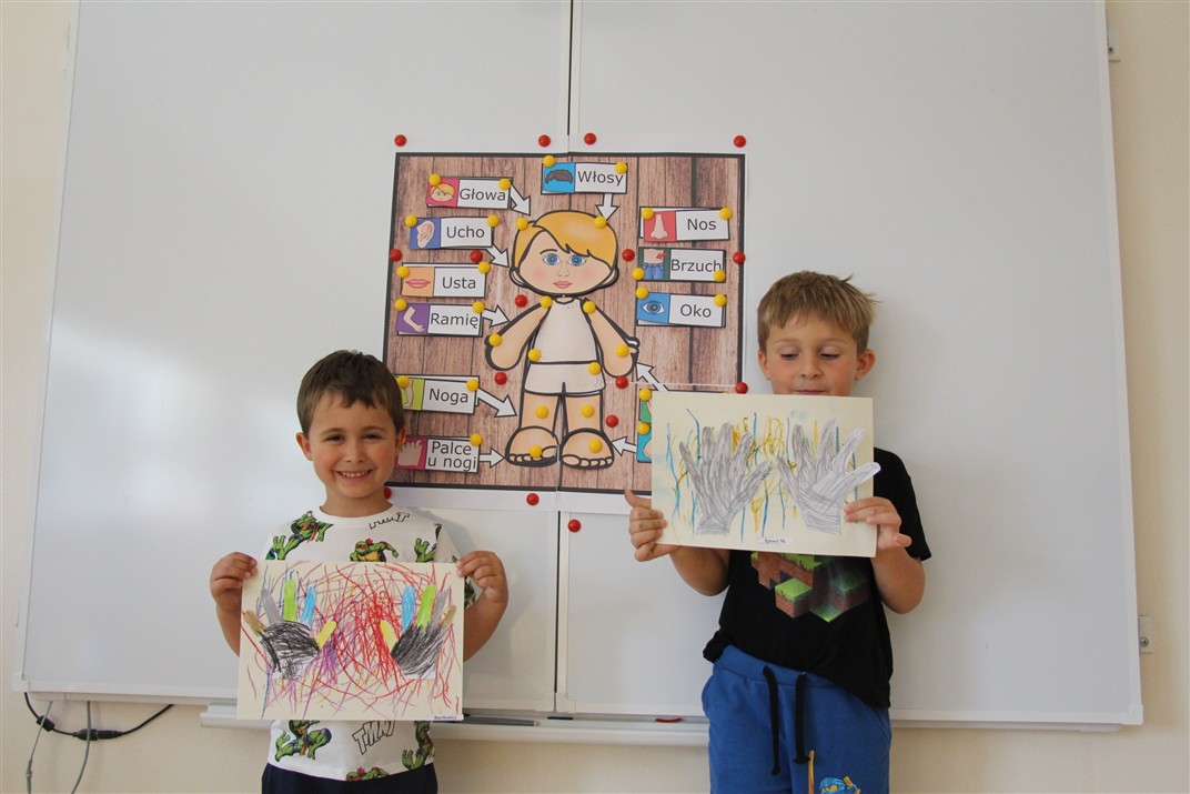 W minionym tygodniu 15-19 września, dzieci z grupy Motyli odkrywały swoje supermoce, a dokładniej swoje ciało, zmysły i emocje. Podczas codziennych zajęć i zabaw, poznaliśmy części ciała, których nazwy utrwalaliśmy z wykorzystaniem metody Globalnego Czytania Domanna. Rozwijaliśmy umiejętności orientacji w schemacie ciała oraz utrwalaliśmy figury geometryczne podczas zabaw matematycznych. Wykonaliśmy pracę plastyczną „nasze rączki” z wykorzystaniem elementów metody Edukacji przez Ruch. Poznawaliśmy nasze zmysły podczas zabaw badawczo-sensorycznych. Poznaliśmy również podstawowe emocje towarzyszące nam codziennie z pomocą powieści „Kolorowy potwór” oraz zabaw z tym związanych. Nie zabrakło zabaw ruchowych oraz kodowania na dywanie z matą i kolorowymi kubeczkami.