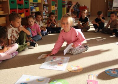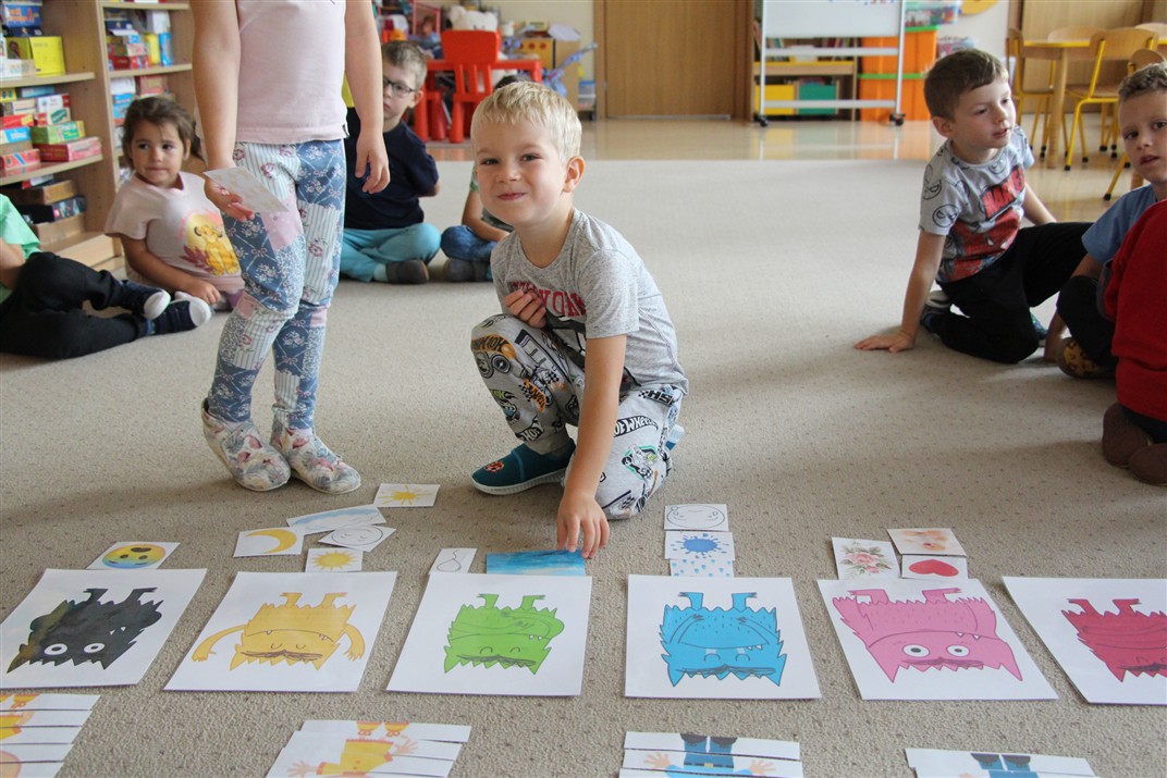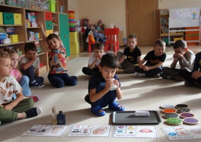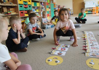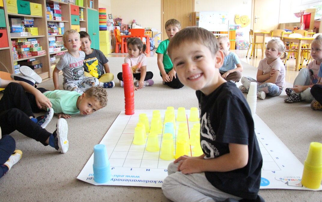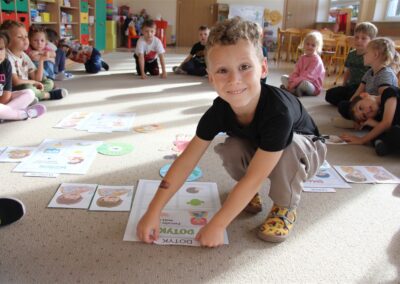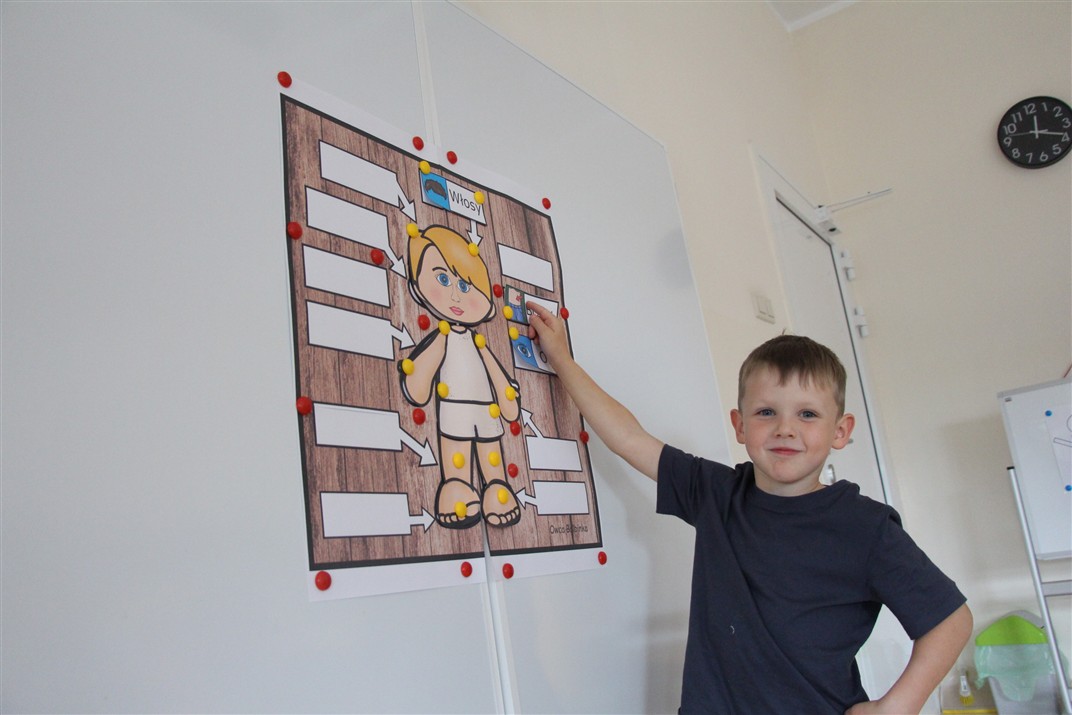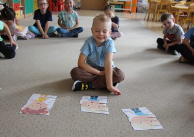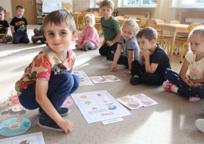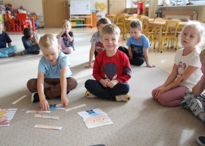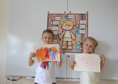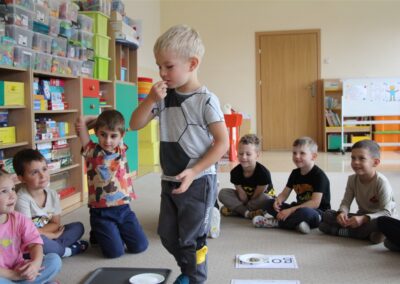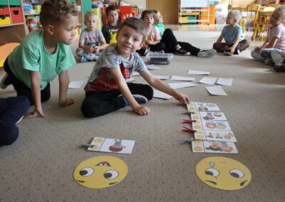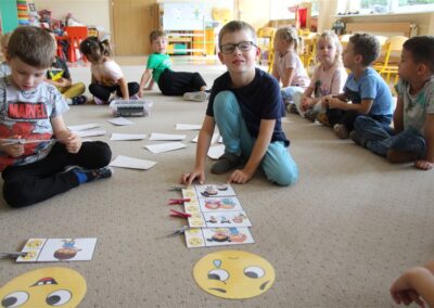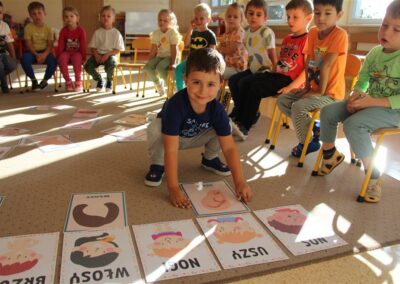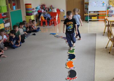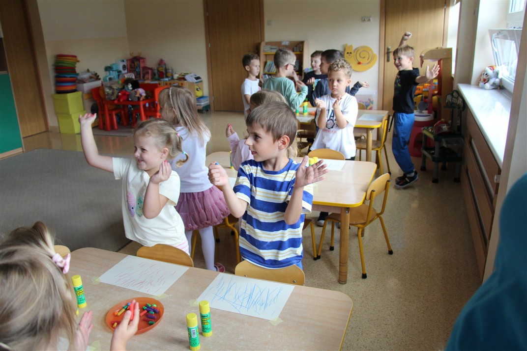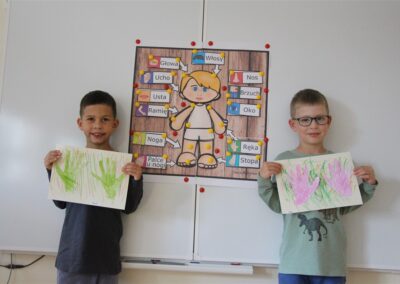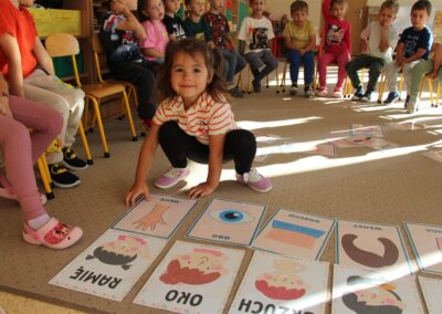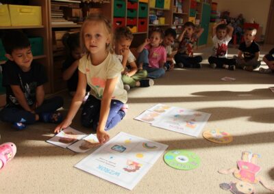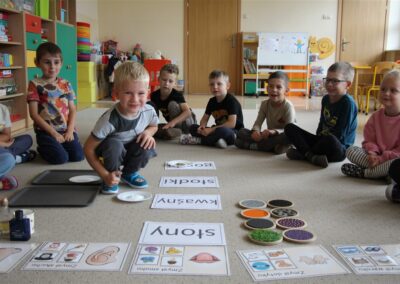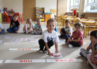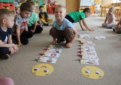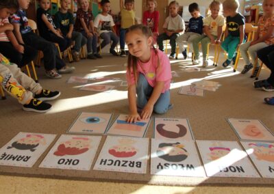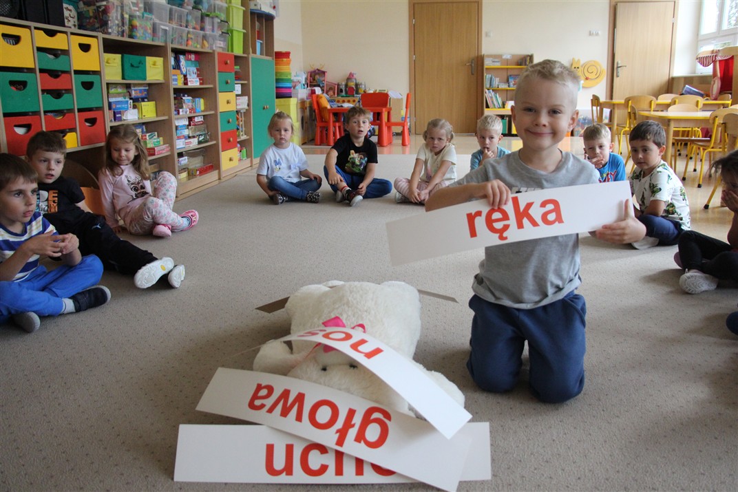W minionym tygodniu 15-19 września, dzieci z grupy Motyli odkrywały swoje supermoce, a dokładniej swoje ciało, zmysły i emocje. Podczas codziennych zajęć i zabaw, poznaliśmy części ciała, których nazwy utrwalaliśmy z wykorzystaniem metody Globalnego Czytania Domanna. Rozwijaliśmy umiejętności orientacji w schemacie ciała oraz utrwalaliśmy figury geometryczne podczas zabaw matematycznych. Wykonaliśmy pracę plastyczną „nasze rączki” z wykorzystaniem elementów metody Edukacji przez Ruch. Poznawaliśmy nasze zmysły podczas zabaw badawczo-sensorycznych. Poznaliśmy również podstawowe emocje towarzyszące nam codziennie z pomocą powieści „Kolorowy potwór” oraz zabaw z tym związanych. Nie zabrakło zabaw ruchowych oraz kodowania na dywanie z matą i kolorowymi kubeczkami.