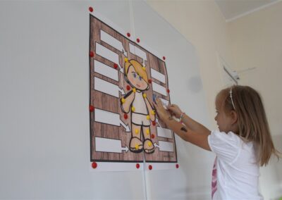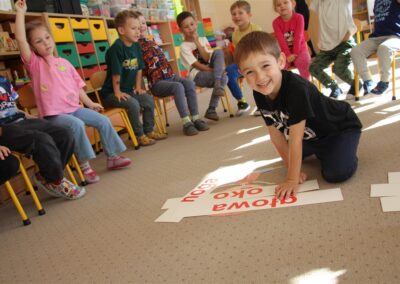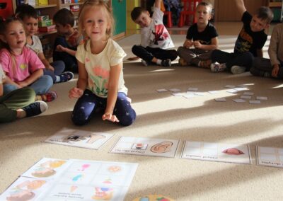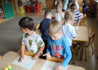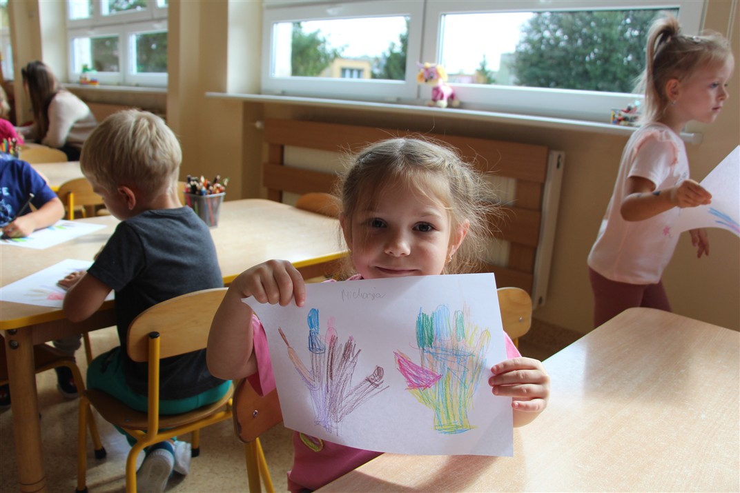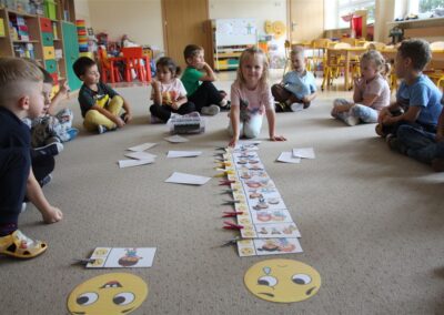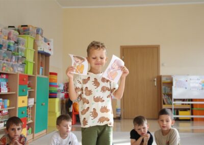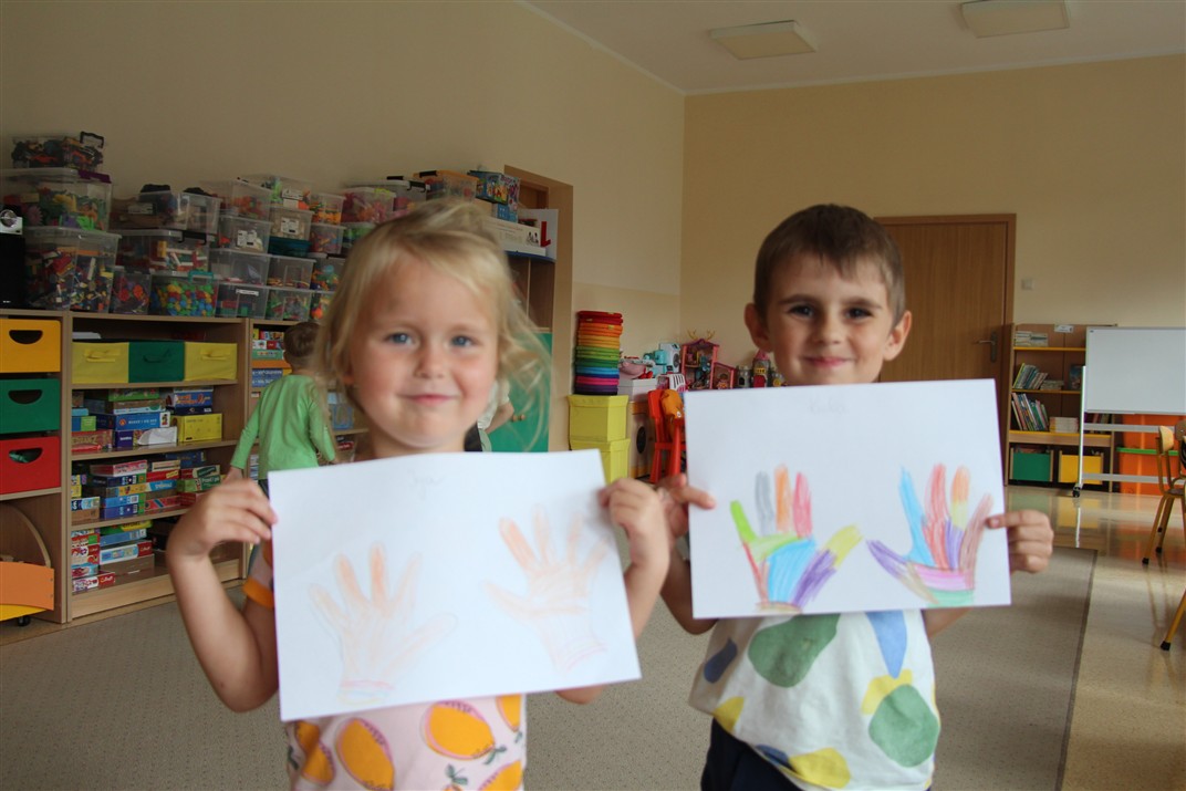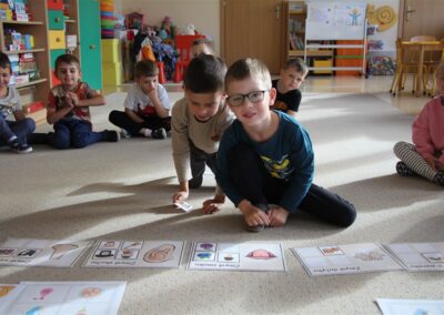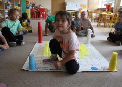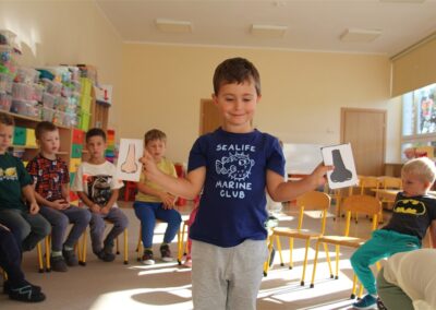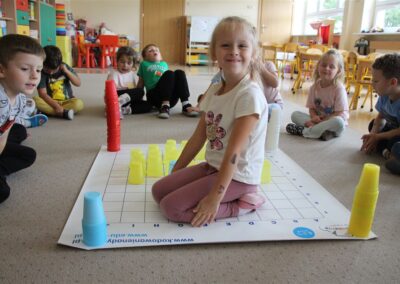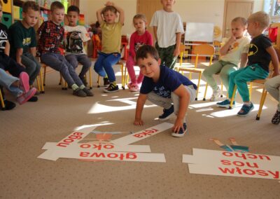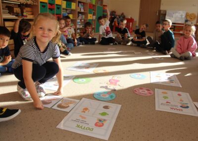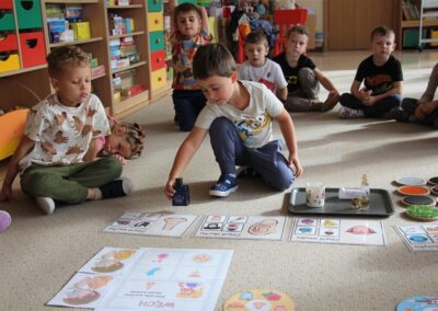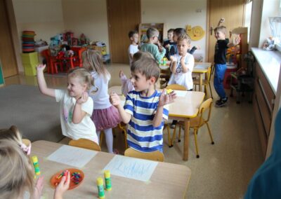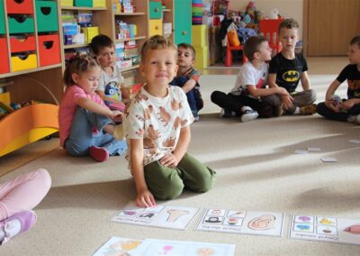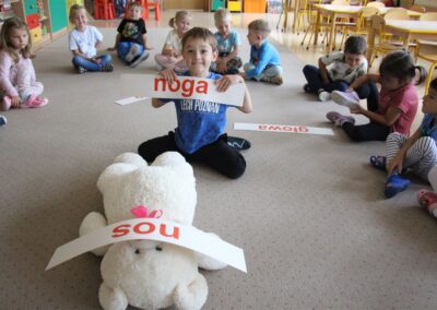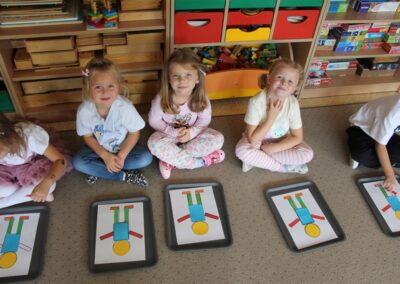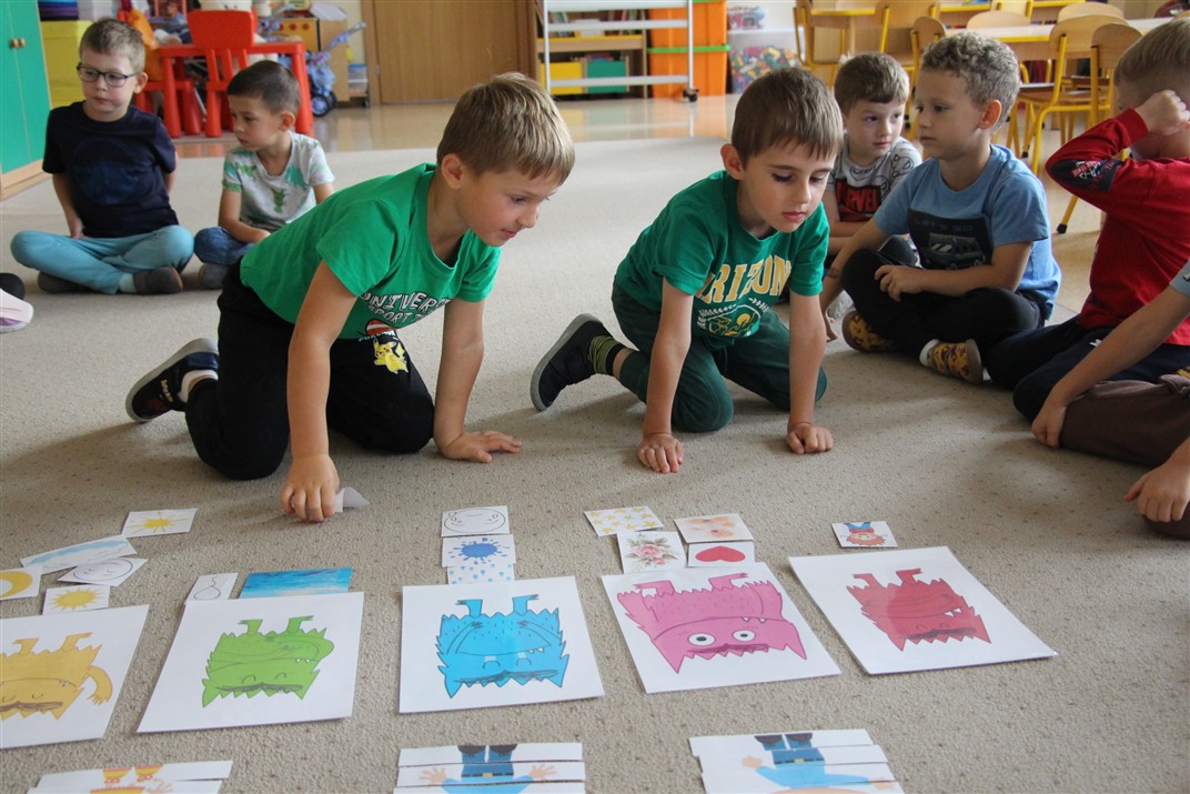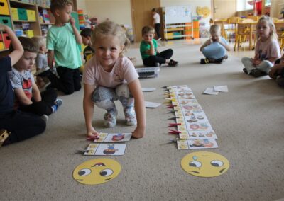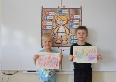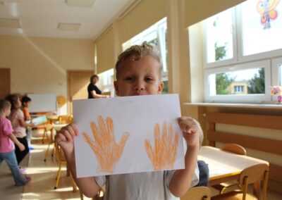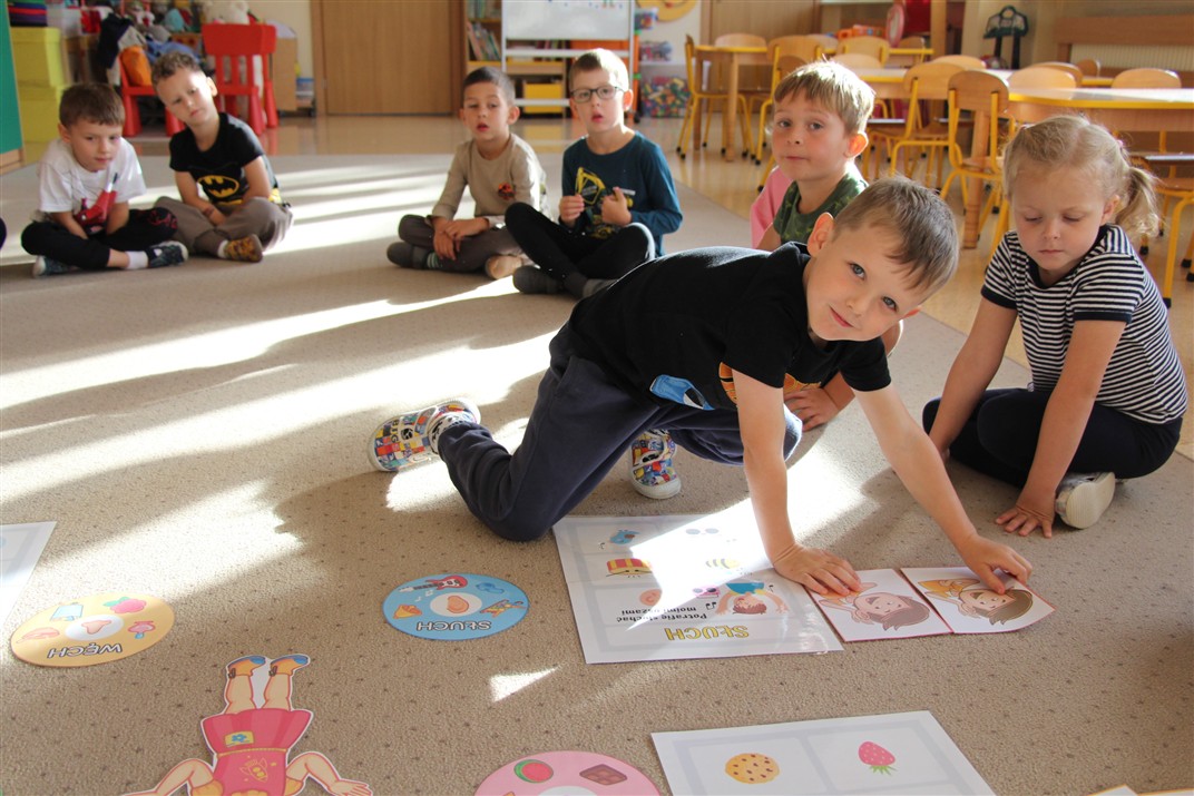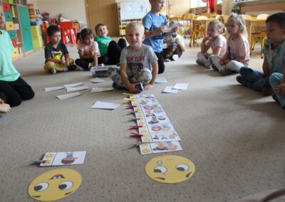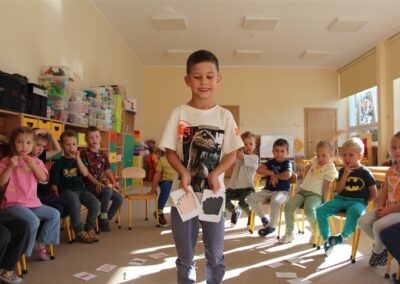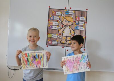 W minionym tygodniu 15-19 września, dzieci z grupy Motyli odkrywały swoje supermoce, a dokładniej swoje ciało, zmysły i emocje. Podczas codziennych zajęć i zabaw, poznaliśmy części ciała, których nazwy utrwalaliśmy z wykorzystaniem metody Globalnego Czytania Domanna. Rozwijaliśmy umiejętności orientacji w schemacie ciała oraz utrwalaliśmy figury geometryczne podczas zabaw matematycznych. Wykonaliśmy pracę plastyczną „nasze rączki” z wykorzystaniem elementów metody Edukacji przez Ruch. Poznawaliśmy nasze zmysły podczas zabaw badawczo-sensorycznych. Poznaliśmy również podstawowe emocje towarzyszące nam codziennie z pomocą powieści „Kolorowy potwór” oraz zabaw z tym związanych. Nie zabrakło zabaw ruchowych oraz kodowania na dywanie z matą i kolorowymi kubeczkami.