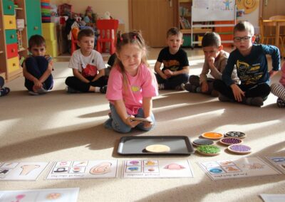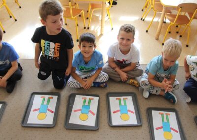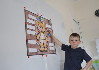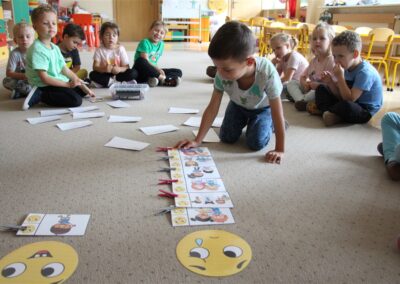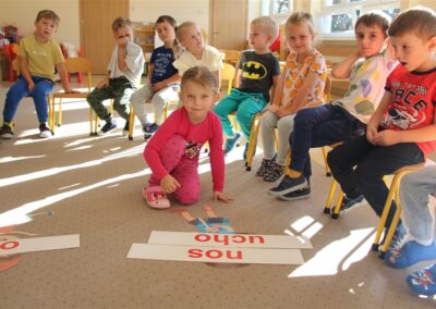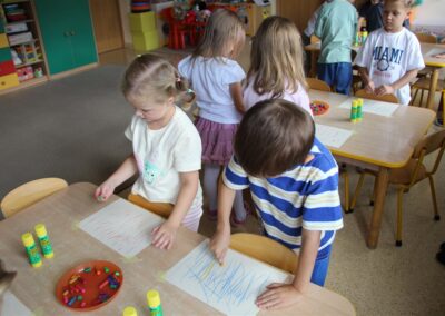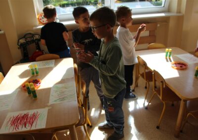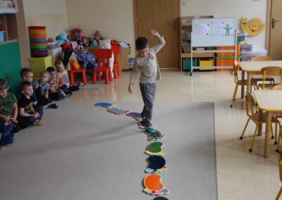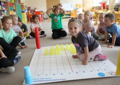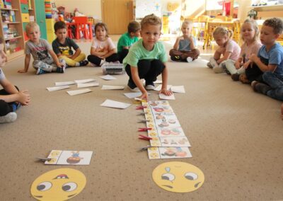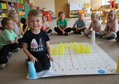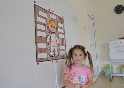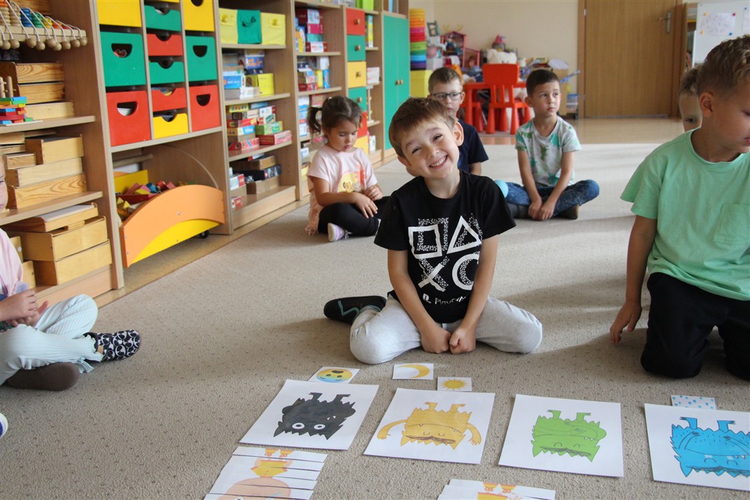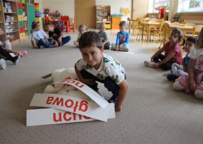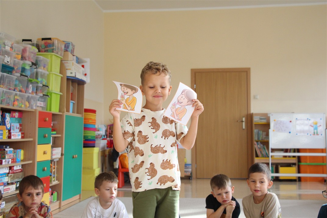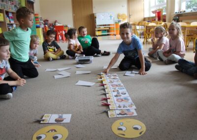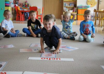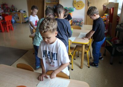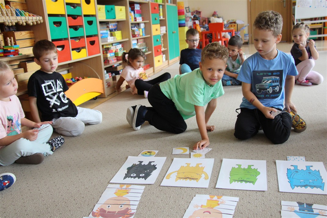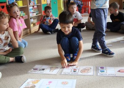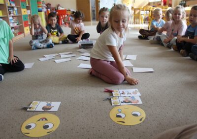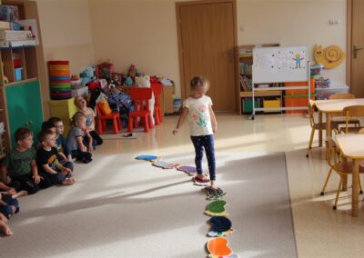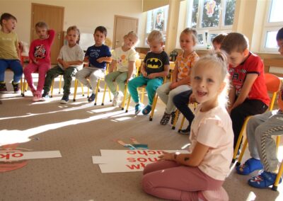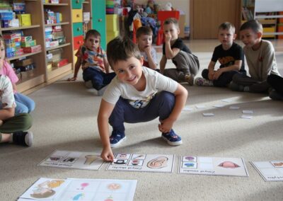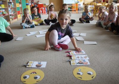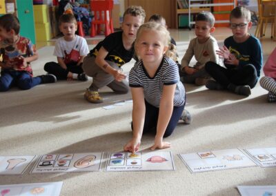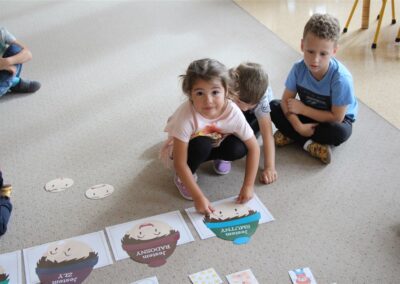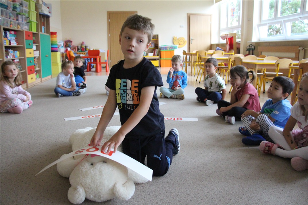 W minionym tygodniu 15-19 września, dzieci z grupy Motyli odkrywały swoje supermoce, a dokładniej swoje ciało, zmysły i emocje. Podczas codziennych zajęć i zabaw, poznaliśmy części ciała, których nazwy utrwalaliśmy z wykorzystaniem metody Globalnego Czytania Domanna. Rozwijaliśmy umiejętności orientacji w schemacie ciała oraz utrwalaliśmy figury geometryczne podczas zabaw matematycznych. Wykonaliśmy pracę plastyczną „nasze rączki” z wykorzystaniem elementów metody Edukacji przez Ruch. Poznawaliśmy nasze zmysły podczas zabaw badawczo-sensorycznych. Poznaliśmy również podstawowe emocje towarzyszące nam codziennie z pomocą powieści „Kolorowy potwór” oraz zabaw z tym związanych. Nie zabrakło zabaw ruchowych oraz kodowania na dywanie z matą i kolorowymi kubeczkami.