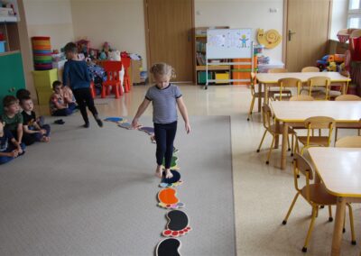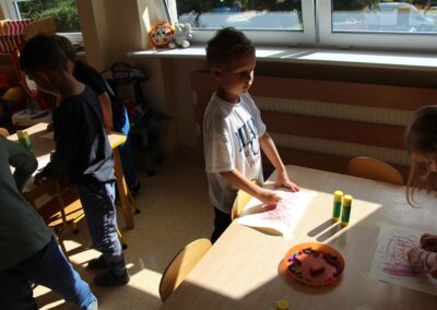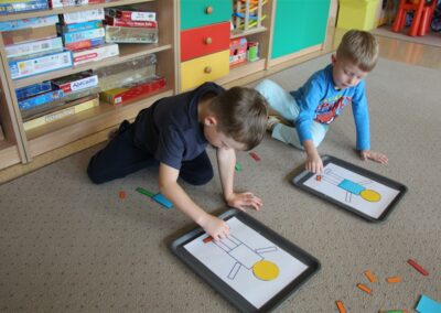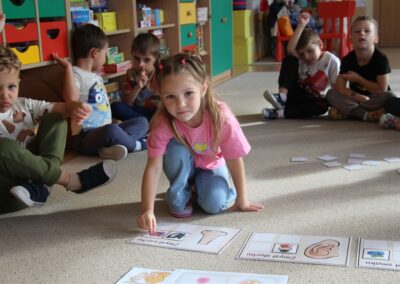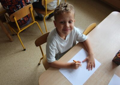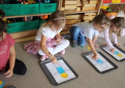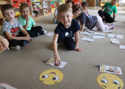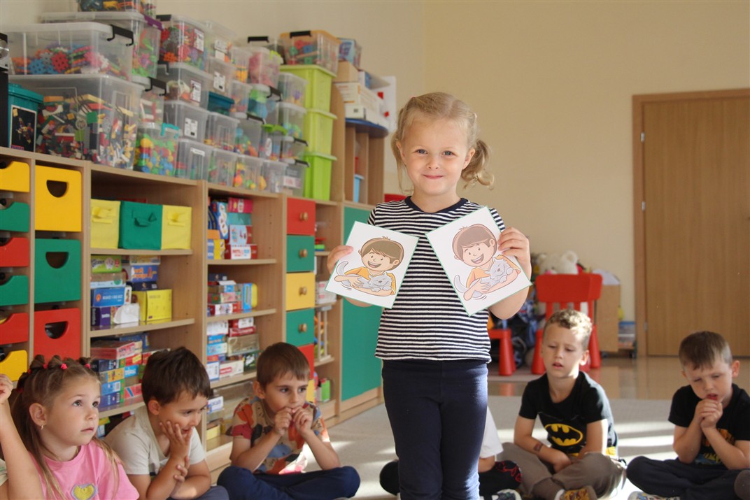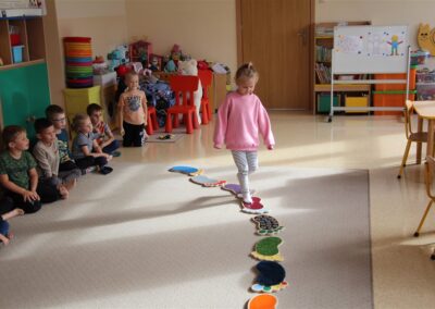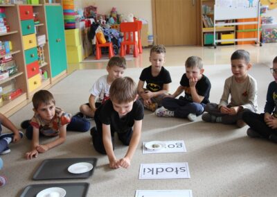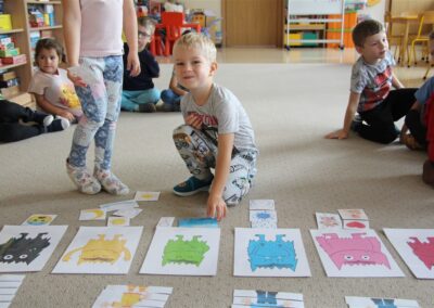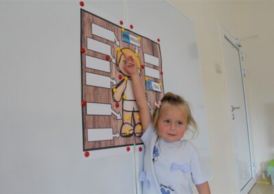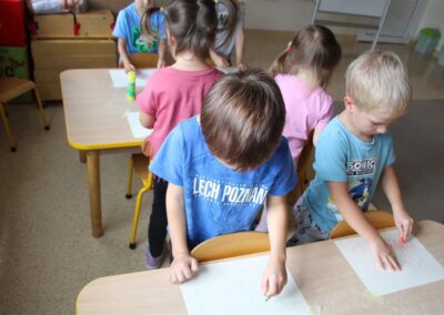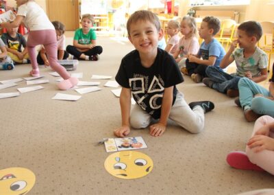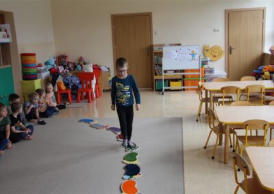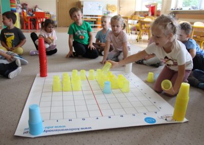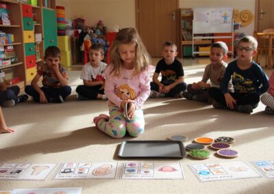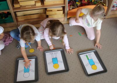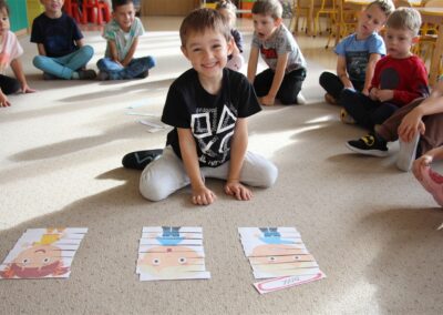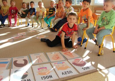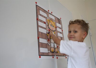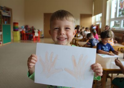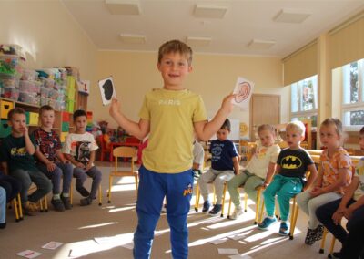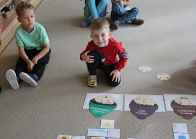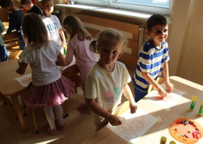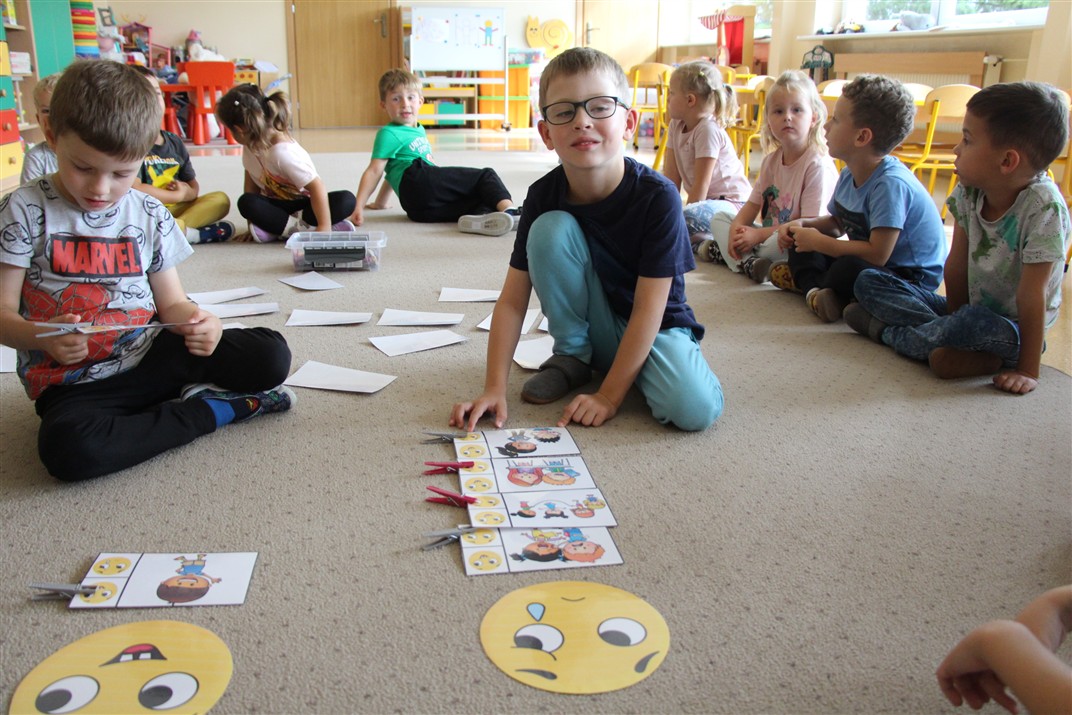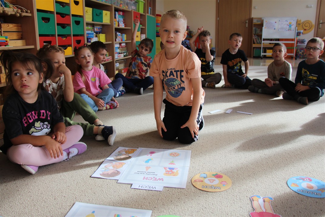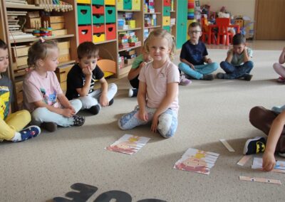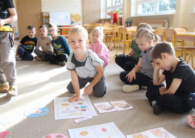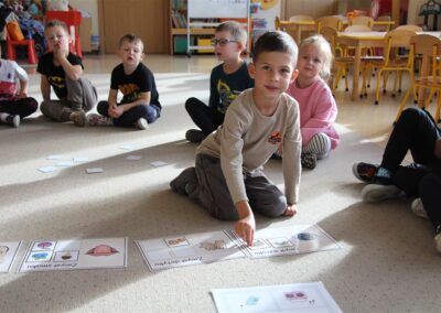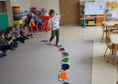 W minionym tygodniu 15-19 września, dzieci z grupy Motyli odkrywały swoje supermoce, a dokładniej swoje ciało, zmysły i emocje. Podczas codziennych zajęć i zabaw, poznaliśmy części ciała, których nazwy utrwalaliśmy z wykorzystaniem metody Globalnego Czytania Domanna. Rozwijaliśmy umiejętności orientacji w schemacie ciała oraz utrwalaliśmy figury geometryczne podczas zabaw matematycznych. Wykonaliśmy pracę plastyczną „nasze rączki” z wykorzystaniem elementów metody Edukacji przez Ruch. Poznawaliśmy nasze zmysły podczas zabaw badawczo-sensorycznych. Poznaliśmy również podstawowe emocje towarzyszące nam codziennie z pomocą powieści „Kolorowy potwór” oraz zabaw z tym związanych. Nie zabrakło zabaw ruchowych oraz kodowania na dywanie z matą i kolorowymi kubeczkami.