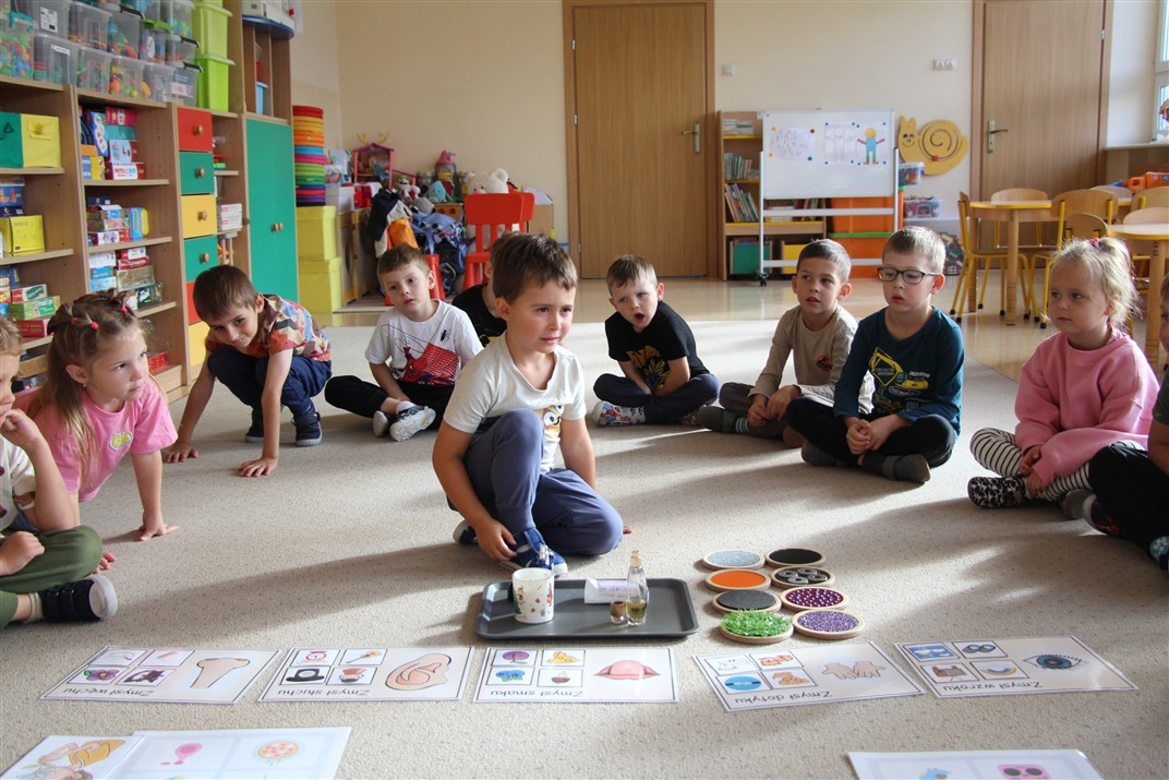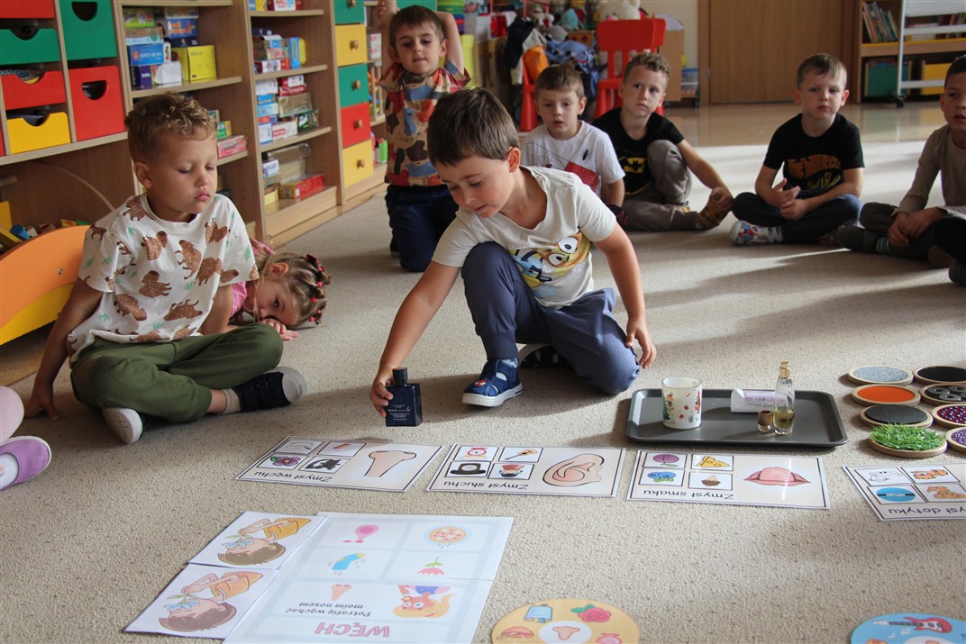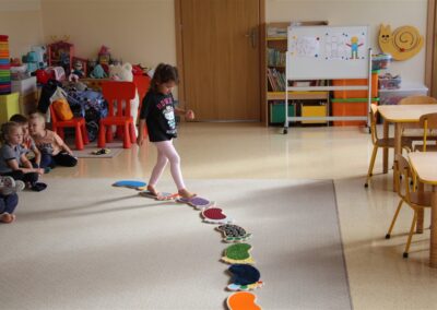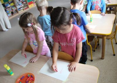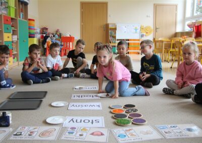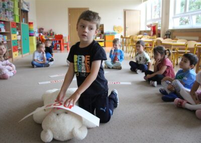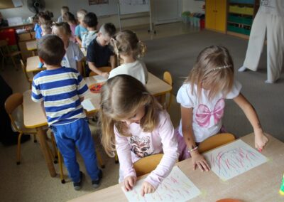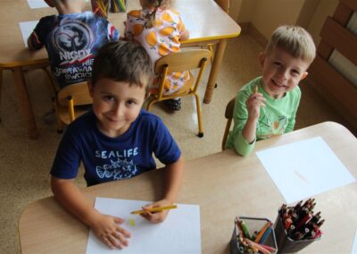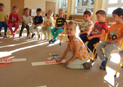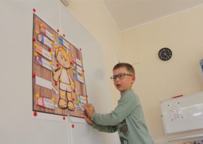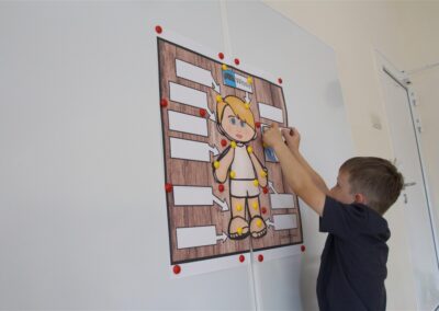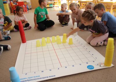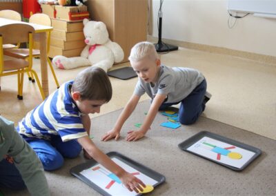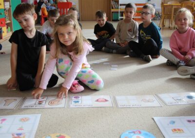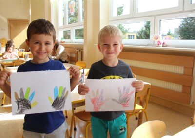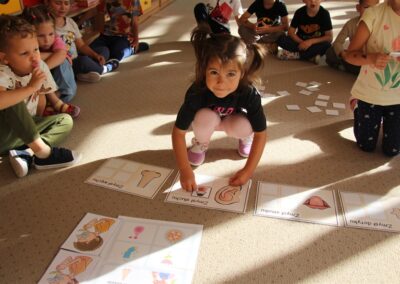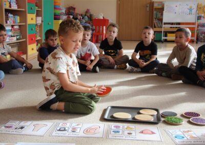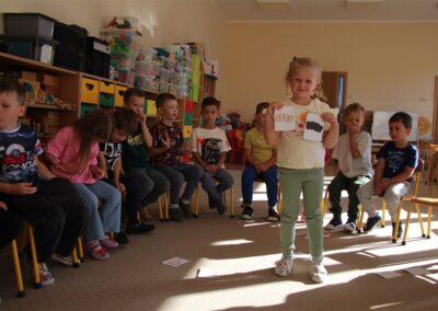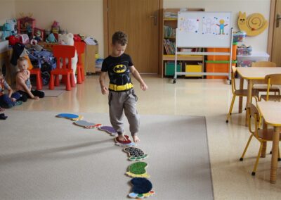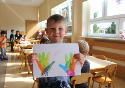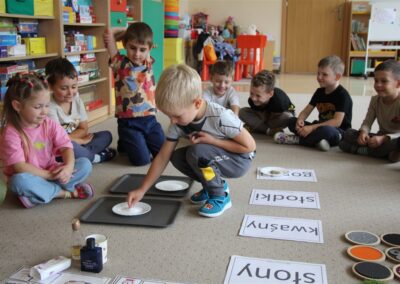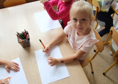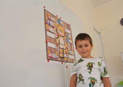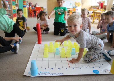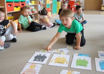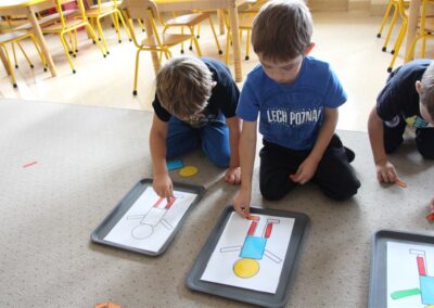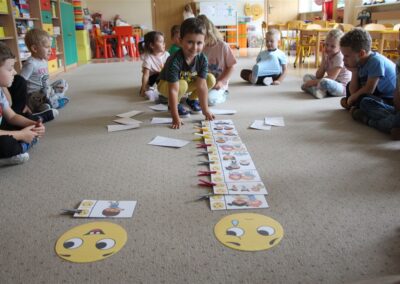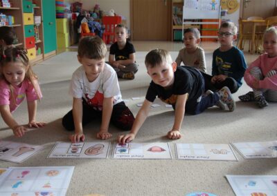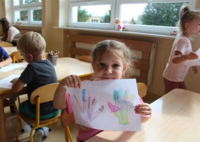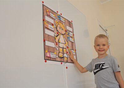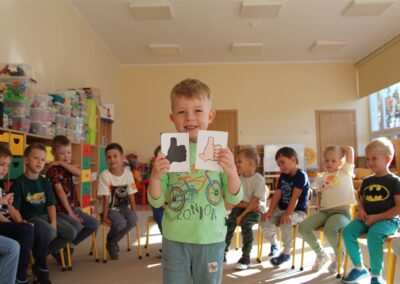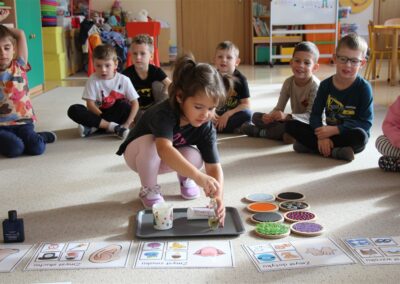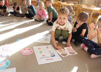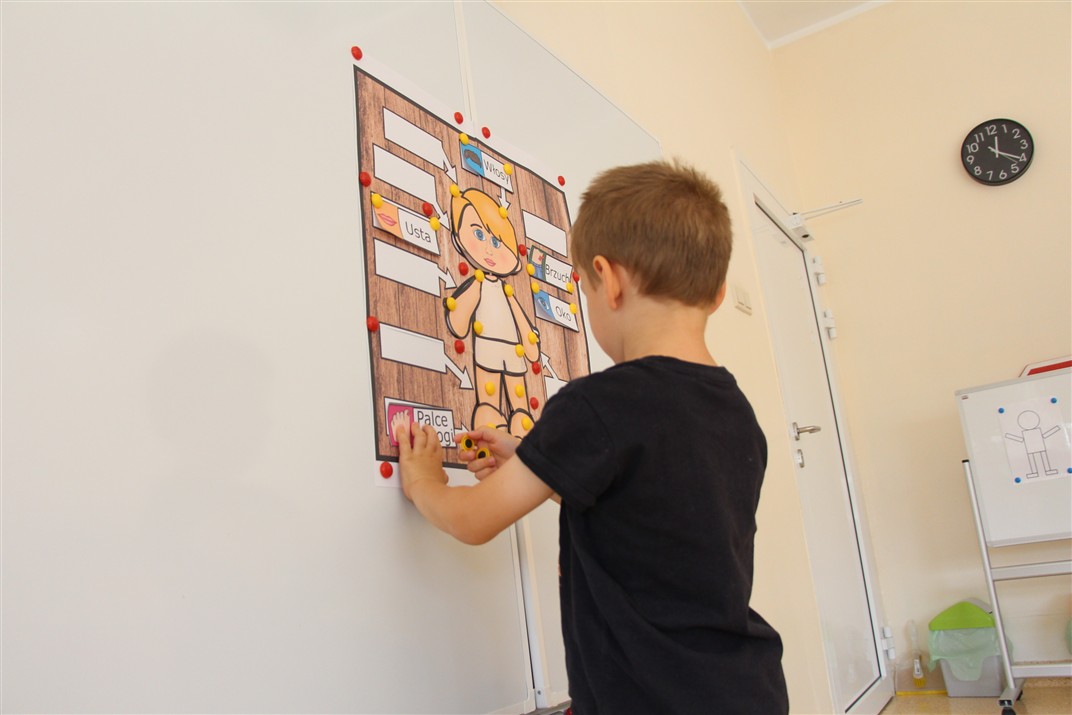 W minionym tygodniu 15-19 września, dzieci z grupy Motyli odkrywały swoje supermoce, a dokładniej swoje ciało, zmysły i emocje. Podczas codziennych zajęć i zabaw, poznaliśmy części ciała, których nazwy utrwalaliśmy z wykorzystaniem metody Globalnego Czytania Domanna. Rozwijaliśmy umiejętności orientacji w schemacie ciała oraz utrwalaliśmy figury geometryczne podczas zabaw matematycznych. Wykonaliśmy pracę plastyczną „nasze rączki” z wykorzystaniem elementów metody Edukacji przez Ruch. Poznawaliśmy nasze zmysły podczas zabaw badawczo-sensorycznych. Poznaliśmy również podstawowe emocje towarzyszące nam codziennie z pomocą powieści „Kolorowy potwór” oraz zabaw z tym związanych. Nie zabrakło zabaw ruchowych oraz kodowania na dywanie z matą i kolorowymi kubeczkami.
