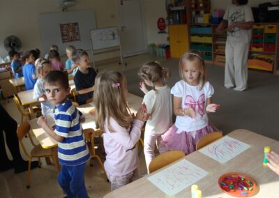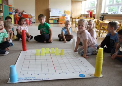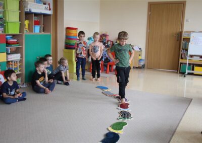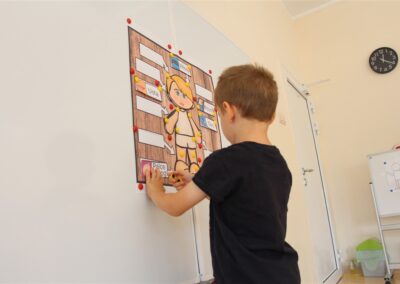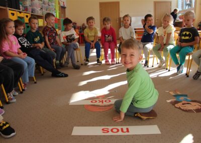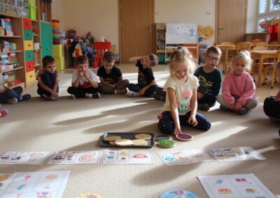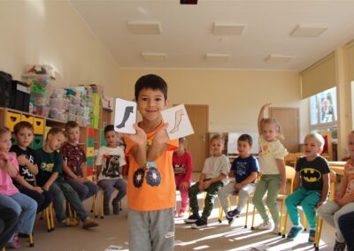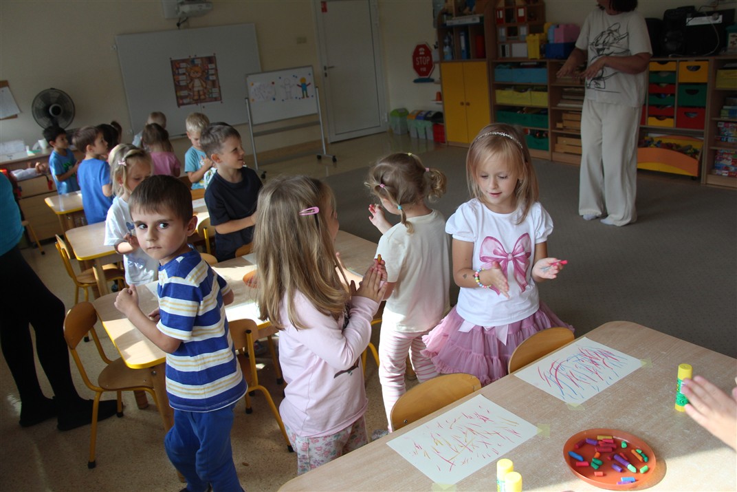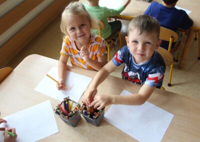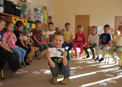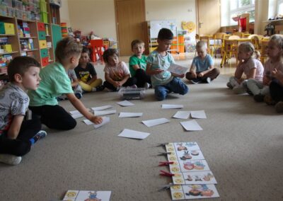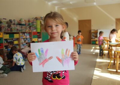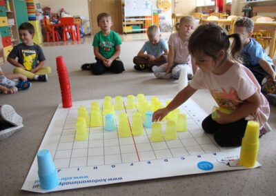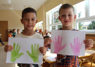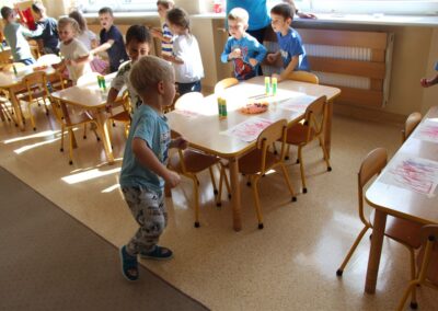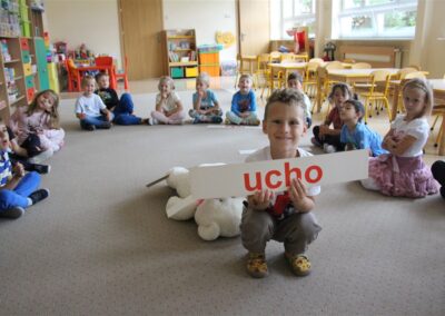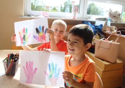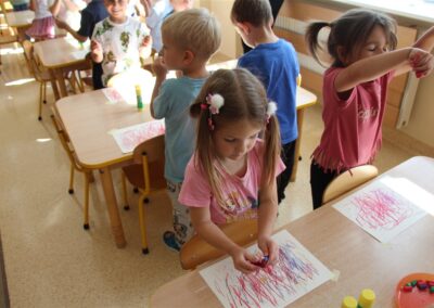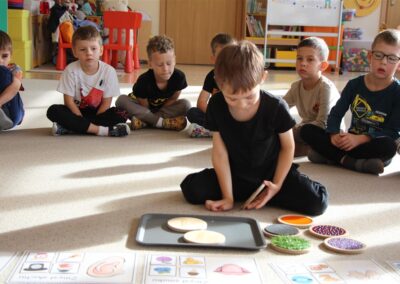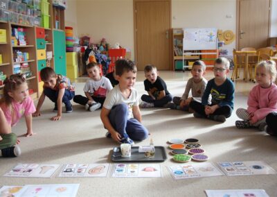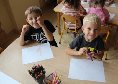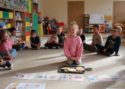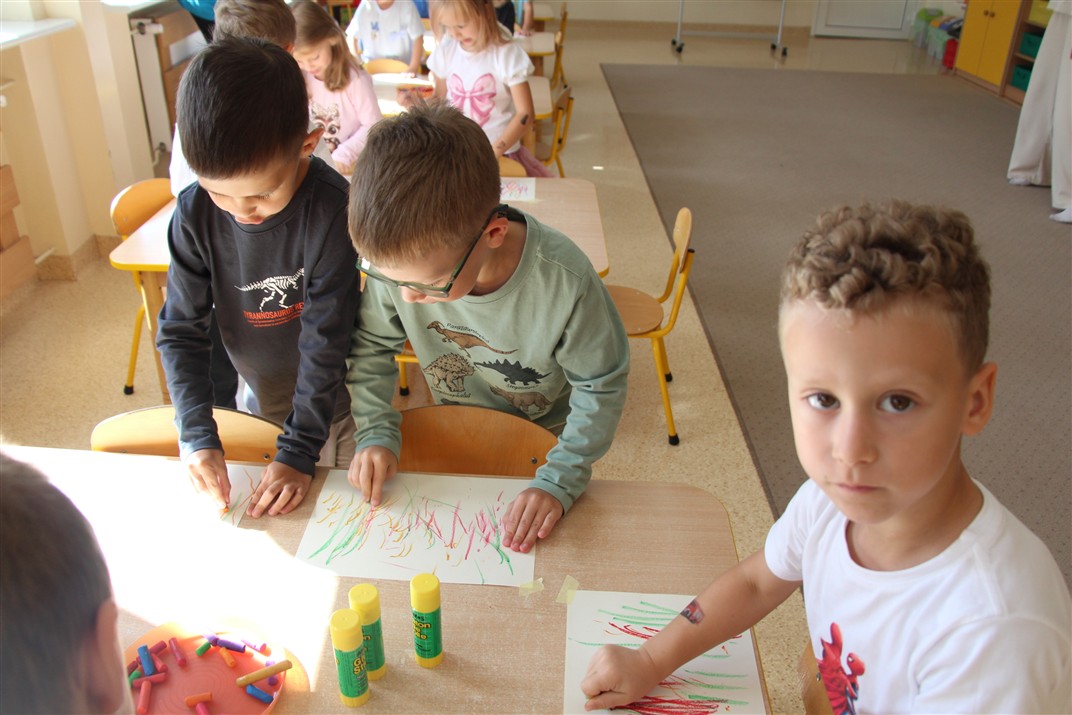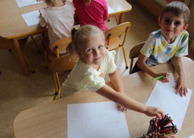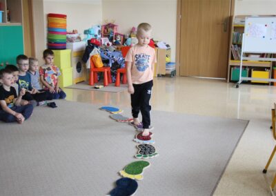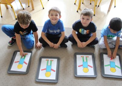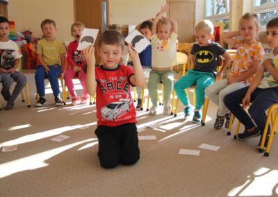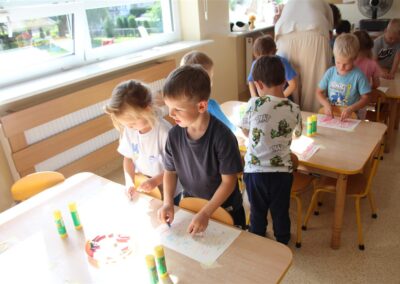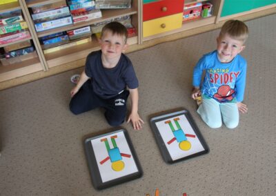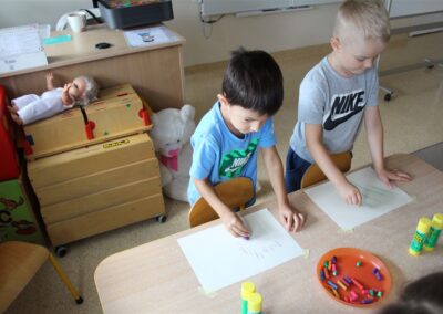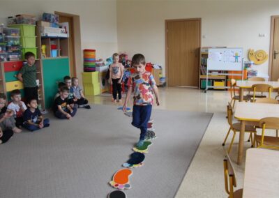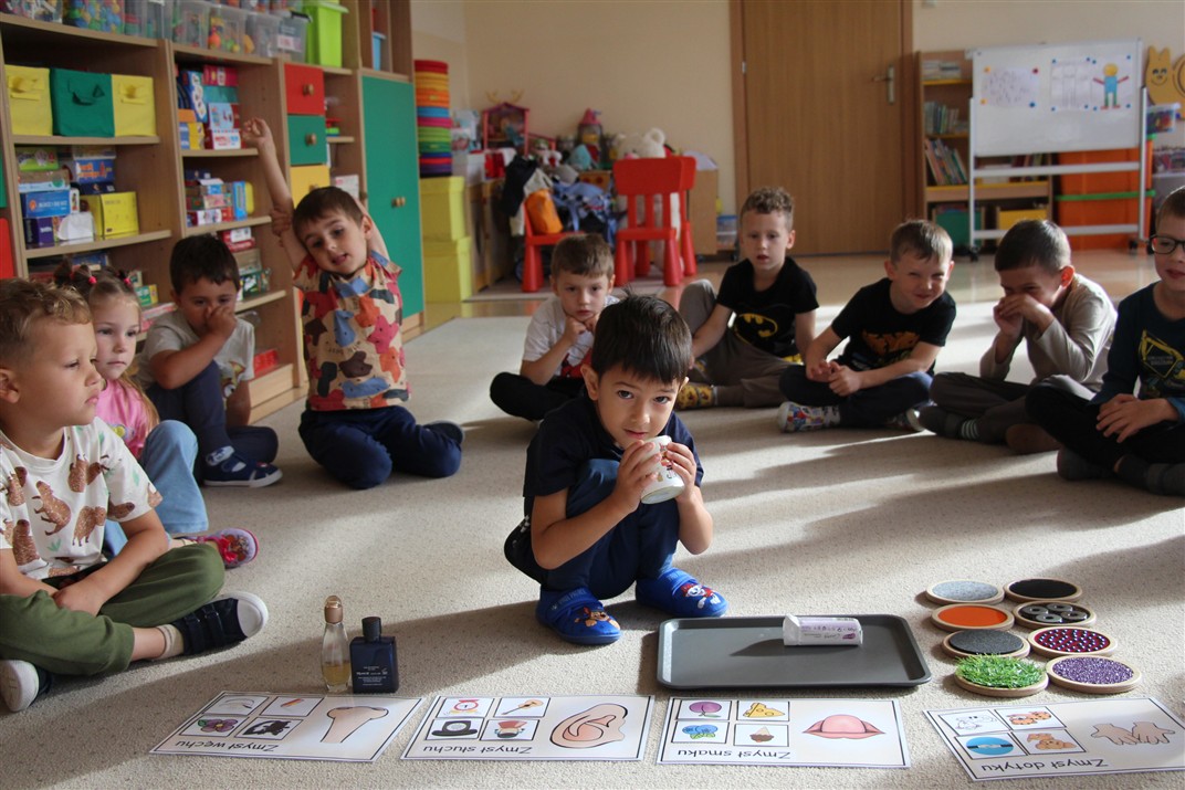 W minionym tygodniu 15-19 września, dzieci z grupy Motyli odkrywały swoje supermoce, a dokładniej swoje ciało, zmysły i emocje. Podczas codziennych zajęć i zabaw, poznaliśmy części ciała, których nazwy utrwalaliśmy z wykorzystaniem metody Globalnego Czytania Domanna. Rozwijaliśmy umiejętności orientacji w schemacie ciała oraz utrwalaliśmy figury geometryczne podczas zabaw matematycznych. Wykonaliśmy pracę plastyczną „nasze rączki” z wykorzystaniem elementów metody Edukacji przez Ruch. Poznawaliśmy nasze zmysły podczas zabaw badawczo-sensorycznych. Poznaliśmy również podstawowe emocje towarzyszące nam codziennie z pomocą powieści „Kolorowy potwór” oraz zabaw z tym związanych. Nie zabrakło zabaw ruchowych oraz kodowania na dywanie z matą i kolorowymi kubeczkami.