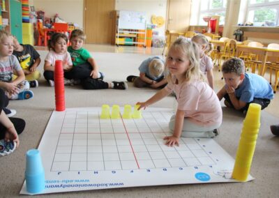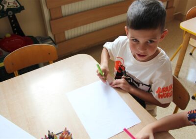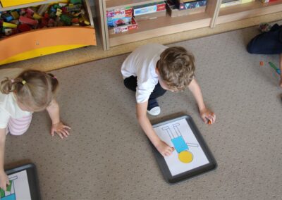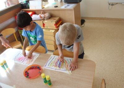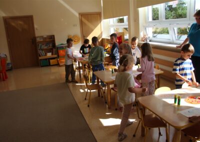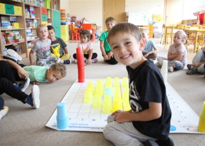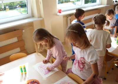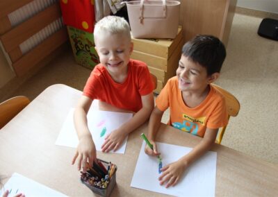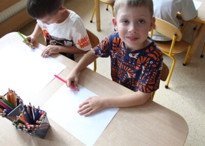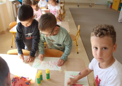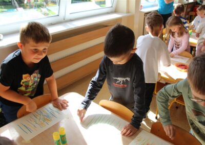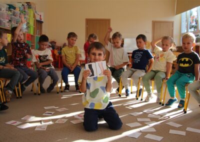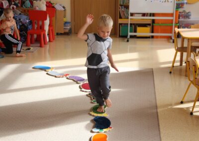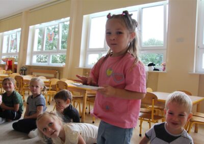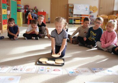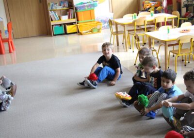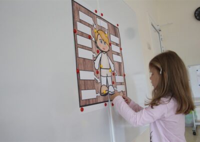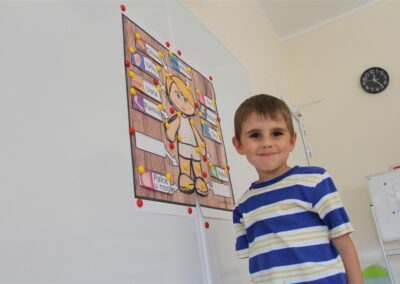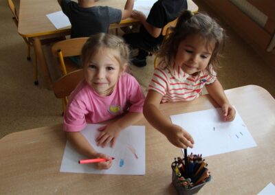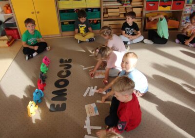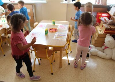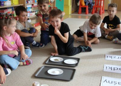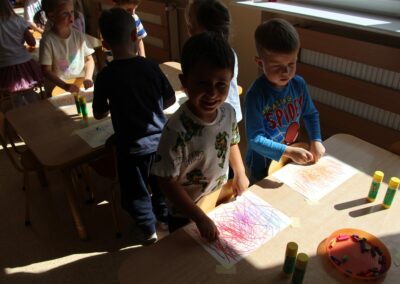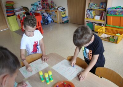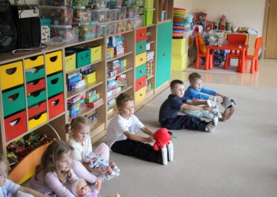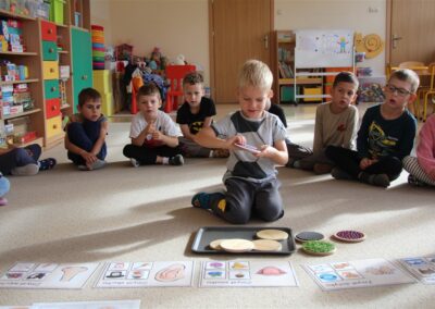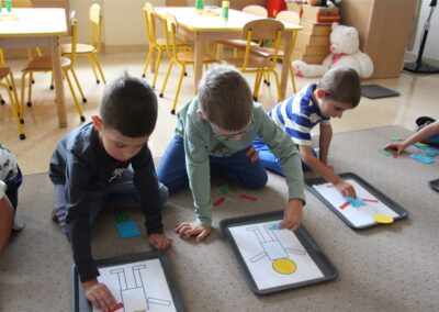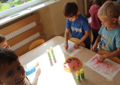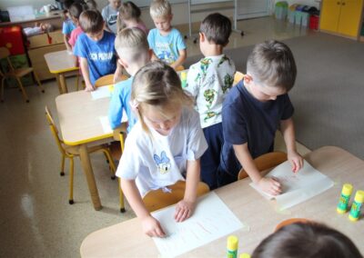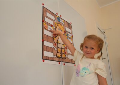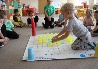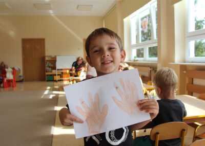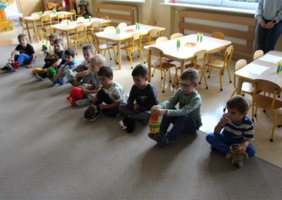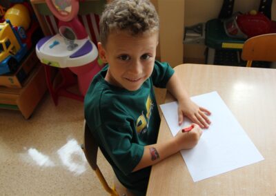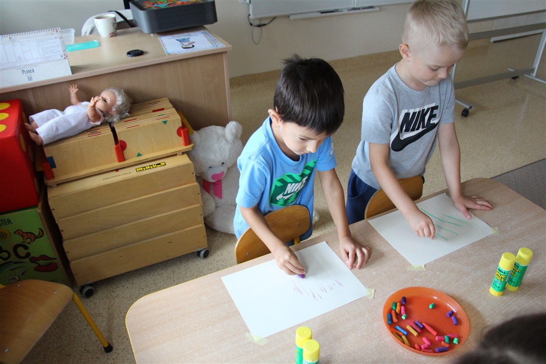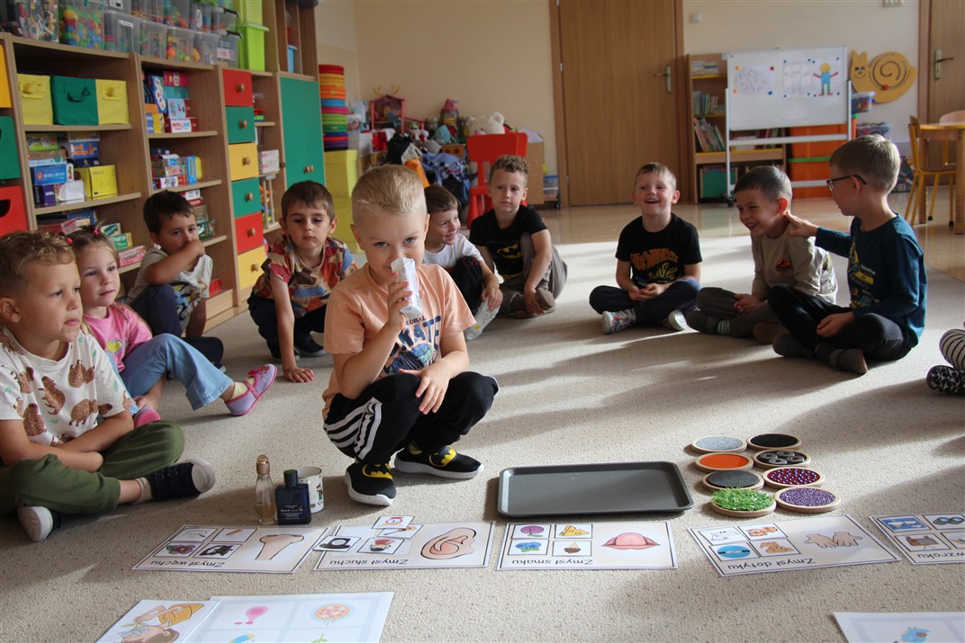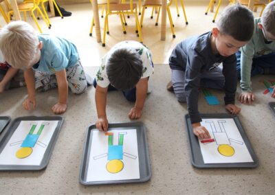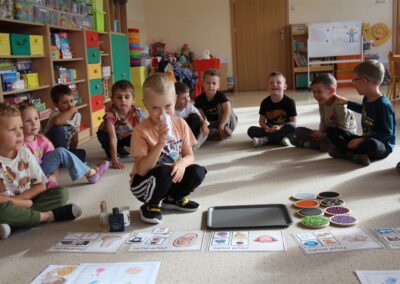 W minionym tygodniu 15-19 września, dzieci z grupy Motyli odkrywały swoje supermoce, a dokładniej swoje ciało, zmysły i emocje. Podczas codziennych zajęć i zabaw, poznaliśmy części ciała, których nazwy utrwalaliśmy z wykorzystaniem metody Globalnego Czytania Domanna. Rozwijaliśmy umiejętności orientacji w schemacie ciała oraz utrwalaliśmy figury geometryczne podczas zabaw matematycznych. Wykonaliśmy pracę plastyczną „nasze rączki” z wykorzystaniem elementów metody Edukacji przez Ruch. Poznawaliśmy nasze zmysły podczas zabaw badawczo-sensorycznych. Poznaliśmy również podstawowe emocje towarzyszące nam codziennie z pomocą powieści „Kolorowy potwór” oraz zabaw z tym związanych. Nie zabrakło zabaw ruchowych oraz kodowania na dywanie z matą i kolorowymi kubeczkami.
