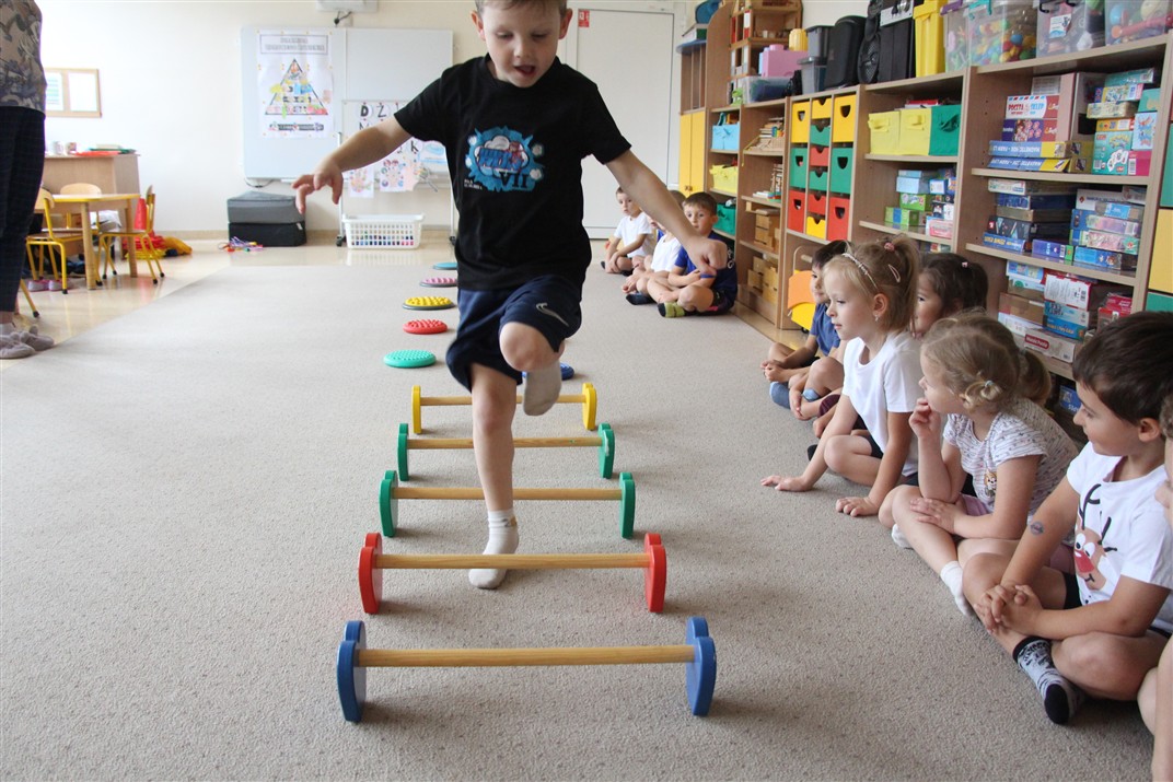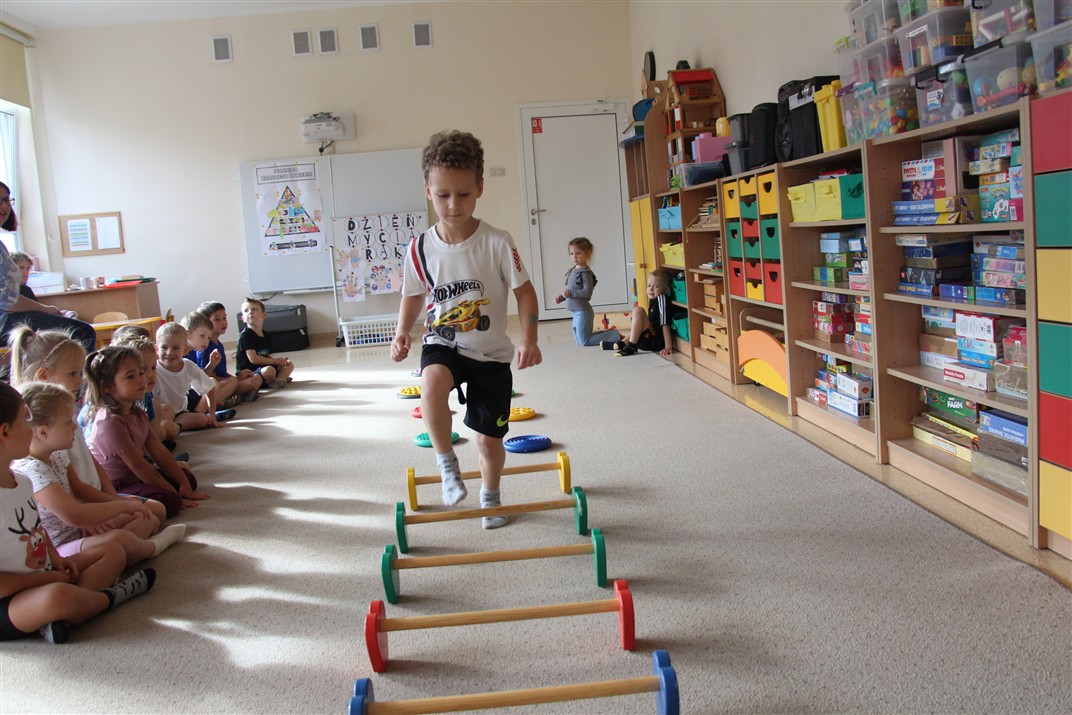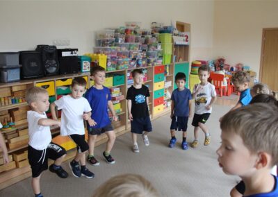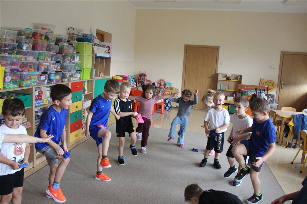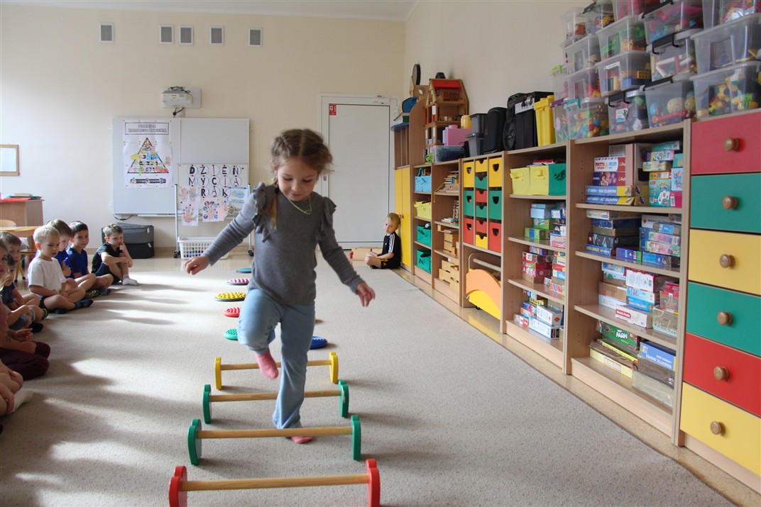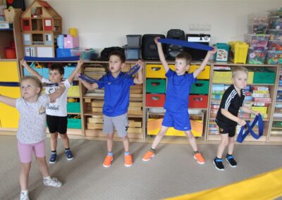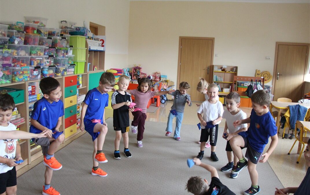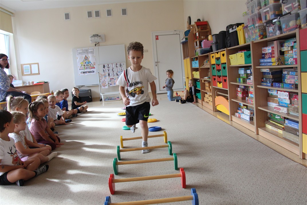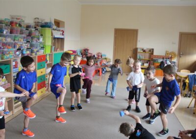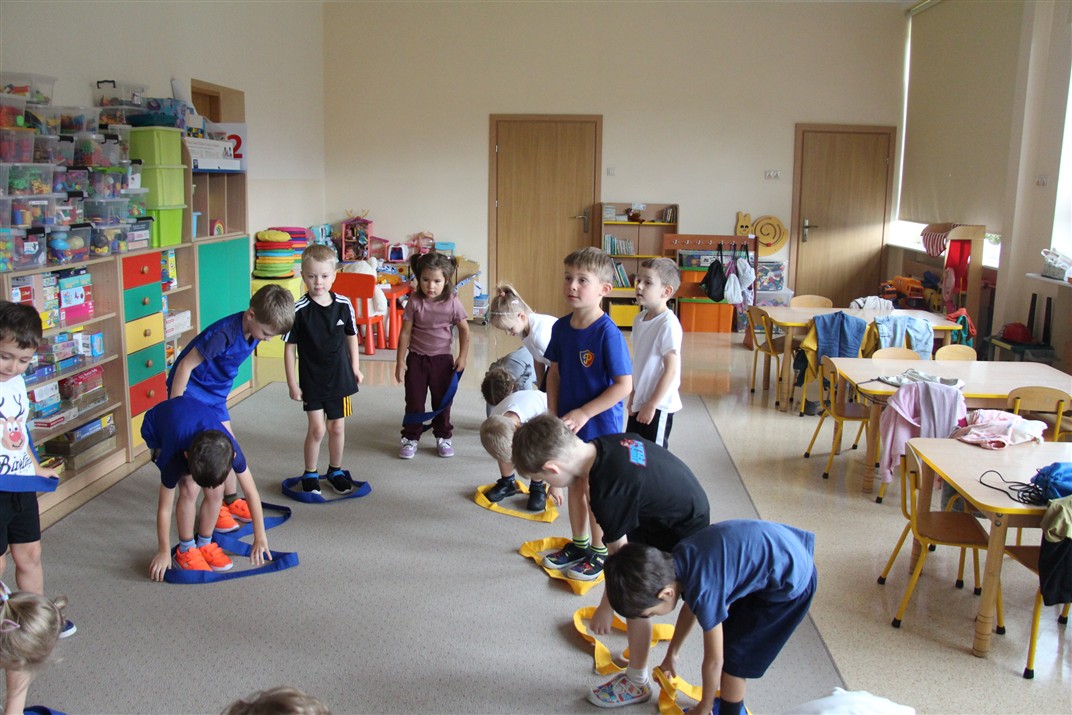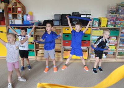 W piątek 17 października odbyło się sportowo-muzyczne kółko zainteresowań w grupie Motyli. Podczas tych zajęć rozwijaliśmy sprawność fizyczną podczas wykonywania ćwiczeń gimnastycznych z wykorzystaniem rekwizytów oraz pokonując gimnastyczny i sensoryczny tor przeszkód.