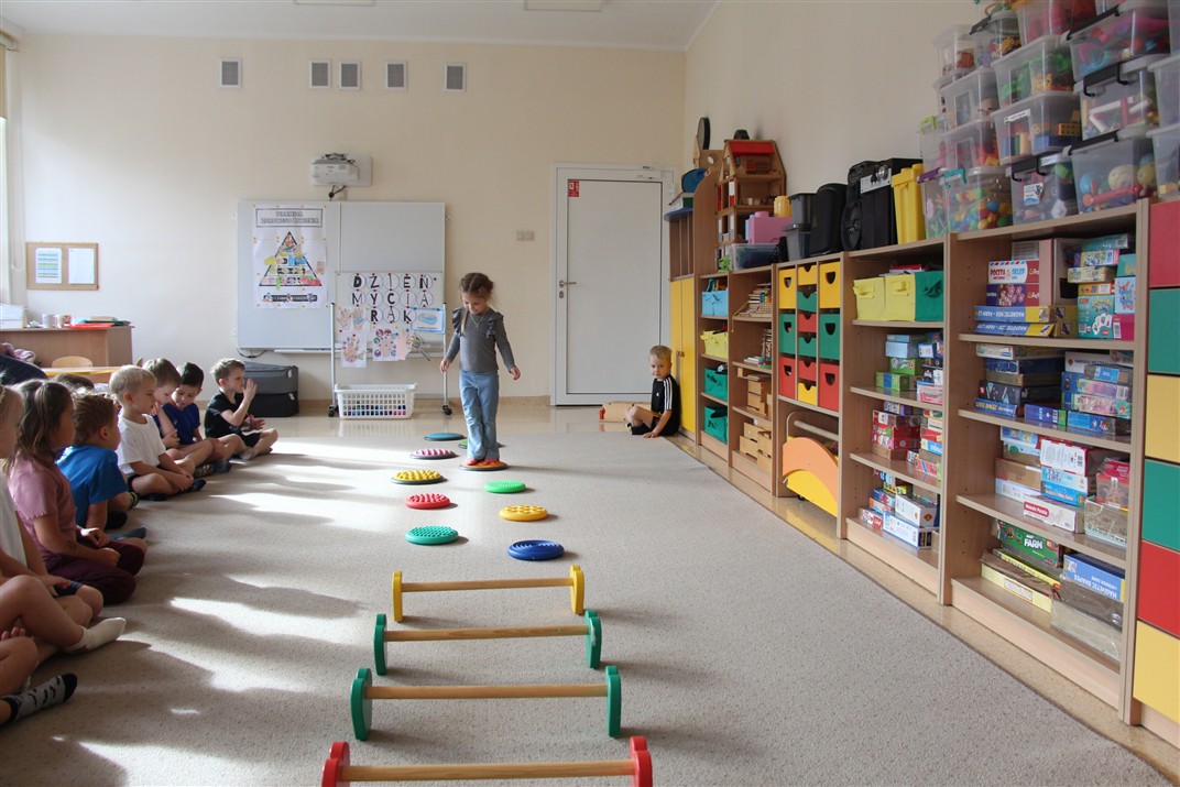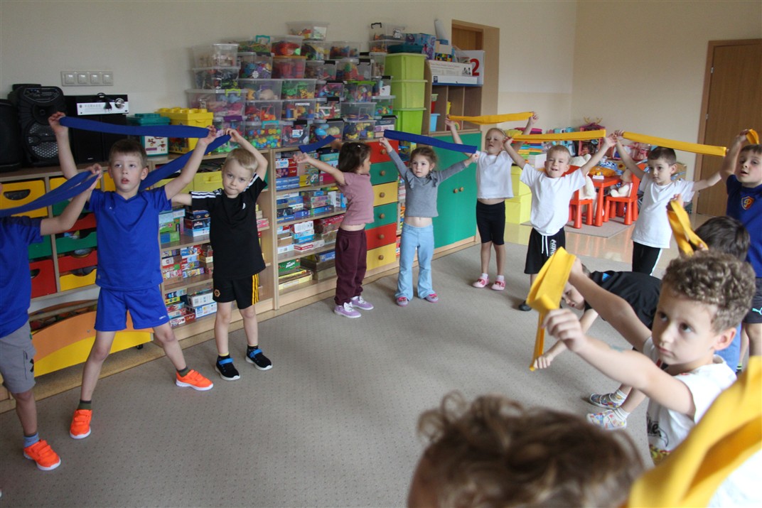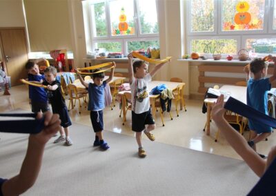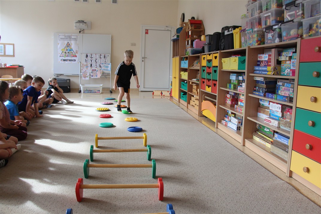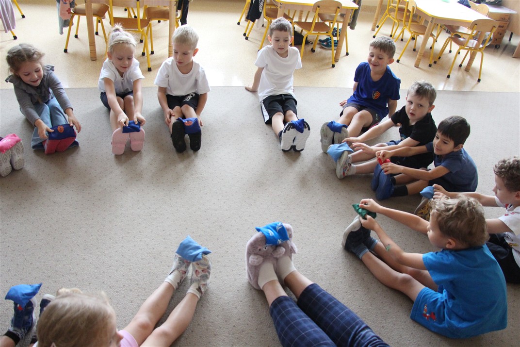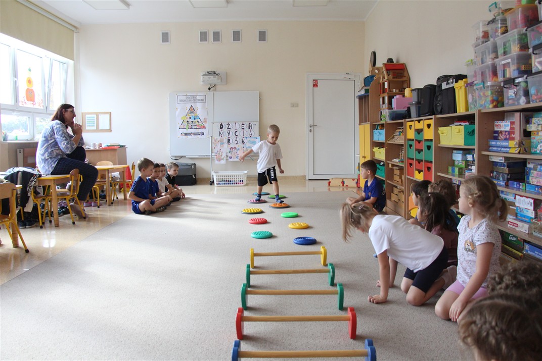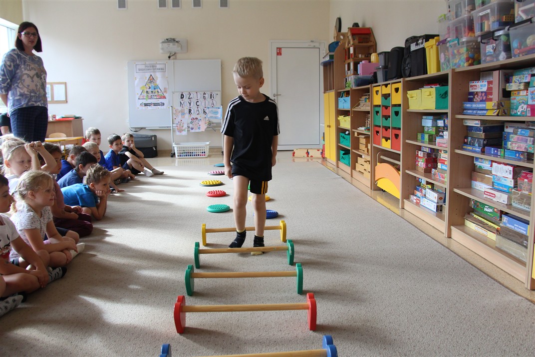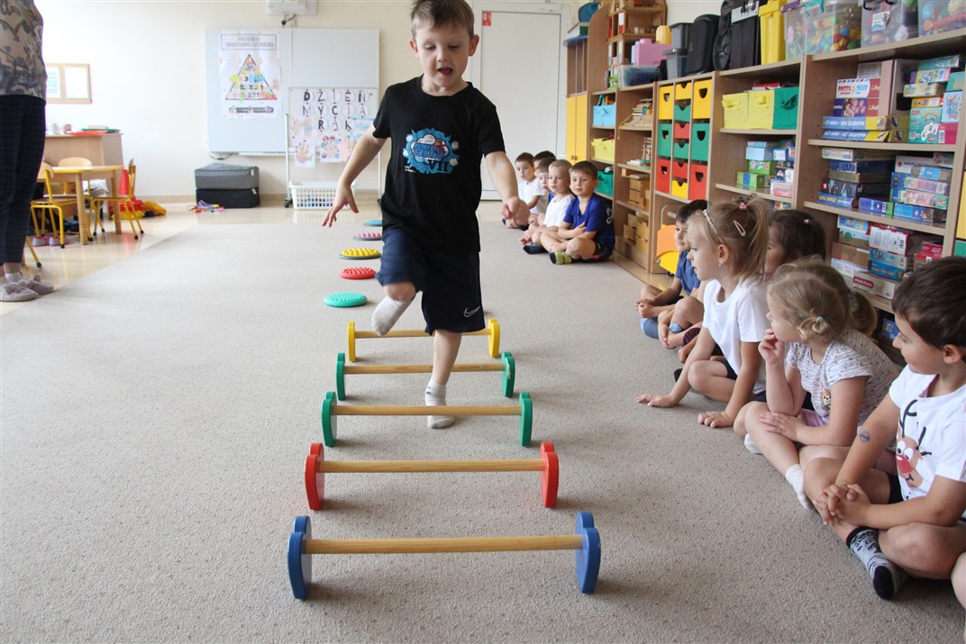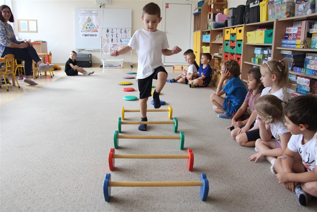 W piątek 17 października odbyło się sportowo-muzyczne kółko zainteresowań w grupie Motyli. Podczas tych zajęć rozwijaliśmy sprawność fizyczną podczas wykonywania ćwiczeń gimnastycznych z wykorzystaniem rekwizytów oraz pokonując gimnastyczny i sensoryczny tor przeszkód.