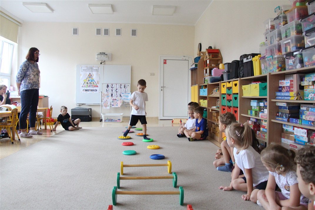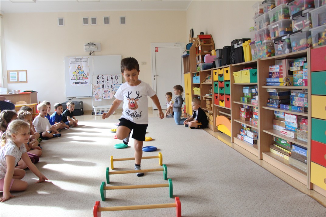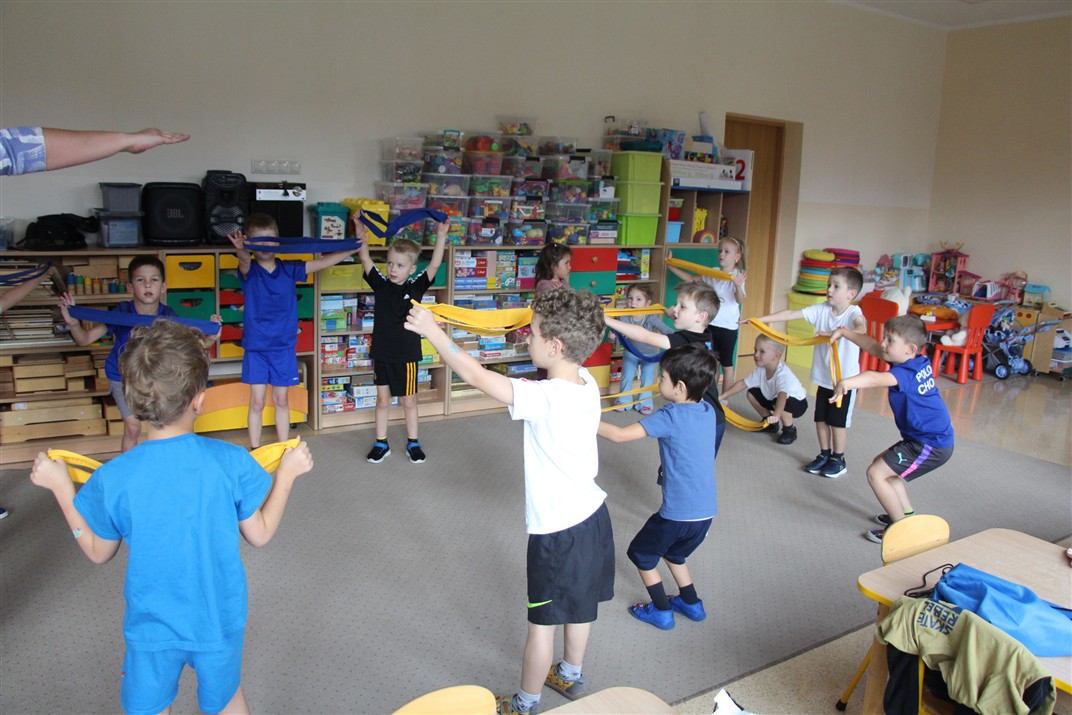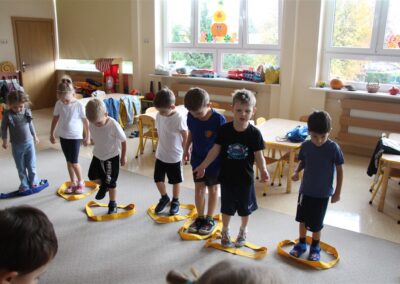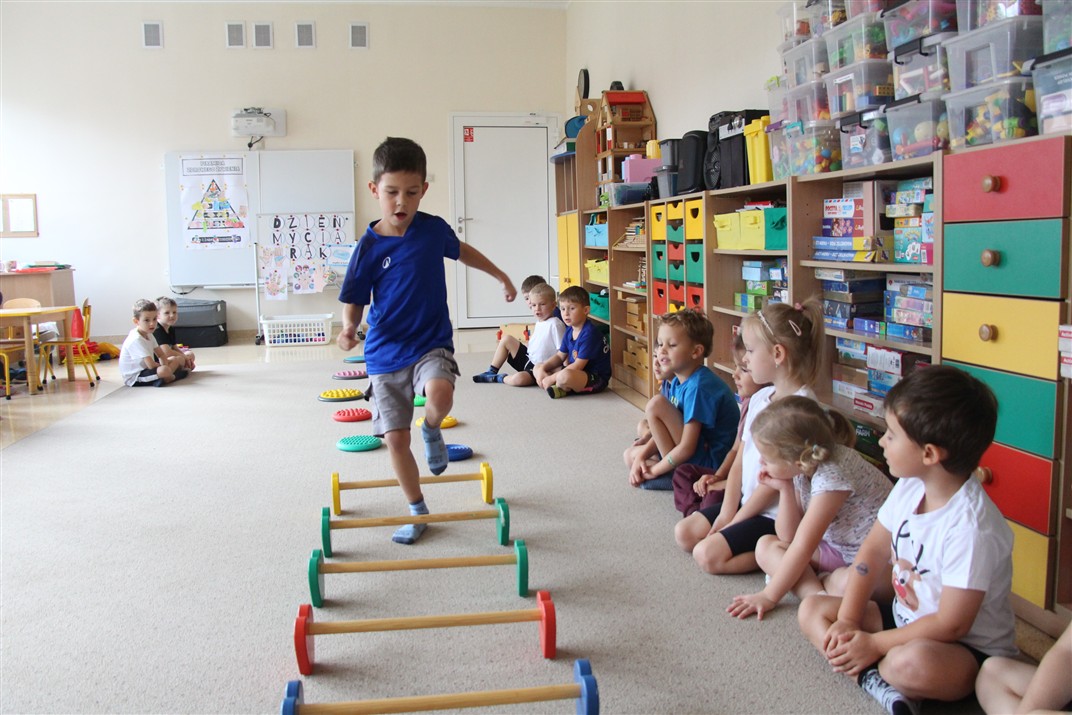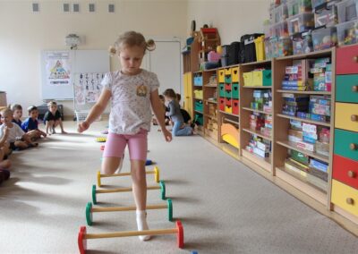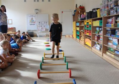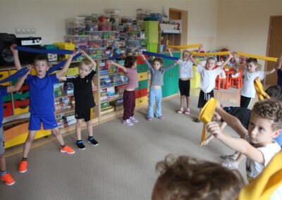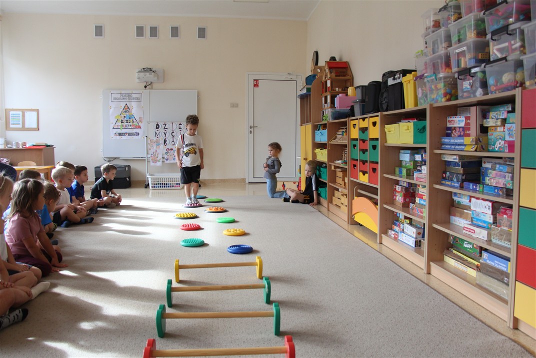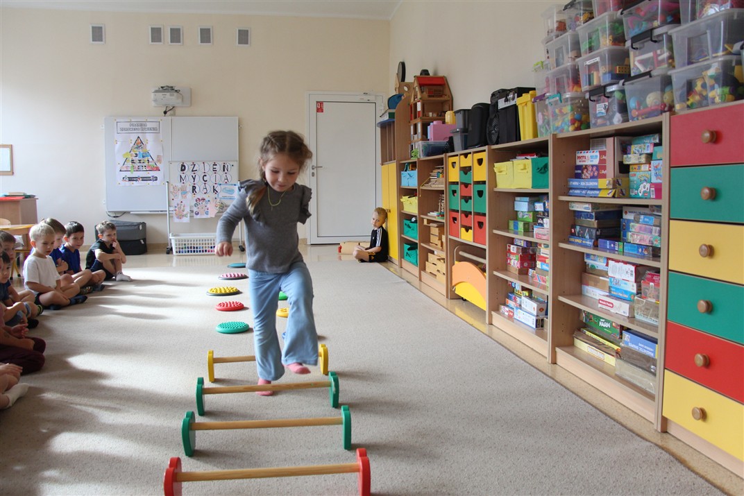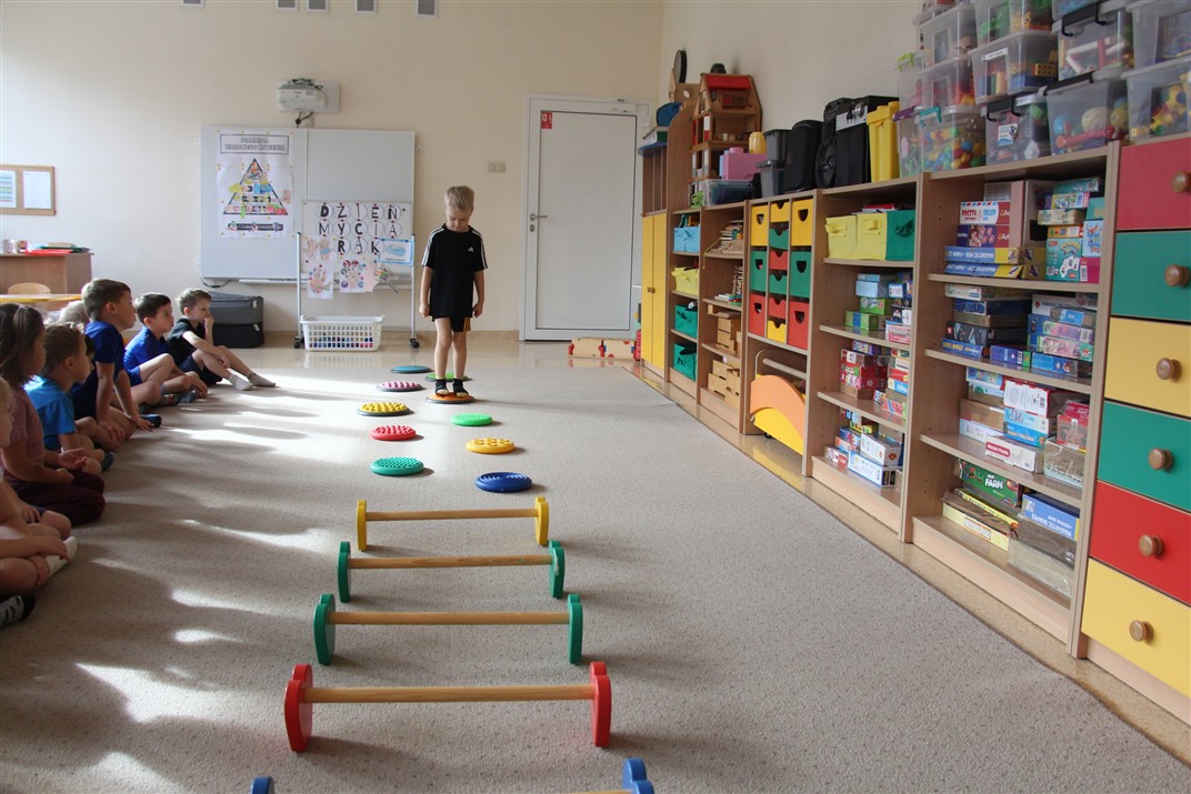 W piątek 17 października odbyło się sportowo-muzyczne kółko zainteresowań w grupie Motyli. Podczas tych zajęć rozwijaliśmy sprawność fizyczną podczas wykonywania ćwiczeń gimnastycznych z wykorzystaniem rekwizytów oraz pokonując gimnastyczny i sensoryczny tor przeszkód.